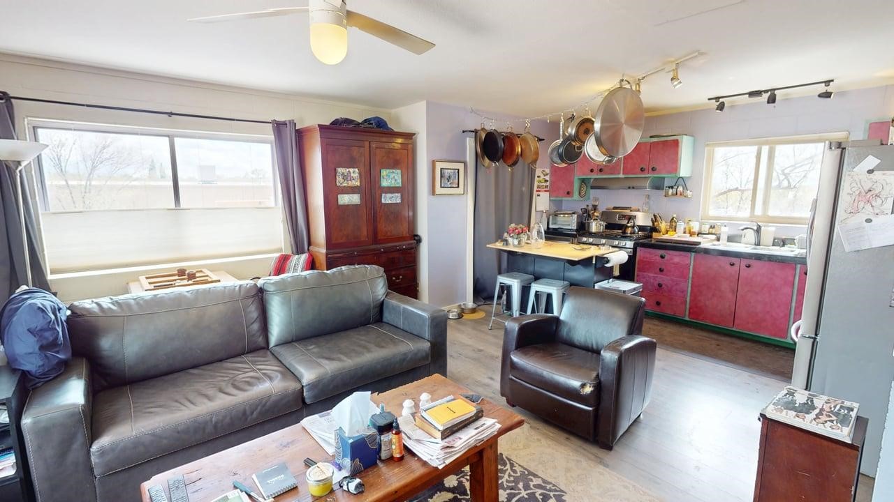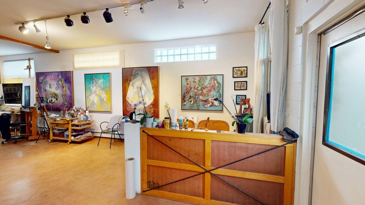 Rare opportunity to own a live/work condominium with C-1 zoning located just steps from Casa Solana Shopping Center, schools and downtown Santa Fe. Guests and owners alike are invited by a quaint but thoughtfully created front porch/sitting area. Double doors open to the large, light-filled work and living area area with a small office on the ground level. There is also a half bath and hookups for a washer and dryer on the lower level. A sliding glass door invites sunshine and shade via an enclosed and tranquil patio. Upstairs is a newly remodeled living with plenty of natural light to supplement the tract lighting. The upstairs full bath was newly remodeled with lovely stone accents and up to date plumbing fixtures. Beautifully landscaped, this live/work condo's potential is limited only by the owner's imagination. HOA dues are $800/quarterly and include insurance, water, refuse, sewer, landscaping, roof and reserve.