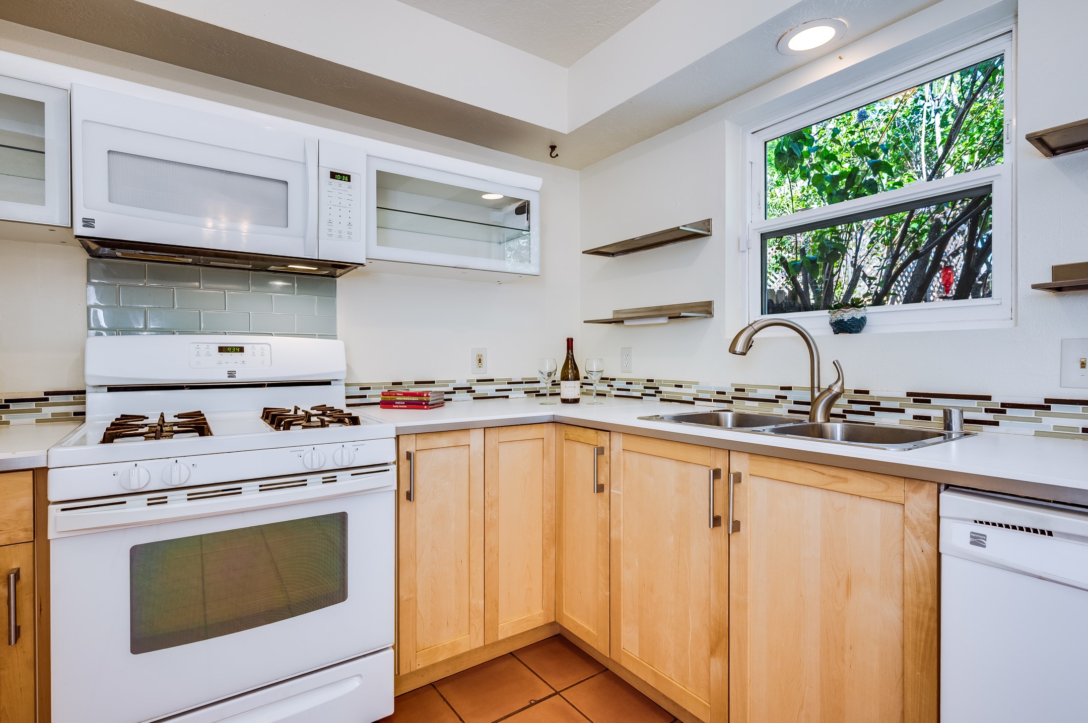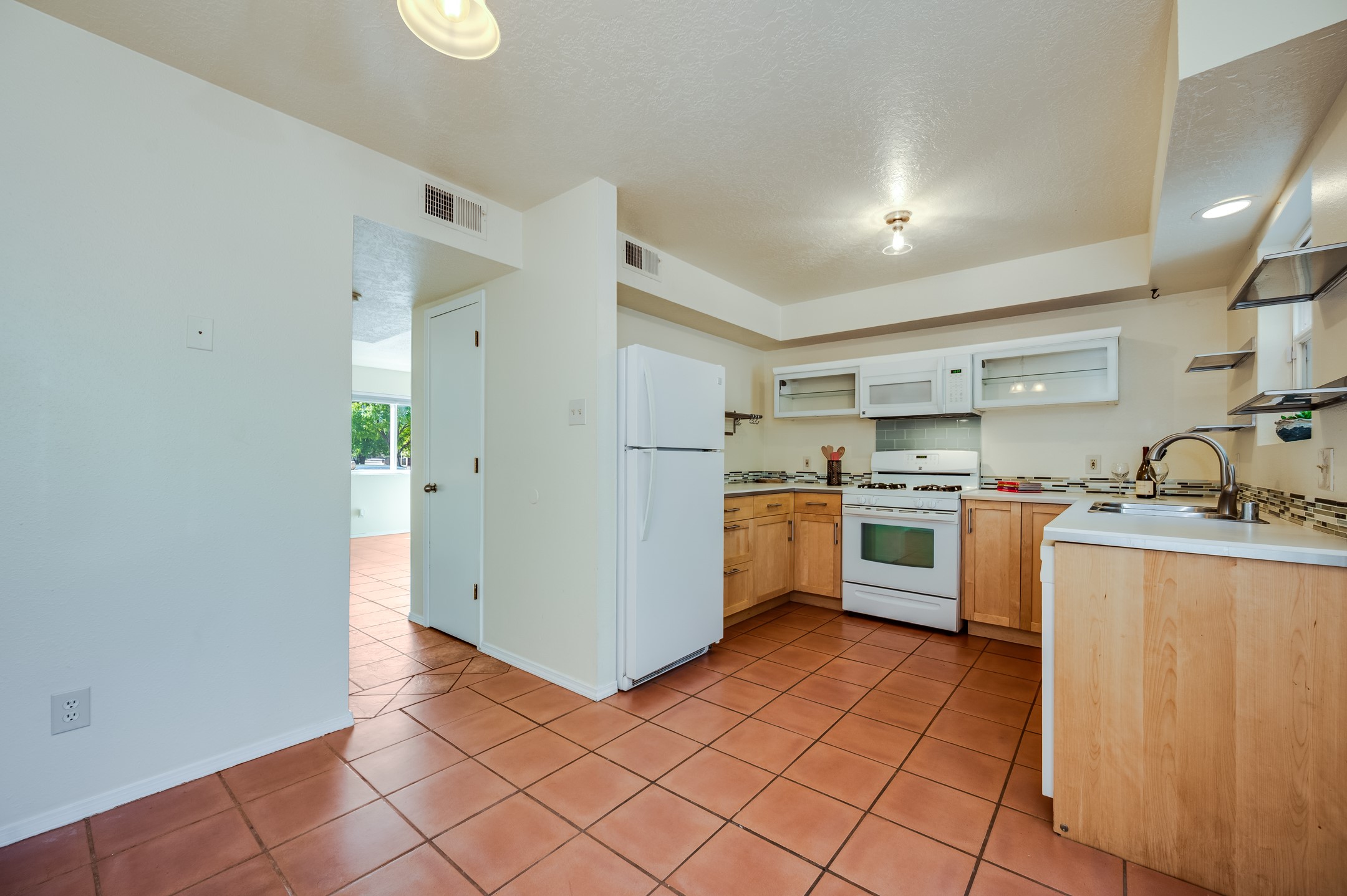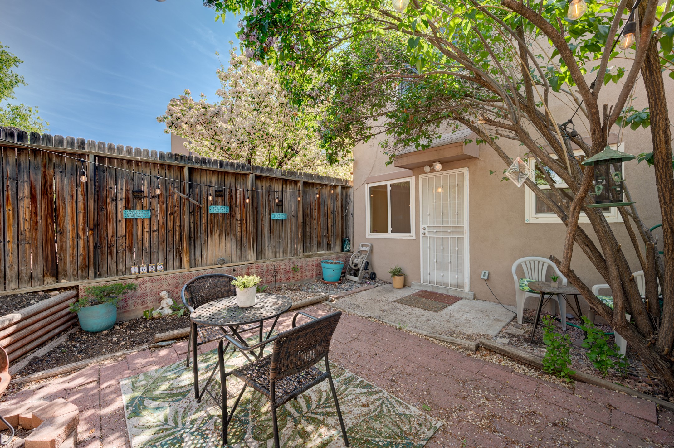 Discover the charm and convenience of this two-bedroom, two-bathroom, townhome located in the heart of Santa Fe. The well maintained END UNIT boasts a renovated kitchen with top-notch finishes, renovated bathrooms, central A/C, NEW WASHER & DRYER, and a fully fenced and very private patio- the perfect shaded setting for al-fresco entertaining and pets. Enjoy a well-designed interior space that includes a spacious living room, dedicated dining area, and generous bedrooms upstairs. Other features include track lighting, newer windows, new carpet on the stairs (ordered and awaiting install), tile downstairs and wood-laminate in the bedrooms.Parking is easy with an assigned parking space directly in front of the home. Step outside and find yourself within walking distance to a variety of restaurants and shopping options. Whether you're basking in the vibrancy of local attractions or enjoying the tranquility of your private abode, this townhouse blends lifestyle and convenience seamlessly. Perfect for those looking to live a stone's throw from the city's buzz yet within a serene neighborhood.