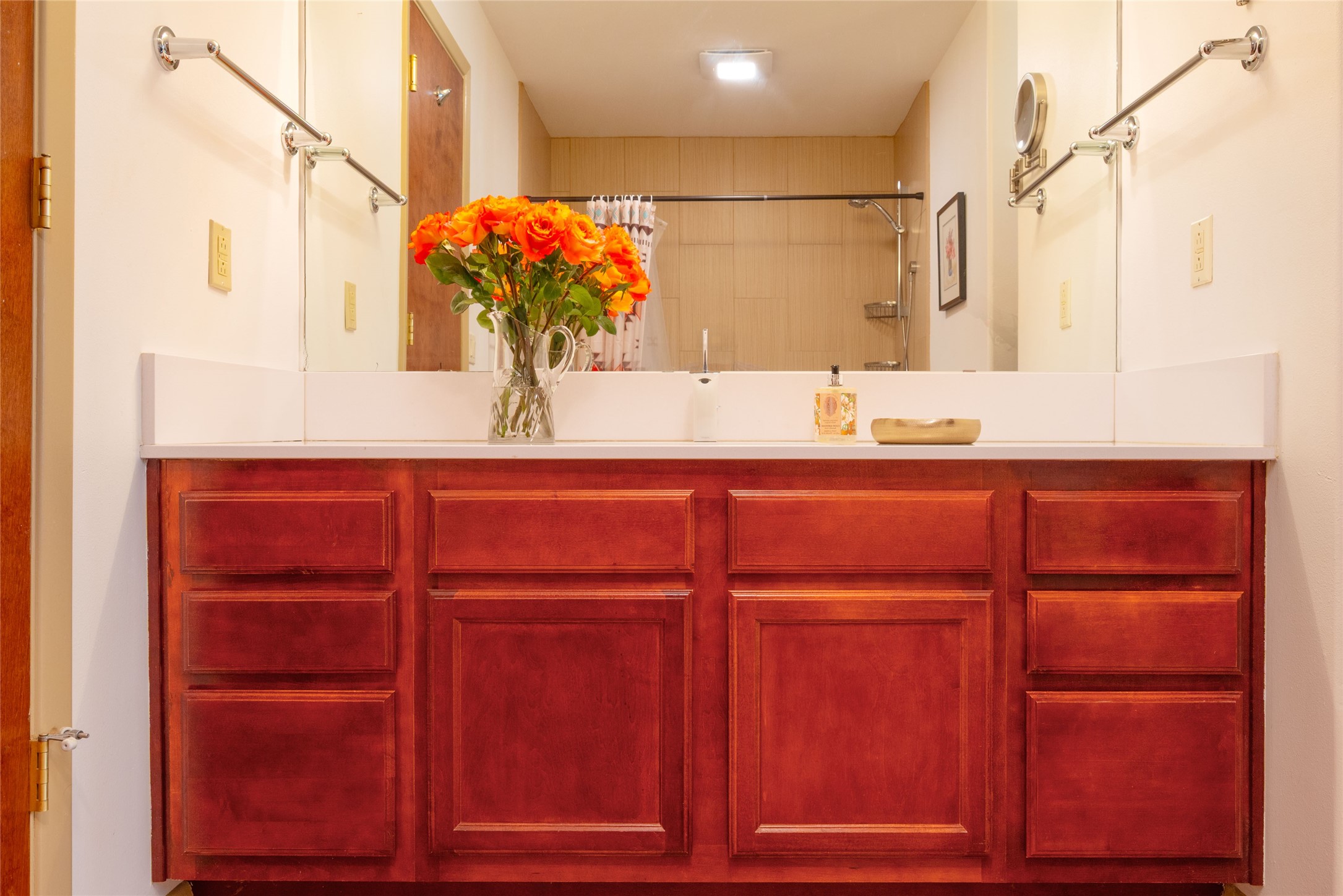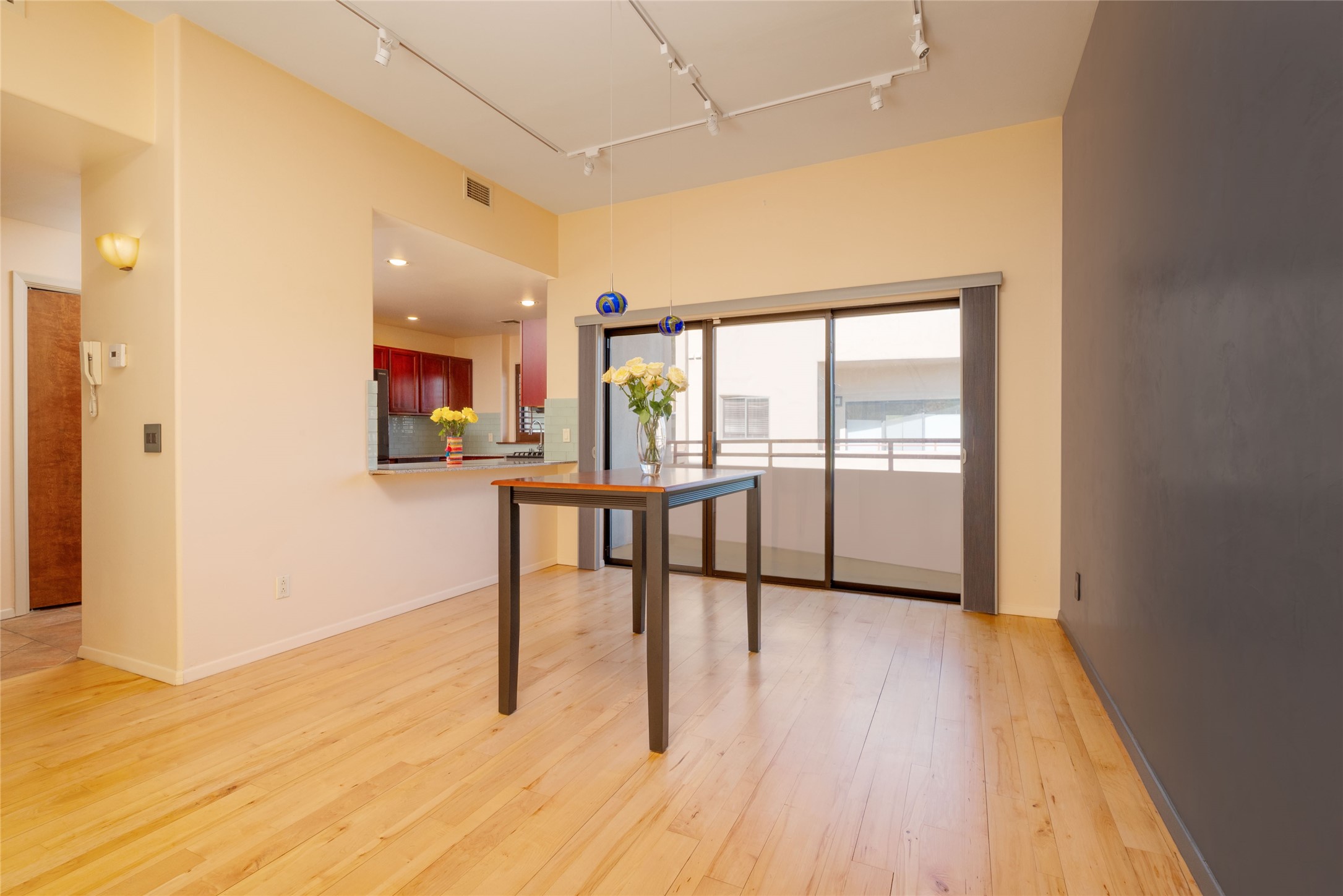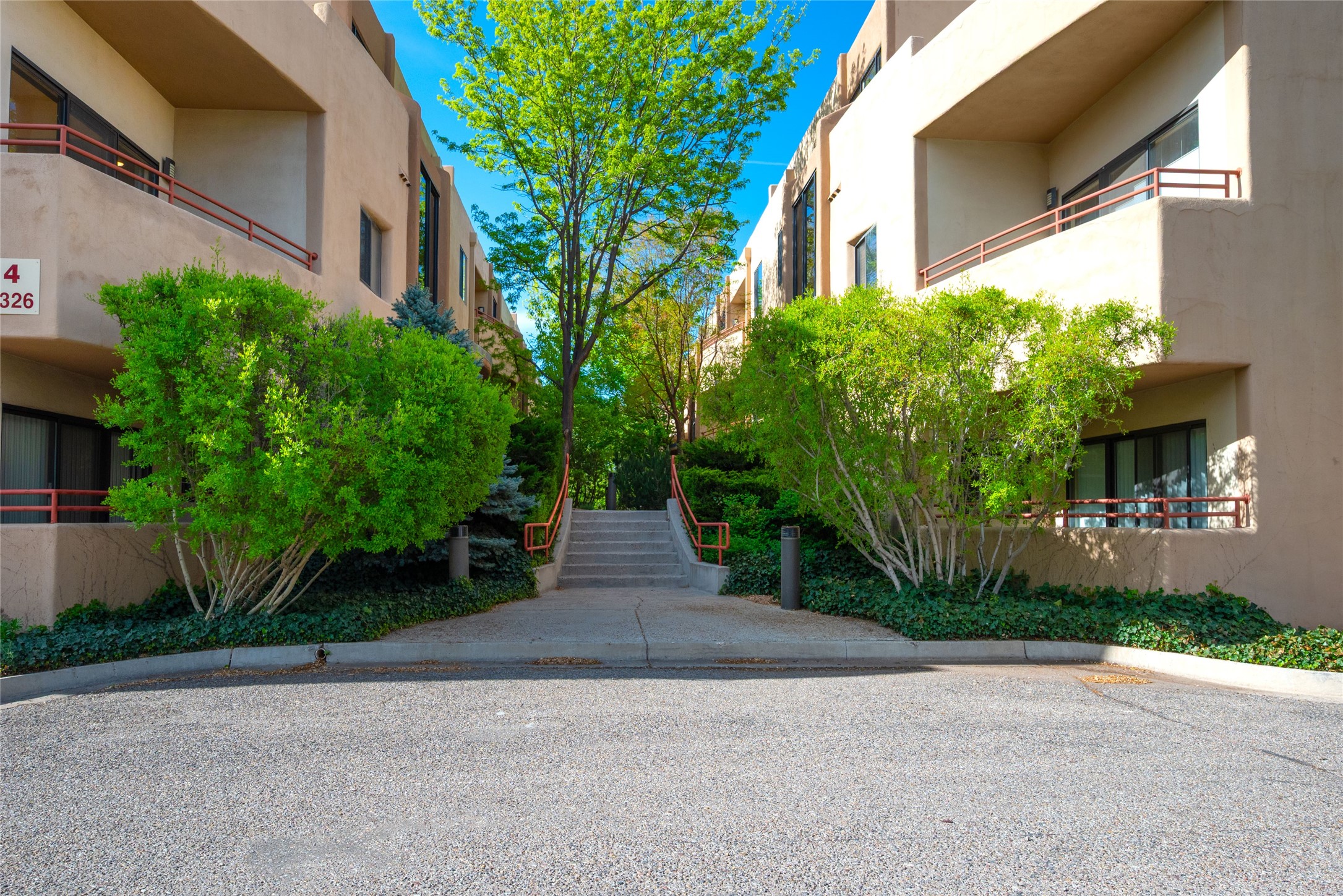 311 La Remuda is a sophisticated, contemporary home close to everything you love about Santa Fe. Two balconies, one for sunrise and one for sunset views, provide beautiful light throughout the day. The open plan kitchen and living area feature maple floors, built-in custom storage, stone countertops, a sleek gas fireplace, and a dramatic accent wall for your favorite piece of art. This second-floor unit is also the penthouse - no one will live above you. A stack washer/dryer in the unit, covered parking, a large storage unit, and a convenient in-town location make 311 La Remuda a wonderful and practical home or vacation get-away.