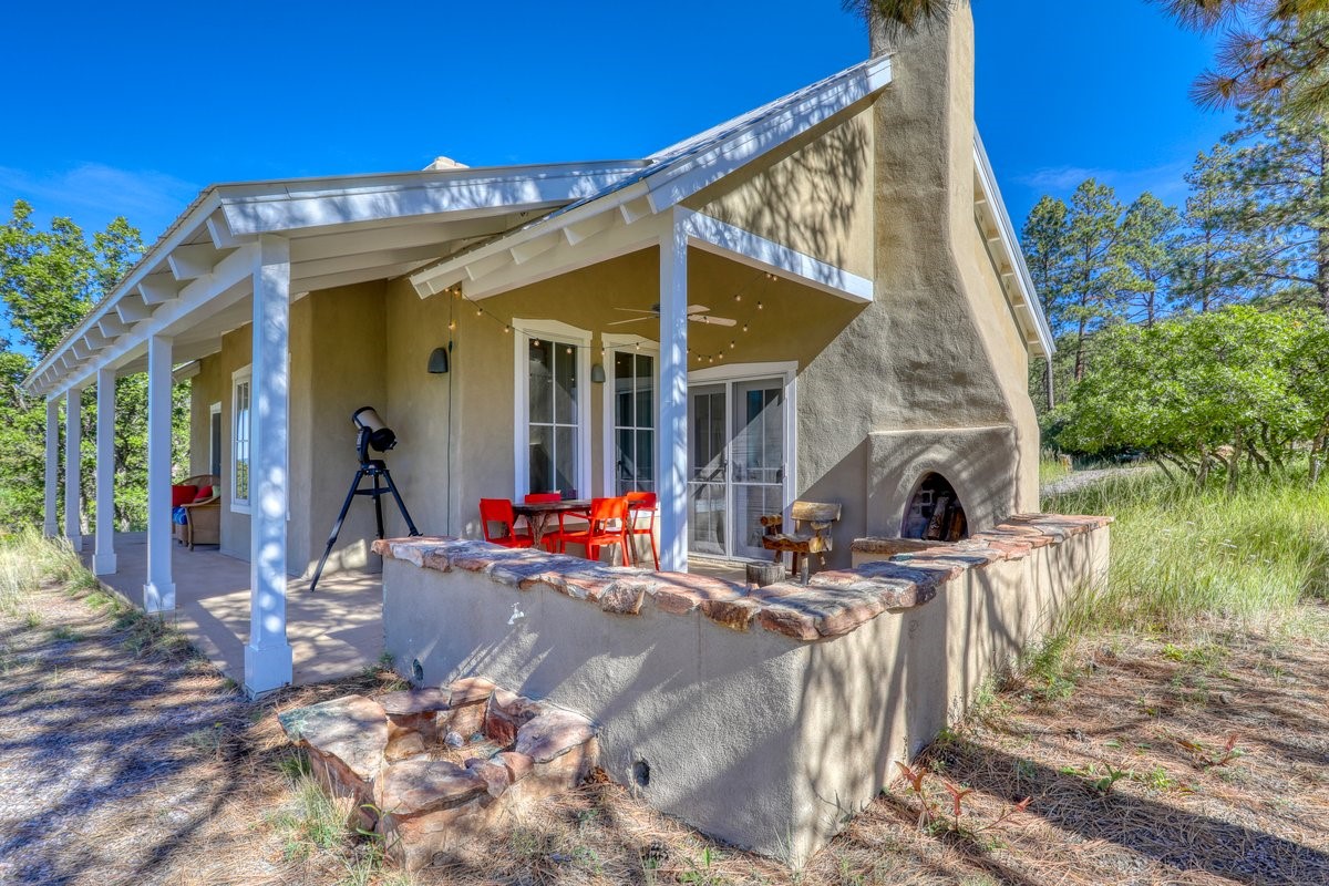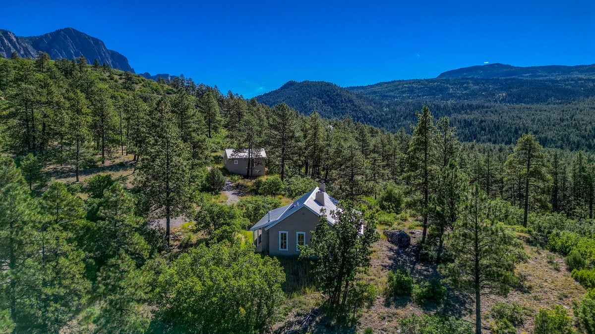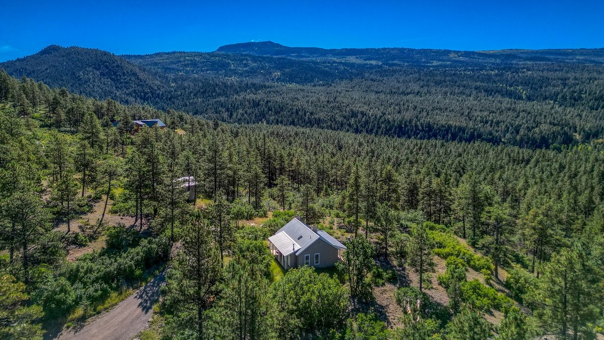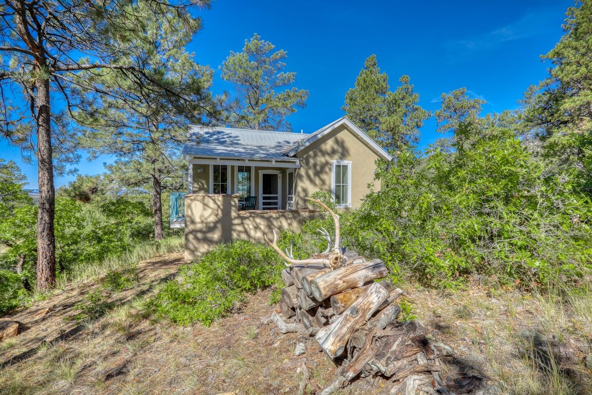 Charming Retreat in Ticonderoga Subdivision, Chama, NM: This is a stunning property spanning 23.49 acres in the picturesque, convenient and gated Ticonderoga Subdivision located in the Brazos Canyon. This property's unique offering includes a custom-built main house and a versatile guest house, perfect for family or friends. The 945 sq ft Main House features 1 Bedroom, 1 Bathroom and has a cozy living space designed for comfort and functionality. Covered front and back porches expand the indoor space by continuing outside into the mountain air to the breathtaking views and outdoor fireplace. It's the perfect location for relaxing or entertaining. The main home was thoughtfully designed with numerous built-in and custom features to enhance the home's natural charm and utility. The 487 sq ft Guest House features 1 Bedroom with a flexible layout and a basement. It is currently set up as a one-bedroom with office space, but it has the potential to easily convert into a two-bedroom with separate entrances. The coffee bar & mini refrigerator add a space for guests to enjoy refreshments either indoors or on the patio. The guest cottage is set up for shared bathroom access designed for optimal functionality. For the outdoor enthusiast, there is ample storage space available from the front porch of the main house for convenient access to outdoor equipment and gear and a detached garage for storing all the toys. Community amenities in Ticonderoga offer residents access to Chavez Creek, the Brazos River, and multiple stocked ponds, providing endless opportunities for outdoor recreation and relaxation within a 400-acre conservation easement.