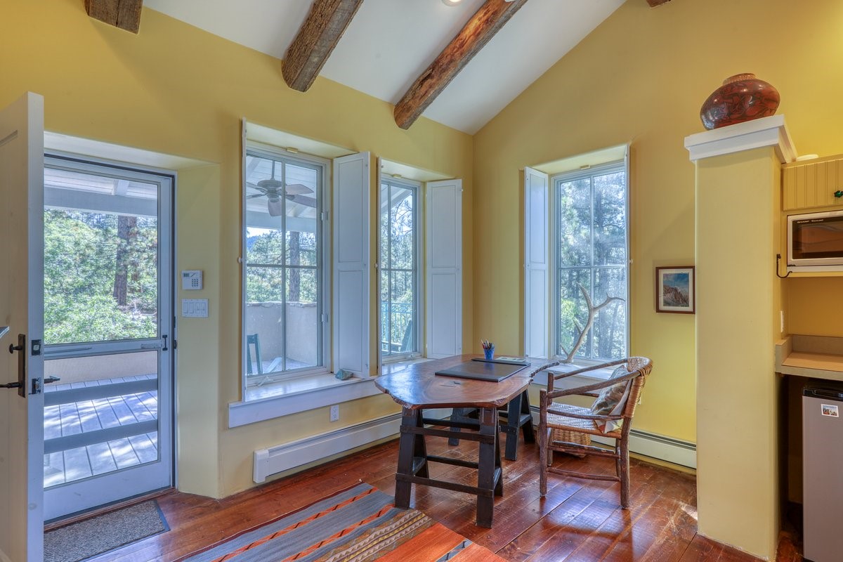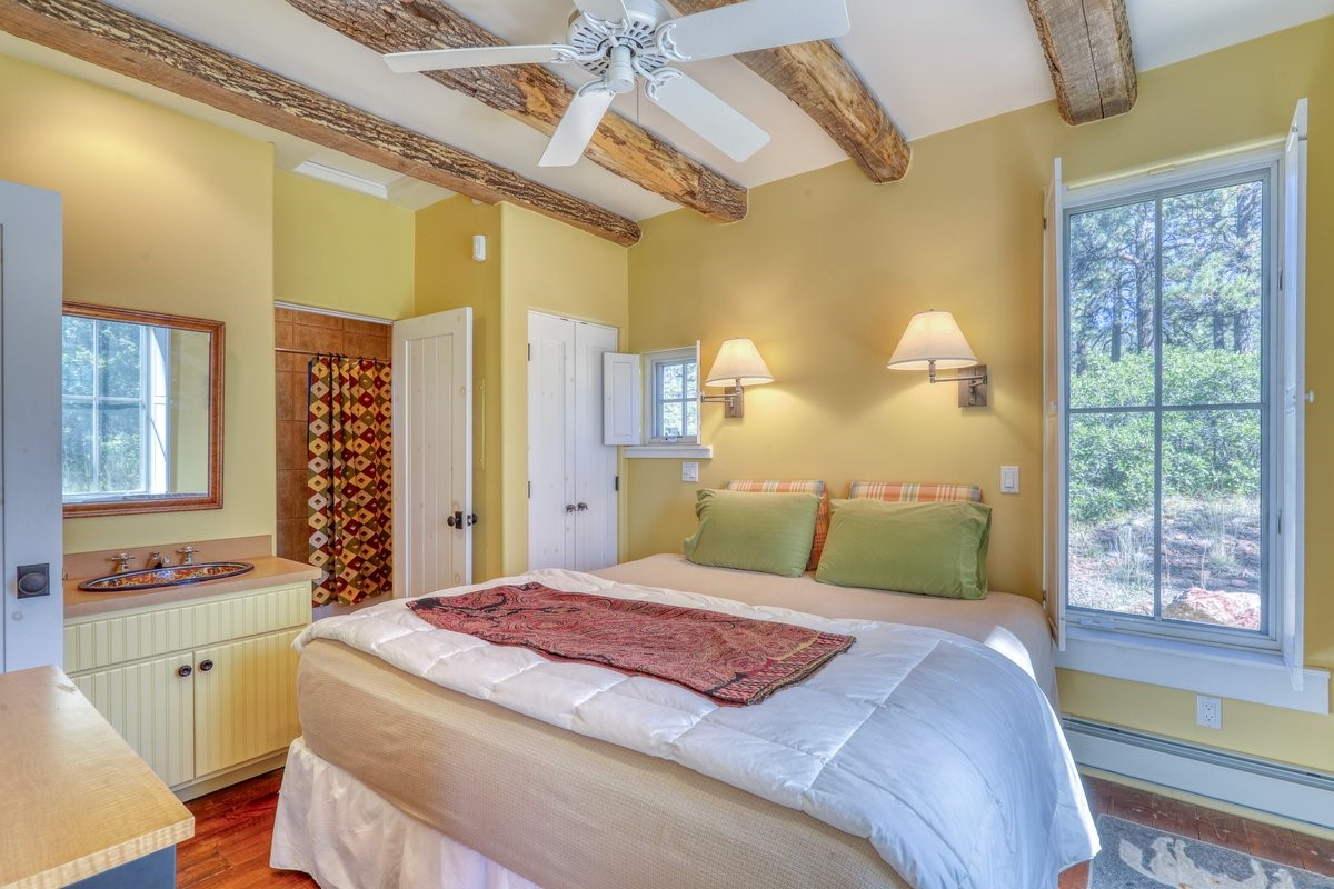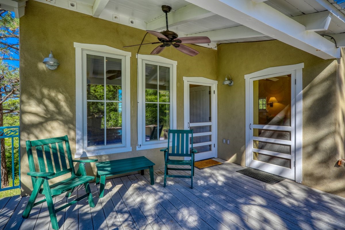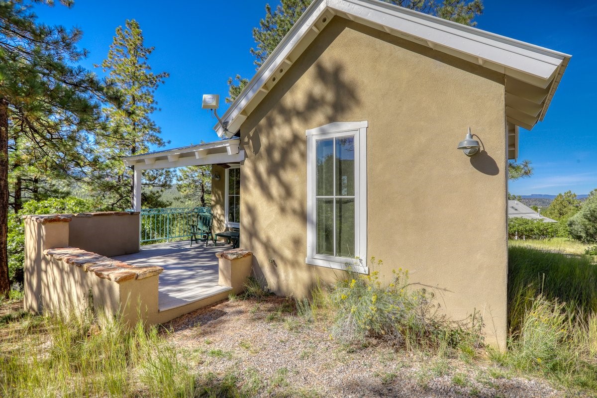 Charming Retreat in Ticonderoga Subdivision, Chama, NM: This is a stunning property spanning 23.49 acres in the picturesque, convenient and gated Ticonderoga Subdivision located in the Brazos Canyon. This property's unique offering includes a custom-built main house and a versatile guest house, perfect for family or friends. The 945 sq ft Main House features 1 Bedroom, 1 Bathroom and has a cozy living space designed for comfort and functionality. Covered front and back porches expand the indoor space by continuing outside into the mountain air to the breathtaking views and outdoor fireplace. It's the perfect location for relaxing or entertaining. The main home was thoughtfully designed with numerous built-in and custom features to enhance the home's natural charm and utility. The 487 sq ft Guest House features 1 Bedroom with a flexible layout and a basement. It is currently set up as a one-bedroom with office space, but it has the potential to easily convert into a two-bedroom with separate entrances. The coffee bar & mini refrigerator add a space for guests to enjoy refreshments either indoors or on the patio. The guest cottage is set up for shared bathroom access designed for optimal functionality. For the outdoor enthusiast, there is ample storage space available from the front porch of the main house for convenient access to outdoor equipment and gear and a detached garage for storing all the toys. Community amenities in Ticonderoga offer residents access to Chavez Creek, the Brazos River, and multiple stocked ponds, providing endless opportunities for outdoor recreation and relaxation within a 400-acre conservation easement.