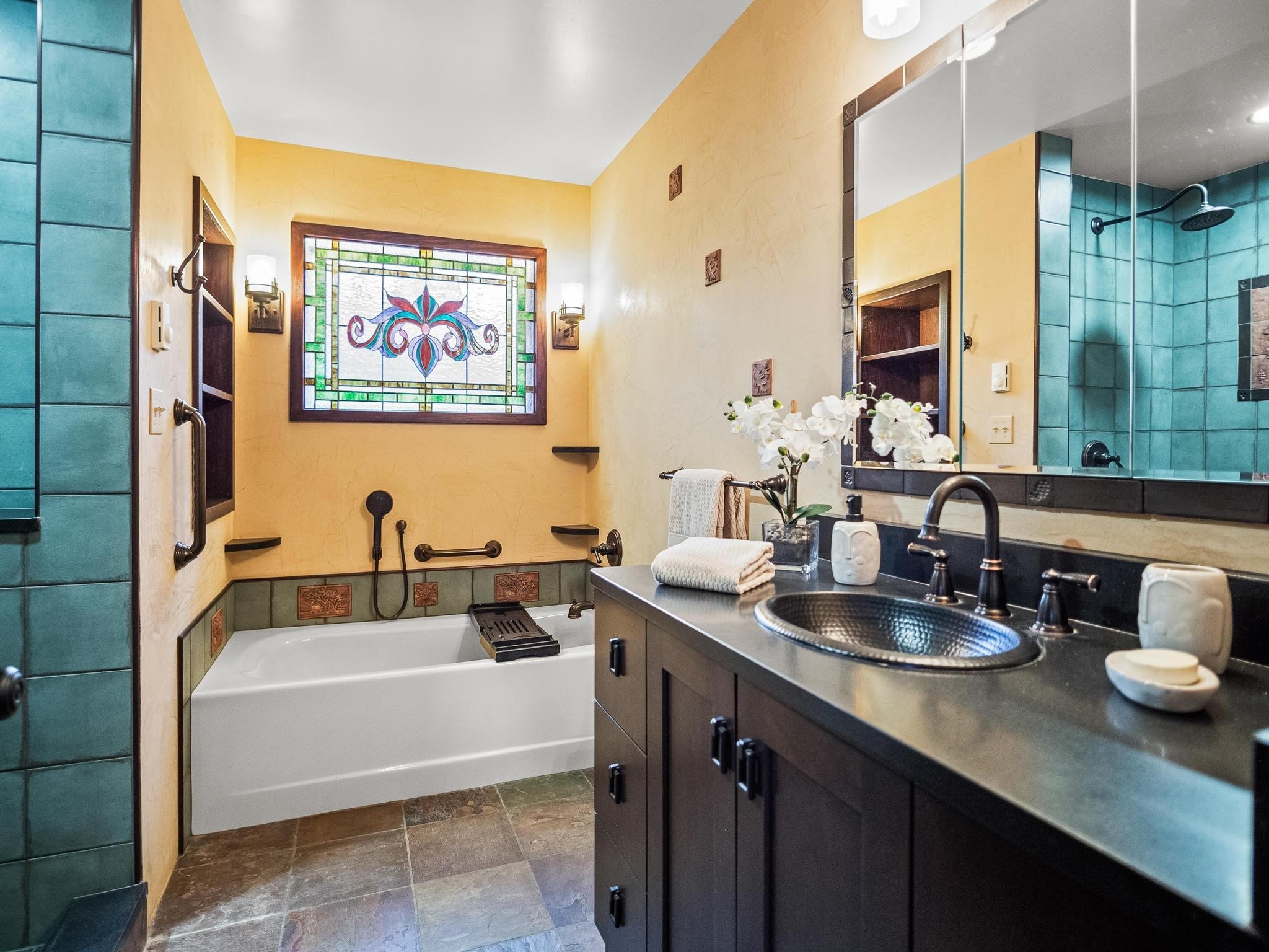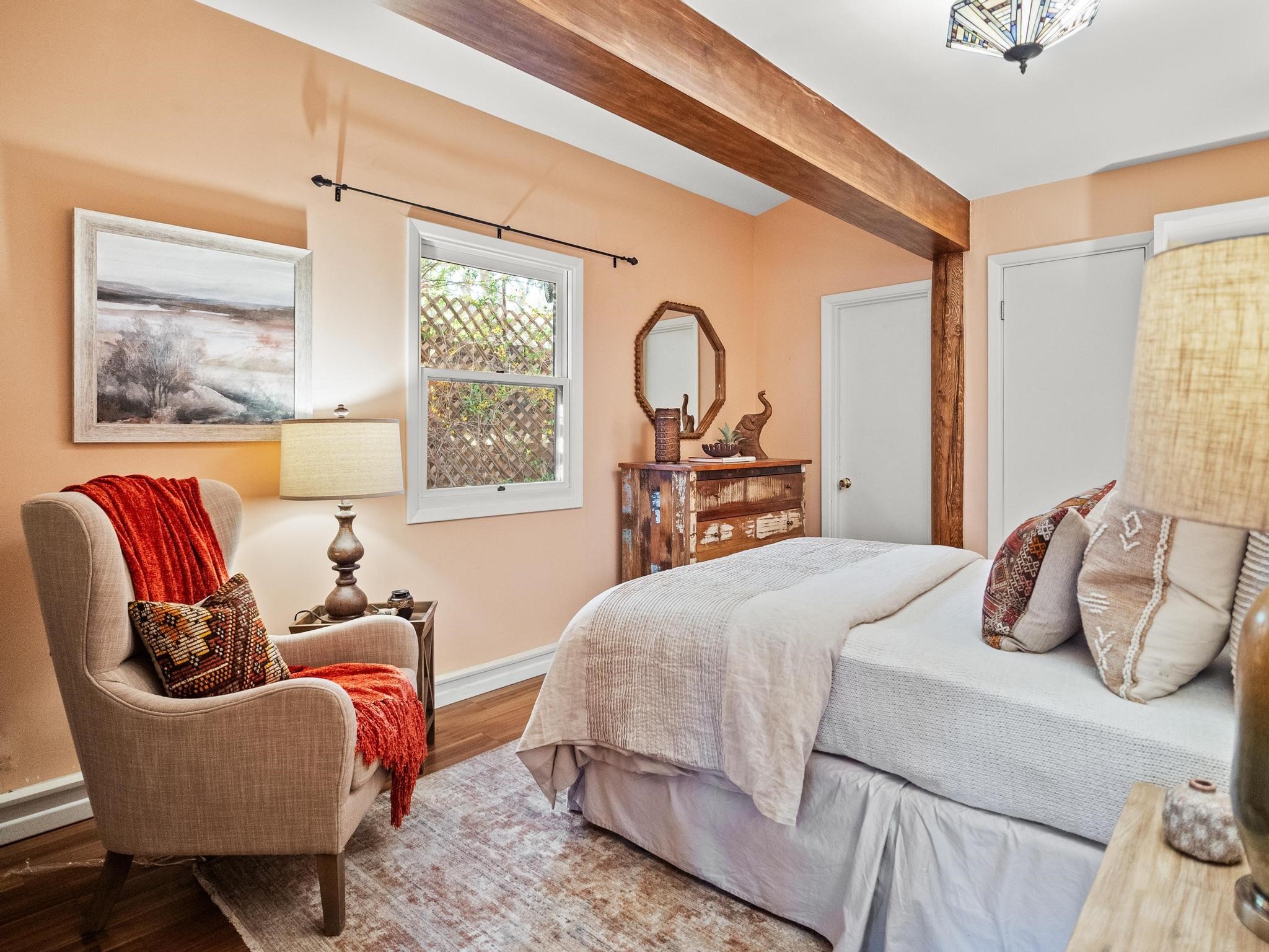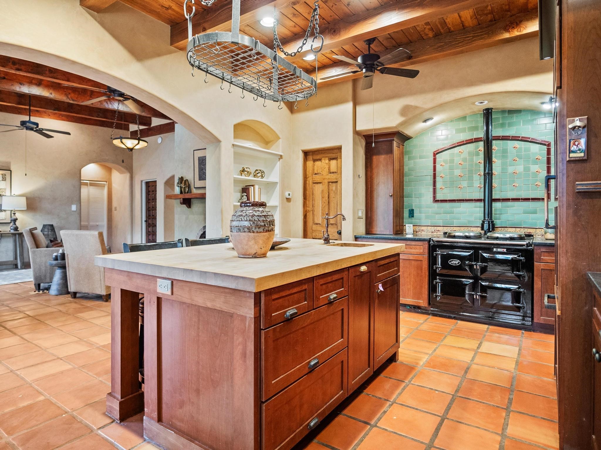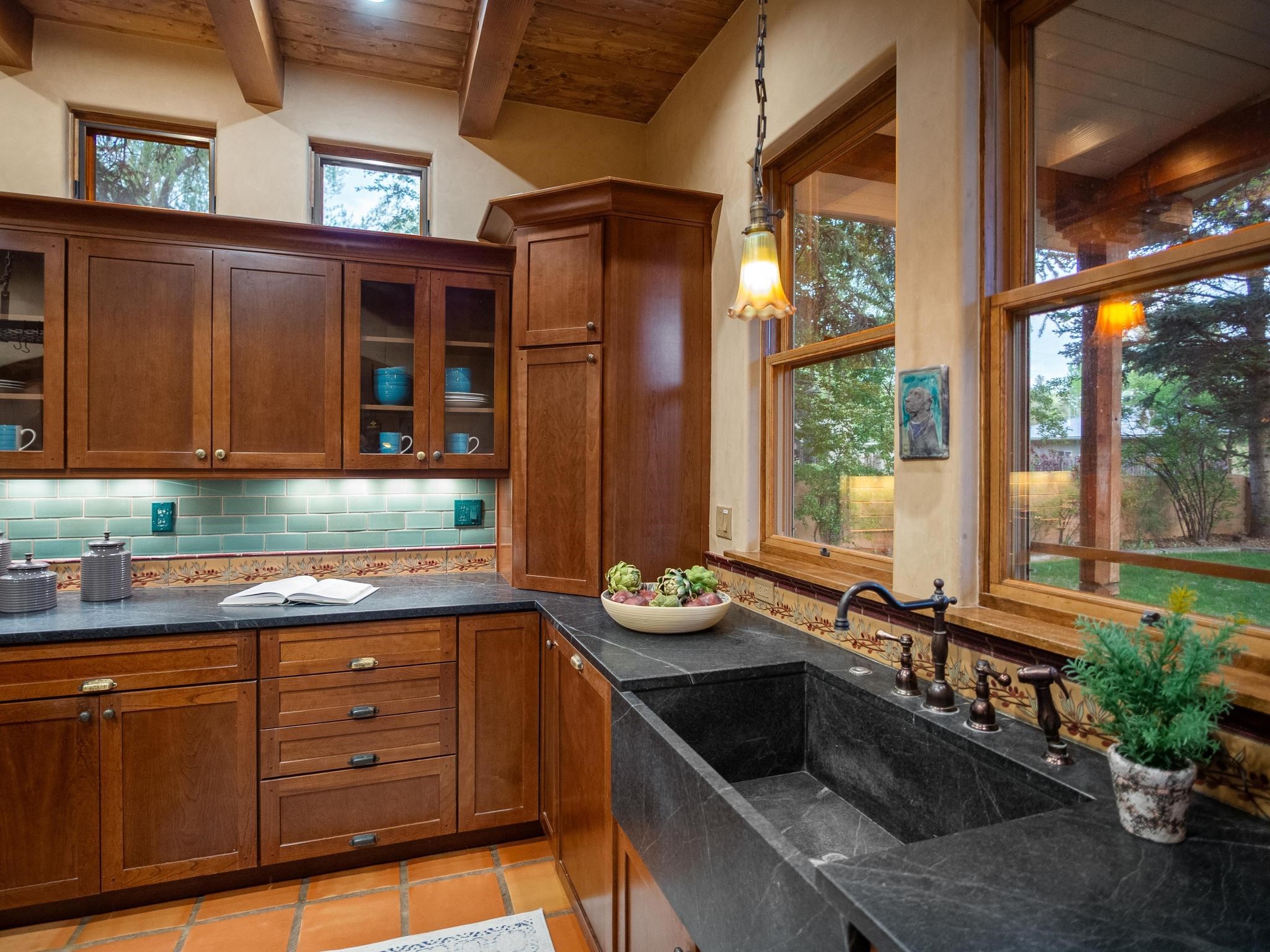 Elegant retreat with Guest Quarters on a quiet, leafy cul-de-sac just a five minute walk from the shops and restaurants of Taos plaza and Kit Carson Park, 310 Ortiz Lane is a stunning, versatile property, blending traditional charm with modern comforts - as a primary home, ski lodge, art studio, retirement haven and family getaway. With well over 4,000 square feet of living space across a main house, a lock-off "second home" - the original house - and a separate guest casita - also perfect for a studio/workshop - this unique home offers exceptional flexibility for multi-generational living, rental income, or live-work needs. MAIN RESIDENCE (Approx. 3,600 SF) Step into a warm, adobe-toned interior great room featuring high ceilings, custom woodwork, arched doorways, and classic Southwest design details throughout. The living and dining areas flow seamlessly, anchored by a cozy double fireplace, built-in shelving, wood floors, and Saltillo tile. To the side, a wide, fan-cooled patio opens onto a flowered adobe-walled Eden shaded by a glorious towering Siberian elm -visible and accessible from the great room interior. The recently added gourmet kitchen is a cook's (and host's) dream - with custom cabinetry, a spacious island with bar-stool seating, ample storage- including a separate multi-shelved pantry room and a coveted AGA stove. Large windows invite morning light and offer garden views. Upstairs, the primary suite includes a private sitting area, walk-in closet, fully remodelled bath with tub and walk-in shower, plus an adjacent office, bedroom or bonus space. The LOCK-OFF IN-LAWDWELLING remains connected to the main home--but has its own private entrance and patio. It features a second kitchen, full bath, open-concept living and dining areas, fireplace, one bedroom with French doors leading to a covered patio and wall fountain. This space offers an ideal setup for extended family, guests, or even rental use. CASITA (Approx. 400 SF) across the front courtyard is a charming detached guest suite with vaulted ceilings, wood floors, built-in shelving, and a bath--also perfect as an art studio, short-term rental, or private retreat. And a 100-square-foot workshop has its own separate entrance. OUTDOORS & AMENITIES Fully enclosed and beautifully xeriscaped yard with russet gravel, brick pavers, mature landscaping, and adobe privacy walls Multiple patios, both covered and open, offering outdoor living in every season 4 off-street parking spaces, including 2 under attached carports Whether you're looking for a hidden gem to call home or a flexible compound with income potential, 310 Ortiz Lane delivers exceptional style, thoughtful design, and an unbeatable in-town location.