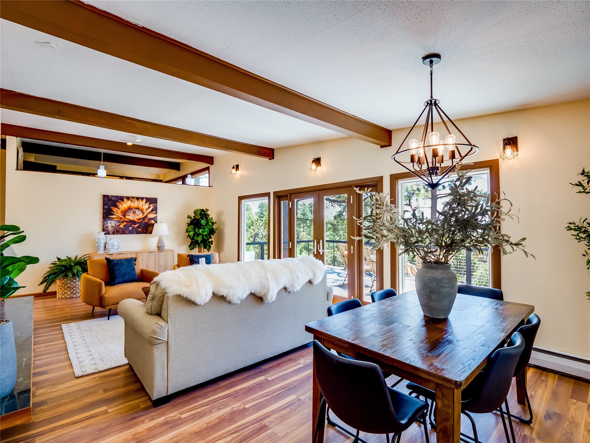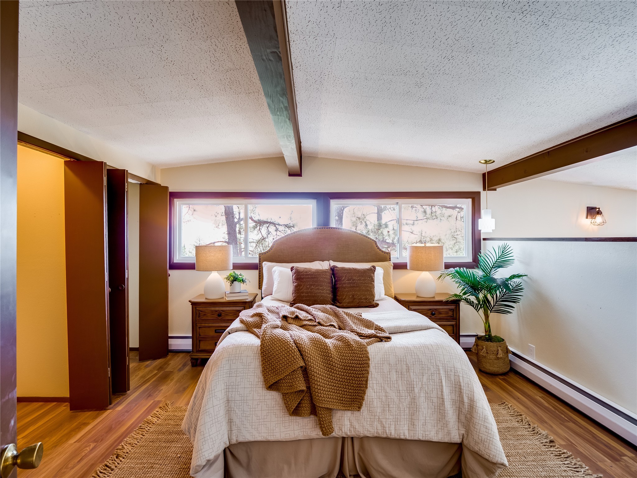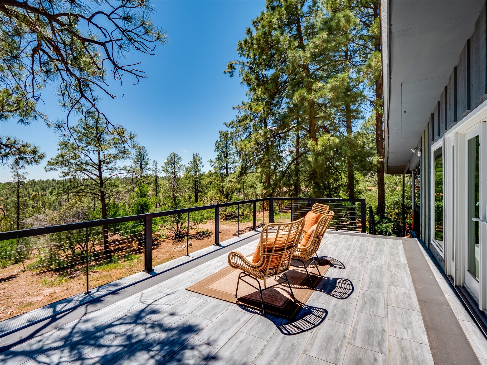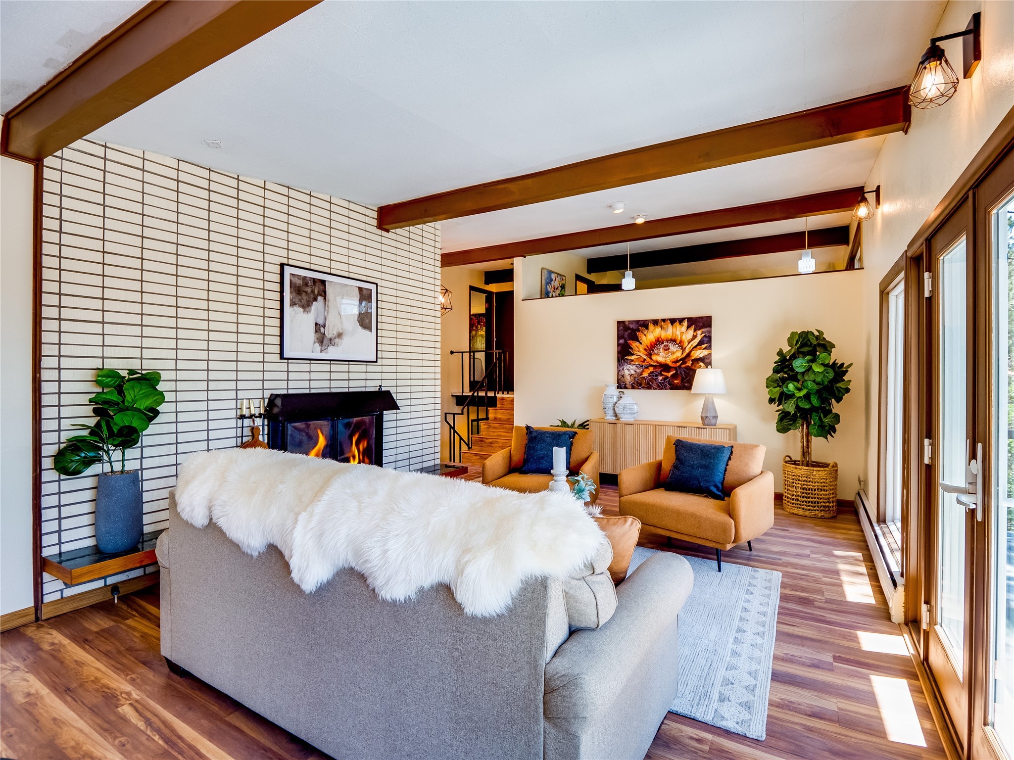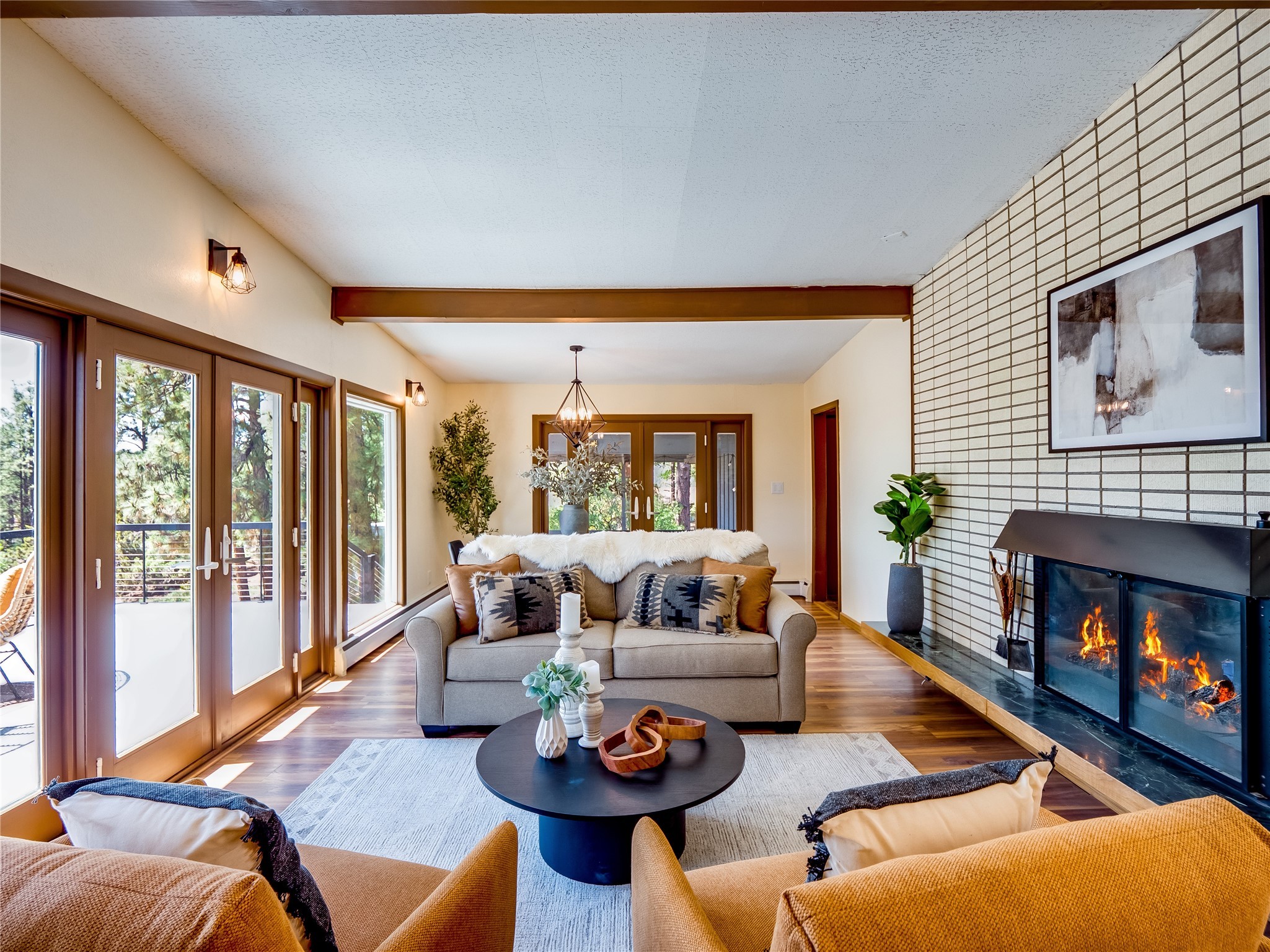 Nestled at the end of a quiet cul-de-sac in desirable Barranca Mesa, this multi-level canyon home offers space, privacy, and breathtaking views. Step inside and you are immediately drawn to the stunning open living and dining area with soaring vaulted ceilings with wood beams, warm laminate wood floors, and a wall of Anderson windows that flood the space with natural light. Two separate access points lead to multiple decks that overlook the canyon, creating a seamless indoor-outdoor flow perfect for entertaining with family and friends and taking in the serene surroundings. A cozy brick wood-burning fireplace anchors the room and adds charm to the main living space. The beautifully renovated galley-style kitchen features tile flooring, cream-colored shaker cabinets with black hardware, granite counters, and a stylish tile backsplash. Brand-new Caf brand appliances elevate the space, while a pantry and cozy breakfast nook offer function and flexibility. Off the kitchen, access the attached two-car garage for added convenience. Upstairs, you'll find a guest bedroom and a spacious loft-style primary bedroom that overlooks the living area below and includes multiple closets. The shared updated bathroom has a modern touch with a sleek single-sink vanity, walk-in shower, and backlit mirror. A few steps down reveals two more bedrooms and a second full bath with vintage-style blue tile, walk-in shower, and another light-up mirror. The lowest level features a spacious walk-out basement family room with a wall of windows, access to the large covered patio, a rustic stone wood-burning fireplace, and eye-catching tin ceilings. This level also includes a laundry room with additional storage, plus a separate storage room. Outside, the oversized backyard extends to the canyon ridge, offering a blank canvas to create your dream outdoor oasis. Located close to hiking trails, the golf course, and outdoor recreation, this one-of-a-kind home is perfect for nature lovers.