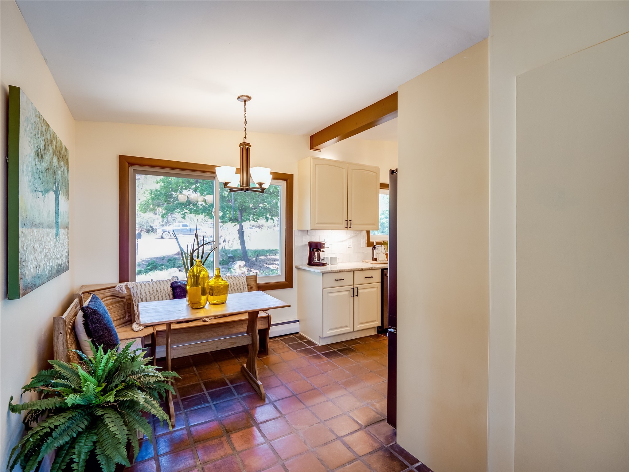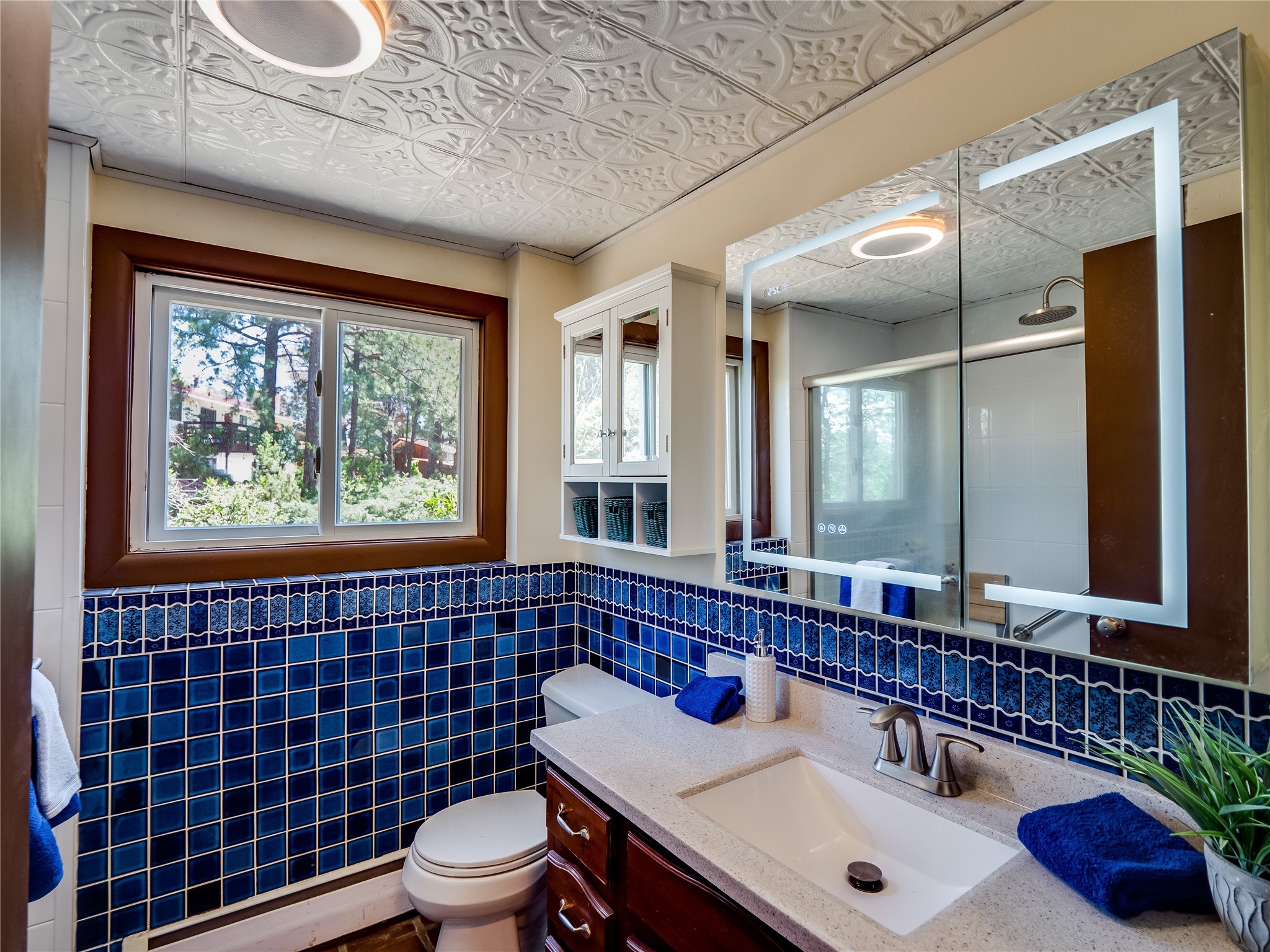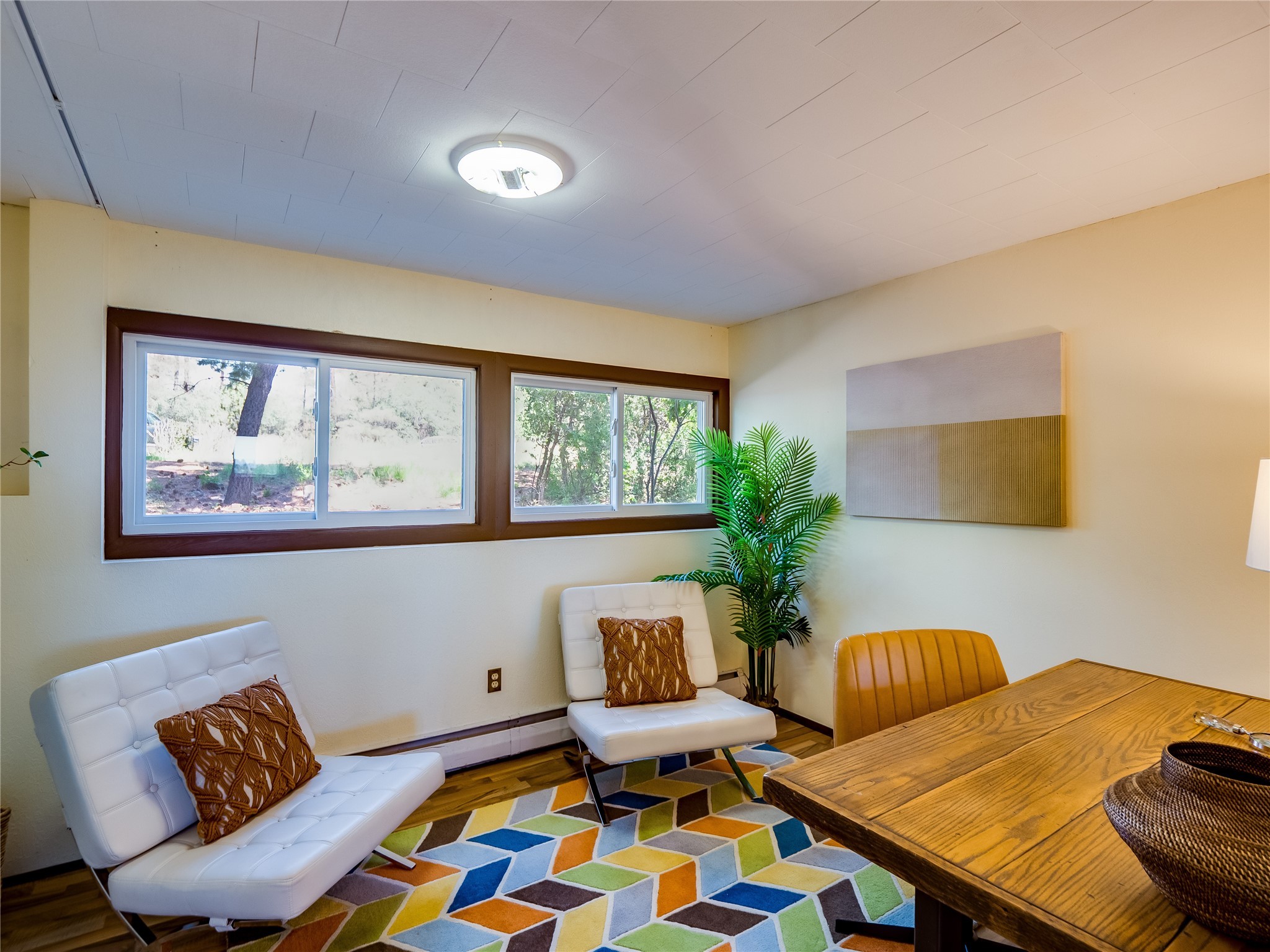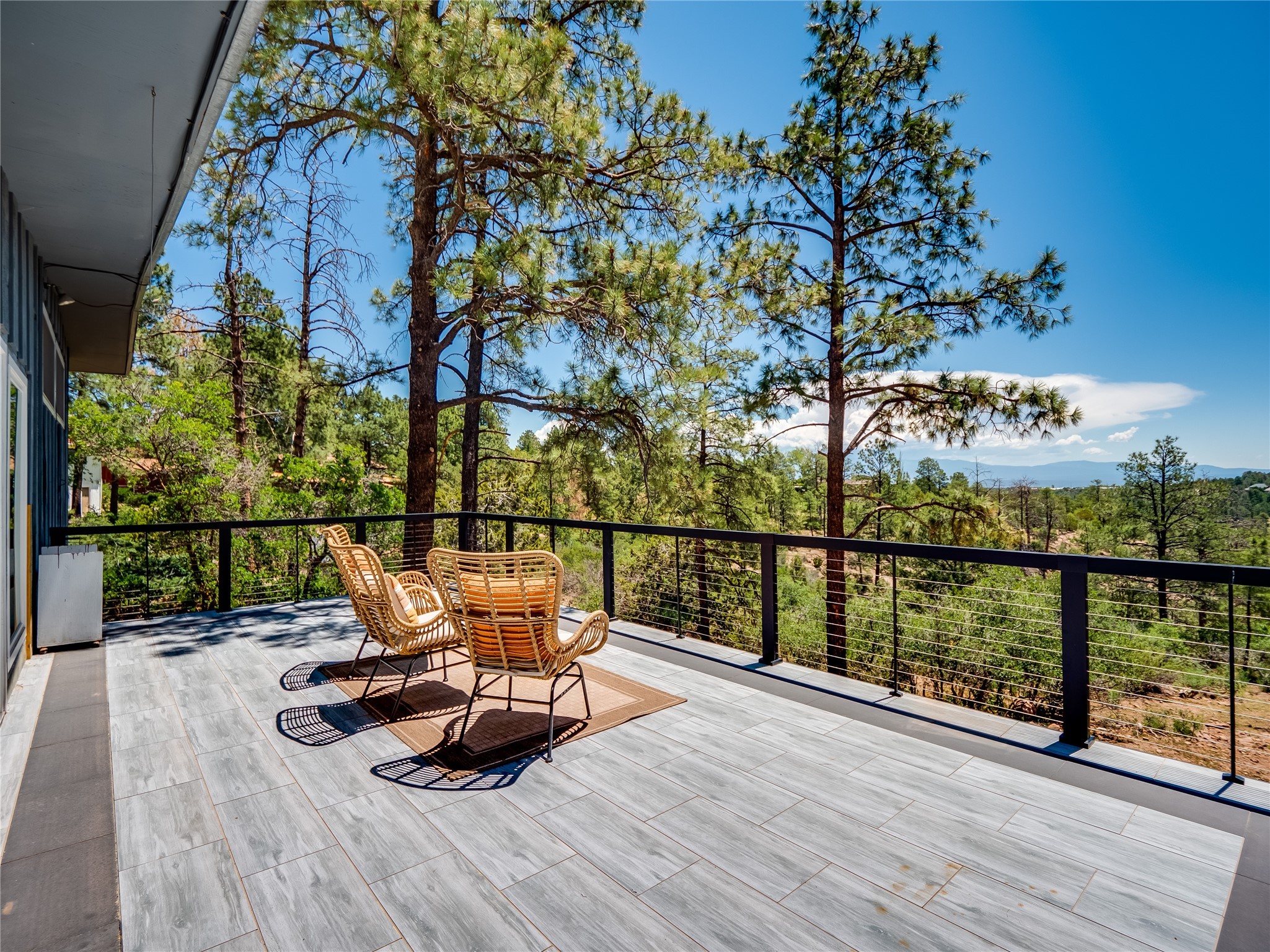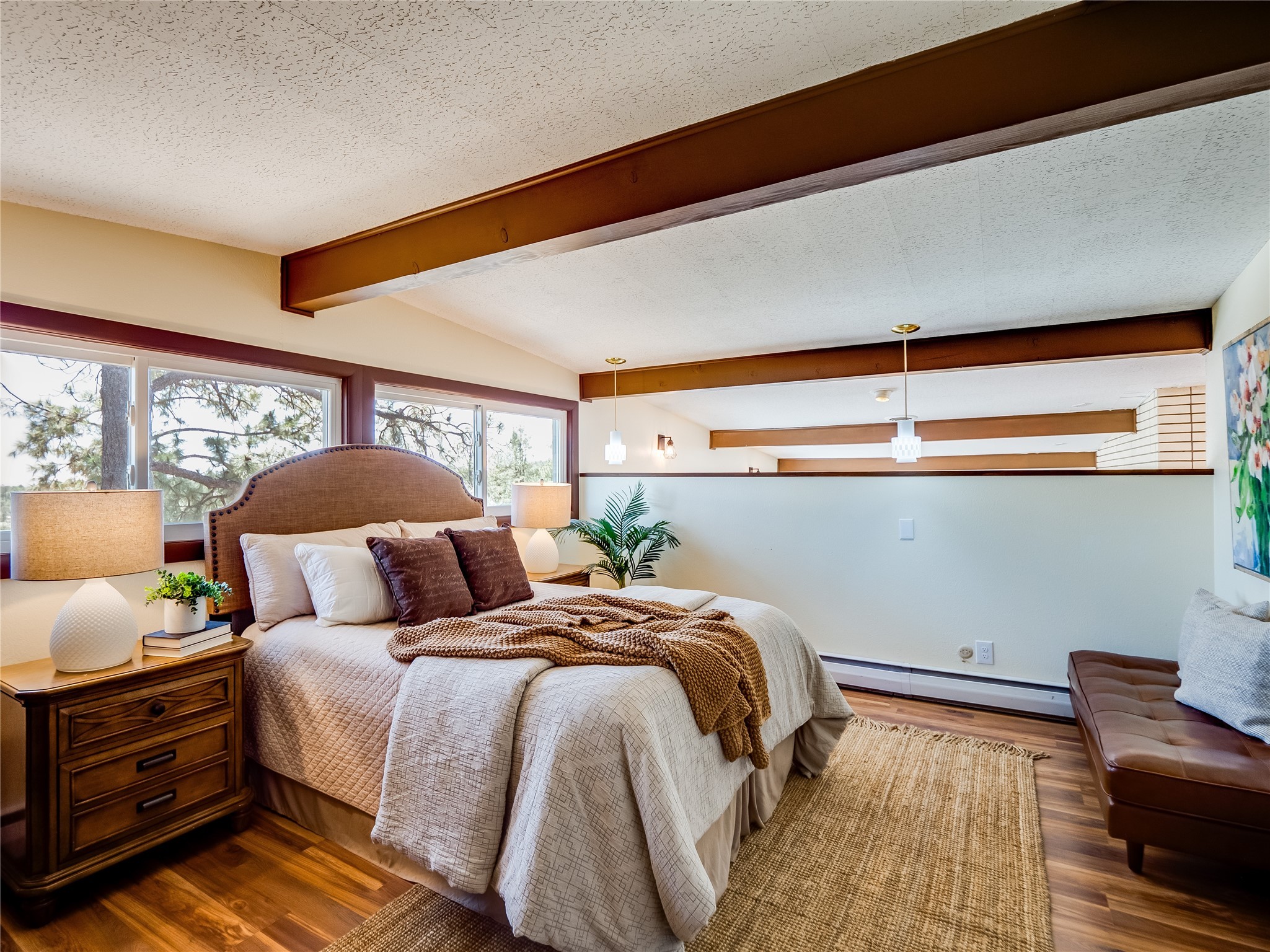 Nestled at the end of a quiet cul-de-sac in desirable Barranca Mesa, this multi-level canyon home offers space, privacy, and breathtaking views. Step inside and you are immediately drawn to the stunning open living and dining area with soaring vaulted ceilings with wood beams, warm laminate wood floors, and a wall of Anderson windows that flood the space with natural light. Two separate access points lead to multiple decks that overlook the canyon, creating a seamless indoor-outdoor flow perfect for entertaining with family and friends and taking in the serene surroundings. A cozy brick wood-burning fireplace anchors the room and adds charm to the main living space. The beautifully renovated galley-style kitchen features tile flooring, cream-colored shaker cabinets with black hardware, granite counters, and a stylish tile backsplash. Brand-new Caf brand appliances elevate the space, while a pantry and cozy breakfast nook offer function and flexibility. Off the kitchen, access the attached two-car garage for added convenience. Upstairs, you'll find a guest bedroom and a spacious loft-style primary bedroom that overlooks the living area below and includes multiple closets. The shared updated bathroom has a modern touch with a sleek single-sink vanity, walk-in shower, and backlit mirror. A few steps down reveals two more bedrooms and a second full bath with vintage-style blue tile, walk-in shower, and another light-up mirror. The lowest level features a spacious walk-out basement family room with a wall of windows, access to the large covered patio, a rustic stone wood-burning fireplace, and eye-catching tin ceilings. This level also includes a laundry room with additional storage, plus a separate storage room. Outside, the oversized backyard extends to the canyon ridge, offering a blank canvas to create your dream outdoor oasis. Located close to hiking trails, the golf course, and outdoor recreation, this one-of-a-kind home is perfect for nature lovers.