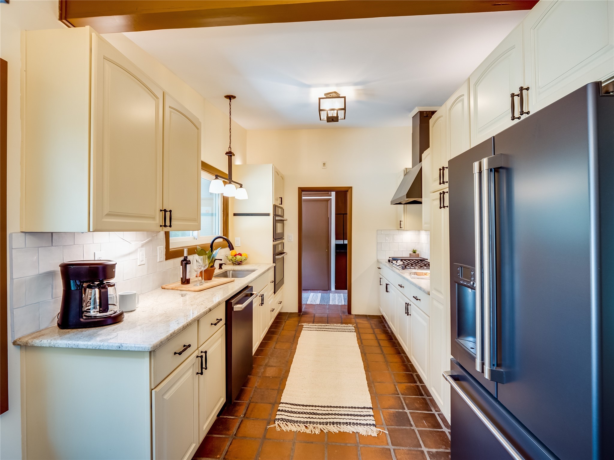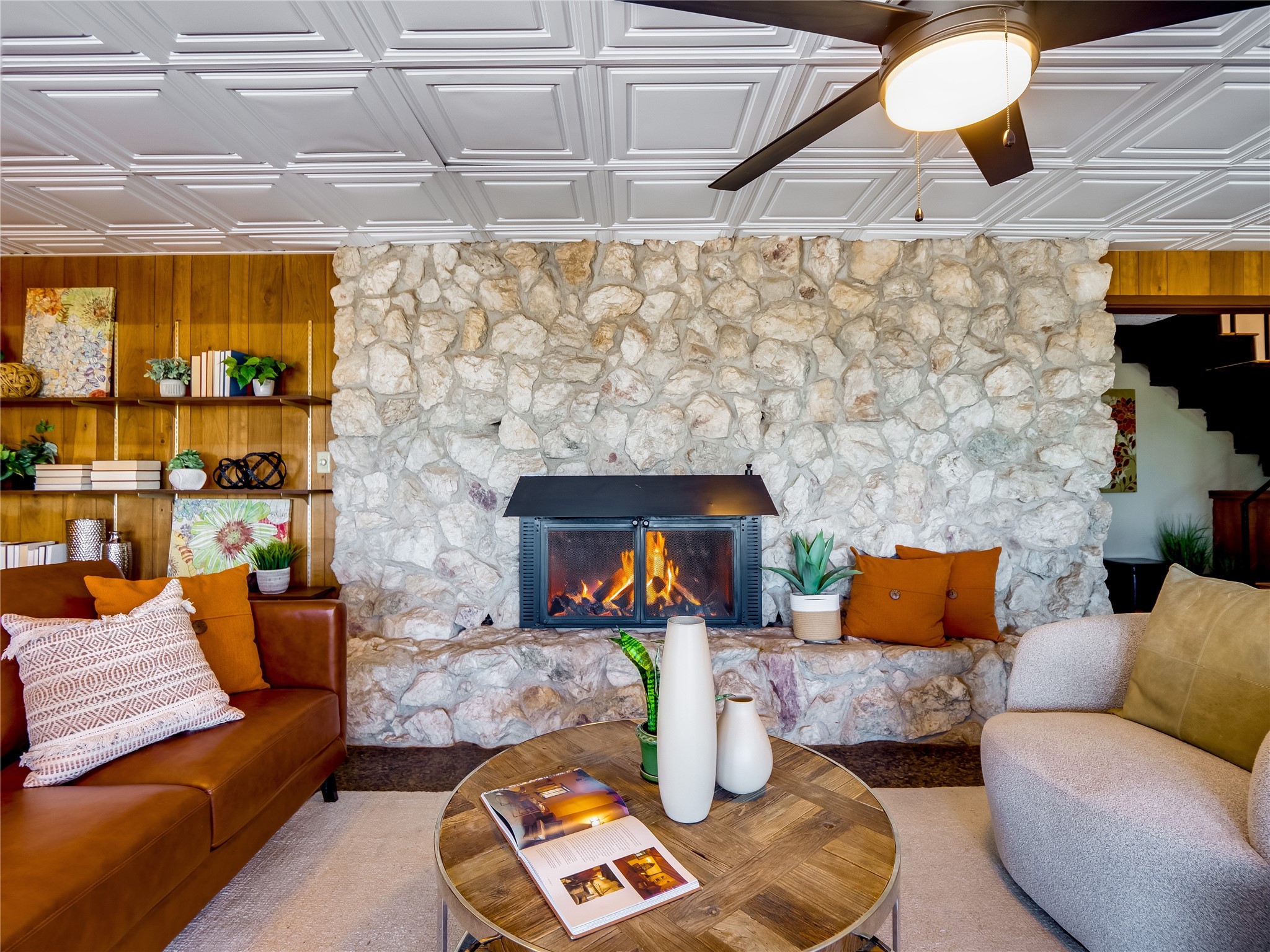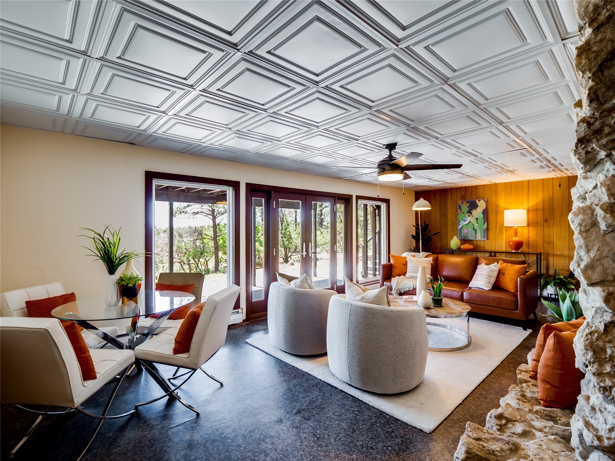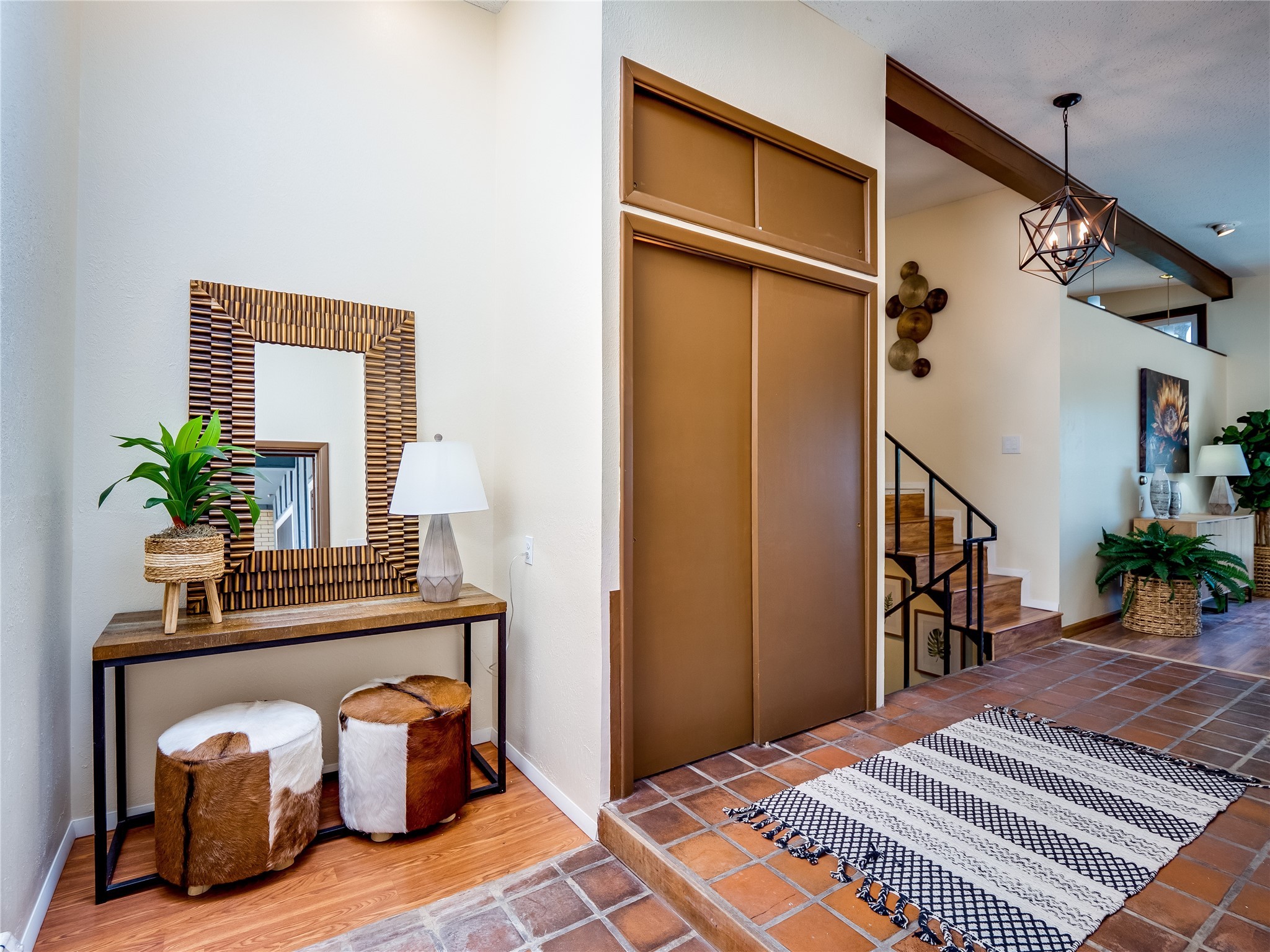 Nestled at the end of a quiet cul-de-sac in desirable Barranca Mesa, this multi-level canyon home offers space, privacy, and breathtaking views. Step inside and you are immediately drawn to the stunning open living and dining area with soaring vaulted ceilings with wood beams, warm laminate wood floors, and a wall of Anderson windows that flood the space with natural light. Two separate access points lead to multiple decks that overlook the canyon, creating a seamless indoor-outdoor flow perfect for entertaining with family and friends and taking in the serene surroundings. A cozy brick wood-burning fireplace anchors the room and adds charm to the main living space. The beautifully renovated galley-style kitchen features tile flooring, cream-colored shaker cabinets with black hardware, granite counters, and a stylish tile backsplash. Brand-new Caf brand appliances elevate the space, while a pantry and cozy breakfast nook offer function and flexibility. Off the kitchen, access the attached two-car garage for added convenience. Upstairs, you'll find a guest bedroom and a spacious loft-style primary bedroom that overlooks the living area below and includes multiple closets. The shared updated bathroom has a modern touch with a sleek single-sink vanity, walk-in shower, and backlit mirror. A few steps down reveals two more bedrooms and a second full bath with vintage-style blue tile, walk-in shower, and another light-up mirror. The lowest level features a spacious walk-out basement family room with a wall of windows, access to the large covered patio, a rustic stone wood-burning fireplace, and eye-catching tin ceilings. This level also includes a laundry room with additional storage, plus a separate storage room. Outside, the oversized backyard extends to the canyon ridge, offering a blank canvas to create your dream outdoor oasis. Located close to hiking trails, the golf course, and outdoor recreation, this one-of-a-kind home is perfect for nature lovers.