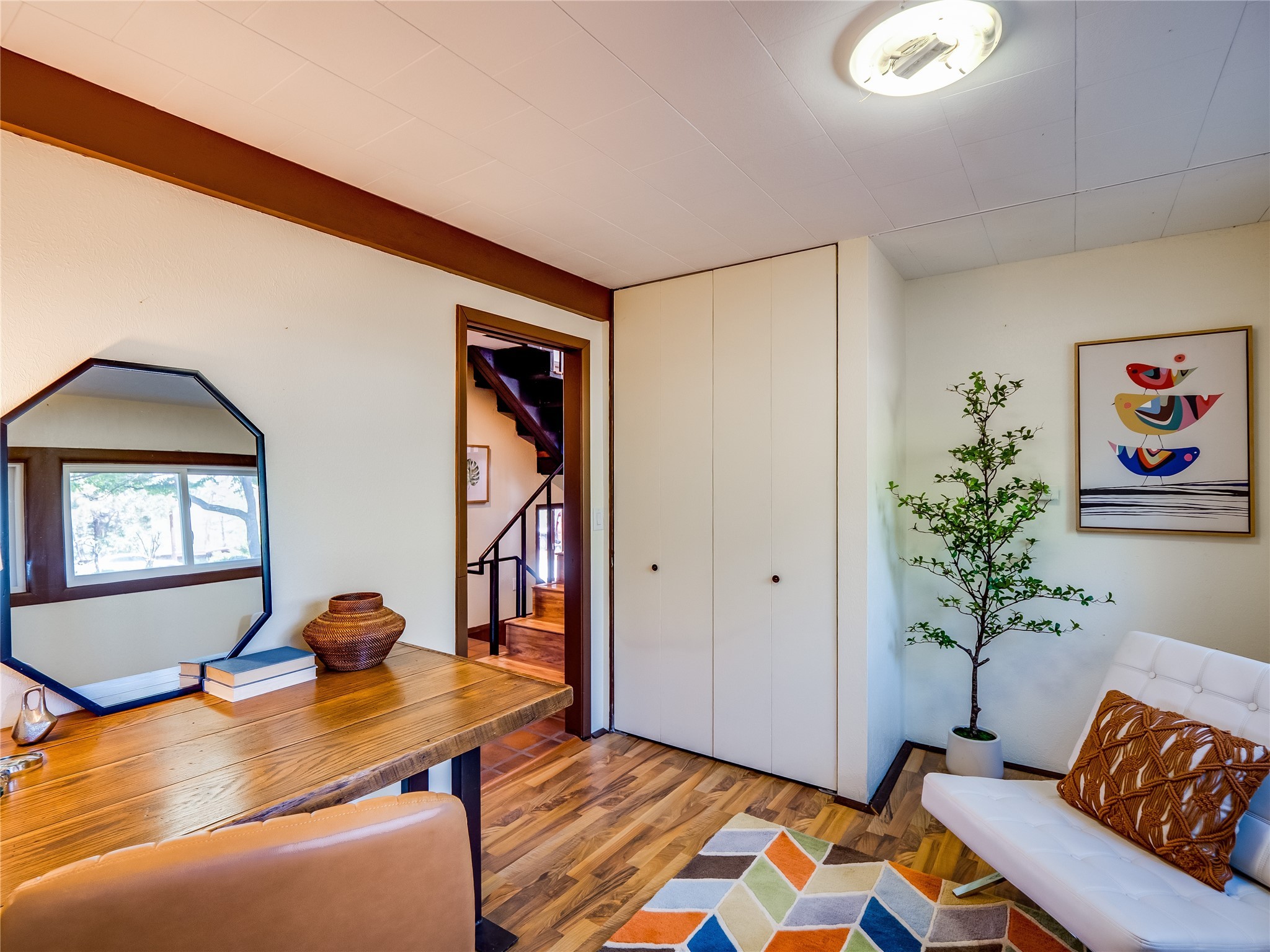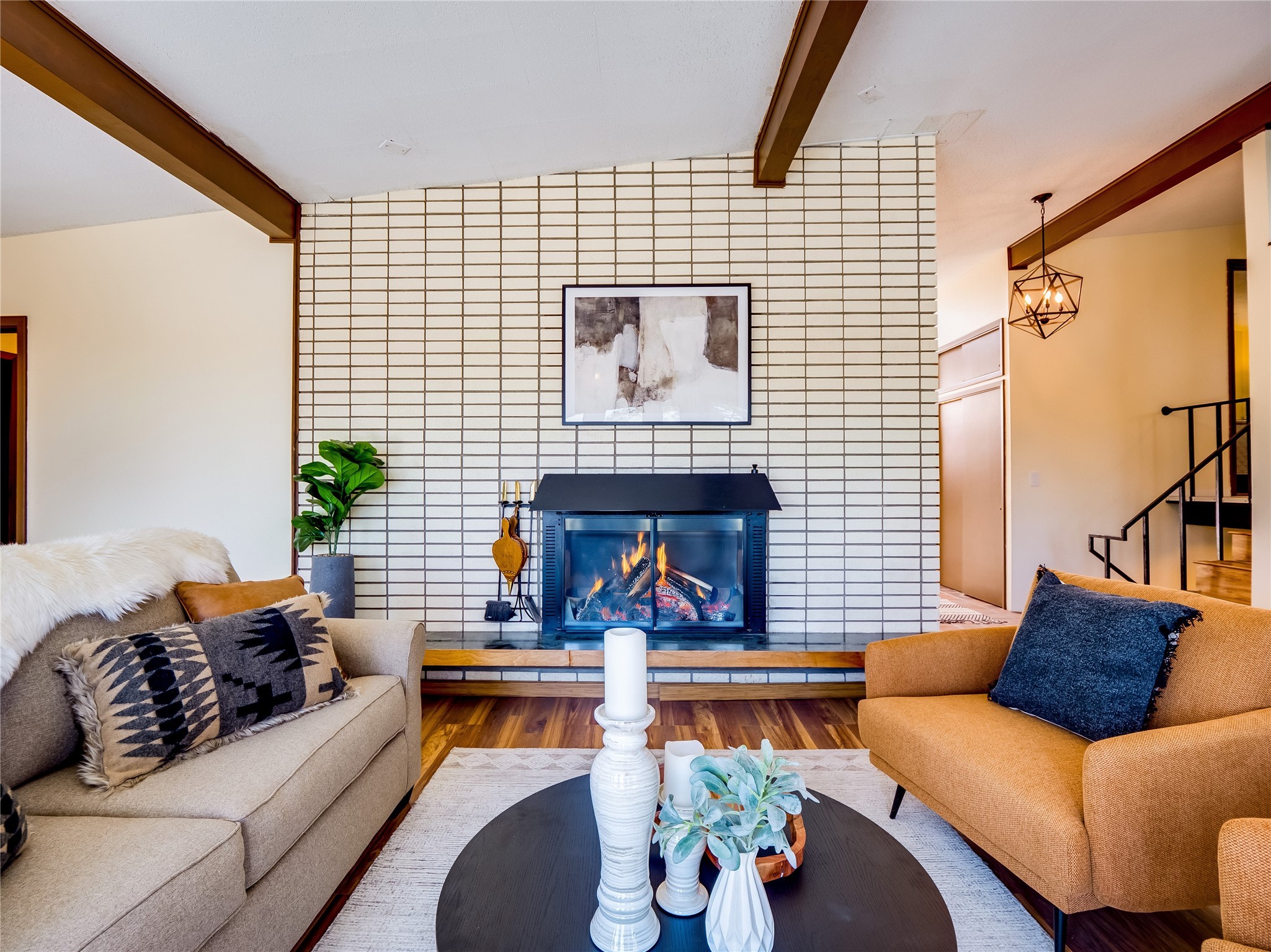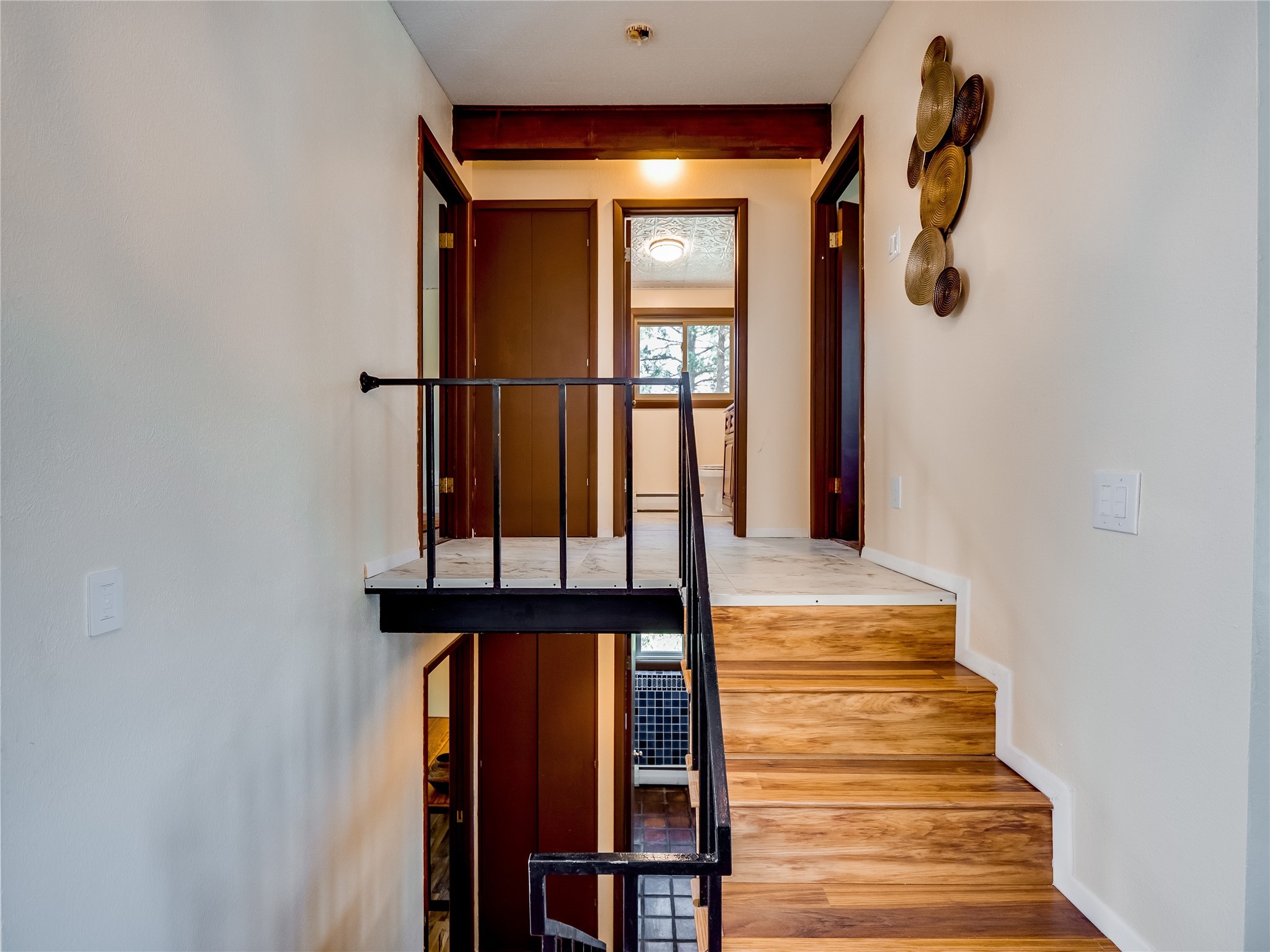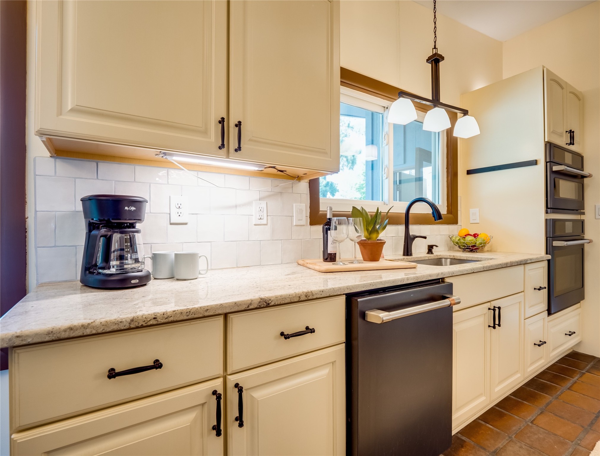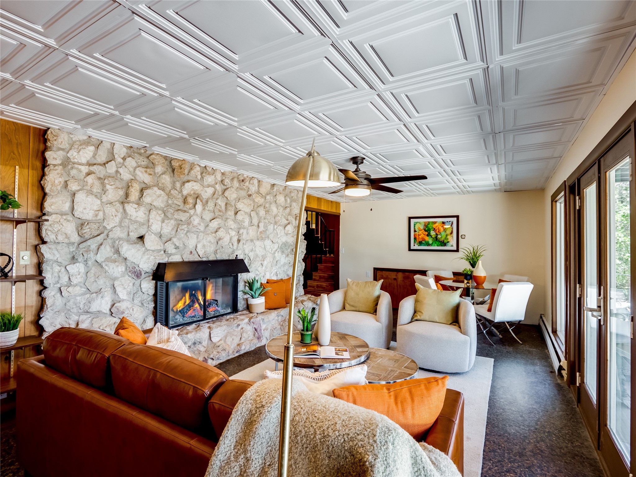 Nestled at the end of a quiet cul-de-sac in desirable Barranca Mesa, this multi-level canyon home offers space, privacy, and breathtaking views. Step inside and you are immediately drawn to the stunning open living and dining area with soaring vaulted ceilings with wood beams, warm laminate wood floors, and a wall of Anderson windows that flood the space with natural light. Two separate access points lead to multiple decks that overlook the canyon, creating a seamless indoor-outdoor flow perfect for entertaining with family and friends and taking in the serene surroundings. A cozy brick wood-burning fireplace anchors the room and adds charm to the main living space. The beautifully renovated galley-style kitchen features tile flooring, cream-colored shaker cabinets with black hardware, granite counters, and a stylish tile backsplash. Brand-new Caf brand appliances elevate the space, while a pantry and cozy breakfast nook offer function and flexibility. Off the kitchen, access the attached two-car garage for added convenience. Upstairs, you'll find a guest bedroom and a spacious loft-style primary bedroom that overlooks the living area below and includes multiple closets. The shared updated bathroom has a modern touch with a sleek single-sink vanity, walk-in shower, and backlit mirror. A few steps down reveals two more bedrooms and a second full bath with vintage-style blue tile, walk-in shower, and another light-up mirror. The lowest level features a spacious walk-out basement family room with a wall of windows, access to the large covered patio, a rustic stone wood-burning fireplace, and eye-catching tin ceilings. This level also includes a laundry room with additional storage, plus a separate storage room. Outside, the oversized backyard extends to the canyon ridge, offering a blank canvas to create your dream outdoor oasis. Located close to hiking trails, the golf course, and outdoor recreation, this one-of-a-kind home is perfect for nature lovers.