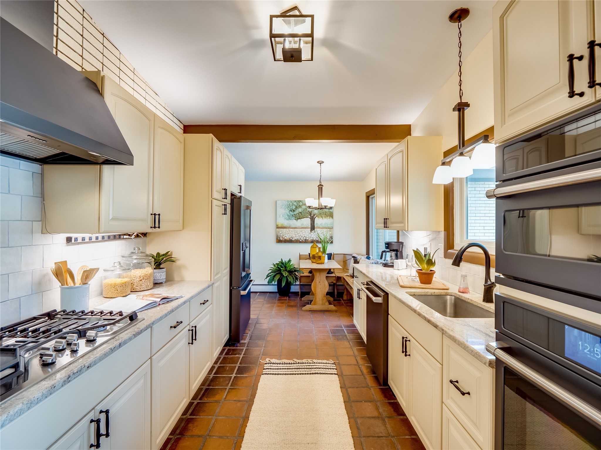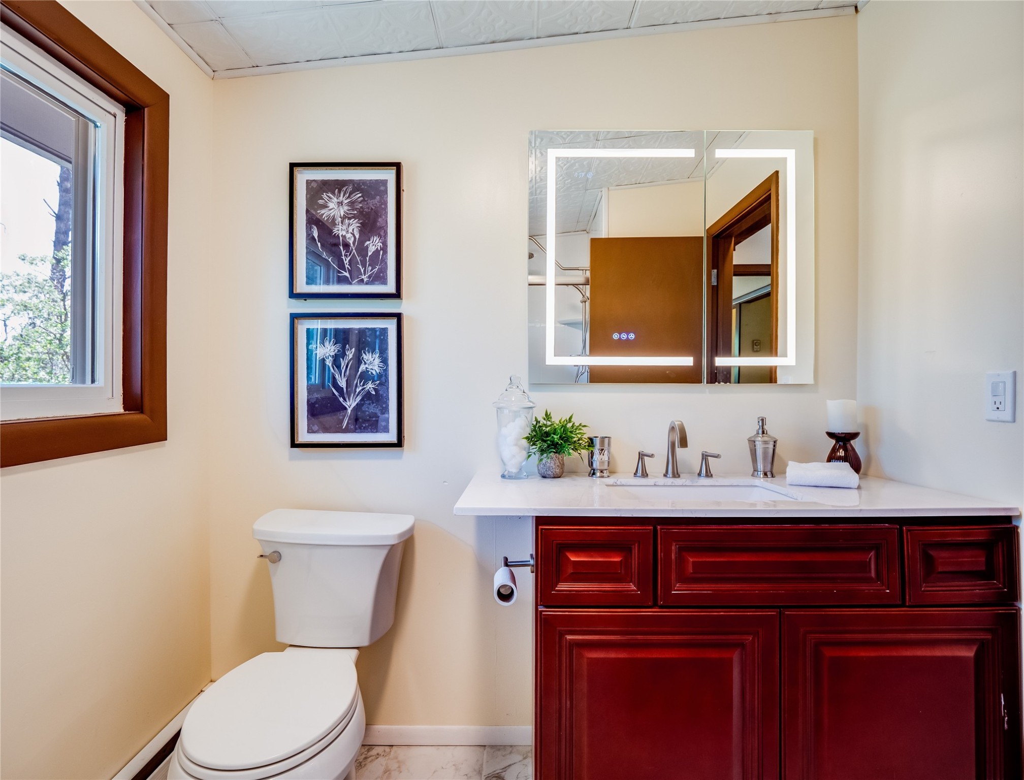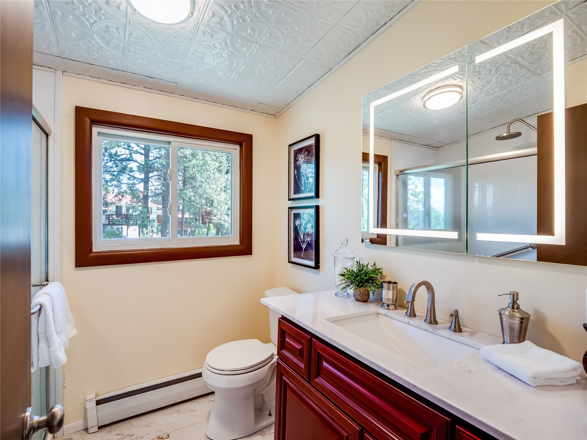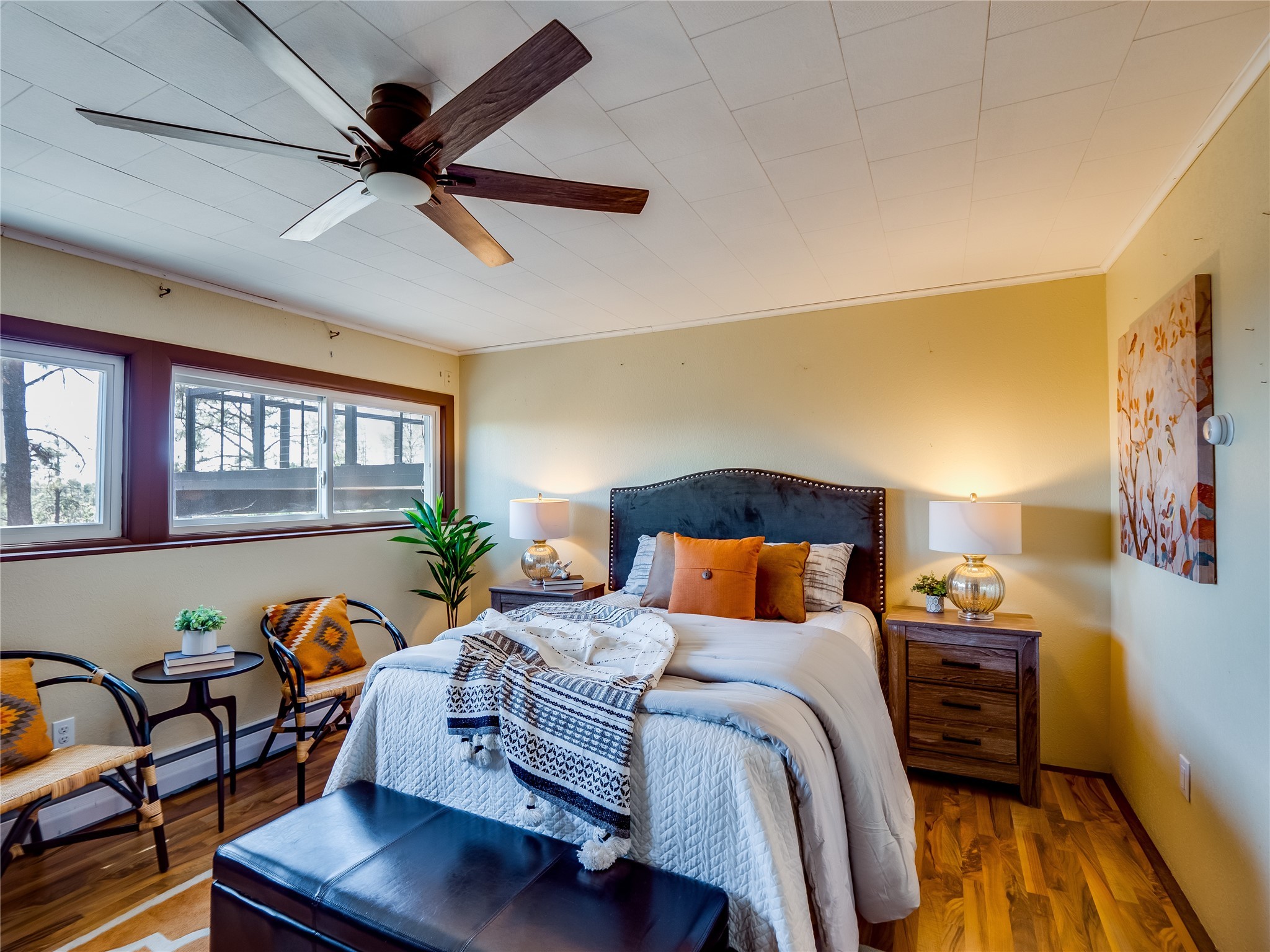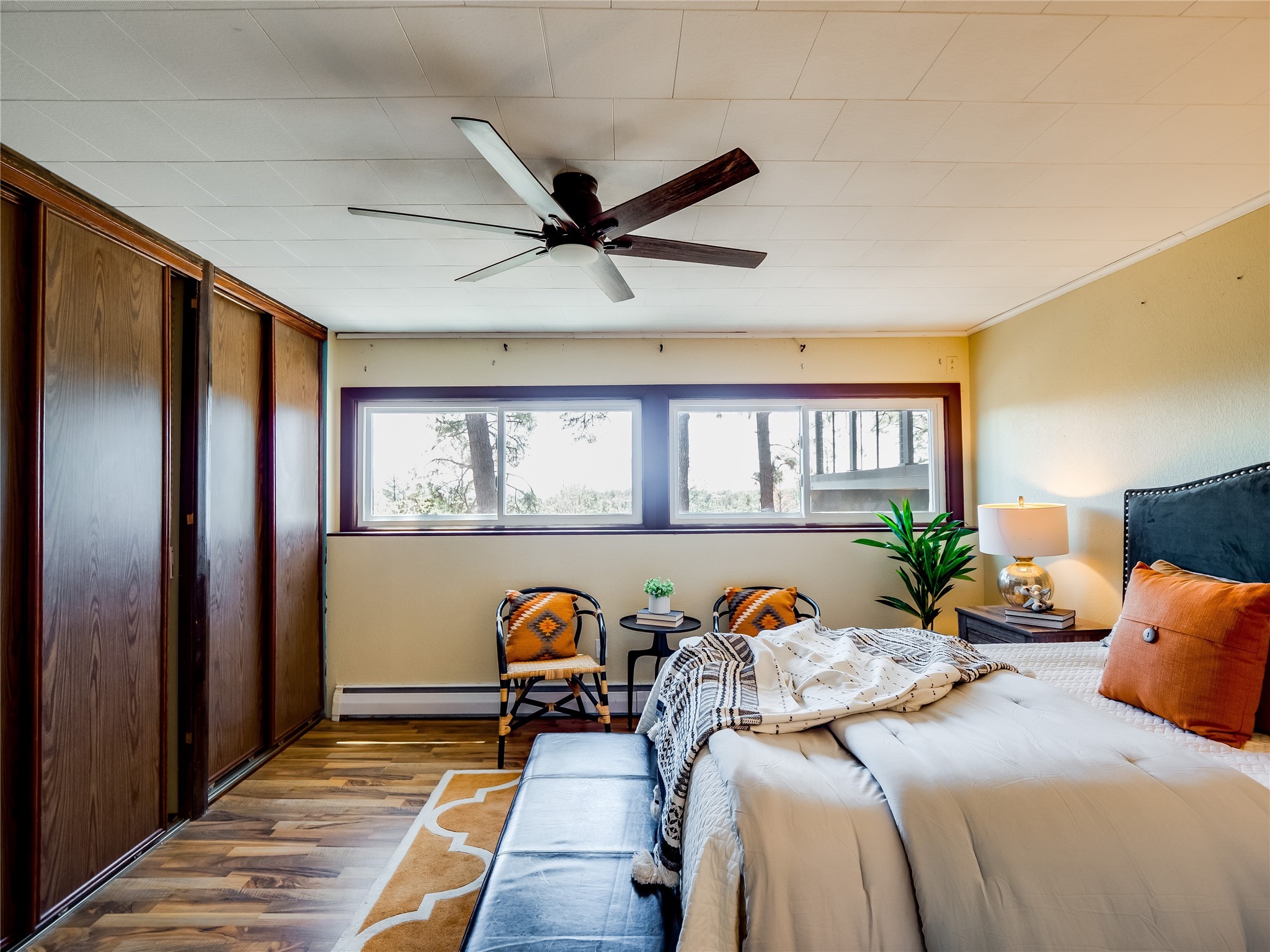 Nestled at the end of a quiet cul-de-sac in desirable Barranca Mesa, this multi-level canyon home offers space, privacy, and breathtaking views. Step inside and you are immediately drawn to the stunning open living and dining area with soaring vaulted ceilings with wood beams, warm laminate wood floors, and a wall of Anderson windows that flood the space with natural light. Two separate access points lead to multiple decks that overlook the canyon, creating a seamless indoor-outdoor flow perfect for entertaining with family and friends and taking in the serene surroundings. A cozy brick wood-burning fireplace anchors the room and adds charm to the main living space. The beautifully renovated galley-style kitchen features tile flooring, cream-colored shaker cabinets with black hardware, granite counters, and a stylish tile backsplash. Brand-new Caf brand appliances elevate the space, while a pantry and cozy breakfast nook offer function and flexibility. Off the kitchen, access the attached two-car garage for added convenience. Upstairs, you'll find a guest bedroom and a spacious loft-style primary bedroom that overlooks the living area below and includes multiple closets. The shared updated bathroom has a modern touch with a sleek single-sink vanity, walk-in shower, and backlit mirror. A few steps down reveals two more bedrooms and a second full bath with vintage-style blue tile, walk-in shower, and another light-up mirror. The lowest level features a spacious walk-out basement family room with a wall of windows, access to the large covered patio, a rustic stone wood-burning fireplace, and eye-catching tin ceilings. This level also includes a laundry room with additional storage, plus a separate storage room. Outside, the oversized backyard extends to the canyon ridge, offering a blank canvas to create your dream outdoor oasis. Located close to hiking trails, the golf course, and outdoor recreation, this one-of-a-kind home is perfect for nature lovers.
