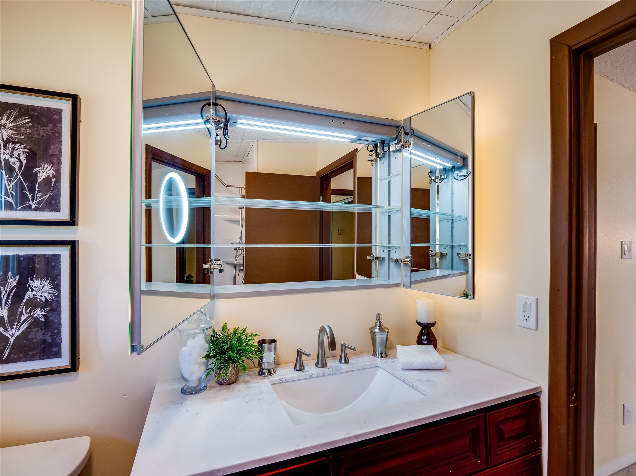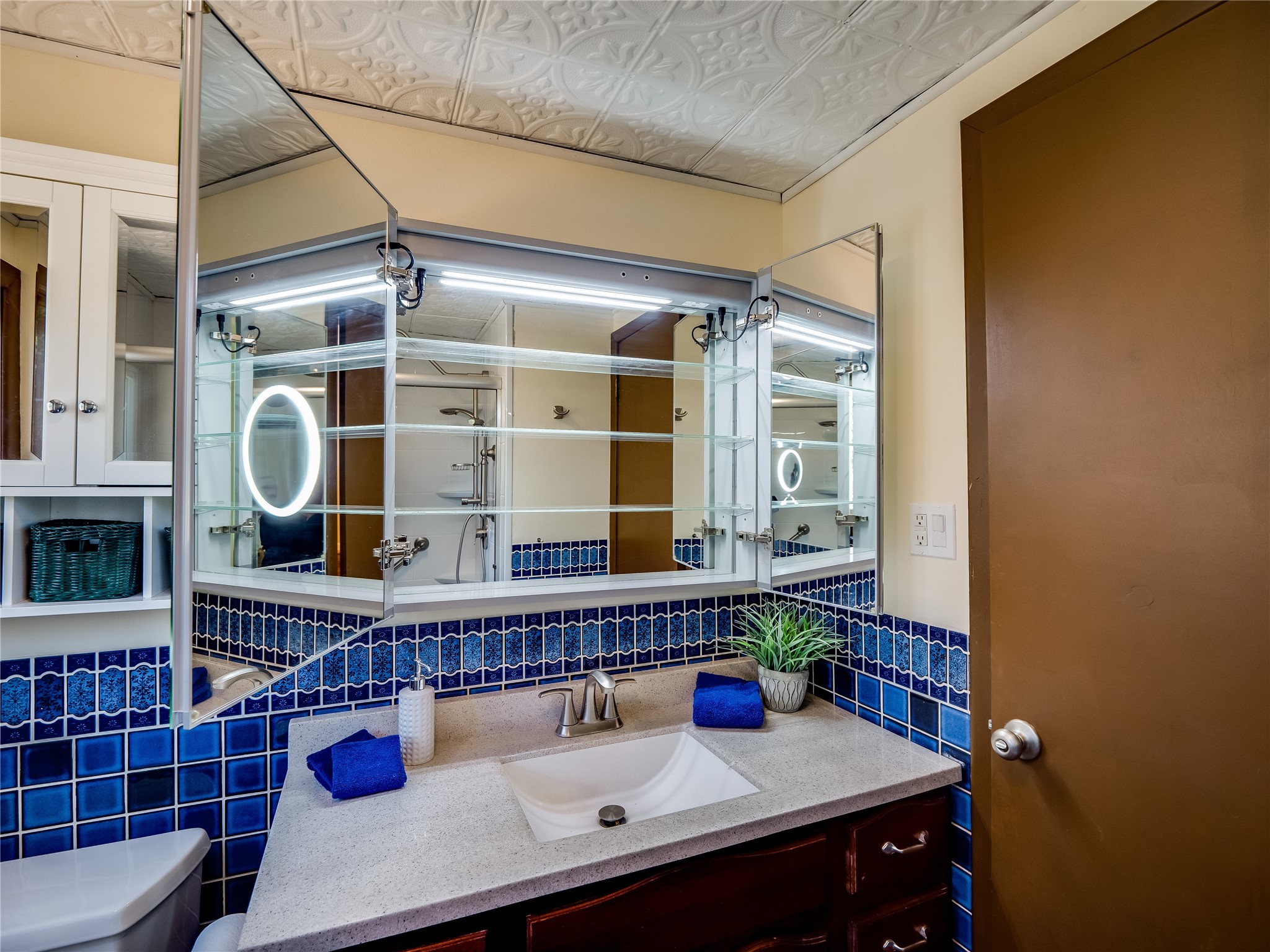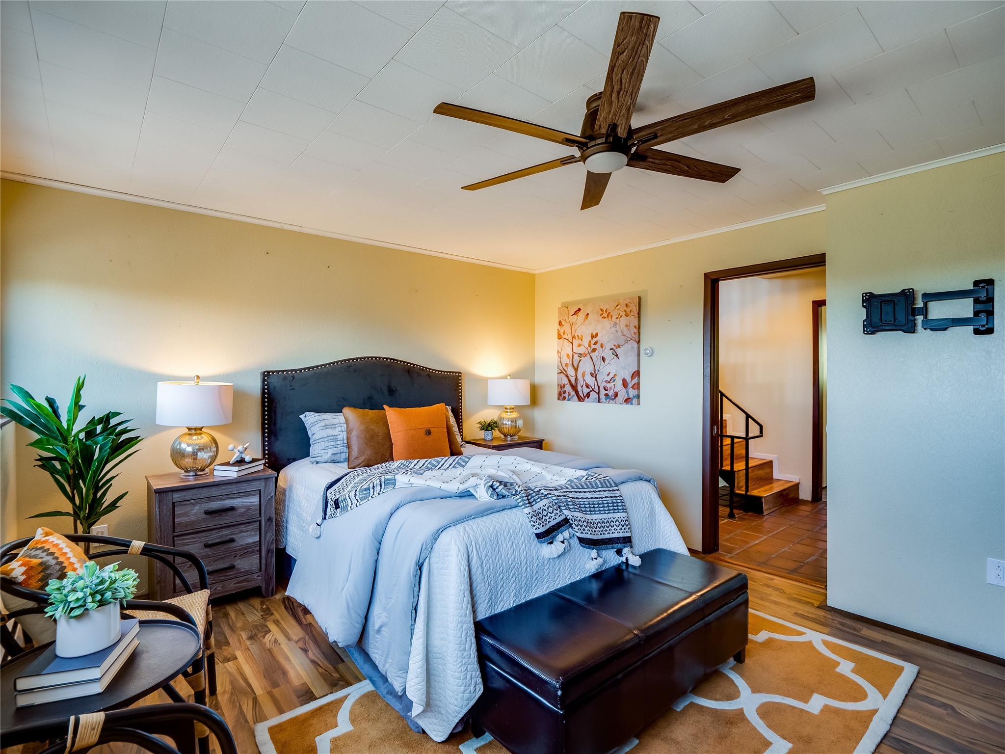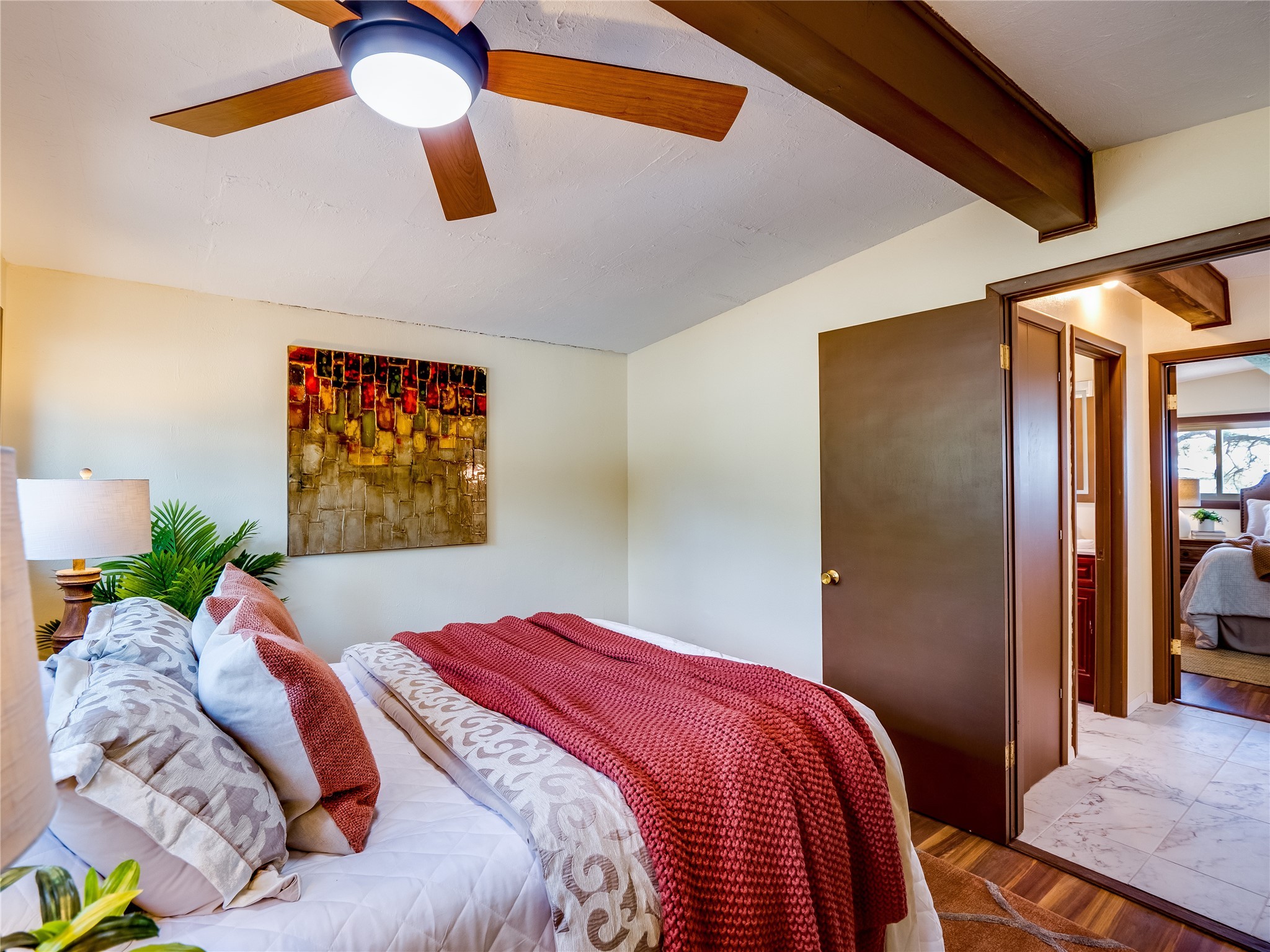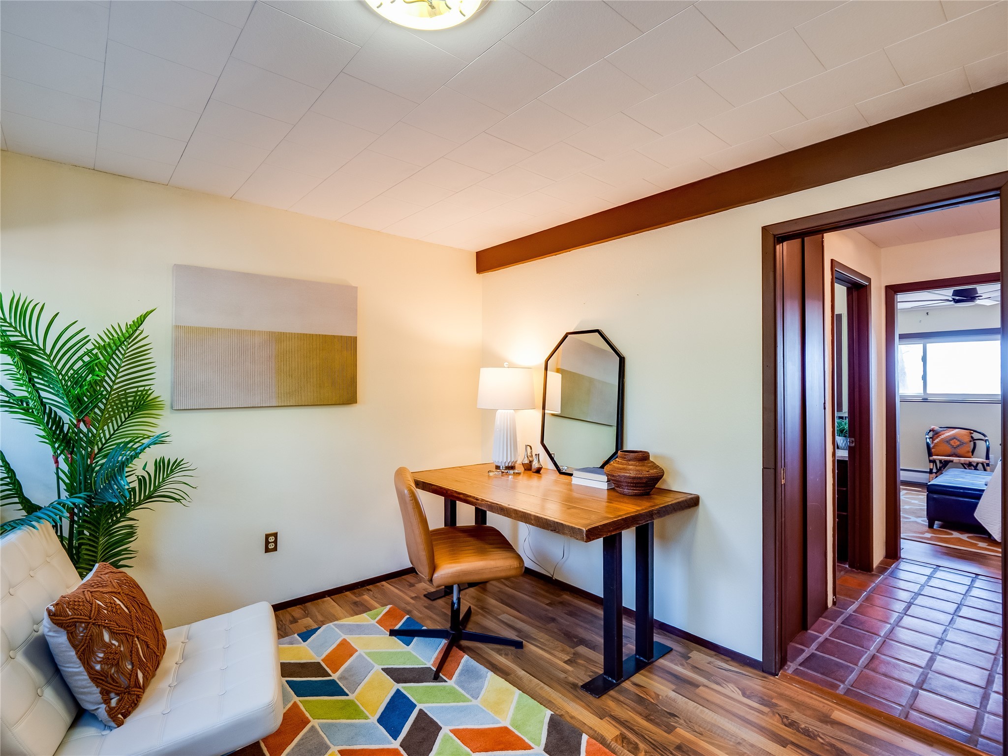 Nestled at the end of a quiet cul-de-sac in desirable Barranca Mesa, this multi-level canyon home offers space, privacy, and breathtaking views. Step inside and you are immediately drawn to the stunning open living and dining area with soaring vaulted ceilings with wood beams, warm laminate wood floors, and a wall of Anderson windows that flood the space with natural light. Two separate access points lead to multiple decks that overlook the canyon, creating a seamless indoor-outdoor flow perfect for entertaining with family and friends and taking in the serene surroundings. A cozy brick wood-burning fireplace anchors the room and adds charm to the main living space. The beautifully renovated galley-style kitchen features tile flooring, cream-colored shaker cabinets with black hardware, granite counters, and a stylish tile backsplash. Brand-new Caf brand appliances elevate the space, while a pantry and cozy breakfast nook offer function and flexibility. Off the kitchen, access the attached two-car garage for added convenience. Upstairs, you'll find a guest bedroom and a spacious loft-style primary bedroom that overlooks the living area below and includes multiple closets. The shared updated bathroom has a modern touch with a sleek single-sink vanity, walk-in shower, and backlit mirror. A few steps down reveals two more bedrooms and a second full bath with vintage-style blue tile, walk-in shower, and another light-up mirror. The lowest level features a spacious walk-out basement family room with a wall of windows, access to the large covered patio, a rustic stone wood-burning fireplace, and eye-catching tin ceilings. This level also includes a laundry room with additional storage, plus a separate storage room. Outside, the oversized backyard extends to the canyon ridge, offering a blank canvas to create your dream outdoor oasis. Located close to hiking trails, the golf course, and outdoor recreation, this one-of-a-kind home is perfect for nature lovers.