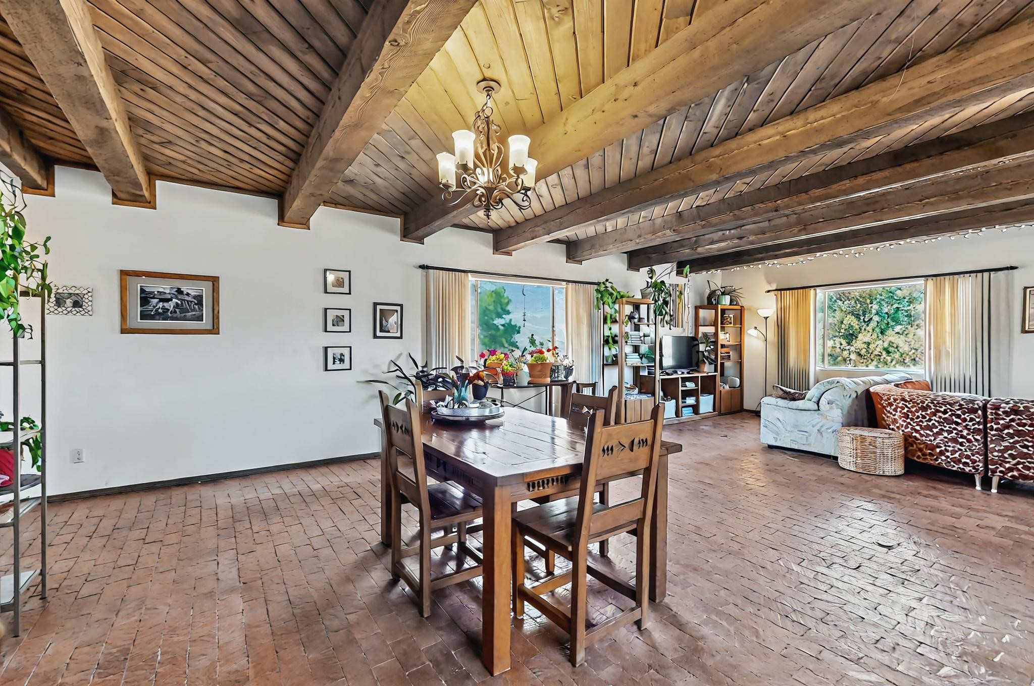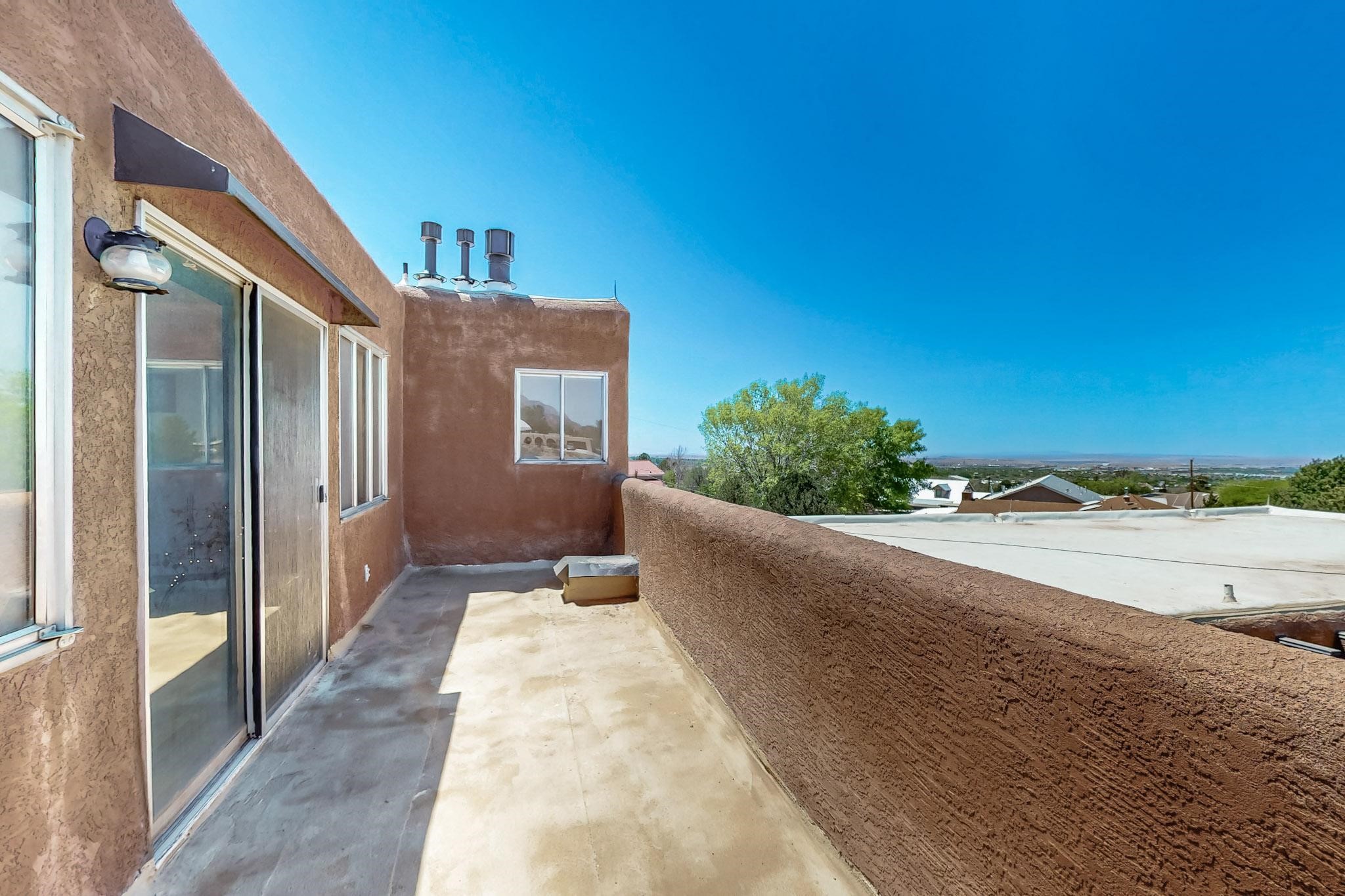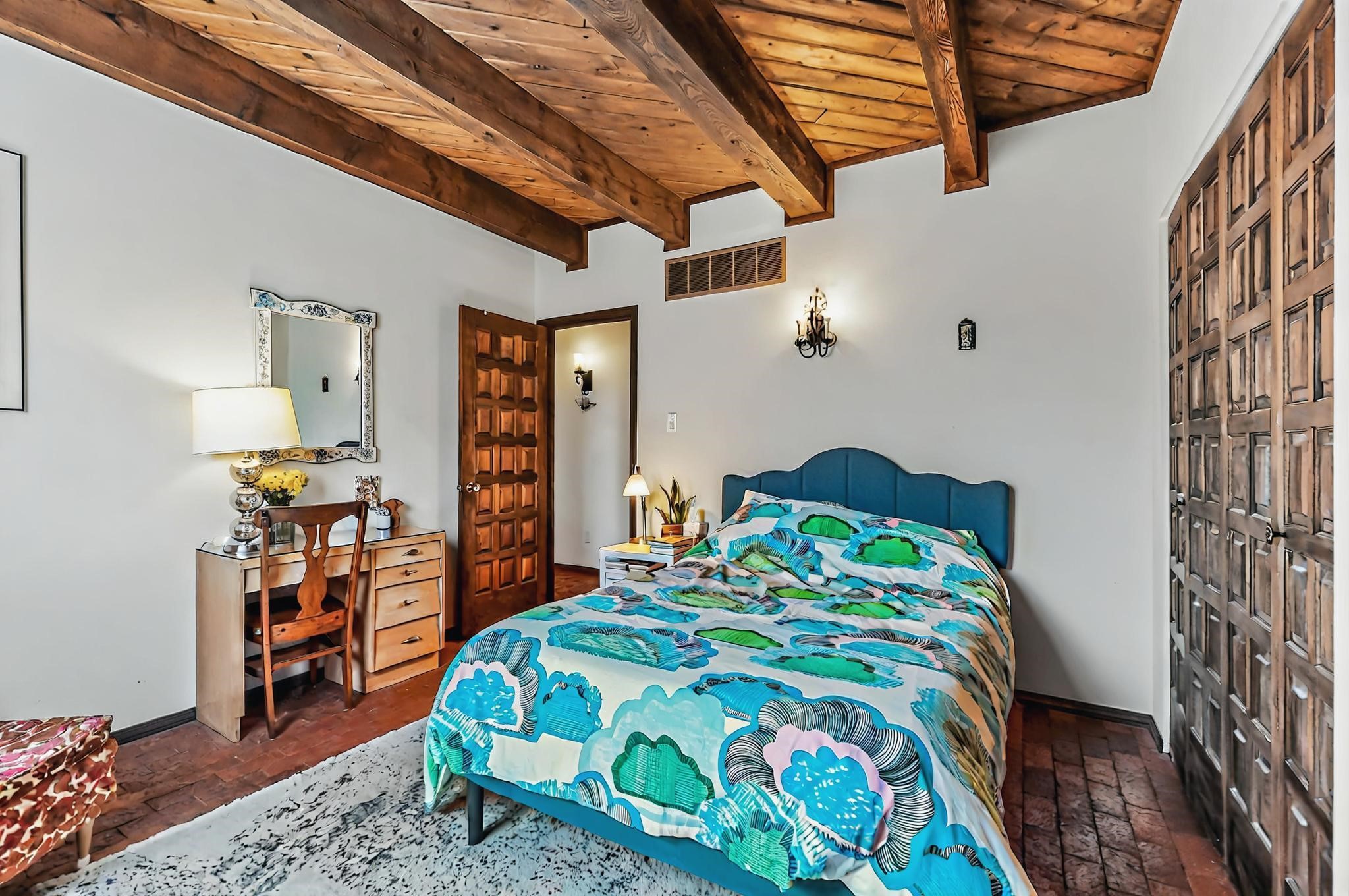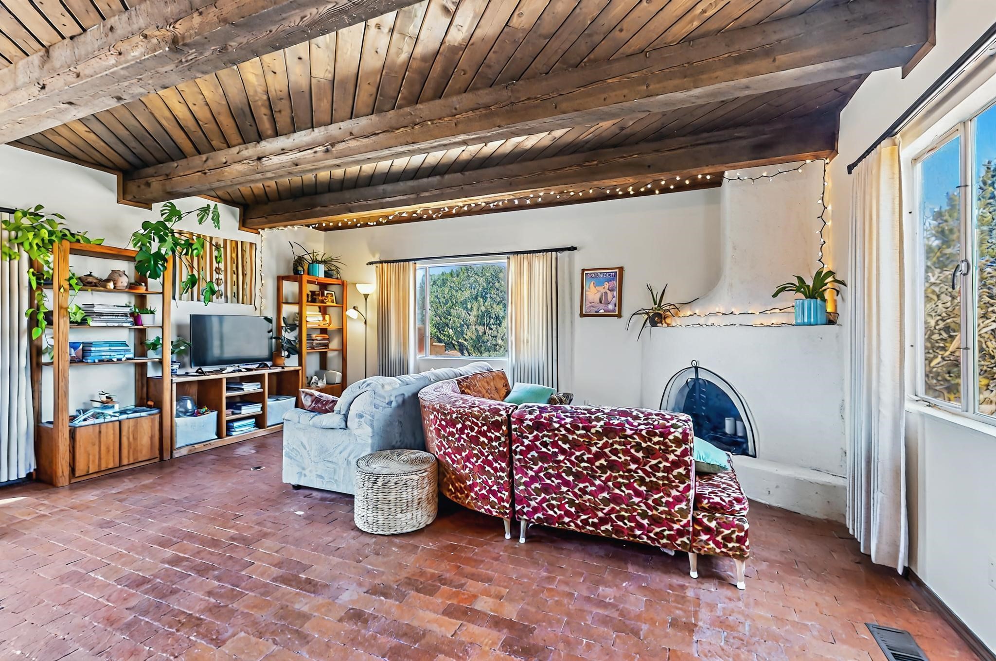 This spectacular custom home, located in the Foothills right across the street from Supper Rock park, is an absolute must see! Enjoy beautiful wood beams and tongue and groove ceilings throughout, two kiva fireplaces, incredible brick floors, extremely efficient insulation that provides cost savings in both winter and summer, plus fantastic views of Supper Rock and the Foothills from the balcony; and that's just the inside. Outside on the 1/3 acre corner lot, you get a second driveway and gate with backyard access. a lush corner grove with huge mature trees, an expanded garden area, and colorful and aromatic rose bushes! Also, a new TPO roof, new water heater, and the drip irrigation has been recently upgraded! Don't miss it, schedule your private tour today!