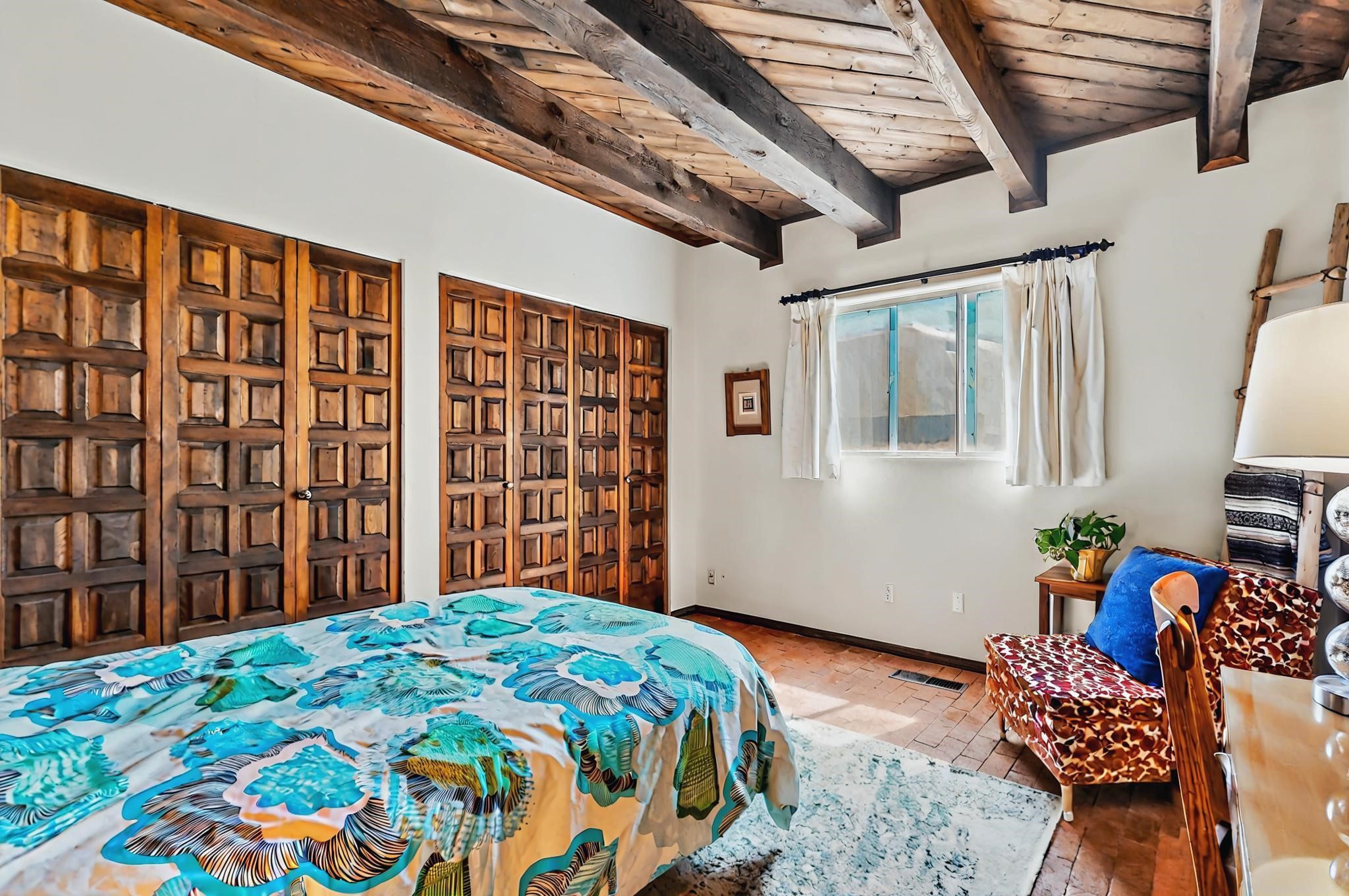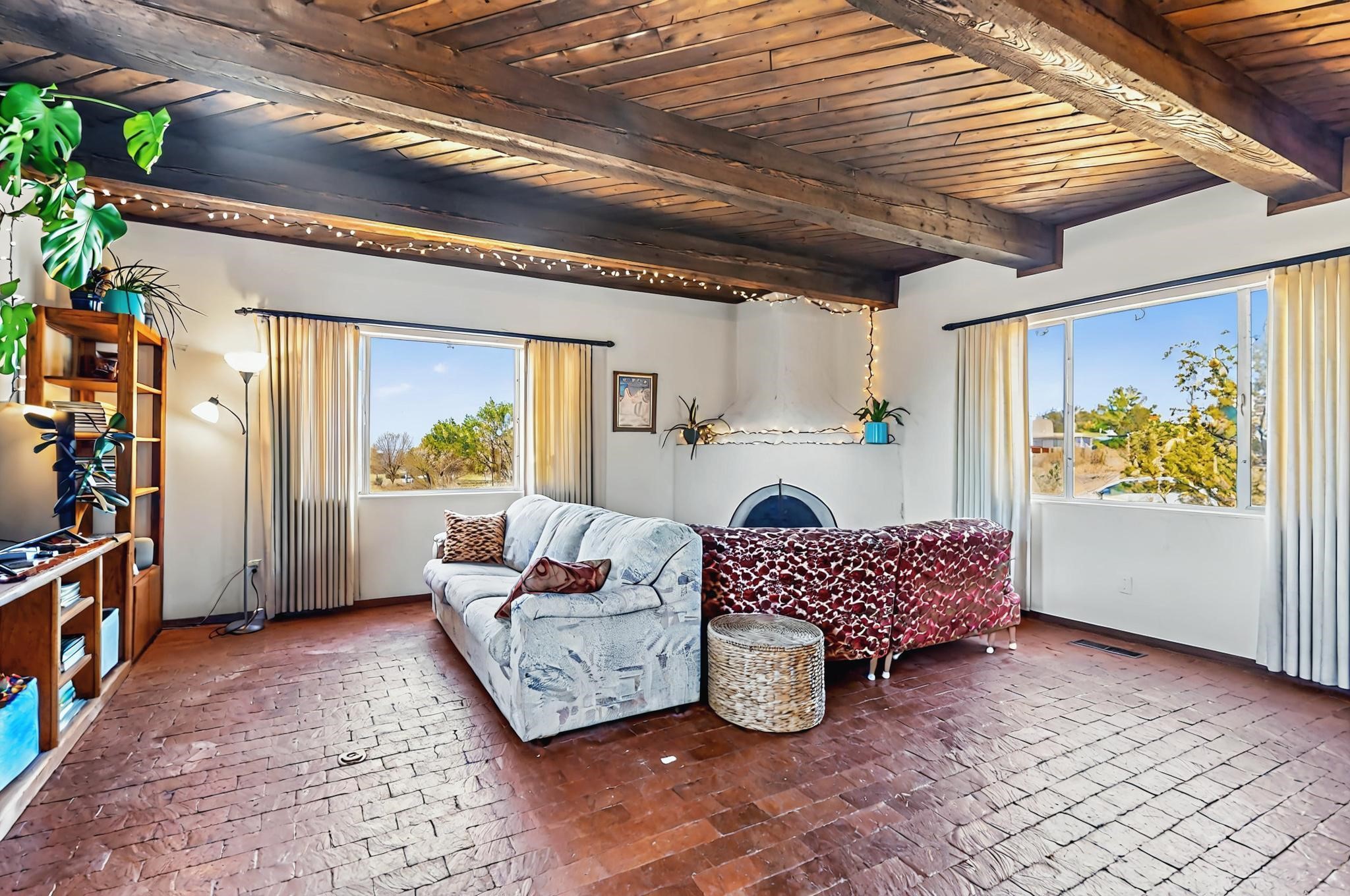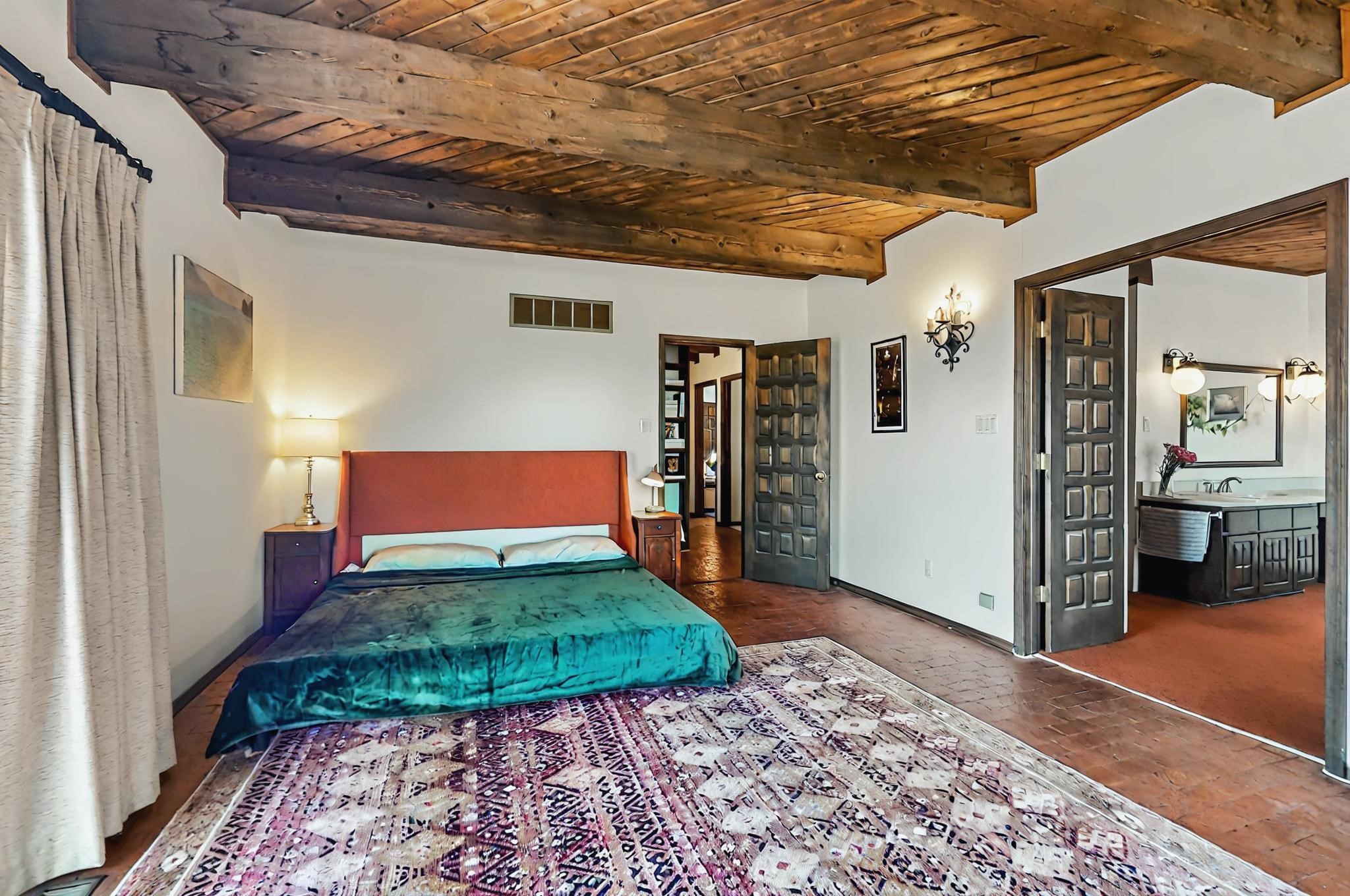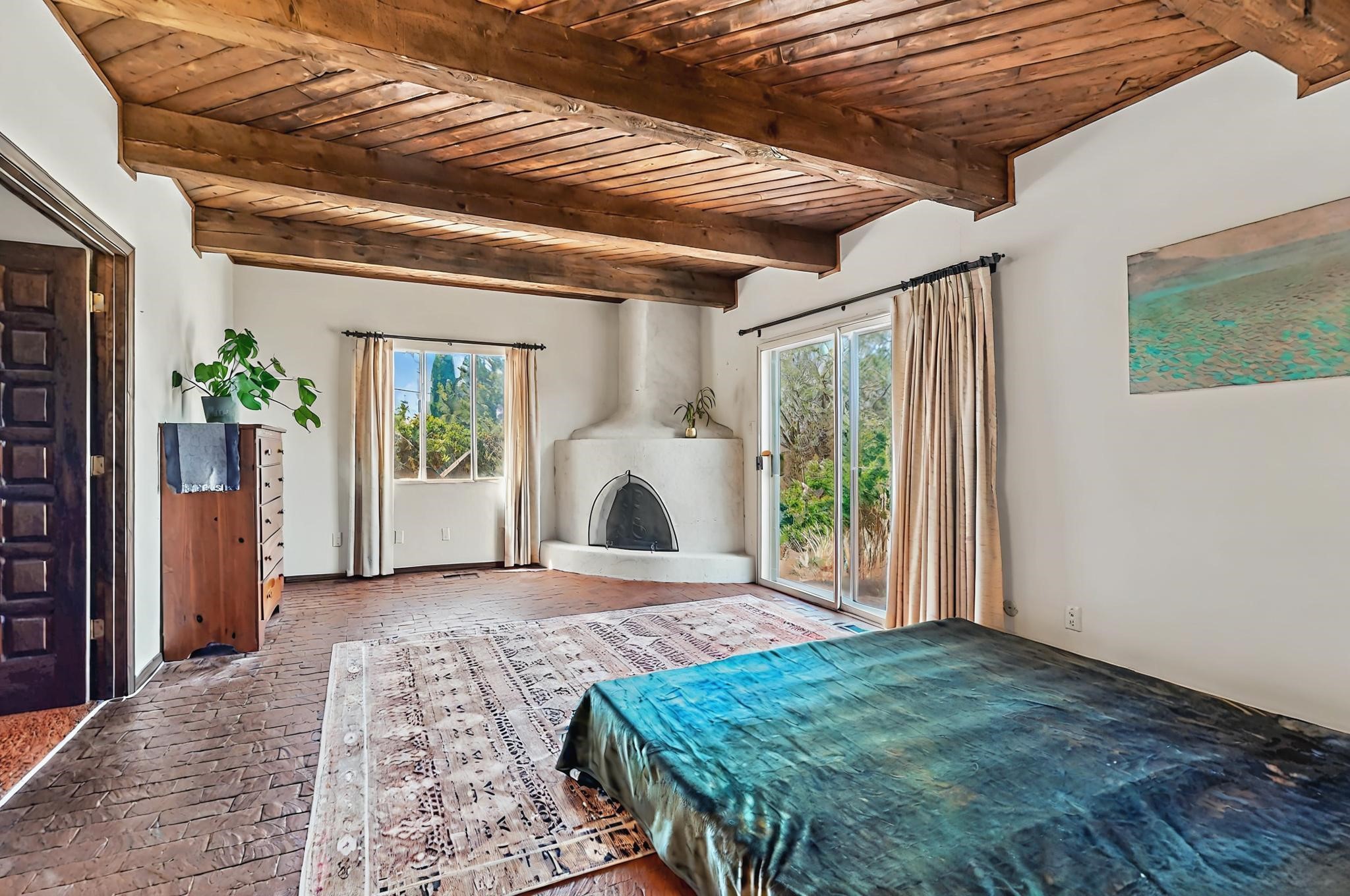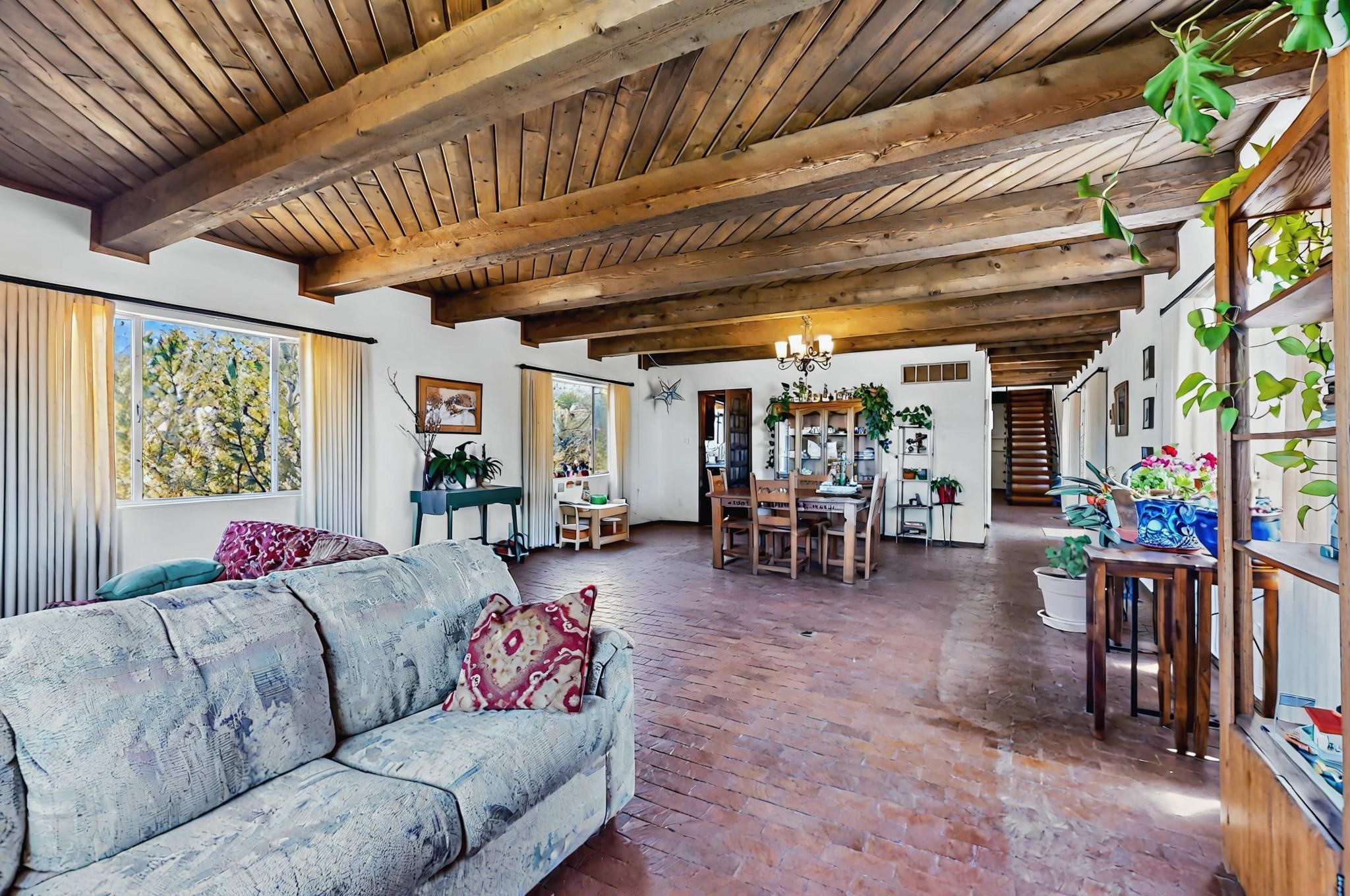 This spectacular custom home, located in the Foothills right across the street from Supper Rock park, is an absolute must see! Enjoy beautiful wood beams and tongue and groove ceilings throughout, two kiva fireplaces, incredible brick floors, extremely efficient insulation that provides cost savings in both winter and summer, plus fantastic views of Supper Rock and the Foothills from the balcony; and that's just the inside. Outside on the 1/3 acre corner lot, you get a second driveway and gate with backyard access. a lush corner grove with huge mature trees, an expanded garden area, and colorful and aromatic rose bushes! Also, a new TPO roof, new water heater, and the drip irrigation has been recently upgraded! Don't miss it, schedule your private tour today!