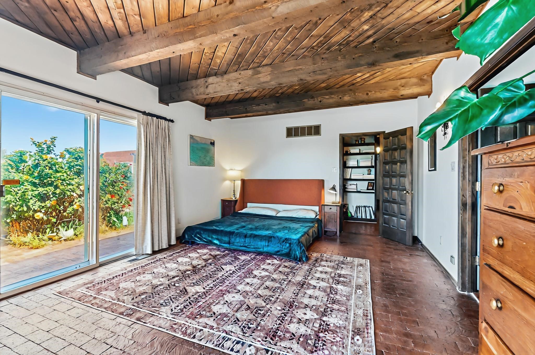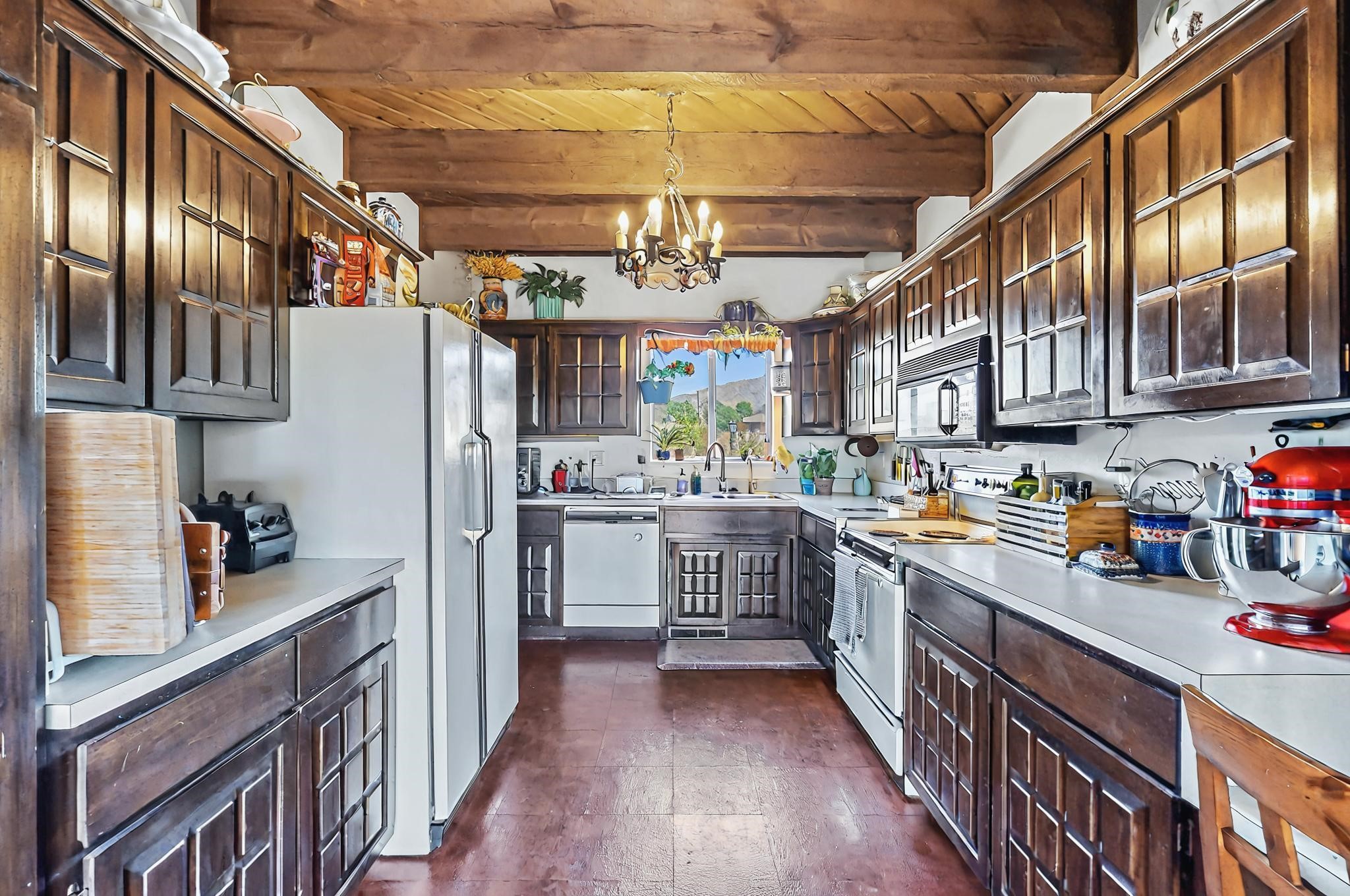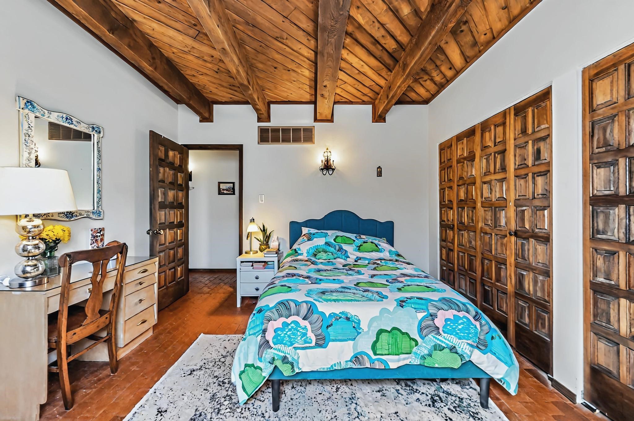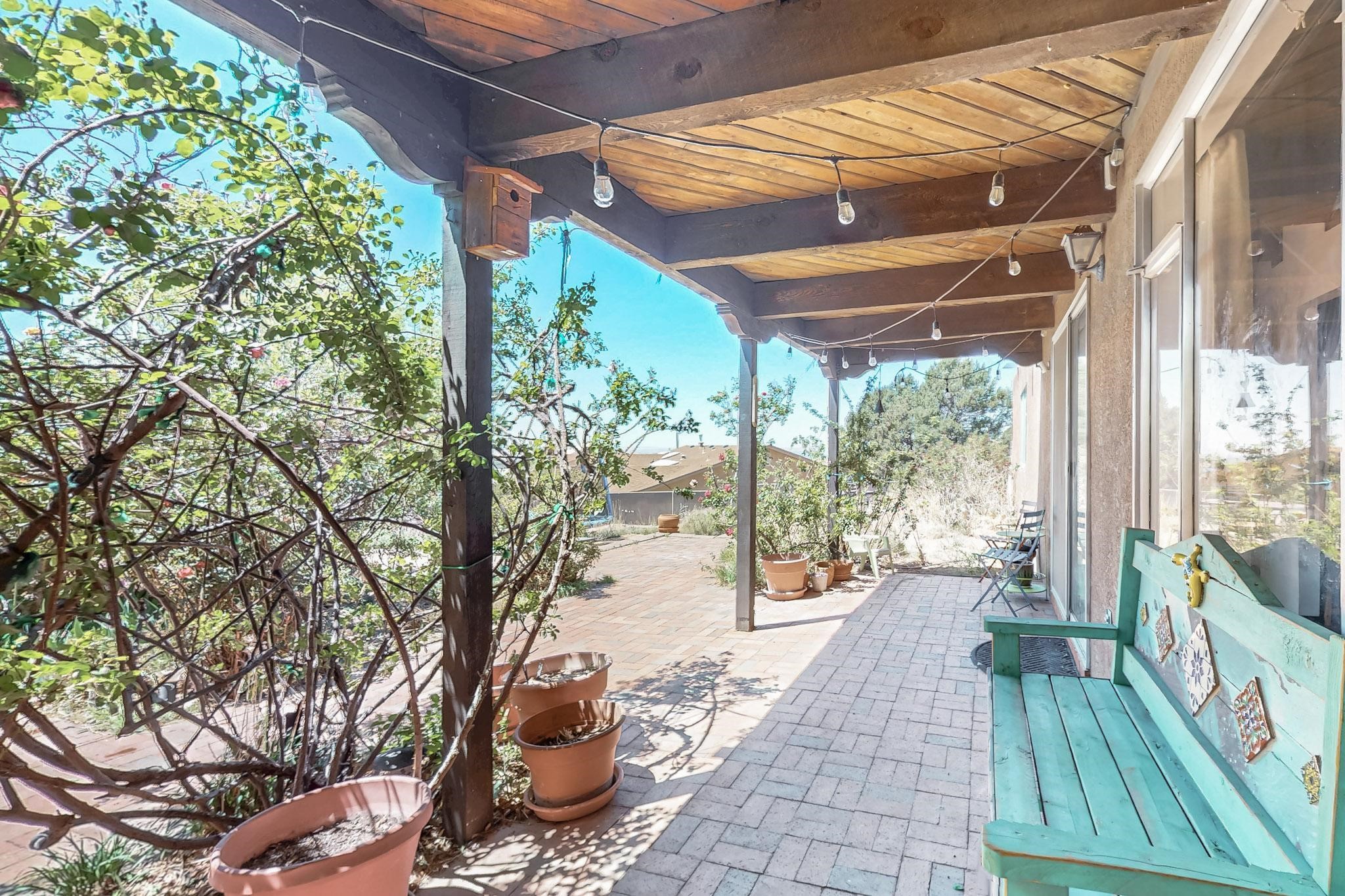 This spectacular custom home, located in the Foothills right across the street from Supper Rock park, is an absolute must see! Enjoy beautiful wood beams and tongue and groove ceilings throughout, two kiva fireplaces, incredible brick floors, extremely efficient insulation that provides cost savings in both winter and summer, plus fantastic views of Supper Rock and the Foothills from the balcony; and that's just the inside. Outside on the 1/3 acre corner lot, you get a second driveway and gate with backyard access. a lush corner grove with huge mature trees, an expanded garden area, and colorful and aromatic rose bushes! Also, a new TPO roof, new water heater, and the drip irrigation has been recently upgraded! Don't miss it, schedule your private tour today!