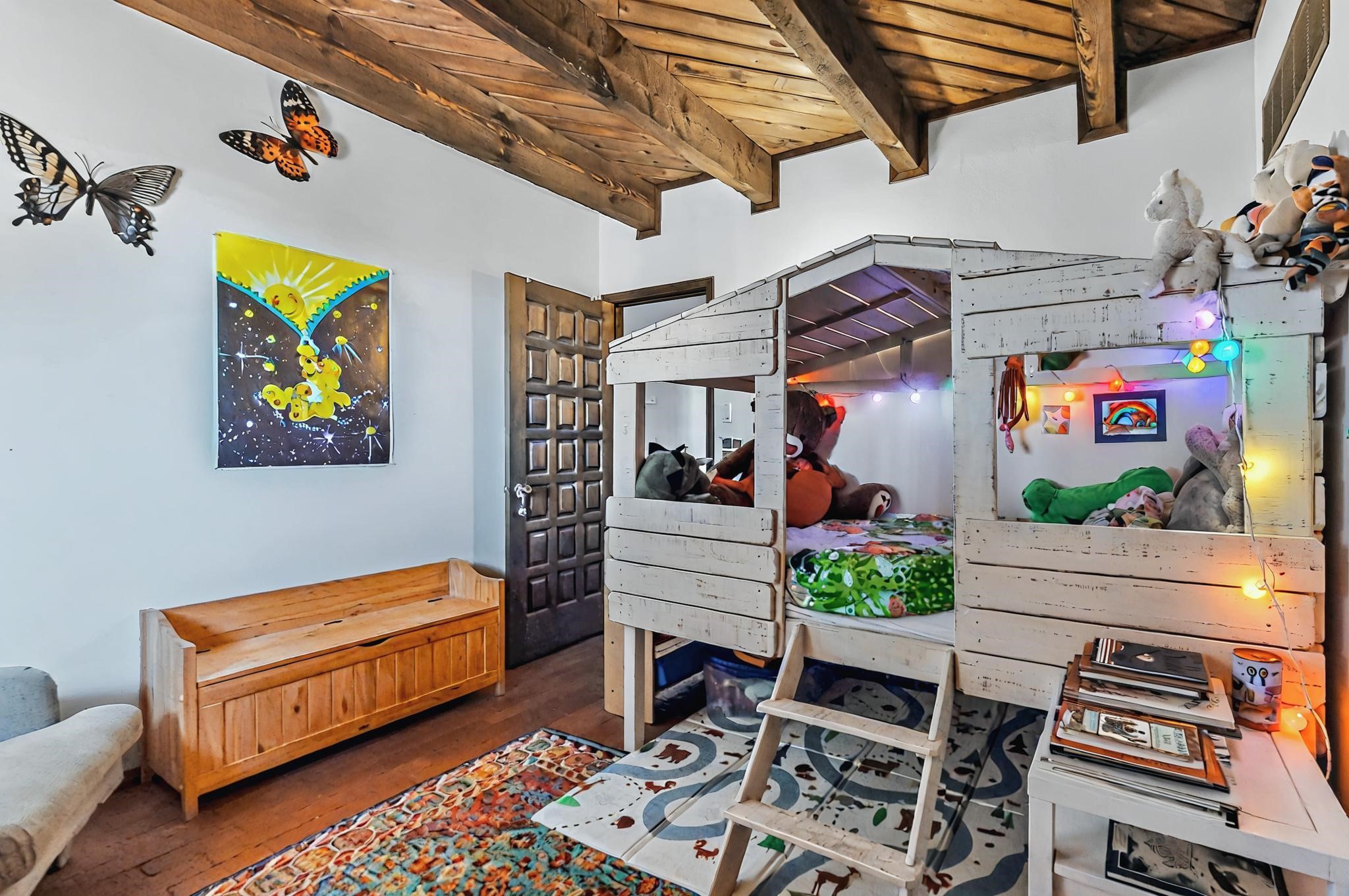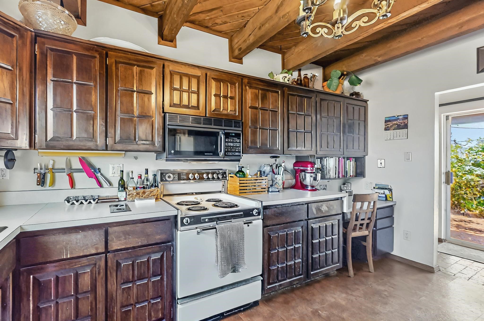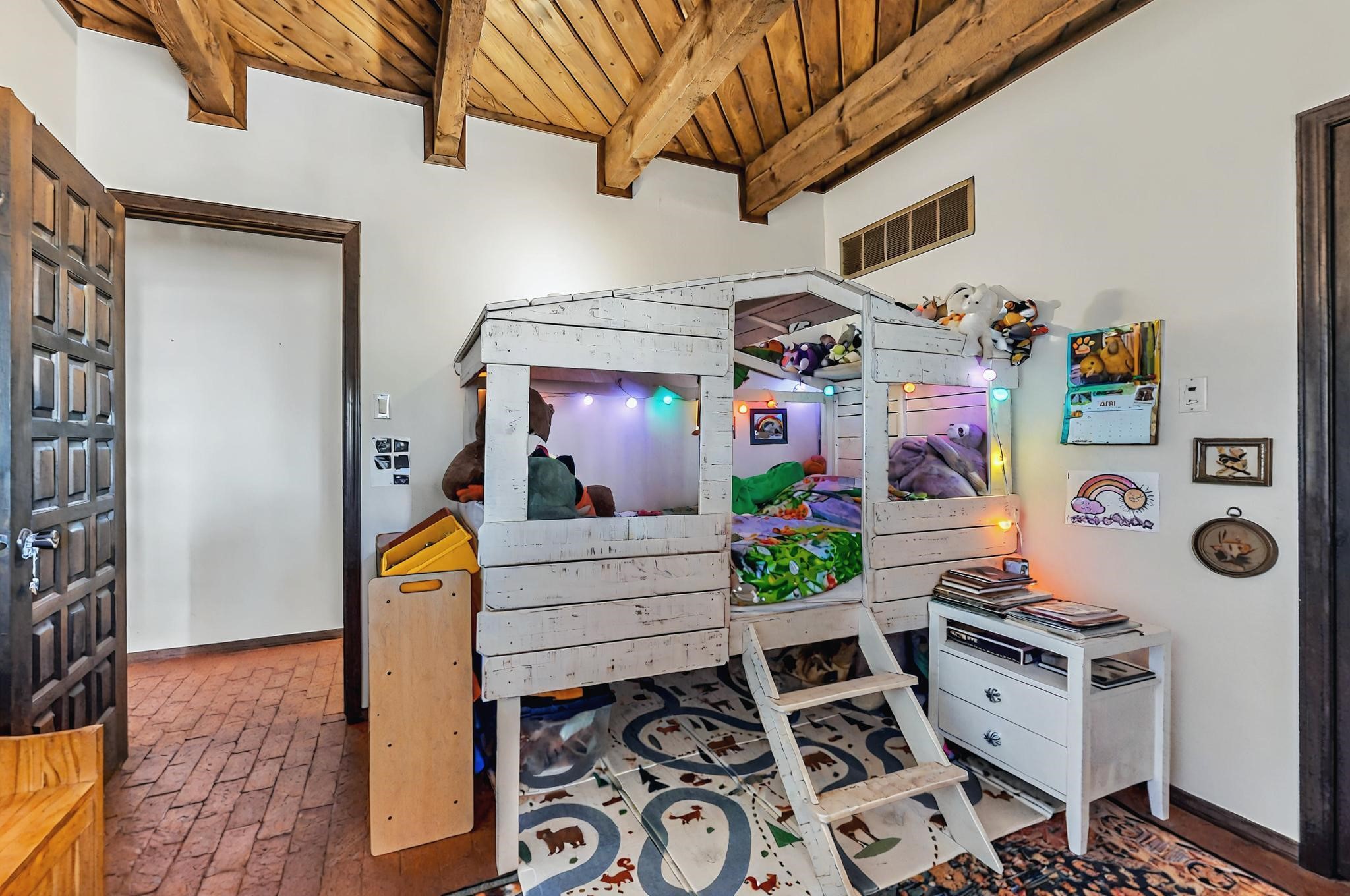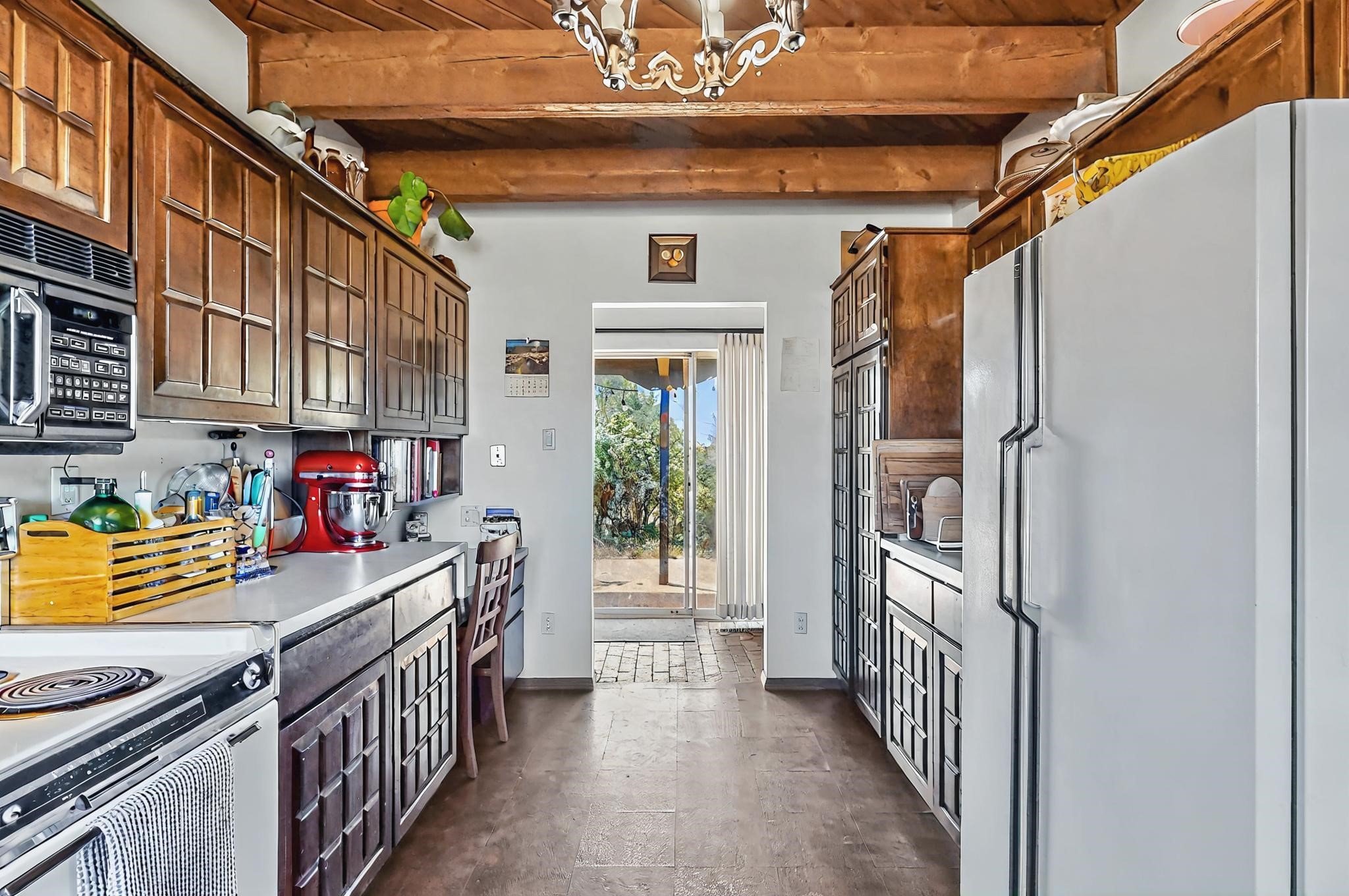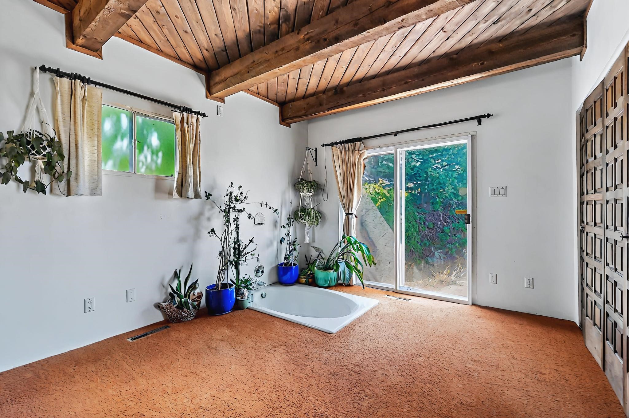 This spectacular custom home, located in the Foothills right across the street from Supper Rock park, is an absolute must see! Enjoy beautiful wood beams and tongue and groove ceilings throughout, two kiva fireplaces, incredible brick floors, extremely efficient insulation that provides cost savings in both winter and summer, plus fantastic views of Supper Rock and the Foothills from the balcony; and that's just the inside. Outside on the 1/3 acre corner lot, you get a second driveway and gate with backyard access. a lush corner grove with huge mature trees, an expanded garden area, and colorful and aromatic rose bushes! Also, a new TPO roof, new water heater, and the drip irrigation has been recently upgraded! Don't miss it, schedule your private tour today!