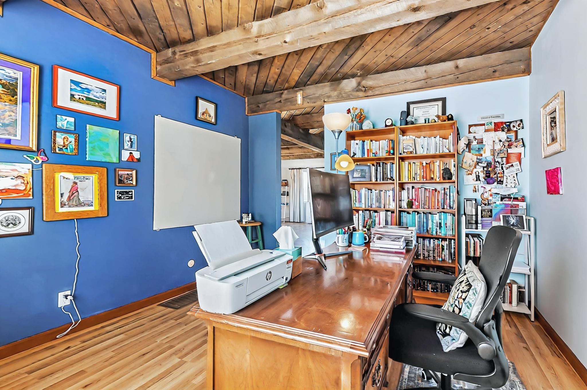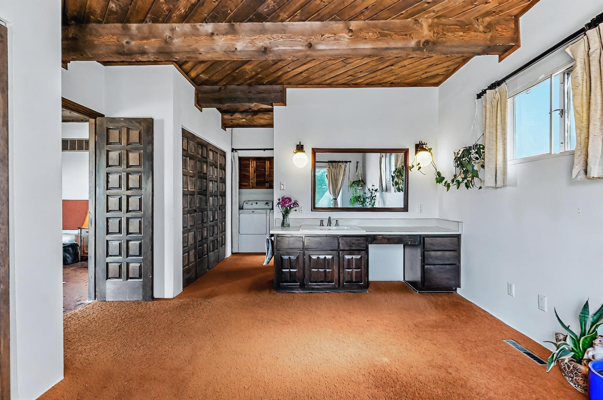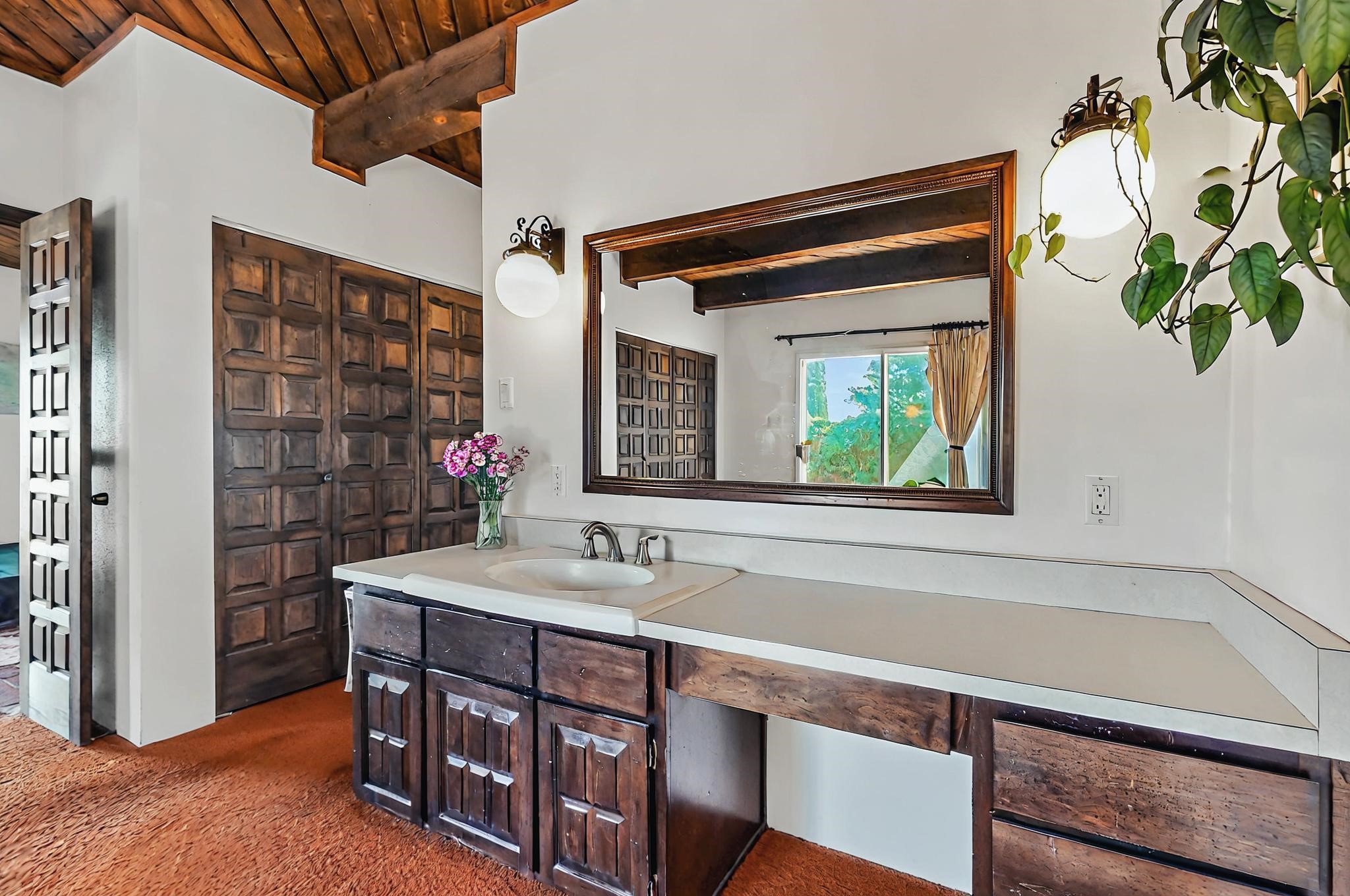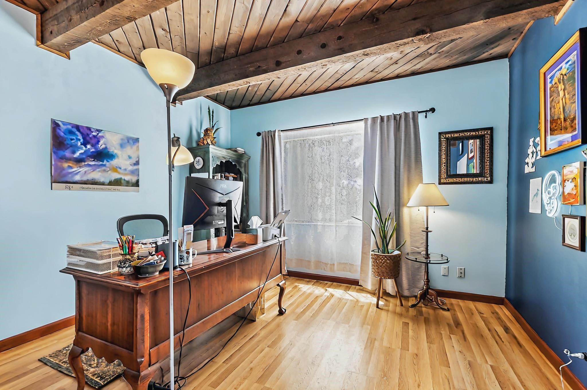 This spectacular custom home, located in the Foothills right across the street from Supper Rock park, is an absolute must see! Enjoy beautiful wood beams and tongue and groove ceilings throughout, two kiva fireplaces, incredible brick floors, extremely efficient insulation that provides cost savings in both winter and summer, plus fantastic views of Supper Rock and the Foothills from the balcony; and that's just the inside. Outside on the 1/3 acre corner lot, you get a second driveway and gate with backyard access. a lush corner grove with huge mature trees, an expanded garden area, and colorful and aromatic rose bushes! Also, a new TPO roof, new water heater, and the drip irrigation has been recently upgraded! Don't miss it, schedule your private tour today!