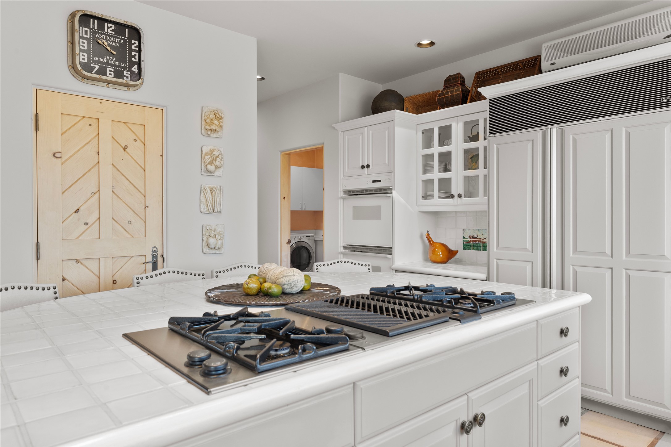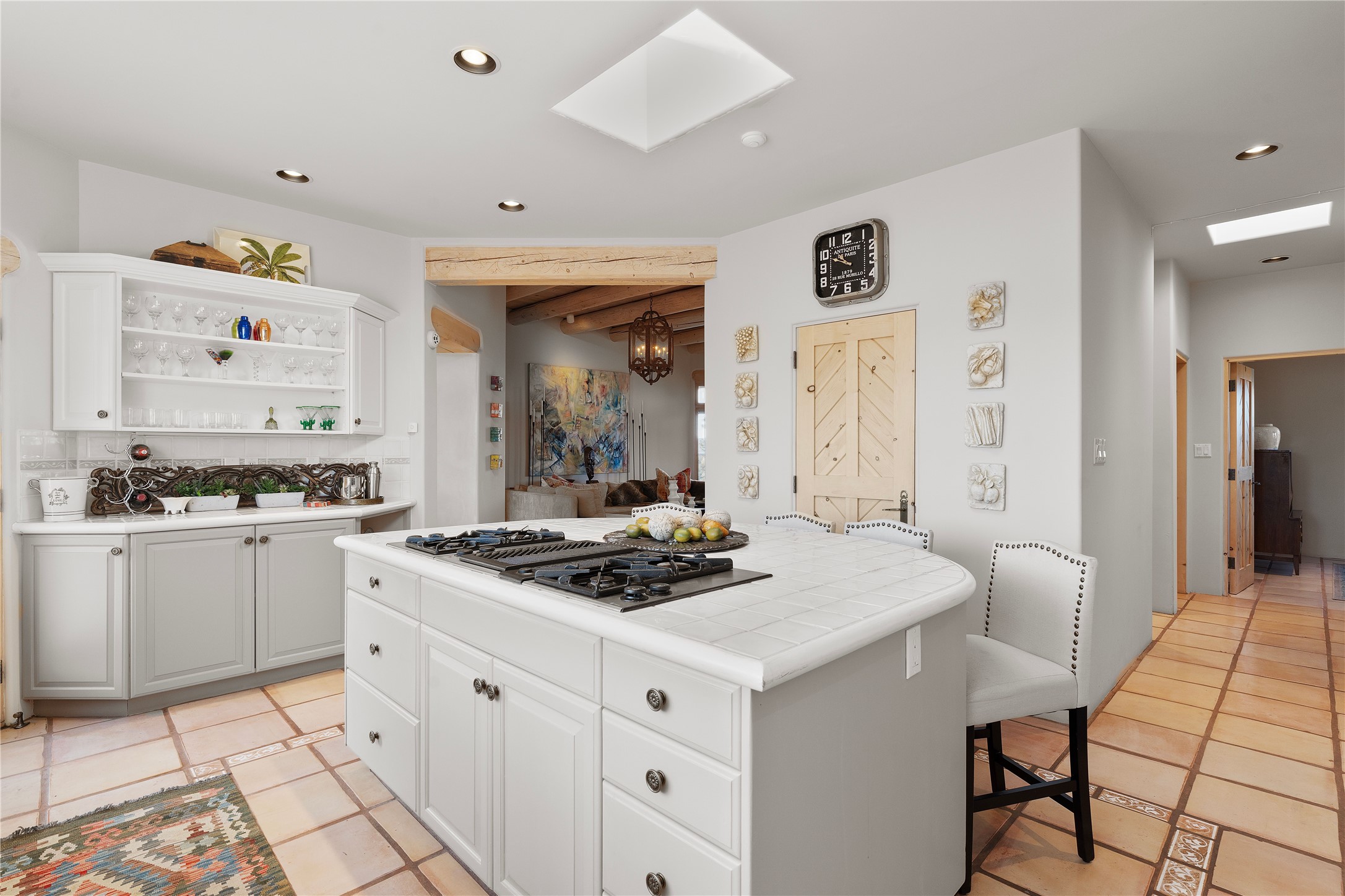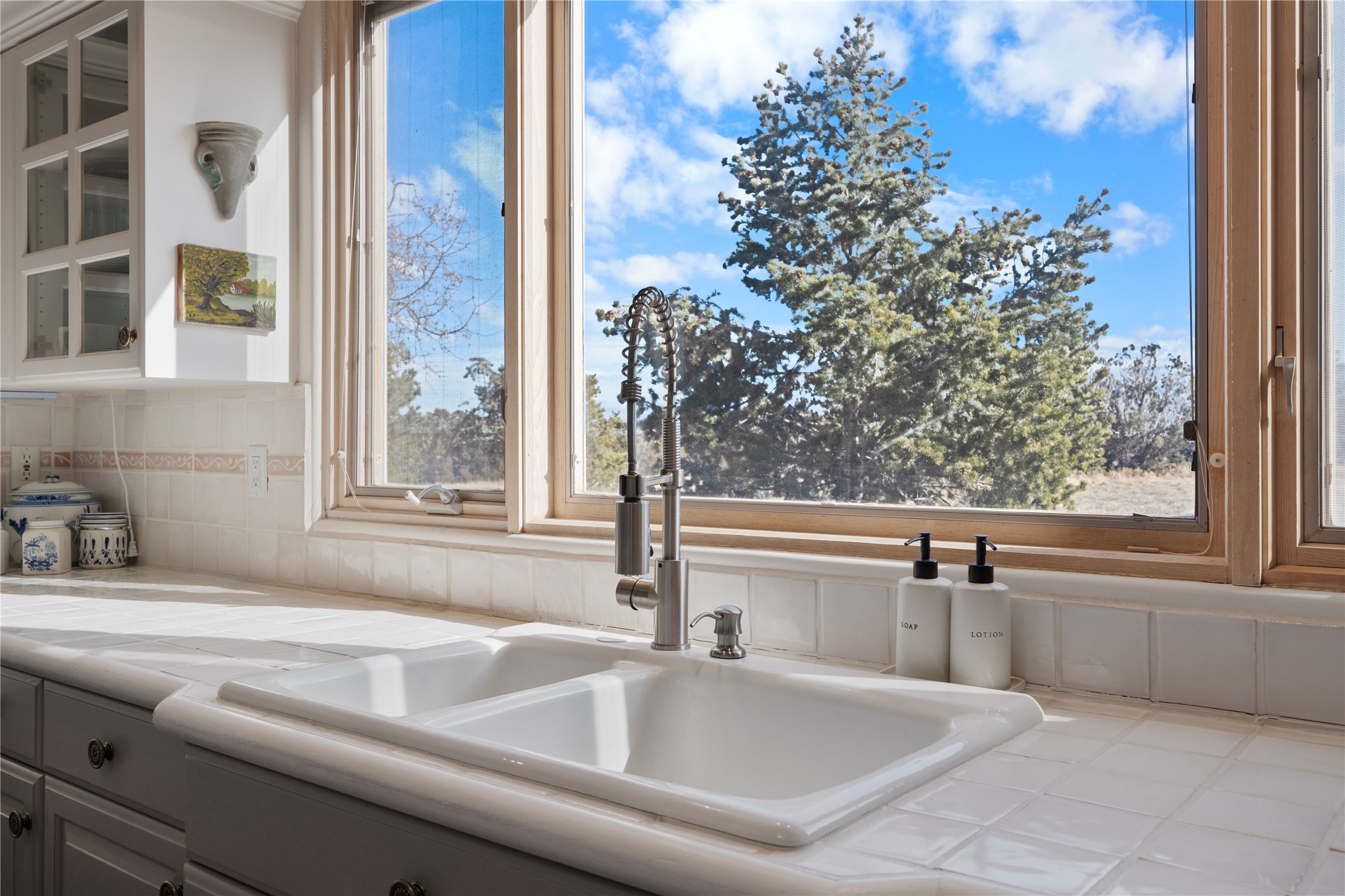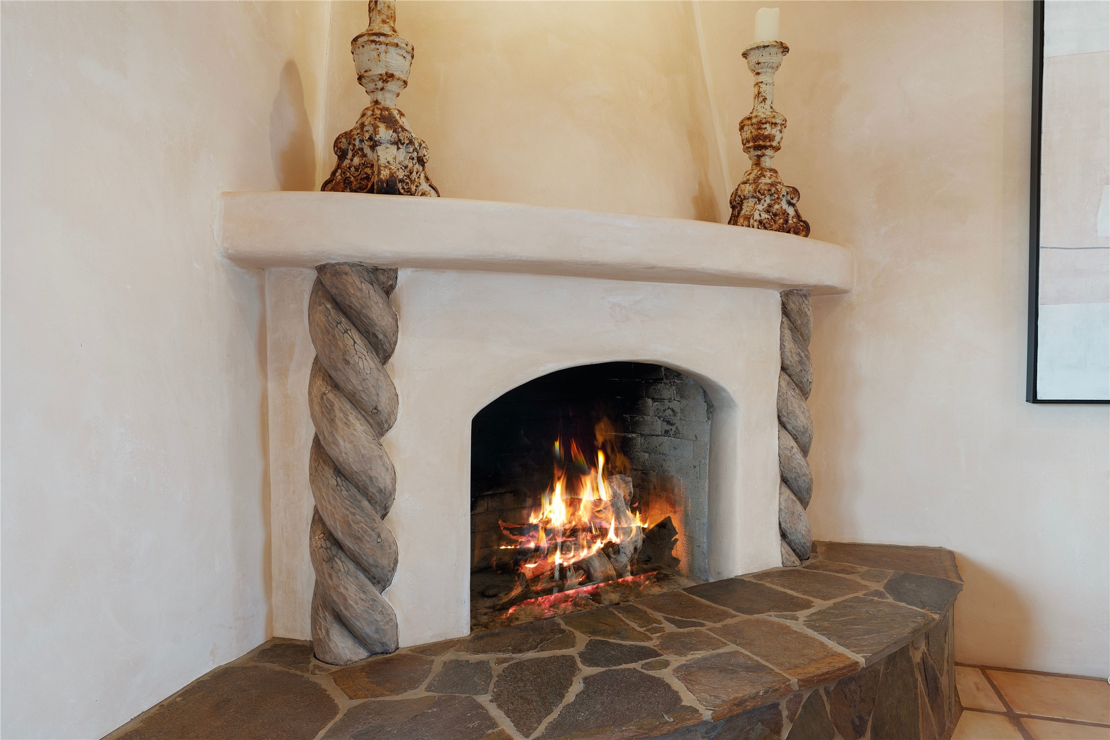 Your Private Hideaway Awaits! Amazing architecture and forever mountain views from every room define thisextraordinary custom home in fabulous guard-gated La Tierra Nueva! Enjoy an "other world" feeling in this beautiful location, on 11.9 natural acres only a beautiful 15 minute drive to the Santa Fe Plaza! Featuring a thoughtful single level plan with resort like charm, beautiful architectural details, and spacious rooms with high ceilings, vigas, and abundant windows throughout. Thick plastered walls and a flowing floor plan create a feeling of warmth and belonging. Off the front entry, you'll enter a large and beautiful living room with 11' ceilings, a kiva fireplace, an adjacent glassed dining room, and plenty of space for artwork. A gallery hallway featuring all glass on one side links to the media room/den, with kiva fireplace, built-in seating, and direct access to the front portico. The large island kitchen opens to den, with an oversized island with seating. The luxurious owner's suite features direct access to a private patio, kiva fireplace, spa like bath, jetted soaking tub overlooking the mountains, and a spacious walk in closet. The other end of the home has a private guest suite with it's own views and bathroom. The home's outdoor spaces are equally impressive, with an east-facing portal offering sweeping views of the Sangre de Cristo Mountains, and a west-facing portal takes in the grandeur of the Jemez Mountains. A separately entered studio can easily be transformed into a fourth bedroom/casita. This subdivision is great for horses and their owners, ride on your lot or trot to nearby BLM land. The Club at Las Campanas is nearby. La Tierra Nueva offers a ranch like feel just a short drive to world class art, dining, symphony, opera, culture, museums, golf, tennis, pickleball, biking, skiing, and the clean air and sunny skies that make Santa Fe famous! Watch the property tour video; however, this magnificent property must be experienced in person.