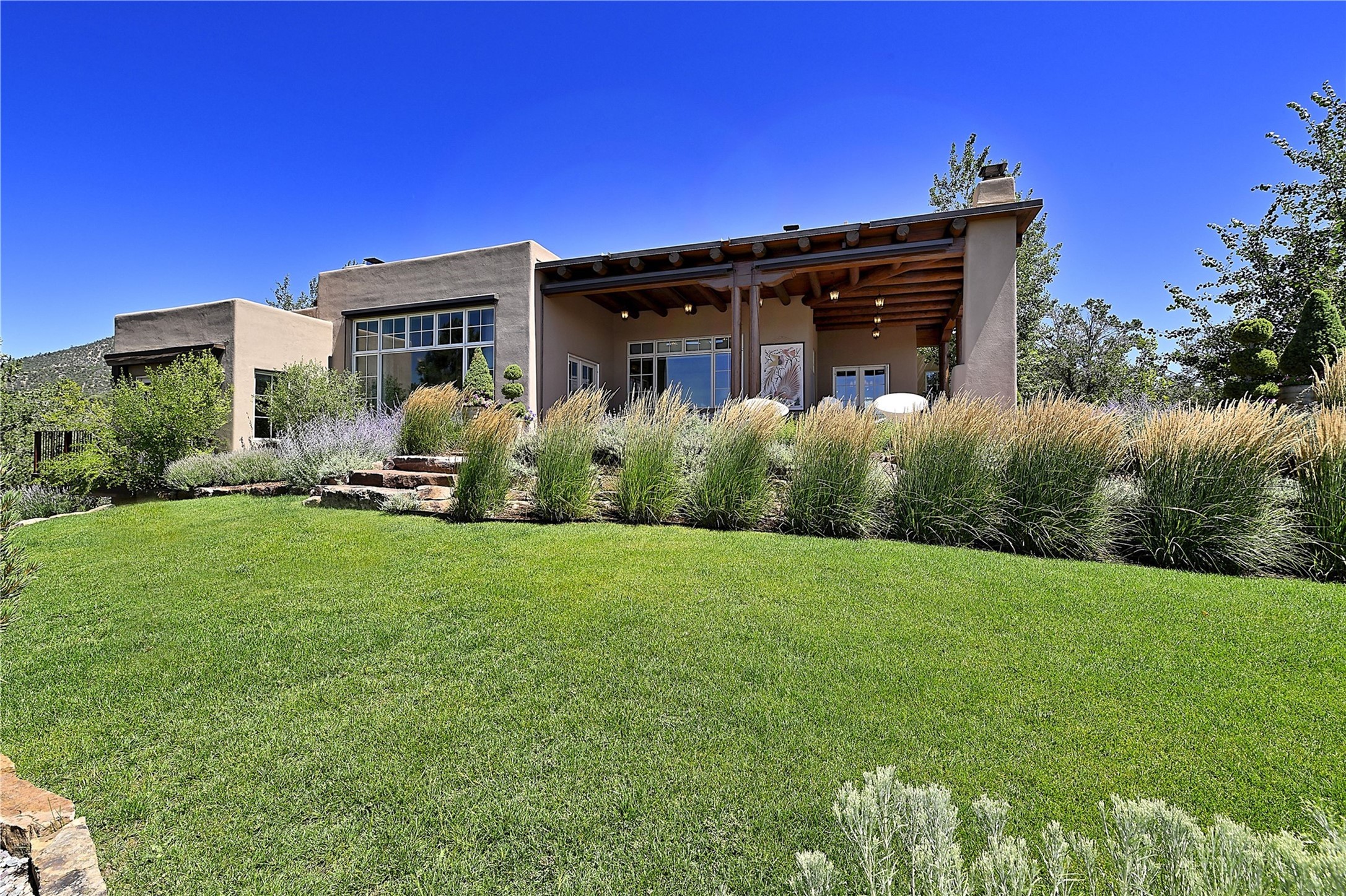 Experience the pinnacle of sophisticated living at this stunning Santa Fe estate. European Elegance Meets Southwestern Splendor at 2216 Wilderness Arroyo! A sanctuary where refined taste meets unparalleled quality--discover the finest in Santa Fe living. Every detail has been meticulously crafted to provide a truly exceptional experience. Nestled on 5.25 acres, within the prestigious Wilderness Gate community, this Woods Builders masterpiece epitomizes European magnificence, seamlessly blending luxury with purposeful privacy. Upon arrival, you are greeted by a private gate, a gracefully curving cobblestone driveway, and beautifully landscaped grounds--an immediate indication of the exceptional quality that awaits. This extraordinary property offers breathtaking views that make it feel like a world apart, while still being conveniently close to downtown Santa Fe. Step inside to discover a home where no detail has been overlooked. The Chef's kitchen, equipped with top-of-the-line appliances, custom cabinetry and Taj Mahal Granite counters, is a culinary dream come true. Surrounding the kitchen, you'll find a formal sitting room, a cozy family gathering area, and a spacious media room--ideal for both grand entertaining and intimate relaxation. The owner's suite is a retreat unto itself, boasting a romantic balcony with sweeping views of the lush grounds, city lights, distant mountains and glorious sunsets. Indulge in the opulent primary bath, designed for ultimate relaxation and pampering. The main residence includes three additional guest bedrooms, thoughtfully separated for privacy. The two upstairs guest rooms feature their own living space and media room, ensuring comfort and convenience for all. Additionally, a separate, self-contained guest house with its own kitchen and laundry facilities offers an ideal space for visitors, extended family, or a remarkable Studio/Office.