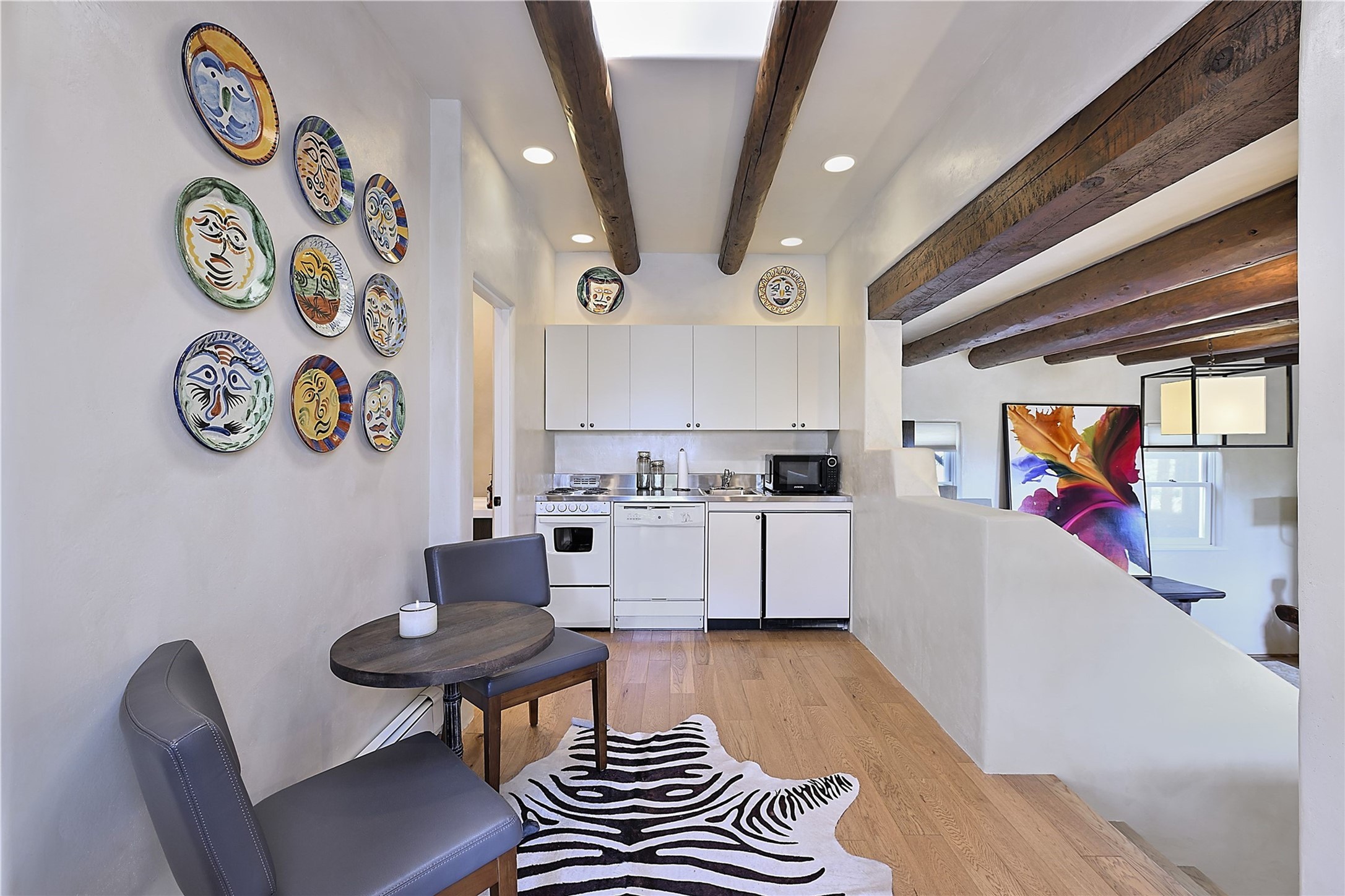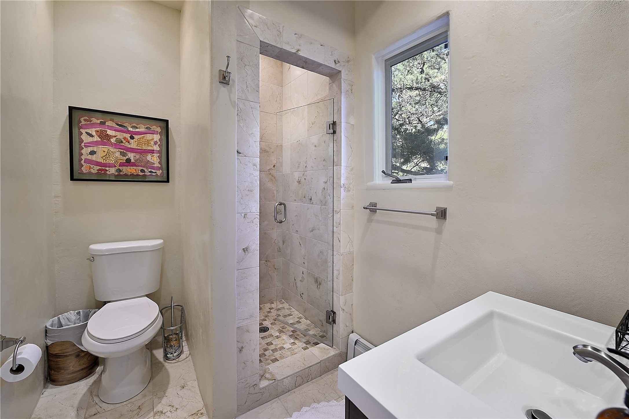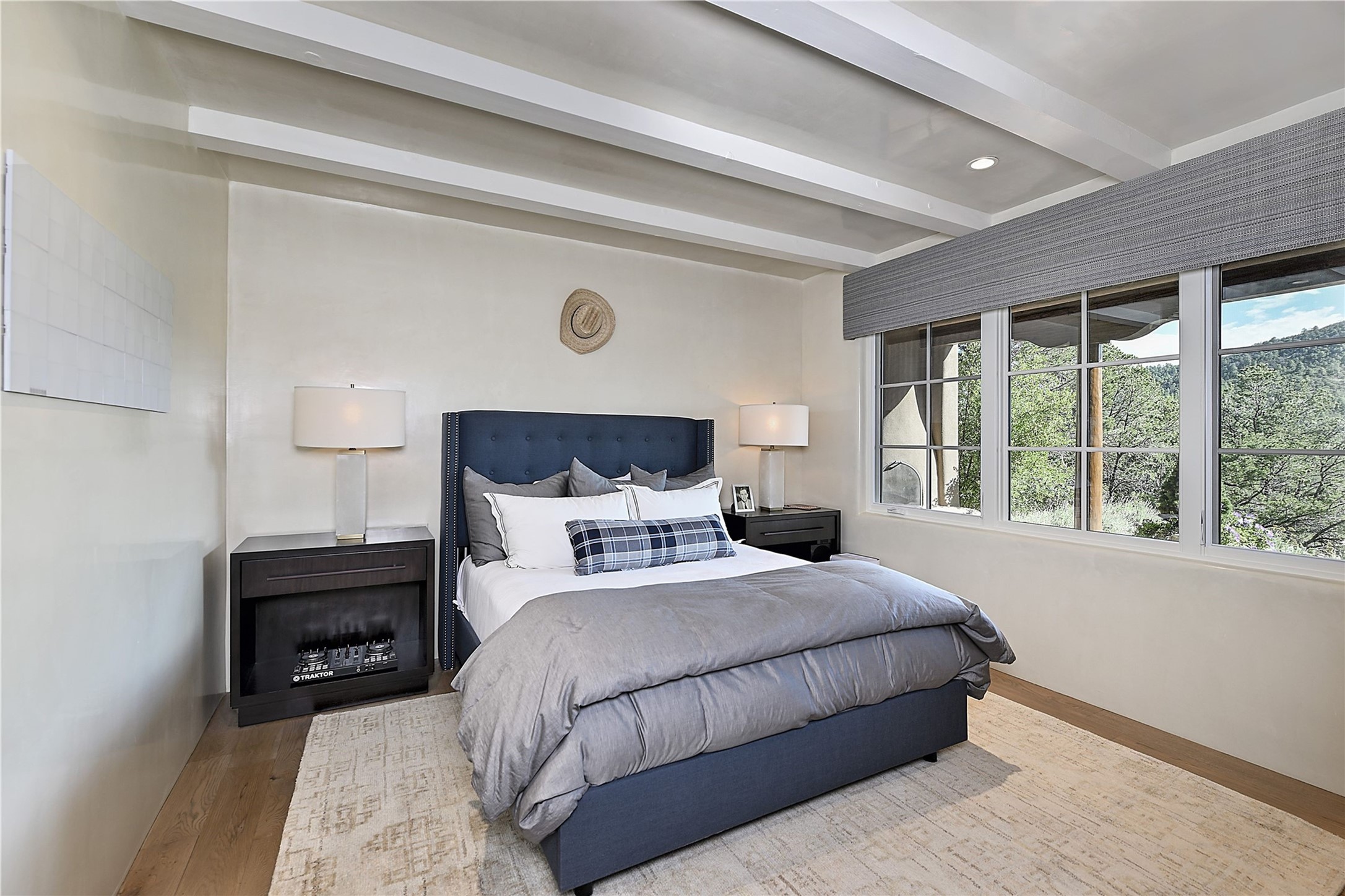 Experience the pinnacle of sophisticated living at this stunning Santa Fe estate. European Elegance Meets Southwestern Splendor at 2216 Wilderness Arroyo! A sanctuary where refined taste meets unparalleled quality--discover the finest in Santa Fe living. Every detail has been meticulously crafted to provide a truly exceptional experience. Nestled on 5.25 acres, within the prestigious Wilderness Gate community, this Woods Builders masterpiece epitomizes European magnificence, seamlessly blending luxury with purposeful privacy. Upon arrival, you are greeted by a private gate, a gracefully curving cobblestone driveway, and beautifully landscaped grounds--an immediate indication of the exceptional quality that awaits. This extraordinary property offers breathtaking views that make it feel like a world apart, while still being conveniently close to downtown Santa Fe. Step inside to discover a home where no detail has been overlooked. The Chef's kitchen, equipped with top-of-the-line appliances, custom cabinetry and Taj Mahal Granite counters, is a culinary dream come true. Surrounding the kitchen, you'll find a formal sitting room, a cozy family gathering area, and a spacious media room--ideal for both grand entertaining and intimate relaxation. The owner's suite is a retreat unto itself, boasting a romantic balcony with sweeping views of the lush grounds, city lights, distant mountains and glorious sunsets. Indulge in the opulent primary bath, designed for ultimate relaxation and pampering. The main residence includes three additional guest bedrooms, thoughtfully separated for privacy. The two upstairs guest rooms feature their own living space and media room, ensuring comfort and convenience for all. Additionally, a separate, self-contained guest house with its own kitchen and laundry facilities offers an ideal space for visitors, extended family, or a remarkable Studio/Office.