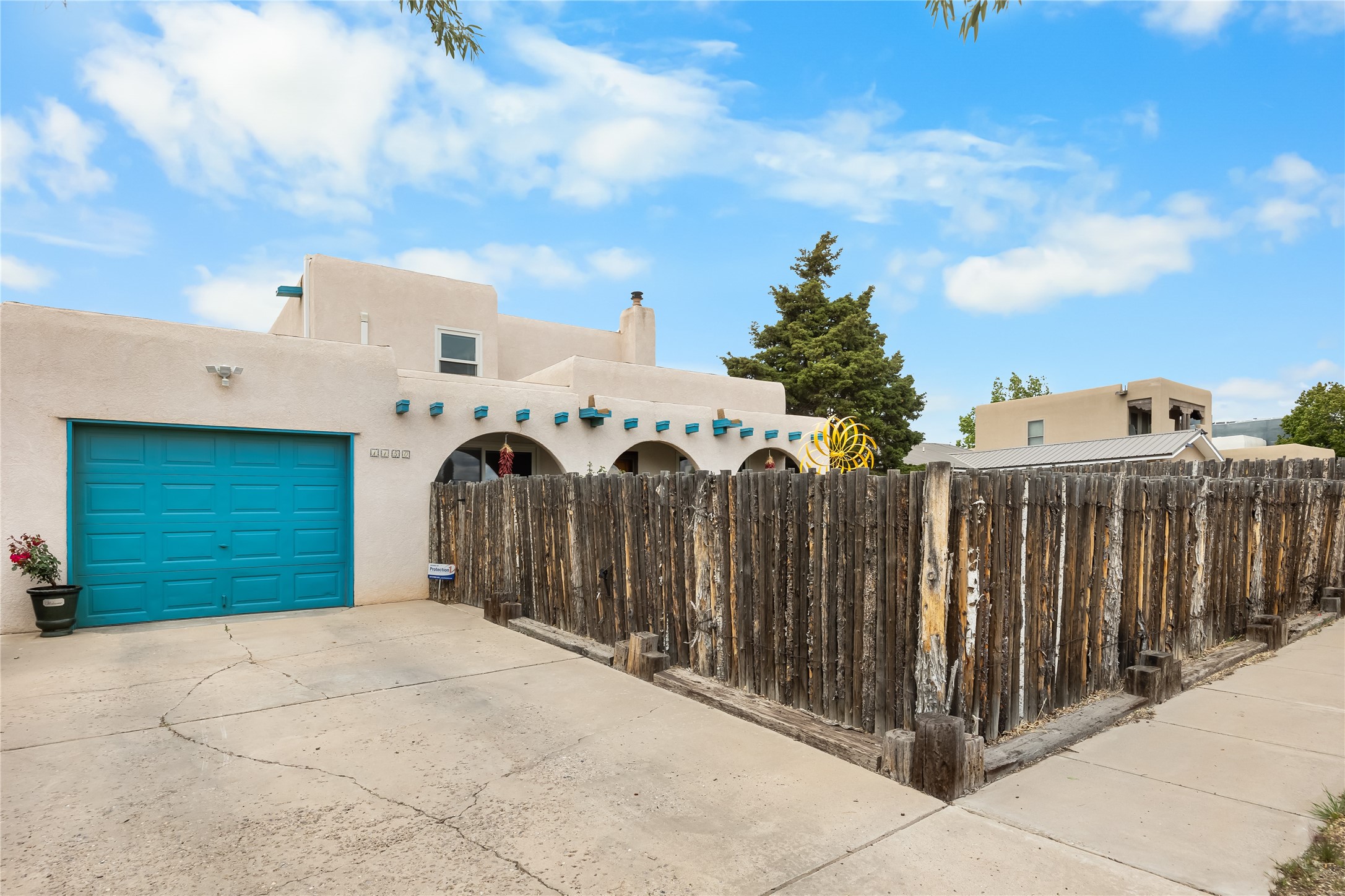 Home Sweet Home! Enter the thoughtfully landscaped, fenced, large front courtyard through a coyote fenced gate. The home's first level is graced with owner installed wooden flooring, high beamed ceilings, Anderson windows, custom blinds and has a wonderful flow from its spacious Living Room to its Dining Room, Kitchen, laundry room, hall bathroom (with Dream Style shower) and guest bedroom. A brand-new stainless dishwasher plus newer range & fridge enhance a highly functional, comfortably sized kitchen. Enjoy a welcoming, extensive rear yard which includes an owner added roomy portal, great for entertaining, plus a variety of mature fruit trees & lots of space for pets to roam. The second level features the primary bedroom with a deck and Dream Style shower, as well as a second guest bedroom. Rest cool and easy with the addition of 4 mini-splits and a well-maintained roof over your head, in this well maintained property in an established, friendly neighborhood.