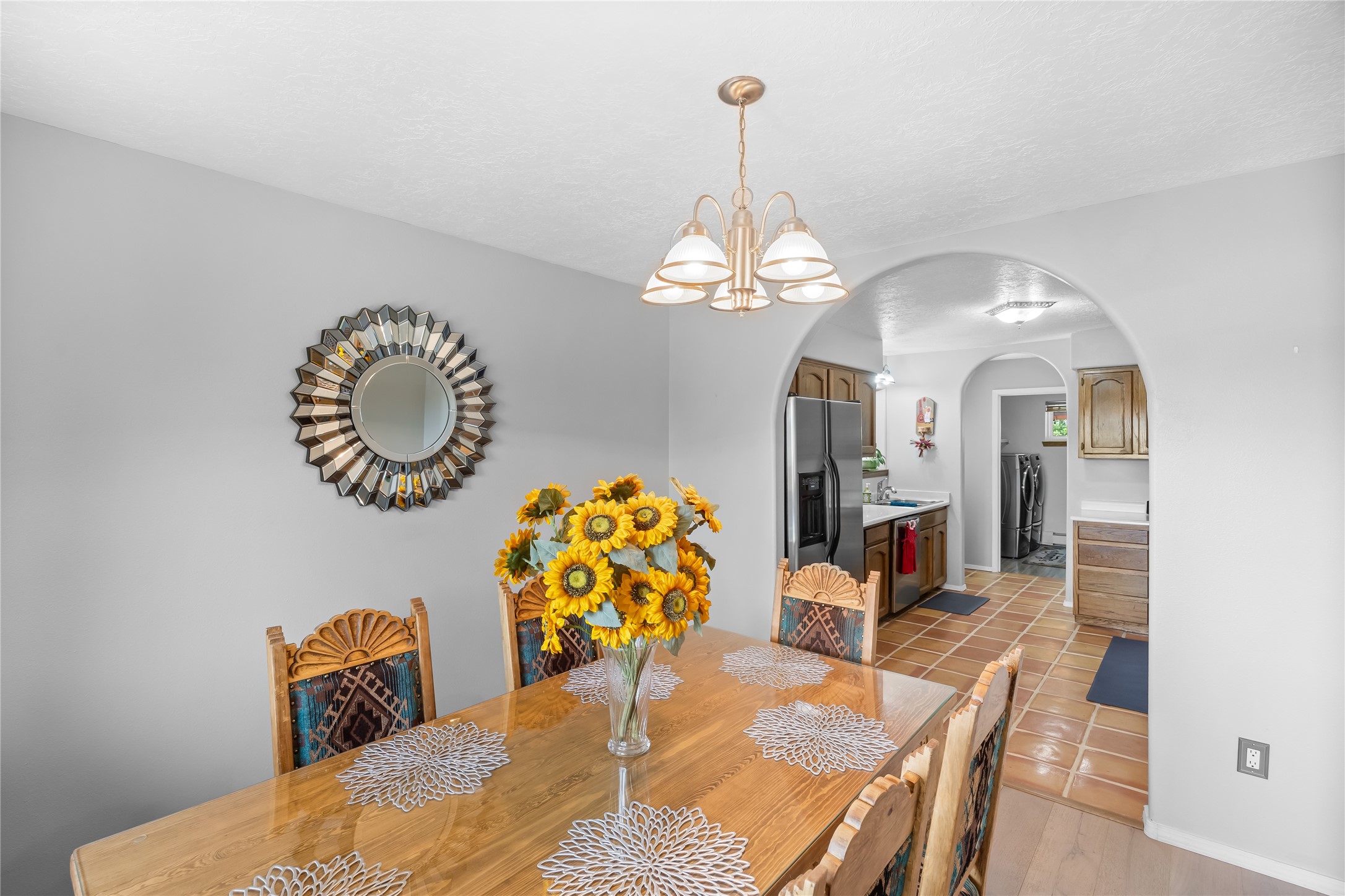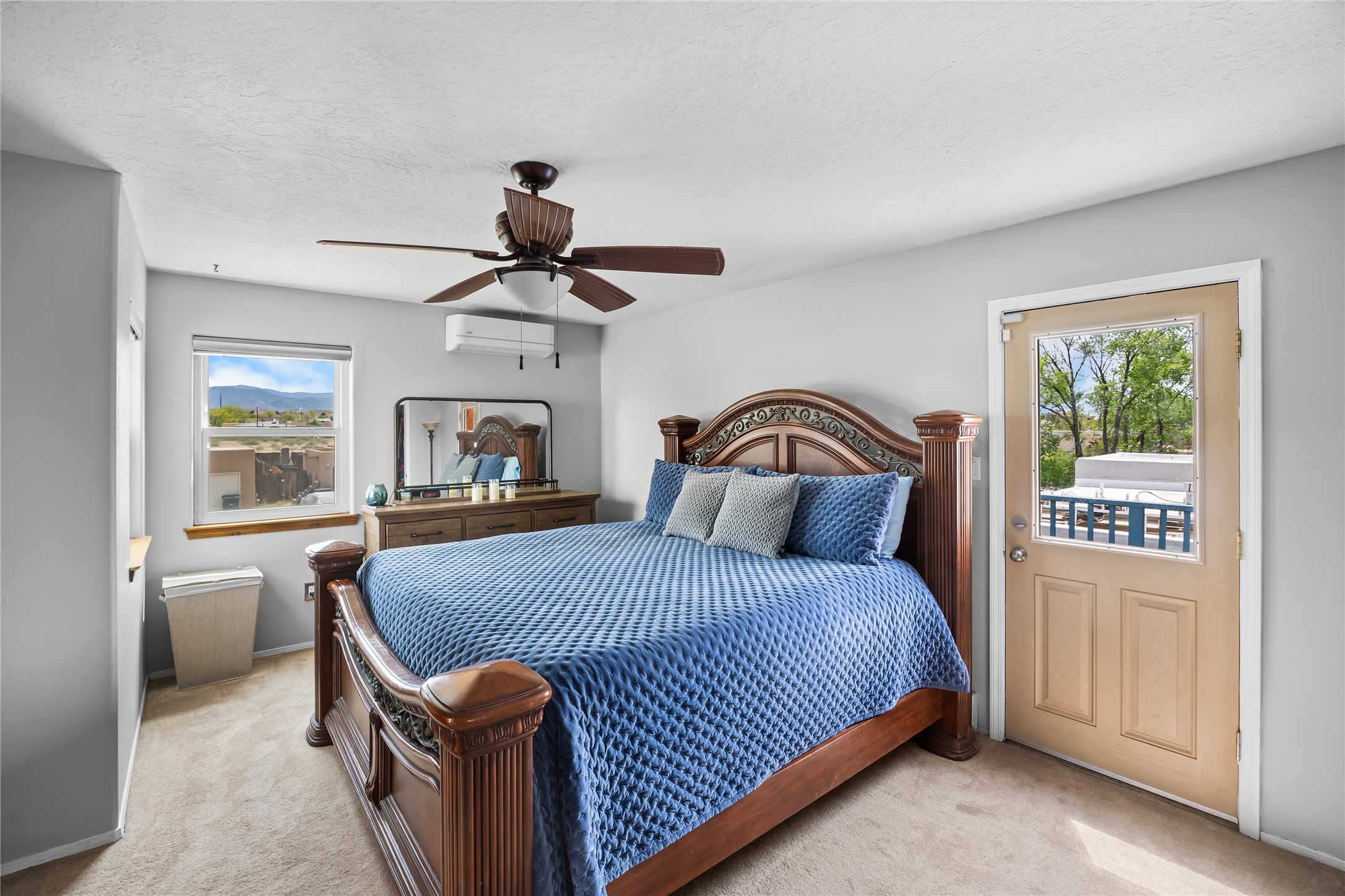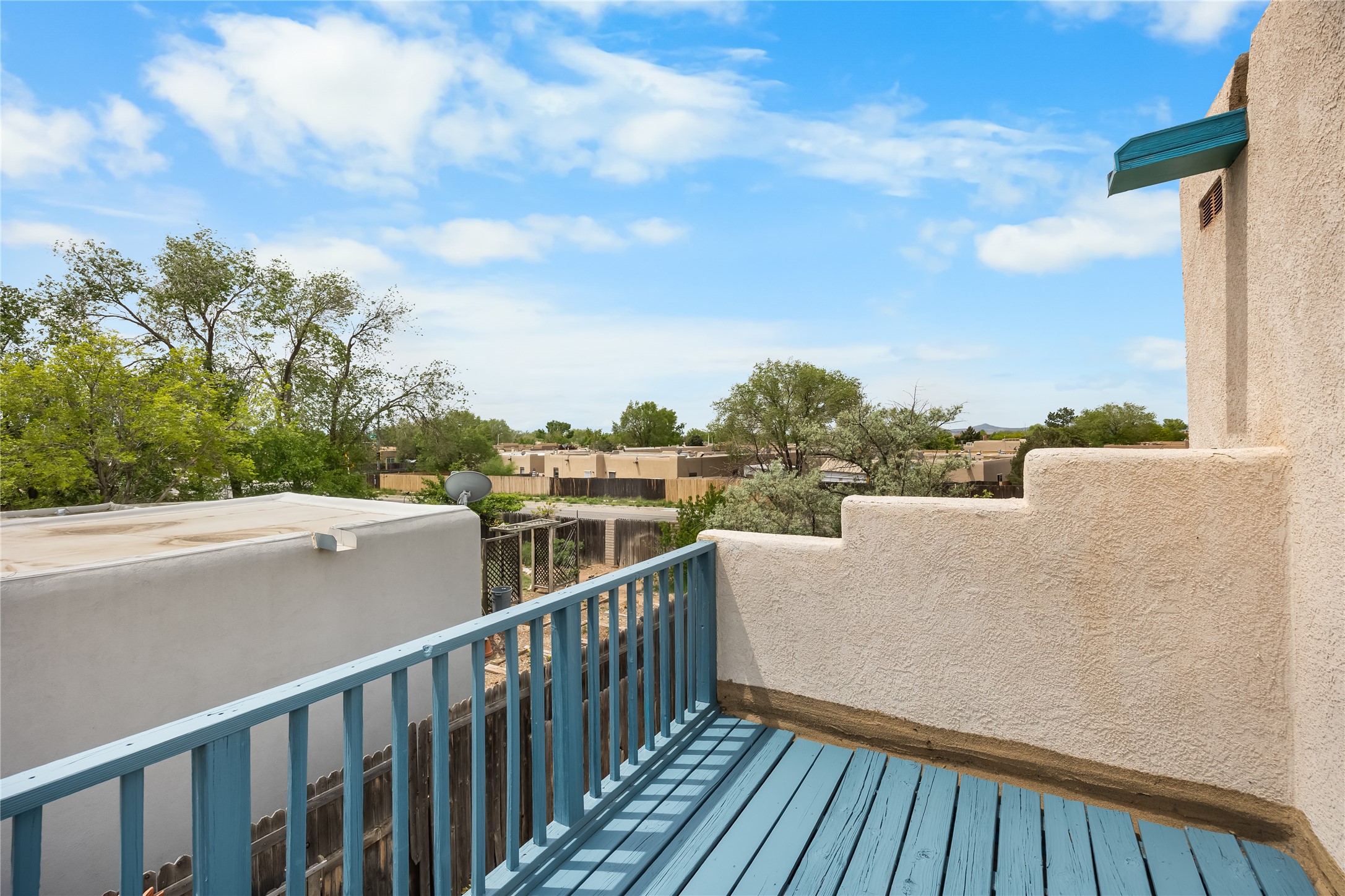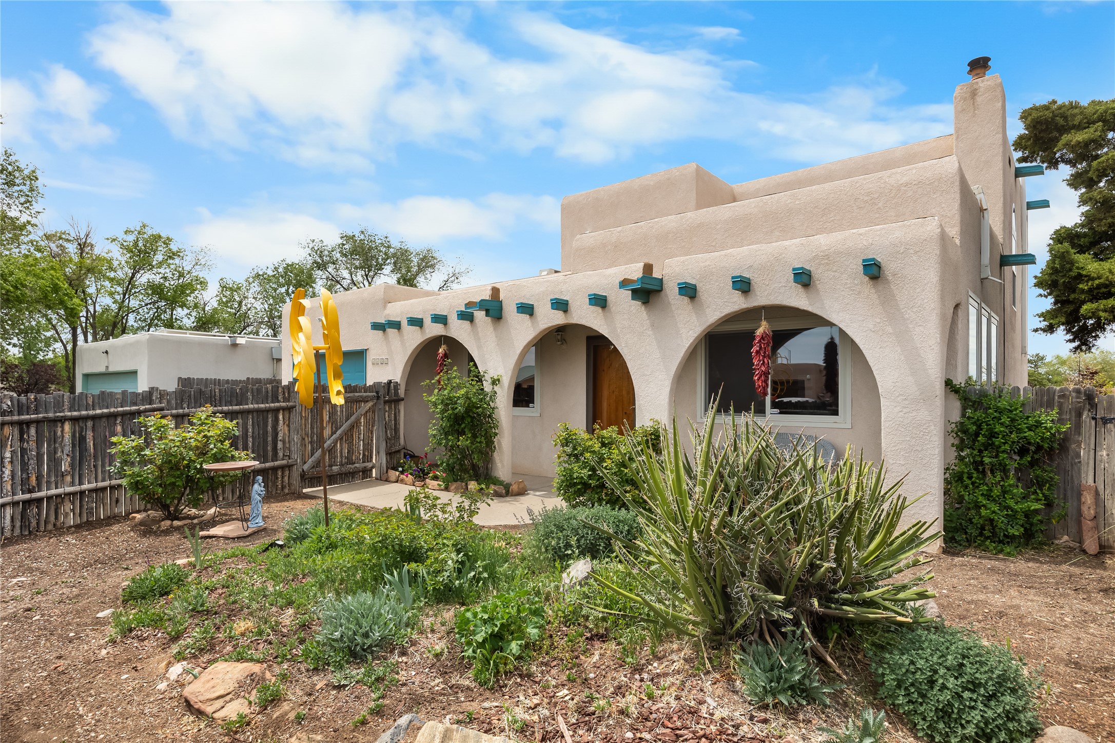 Home Sweet Home! Enter the thoughtfully landscaped, fenced, large front courtyard through a coyote fenced gate. The home's first level is graced with owner installed wooden flooring, high beamed ceilings, Anderson windows, custom blinds and has a wonderful flow from its spacious Living Room to its Dining Room, Kitchen, laundry room, hall bathroom (with Dream Style shower) and guest bedroom. A brand-new stainless dishwasher plus newer range & fridge enhance a highly functional, comfortably sized kitchen. Enjoy a welcoming, extensive rear yard which includes an owner added roomy portal, great for entertaining, plus a variety of mature fruit trees & lots of space for pets to roam. The second level features the primary bedroom with a deck and Dream Style shower, as well as a second guest bedroom. Rest cool and easy with the addition of 4 mini-splits and a well-maintained roof over your head, in this well maintained property in an established, friendly neighborhood.