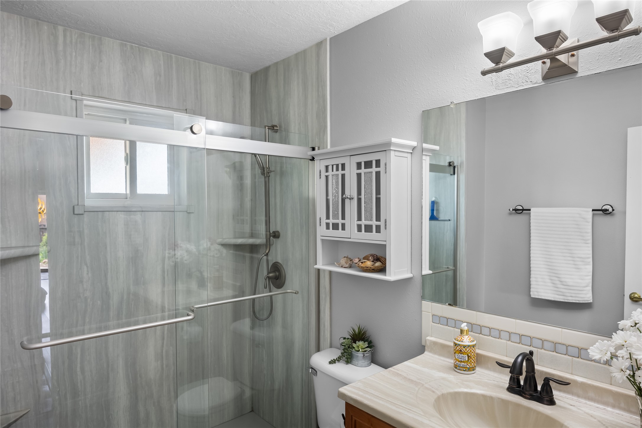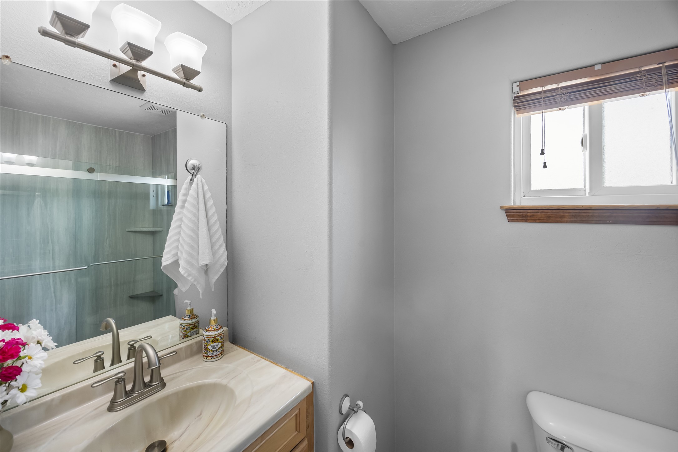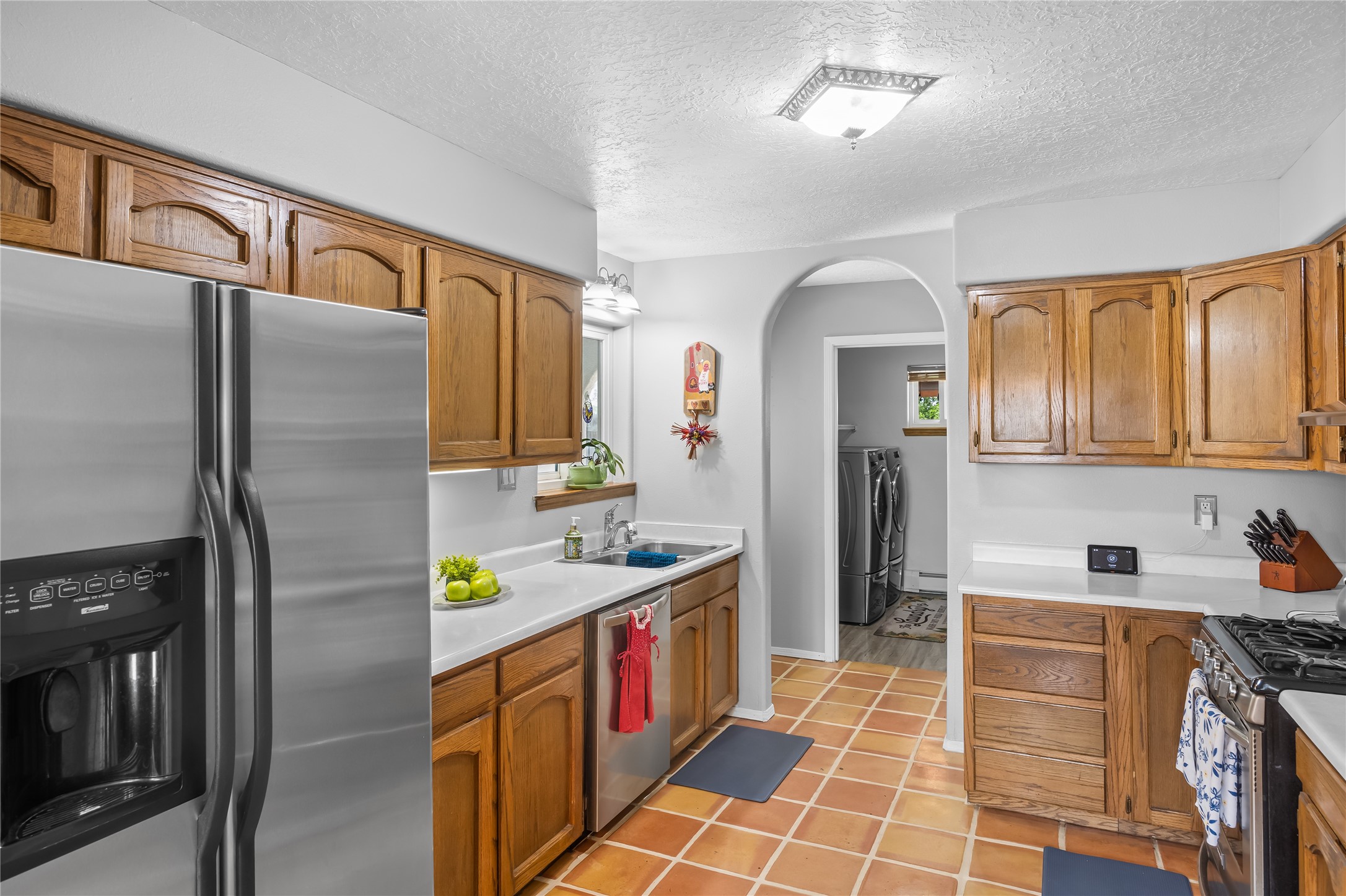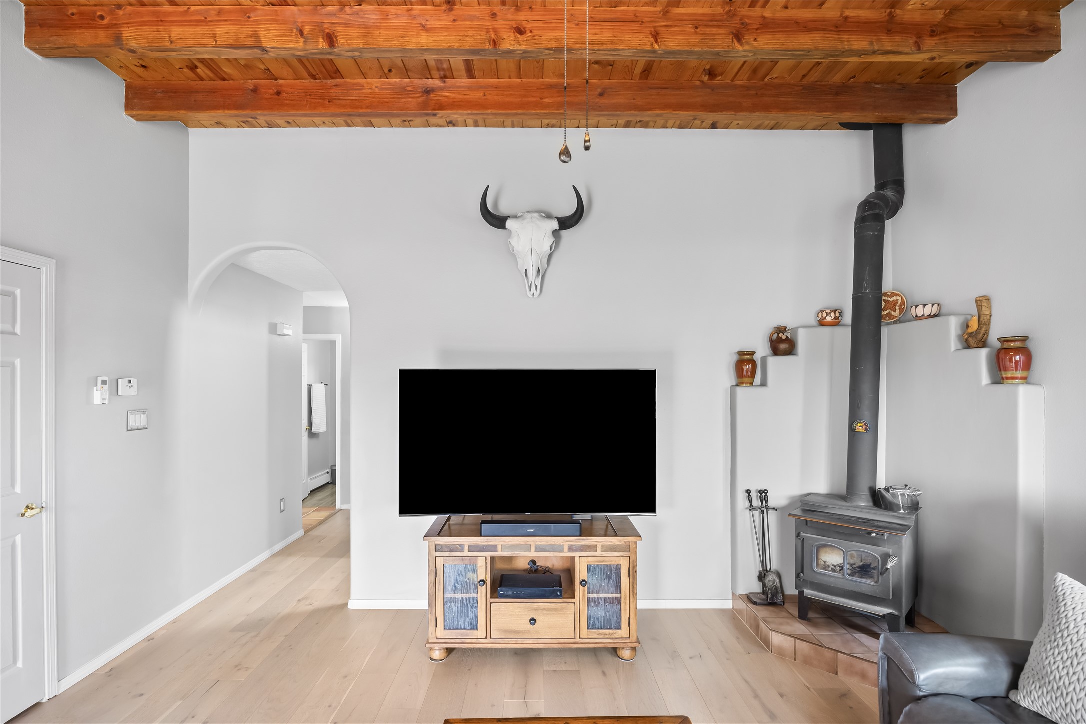 Home Sweet Home! Enter the thoughtfully landscaped, fenced, large front courtyard through a coyote fenced gate. The home's first level is graced with owner installed wooden flooring, high beamed ceilings, Anderson windows, custom blinds and has a wonderful flow from its spacious Living Room to its Dining Room, Kitchen, laundry room, hall bathroom (with Dream Style shower) and guest bedroom. A brand-new stainless dishwasher plus newer range & fridge enhance a highly functional, comfortably sized kitchen. Enjoy a welcoming, extensive rear yard which includes an owner added roomy portal, great for entertaining, plus a variety of mature fruit trees & lots of space for pets to roam. The second level features the primary bedroom with a deck and Dream Style shower, as well as a second guest bedroom. Rest cool and easy with the addition of 4 mini-splits and a well-maintained roof over your head, in this well maintained property in an established, friendly neighborhood.