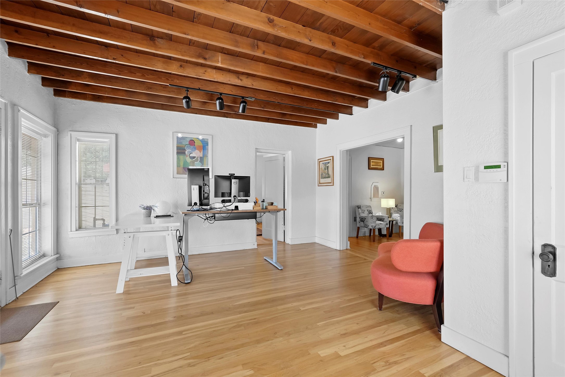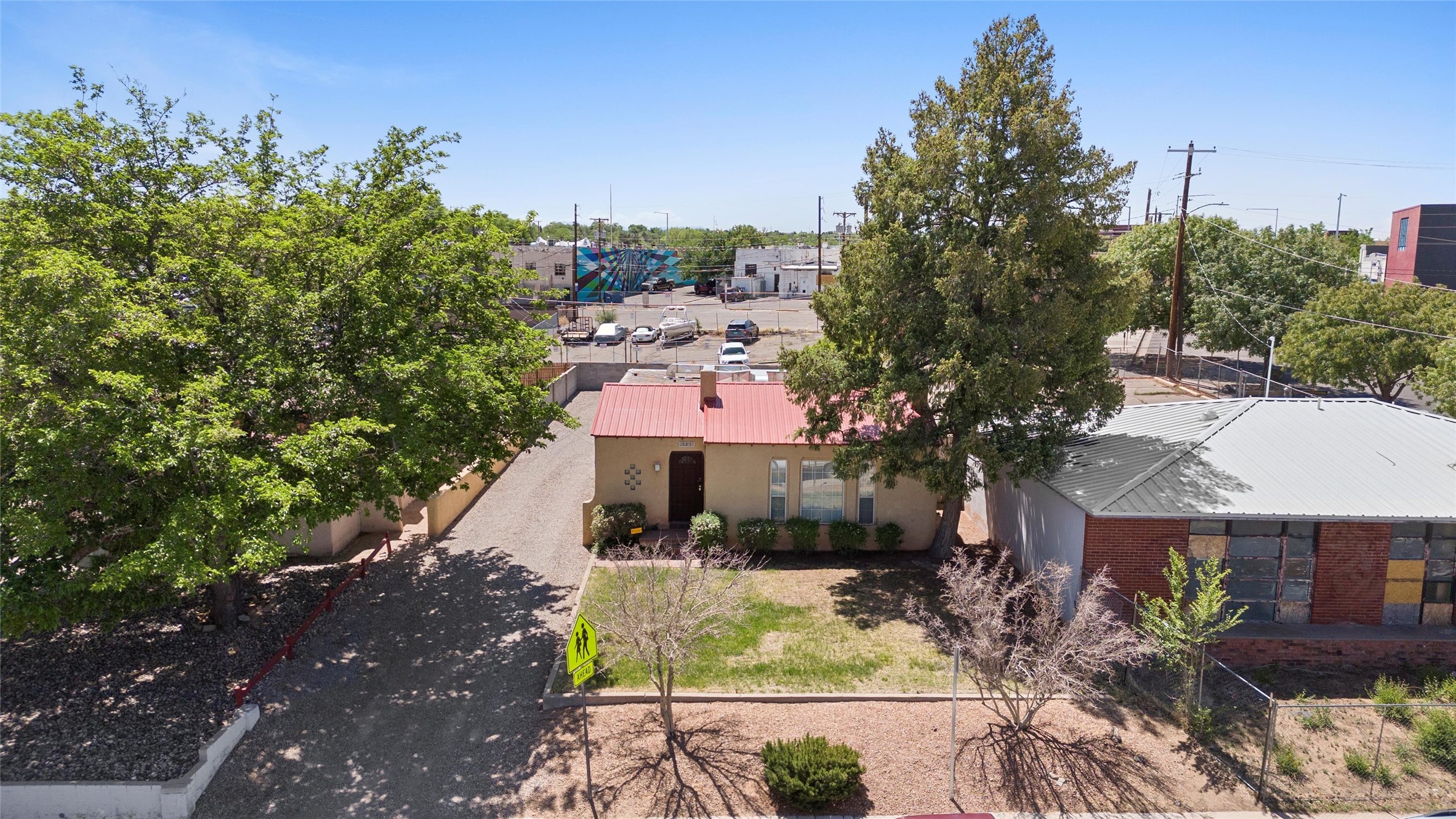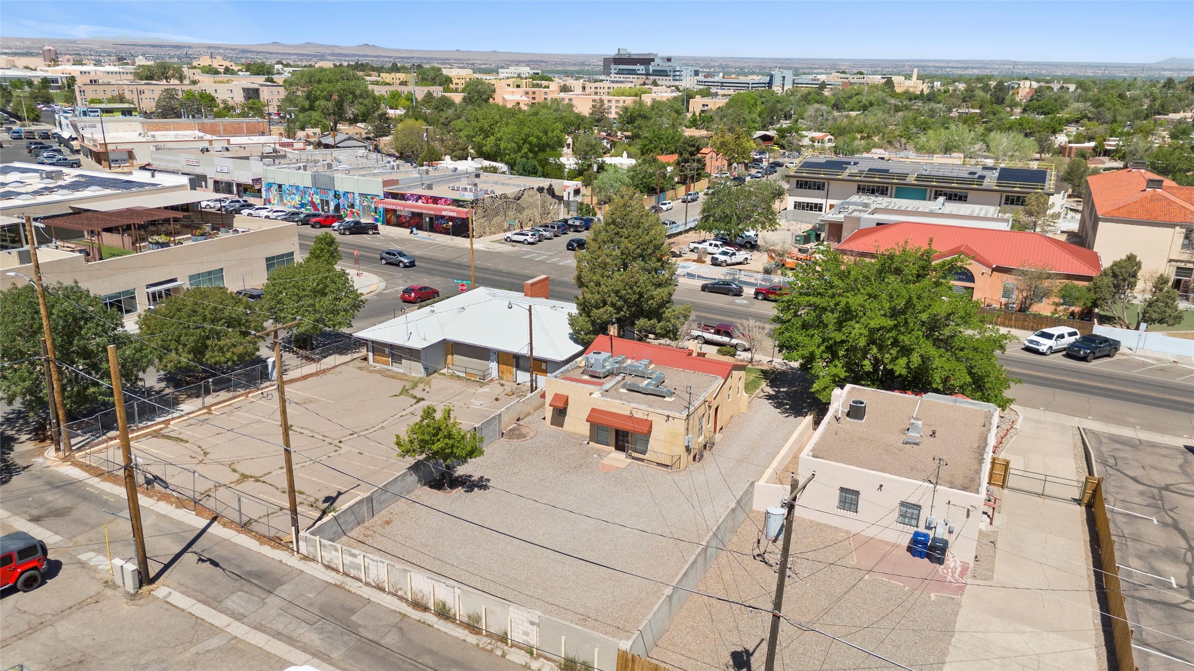 Charming and versatile 1926 Mission Revival in prime UNM/Nob Hill location, zoned MX-T for residential, commercial, or live/work use. This single-story home with a partially heated basement offers 1,734 sqft of flexible space, currently used as an office. Features include original wood beam and plank ceilings, hardwood and tile floors (no carpet), large newer windows for natural light, and a neutral color palette.Recent updates include a new metal roof, upgraded heating and refrigerated air with central ducting, high-speed internet, and updated electrical. Generous off-street parking adds convenience, and the layout supports 1-3 bedrooms or private office spaces.Perfect for professionals, students, or small businesses. Walkable to UNM and close to hospitals, shops, dining, and major transit routes. Move-in ready and full of character--live, work, or do both in one of Albuquerque's most desirable neighborhoods!