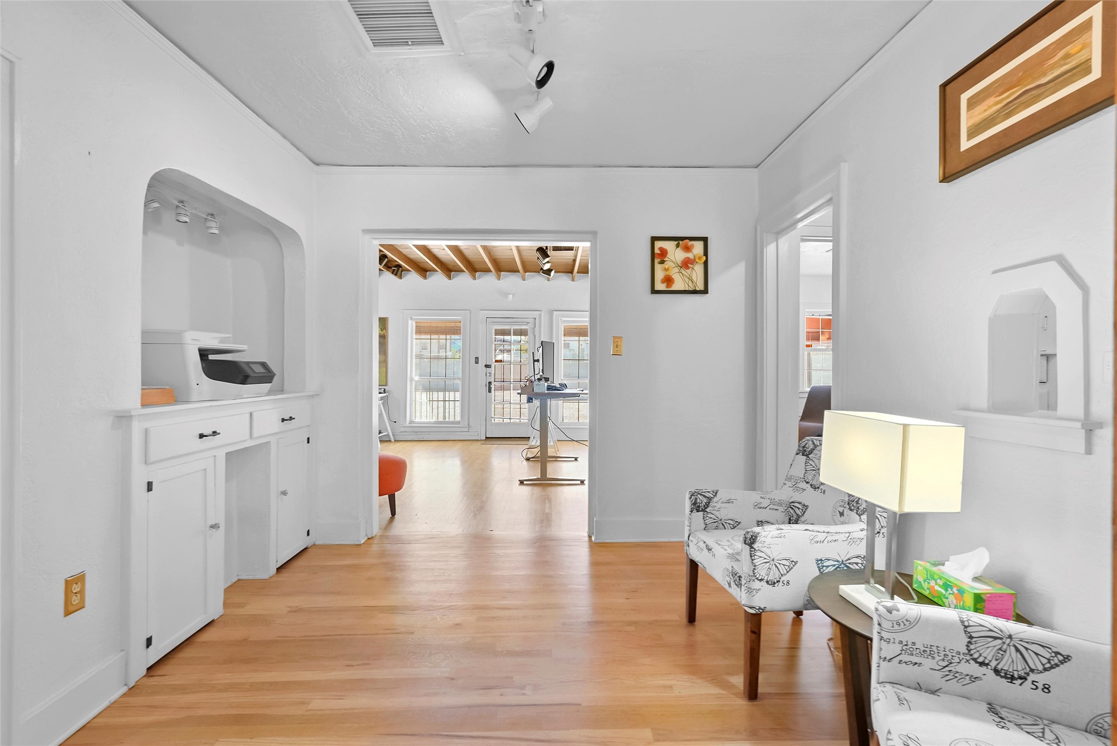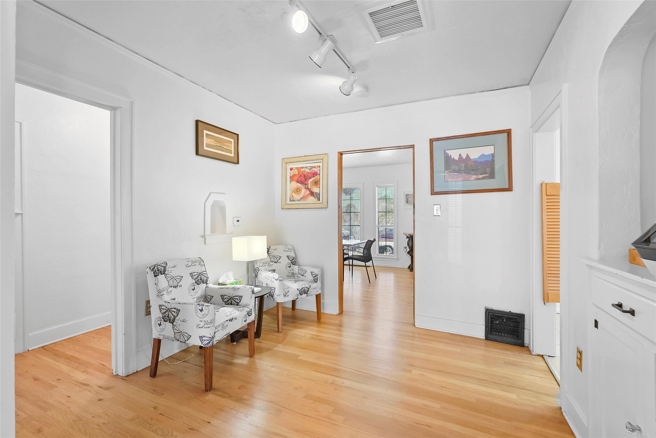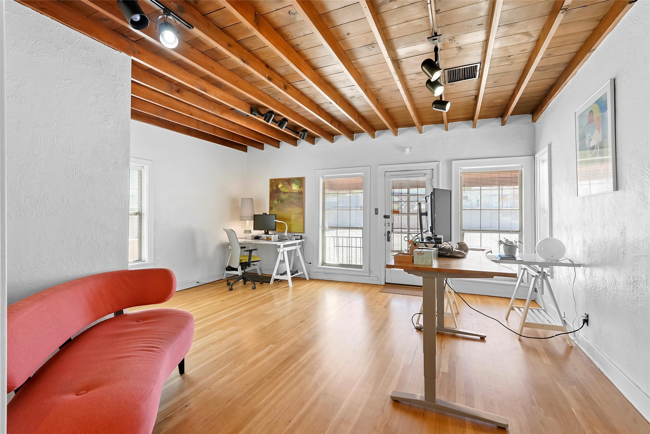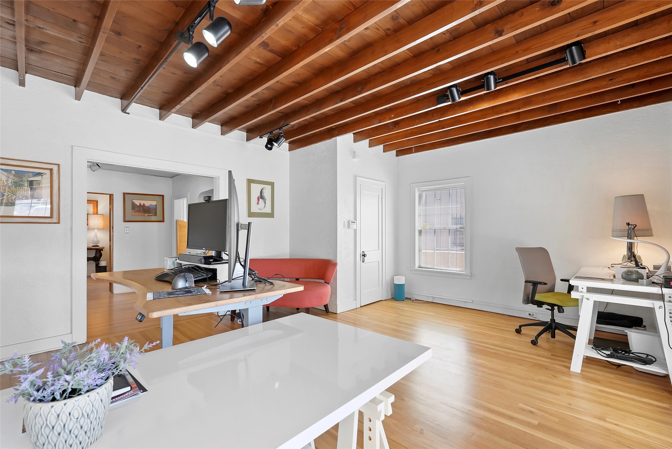 Charming and versatile 1926 Mission Revival in prime UNM/Nob Hill location, zoned MX-T for residential, commercial, or live/work use. This single-story home with a partially heated basement offers 1,734 sqft of flexible space, currently used as an office. Features include original wood beam and plank ceilings, hardwood and tile floors (no carpet), large newer windows for natural light, and a neutral color palette.Recent updates include a new metal roof, upgraded heating and refrigerated air with central ducting, high-speed internet, and updated electrical. Generous off-street parking adds convenience, and the layout supports 1-3 bedrooms or private office spaces.Perfect for professionals, students, or small businesses. Walkable to UNM and close to hospitals, shops, dining, and major transit routes. Move-in ready and full of character--live, work, or do both in one of Albuquerque's most desirable neighborhoods!