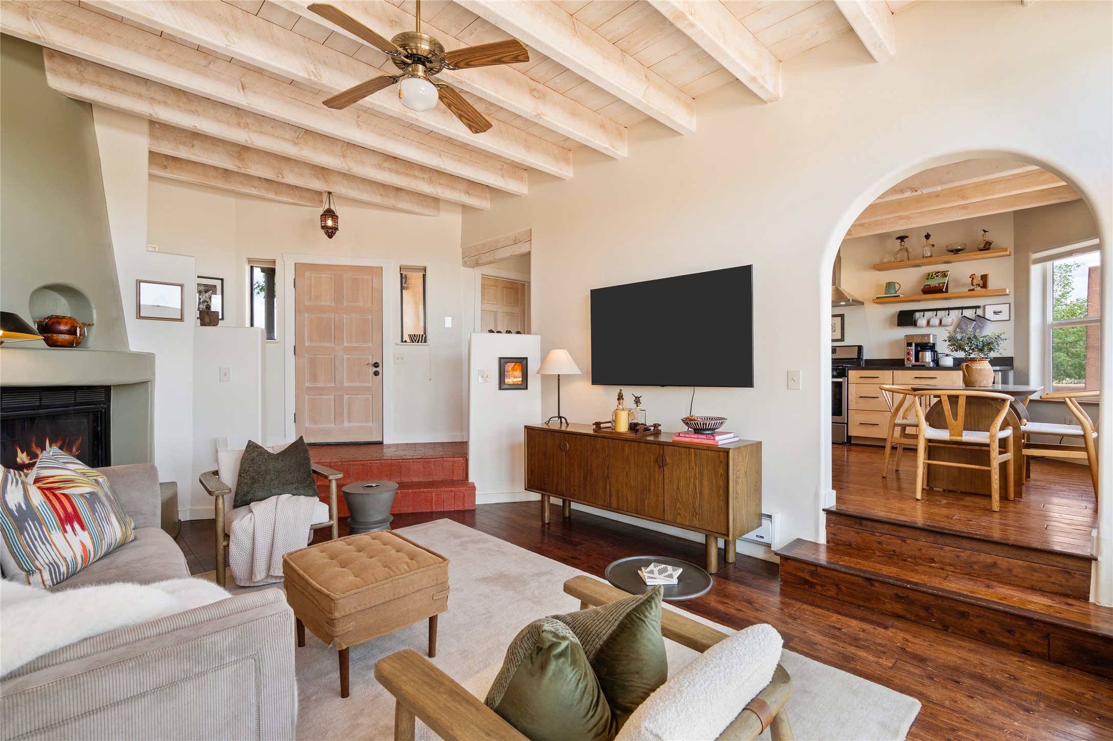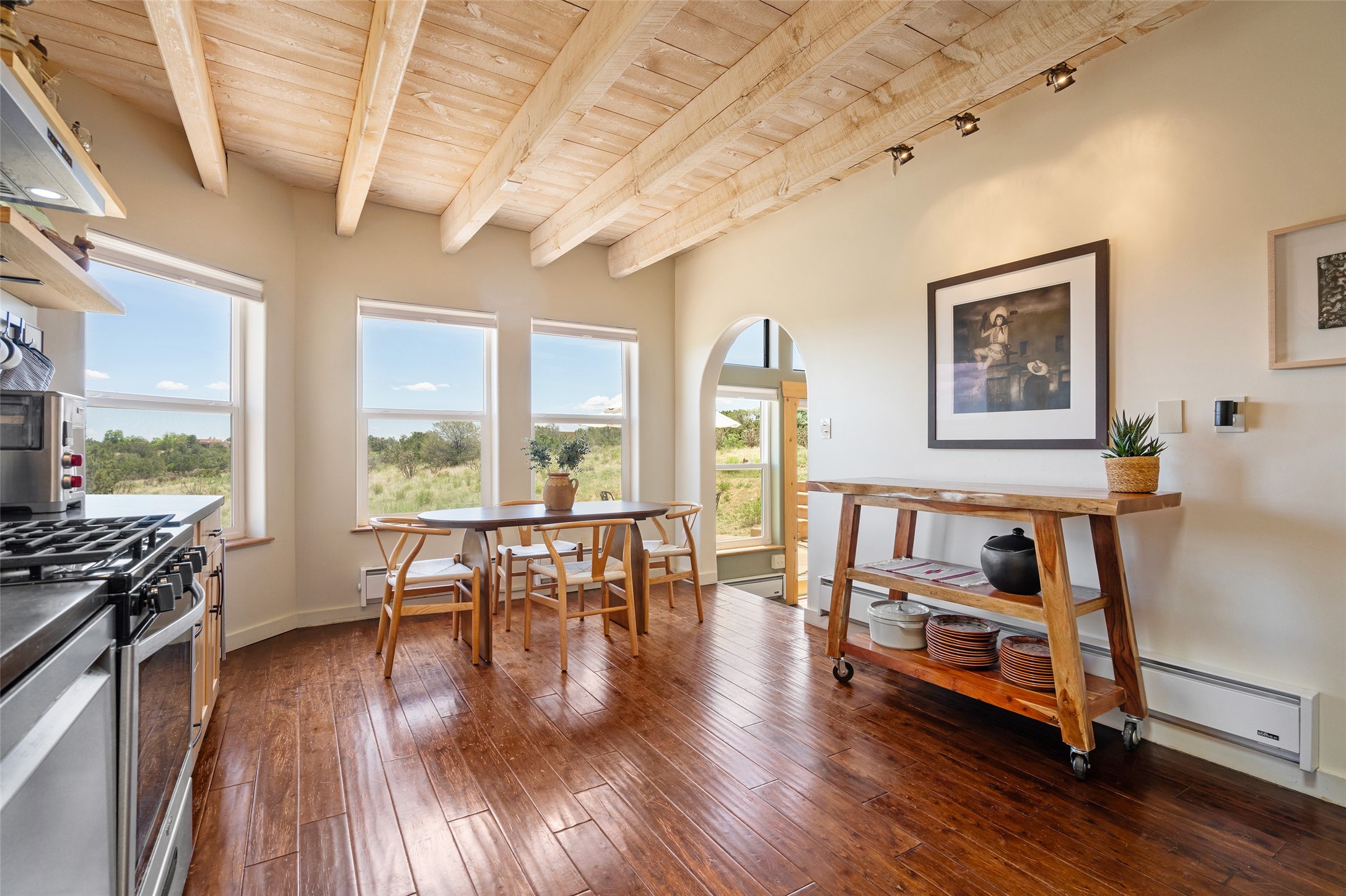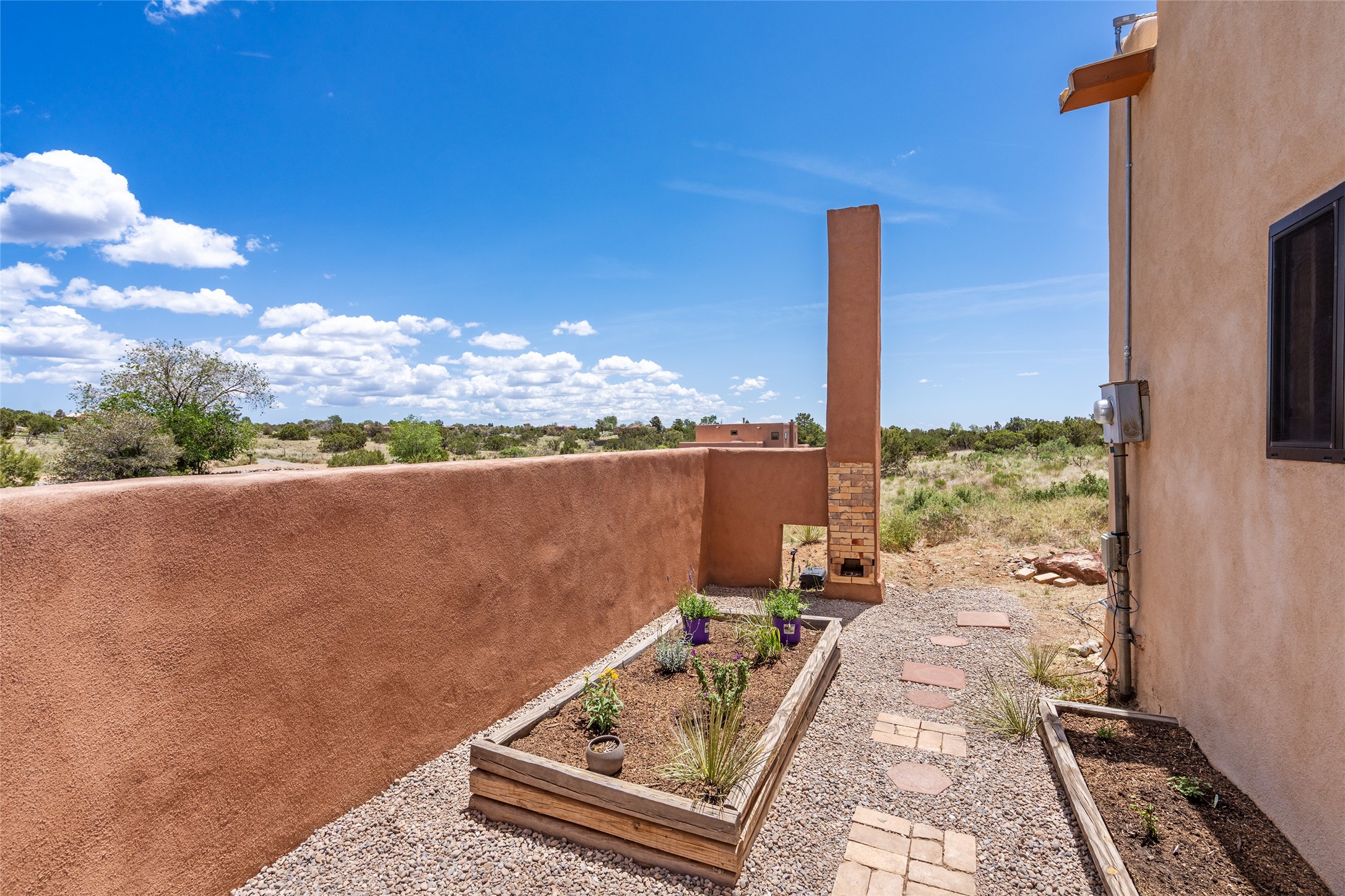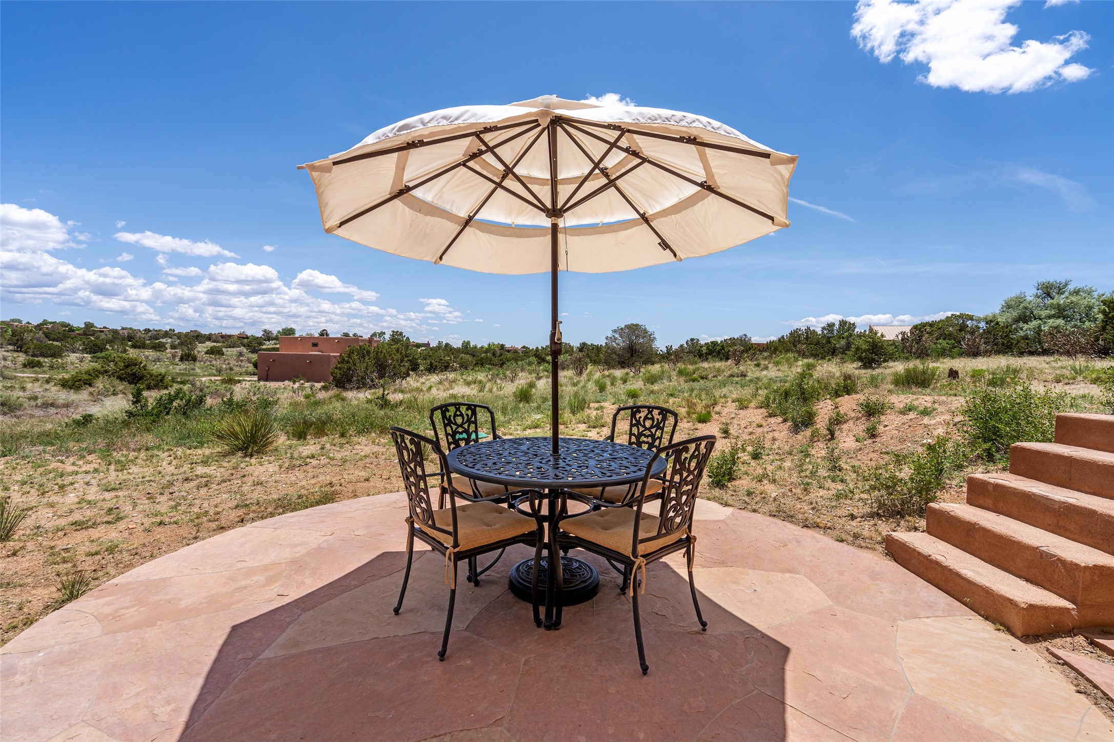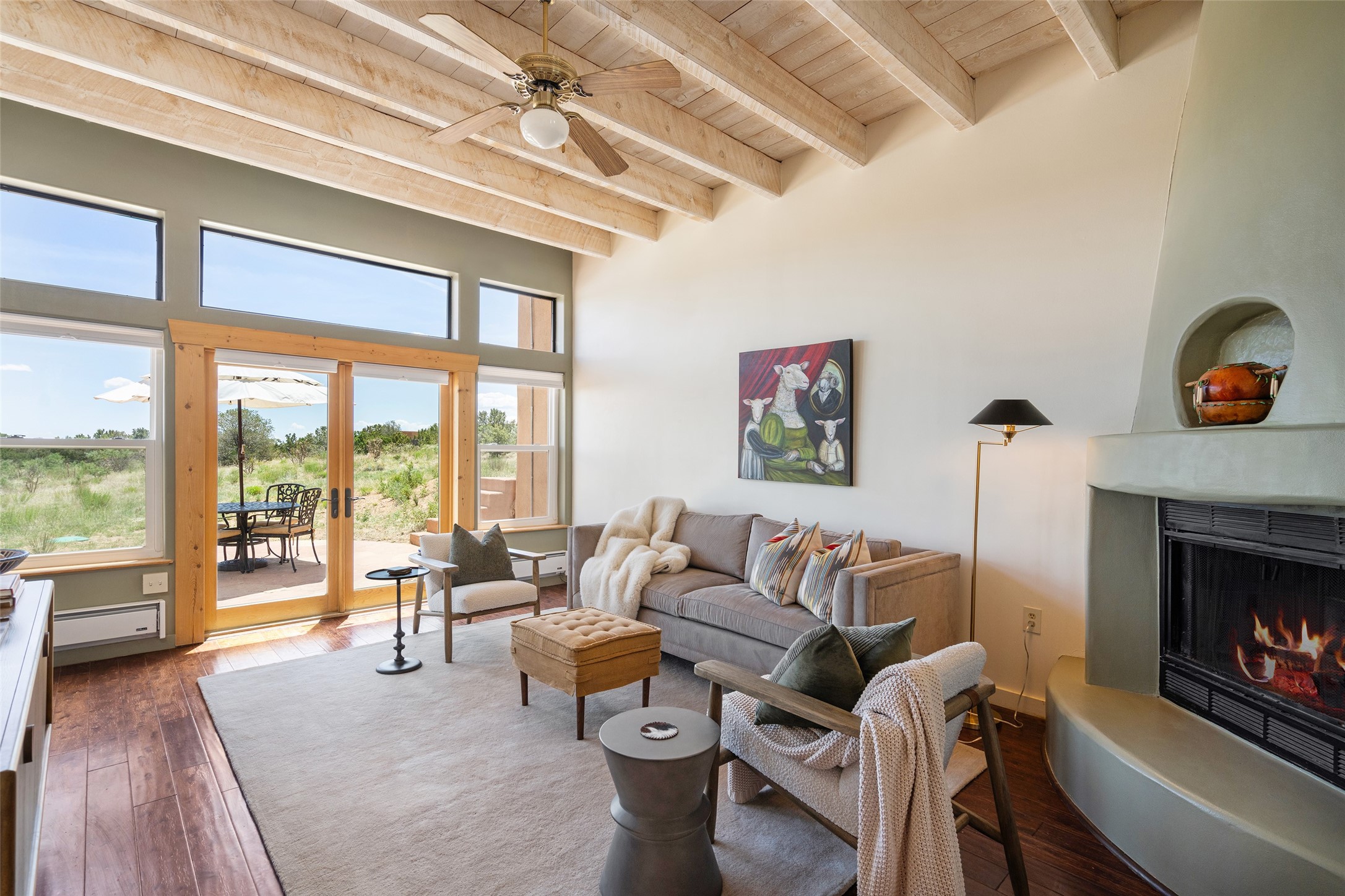 Welcoming 2 bed, 2 bath home in the northeast section of Eldorado, blending traditional Southwestern charm with modern comforts in one of Santa Fe's most sought-after communities.Enter into a warm and bright living area with hardwood flooring, beam ceilings, and a large kiva fireplace with nicho. Natural light floods in through the wall of picture windows and french doors leading to a patio perfect for dining al fresco and soaking up our spectacular sunsets.The updated kitchen is thoughtfully remodeled with stylish finishes, quality cabinetry, and stainless steel appliances. Both bathrooms have also been tastefully renovated with contemporary fixtures that enhance the home's understated luxury. The bedrooms are peaceful retreats, with the primary featuring its own private entrance into the spacious backyard.Step outside to enjoy the tranquility of Eldorado's wide-open skies and natural landscapes, with nearby access to miles of scenic trails in the Eldorado open space and the Galisteo Basin Preserve -- ideal for hiking, wildlife viewing, and peaceful reflection.Residents of Eldorado enjoy an exceptional array of amenities, including a vibrant community clubhouse, swimming pool, fitness center, tennis courts, horse stables, and dog parks. Whether you're seeking quiet retreat or active engagement, this community provides the perfect setting.3 Raudo Road is more than a home -- it's a lifestyle rooted in comfort, and natural beauty. Don't miss your opportunity to experience the unique charm of Eldorado living. Schedule your private showing today.