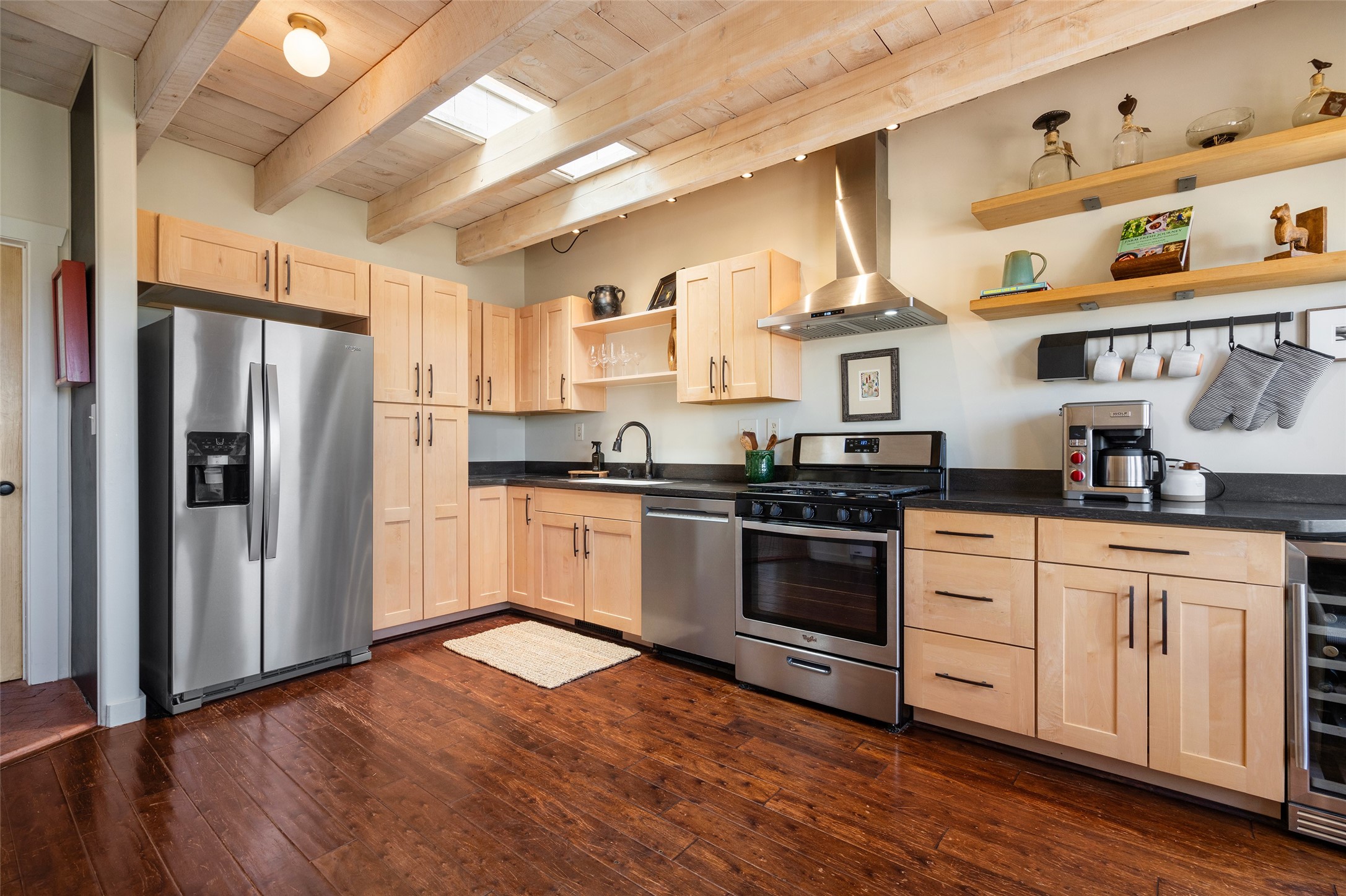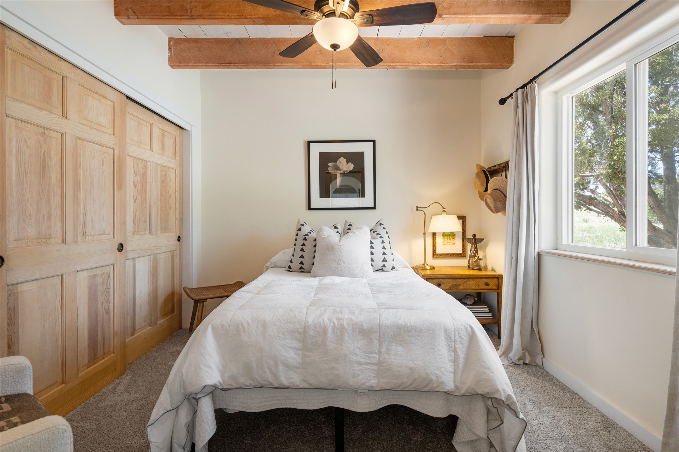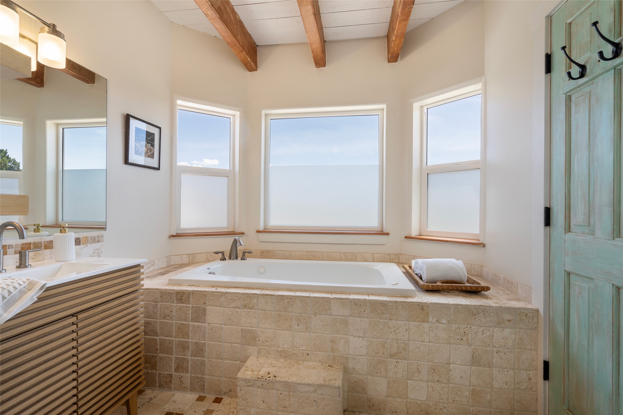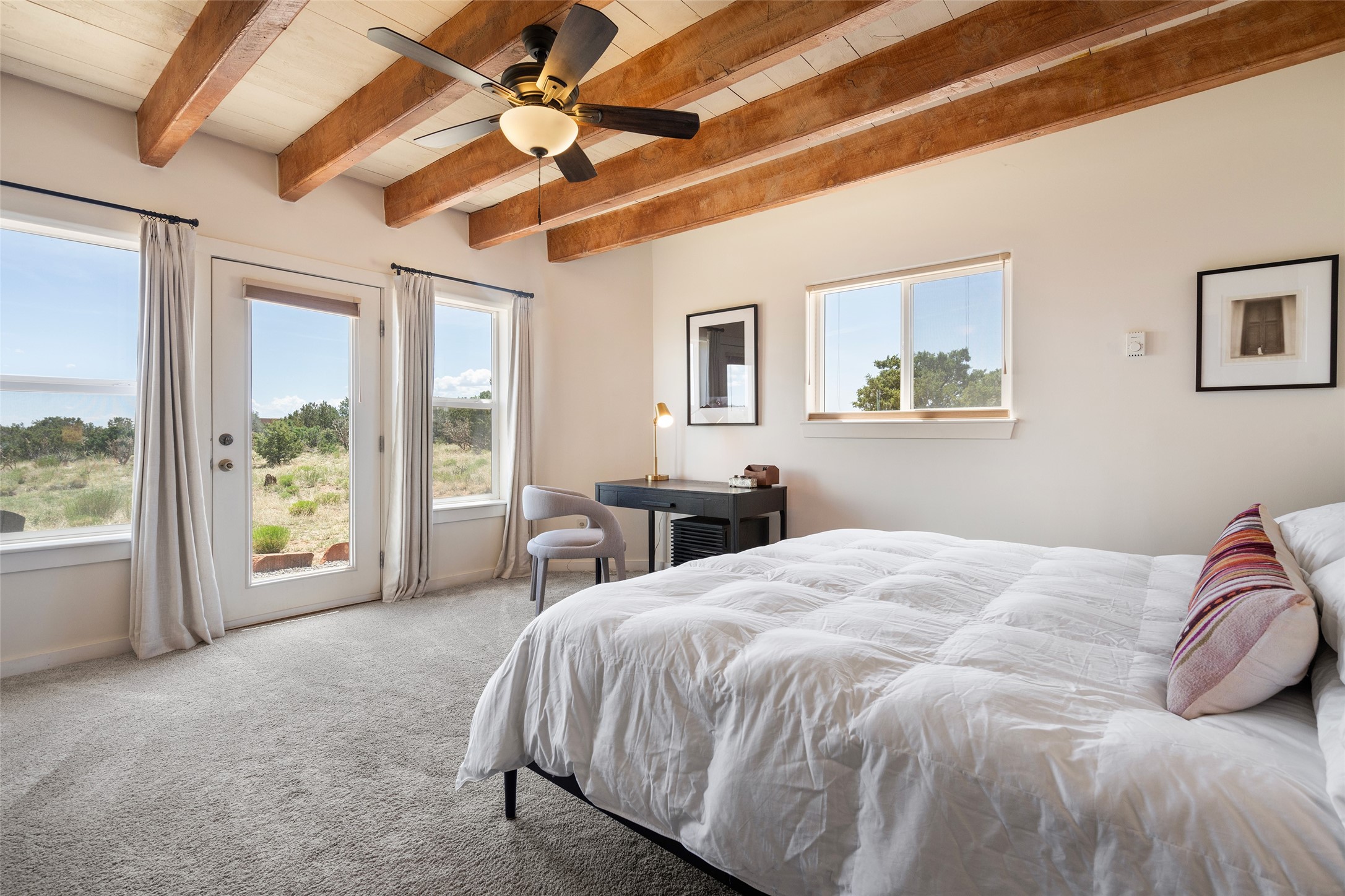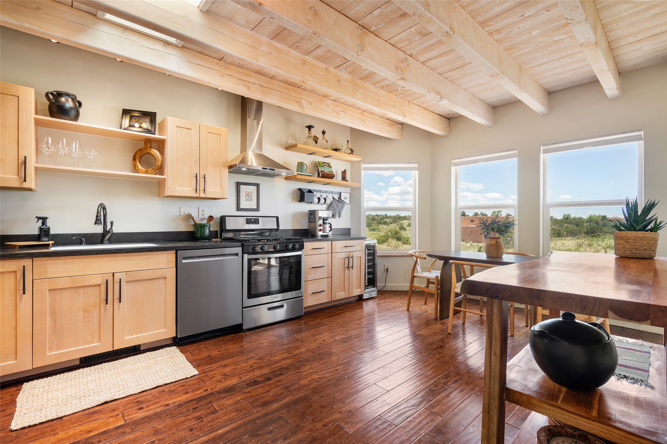 Welcoming 2 bed, 2 bath home in the northeast section of Eldorado, blending traditional Southwestern charm with modern comforts in one of Santa Fe's most sought-after communities.Enter into a warm and bright living area with hardwood flooring, beam ceilings, and a large kiva fireplace with nicho. Natural light floods in through the wall of picture windows and french doors leading to a patio perfect for dining al fresco and soaking up our spectacular sunsets.The updated kitchen is thoughtfully remodeled with stylish finishes, quality cabinetry, and stainless steel appliances. Both bathrooms have also been tastefully renovated with contemporary fixtures that enhance the home's understated luxury. The bedrooms are peaceful retreats, with the primary featuring its own private entrance into the spacious backyard.Step outside to enjoy the tranquility of Eldorado's wide-open skies and natural landscapes, with nearby access to miles of scenic trails in the Eldorado open space and the Galisteo Basin Preserve -- ideal for hiking, wildlife viewing, and peaceful reflection.Residents of Eldorado enjoy an exceptional array of amenities, including a vibrant community clubhouse, swimming pool, fitness center, tennis courts, horse stables, and dog parks. Whether you're seeking quiet retreat or active engagement, this community provides the perfect setting.3 Raudo Road is more than a home -- it's a lifestyle rooted in comfort, and natural beauty. Don't miss your opportunity to experience the unique charm of Eldorado living. Schedule your private showing today.