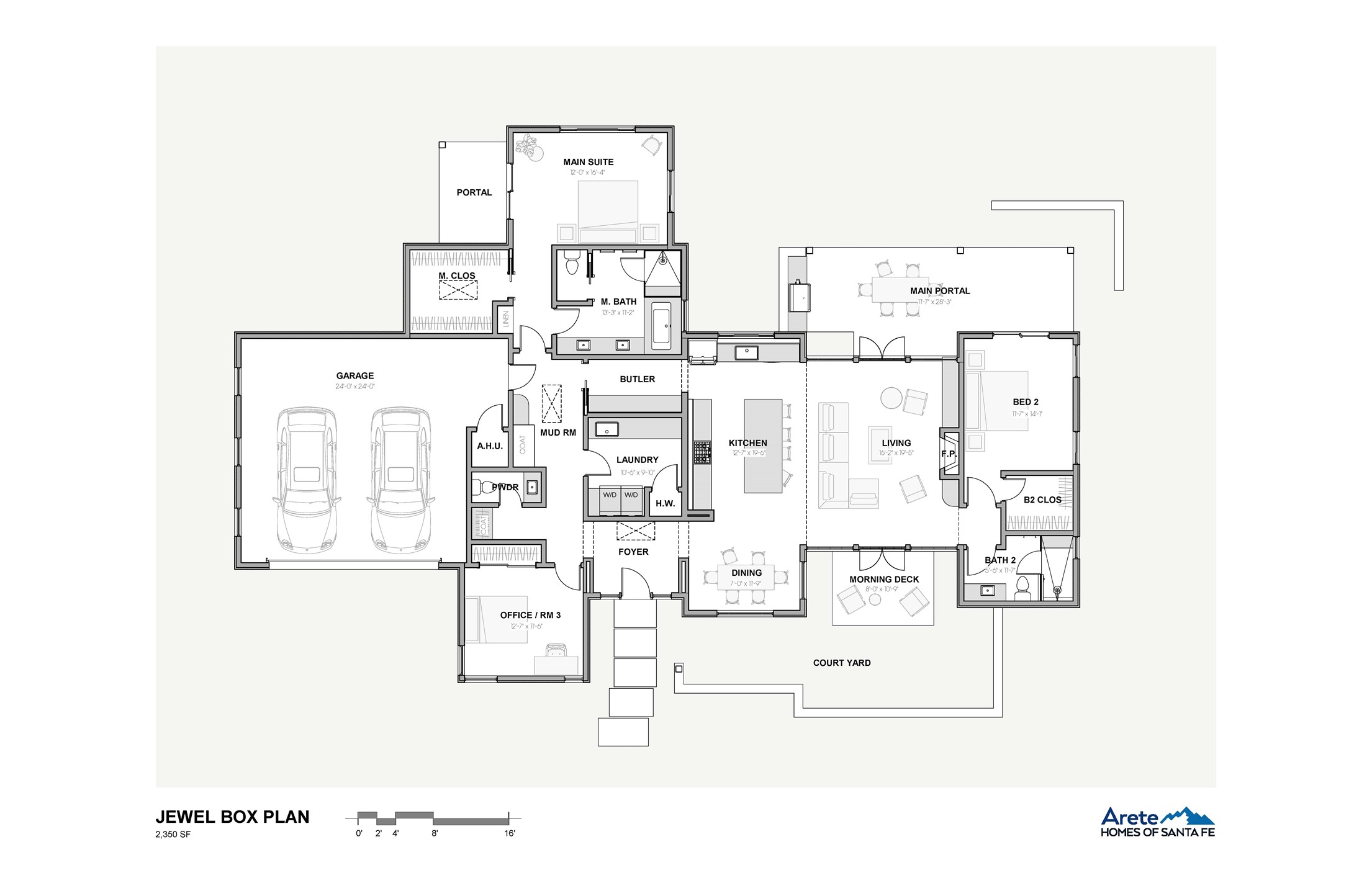 Thoughtfully designed by Santa Fe architecture firm StudioBOSE, to capture the beauty of the New Mexico landscape, the Jewel Box Plan lives much larger than its 2,350 square feet suggest. With floor-to-ceiling windows and a seamless indoor-outdoor connection, this home is a luminous retreat where every view becomes a living work of art. The layout includes a luxurious owner's suite, an oversized second bedroom, and a flexible third bedroom that can double as a home office or guest room. A spacious butler's pantry, oversized laundry room, and multiple outdoor living areas offer both function and comfort for everyday living and entertaining. This home is ideally sited, backing directly to preserved open space and offering a framed view of the Sangre de Cristo Mountains from your living room and rear portal. This home will feature high-end finishes throughout, including GE Monogram appliances, natural quartzite countertops, porcelain tile flooring, and plaster walls in common areas, Kohler plumbing fixtures, Pella windows, a tankless water heater, and LG washer and dryer. Located just 15 minutes from downtown Santa Fe, Tierra Antigua is a 44-acre community with only 23 homesites and over 50% preserved open space. It offers the rare combination of privacy, convenience, and connection to nature. With easy-to-build lots, utilities at the lot line, a streamlined design review process, and low $166/month HOA fees, Tierra Antigua makesbuilding your dream home simple and stress-free.