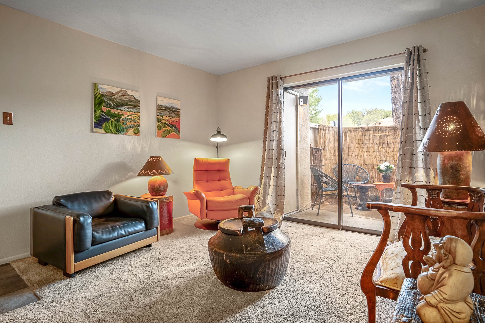 Charming, Ground-Level One-Bedroom Condo. This beautifully maintained ground-level condo offers the perfect blend of privacy and convenience. With no stairs to navigate and parking just steps from the front door, daily living is a breeze. Inside, you'll find soft grey carpeting and attractive tile countertops in both the kitchen and bathroom. Nestled in a quiet, tucked-away spot within a gated community, this unit enjoys serene views of treetops and open skies--without any neighboring buildings in sight. The private patio is a peaceful retreat, complete with blooming potted flowers and a cozy bistro set--ideal for enjoying your morning coffee or relaxing with a glass of wine in the early evening. When you're ready to head out and enjoy the perks of community living, The Reserve has you covered! Take a dip in the sparkling outdoor pool, unwind in the relaxing spa, or get your heart pumping in the fabulous fitness center. There's also a convenient laundry facility and scenic walking trails just steps from your door. Comfortable, quiet, and move-in ready--this condo feels like home the moment you walk in!