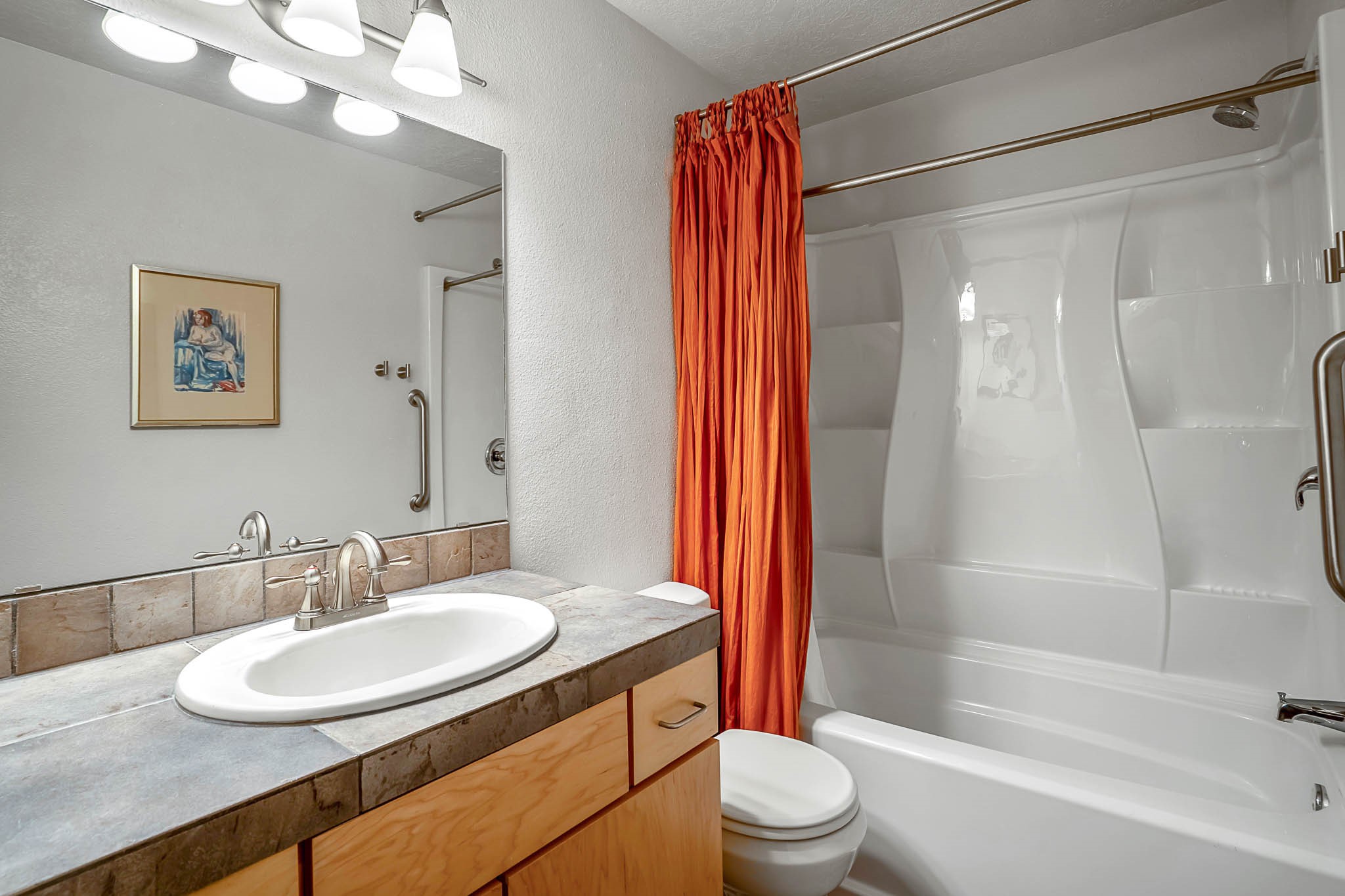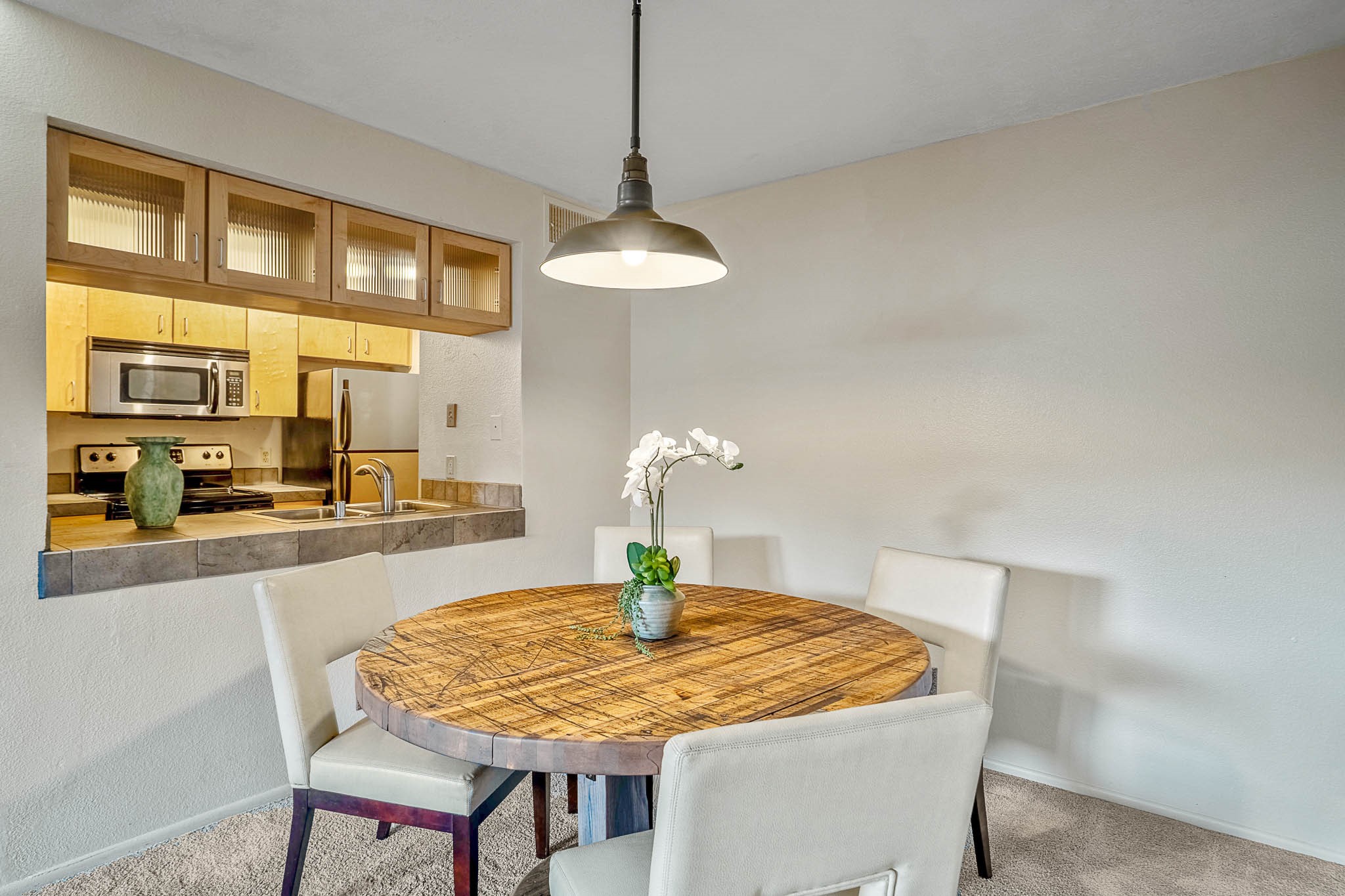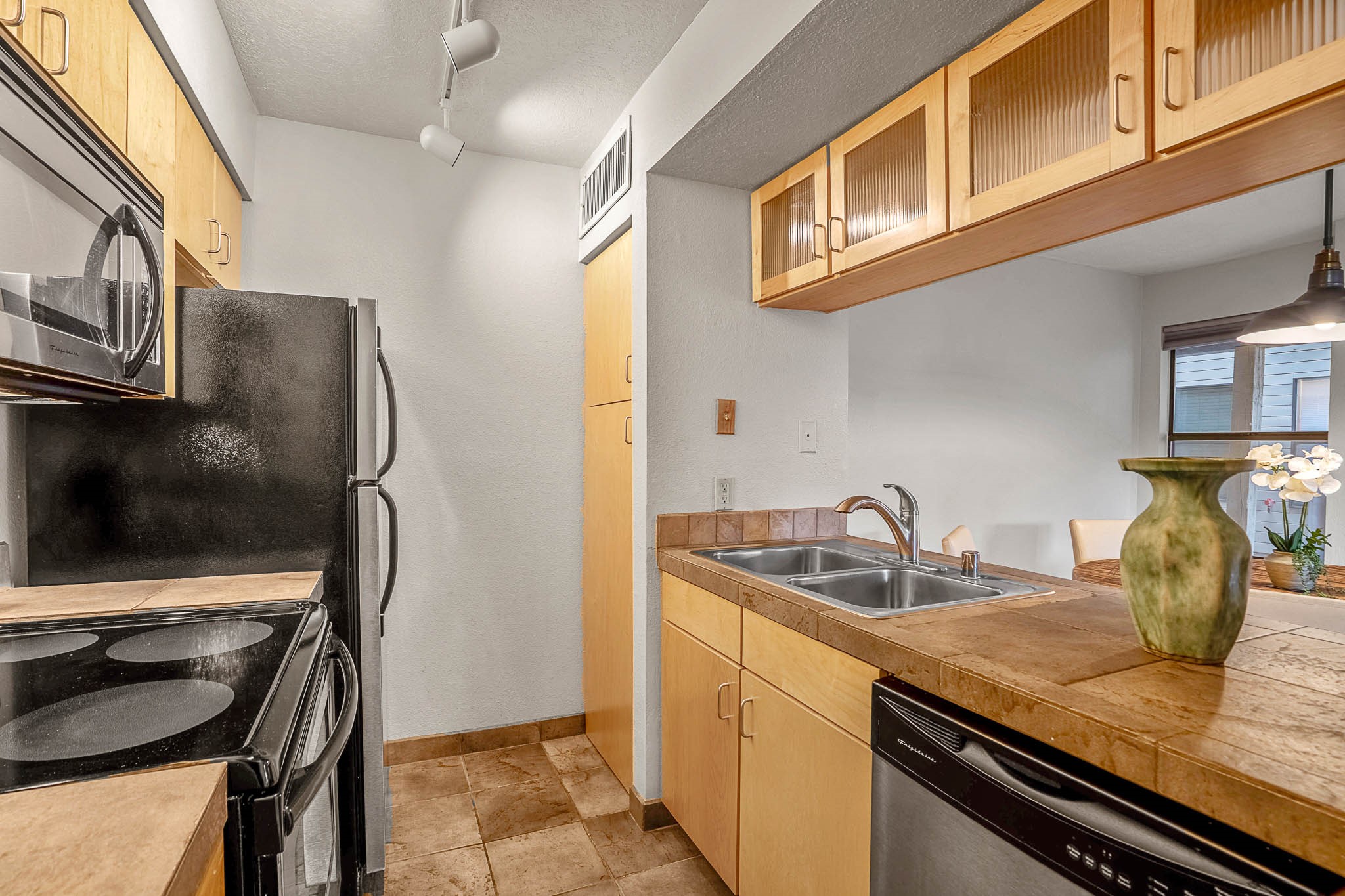 Charming, Ground-Level One-Bedroom Condo. This beautifully maintained ground-level condo offers the perfect blend of privacy and convenience. With no stairs to navigate and parking just steps from the front door, daily living is a breeze. Inside, you'll find soft grey carpeting and attractive tile countertops in both the kitchen and bathroom. Nestled in a quiet, tucked-away spot within a gated community, this unit enjoys serene views of treetops and open skies--without any neighboring buildings in sight. The private patio is a peaceful retreat, complete with blooming potted flowers and a cozy bistro set--ideal for enjoying your morning coffee or relaxing with a glass of wine in the early evening. When you're ready to head out and enjoy the perks of community living, The Reserve has you covered! Take a dip in the sparkling outdoor pool, unwind in the relaxing spa, or get your heart pumping in the fabulous fitness center. There's also a convenient laundry facility and scenic walking trails just steps from your door. Comfortable, quiet, and move-in ready--this condo feels like home the moment you walk in!