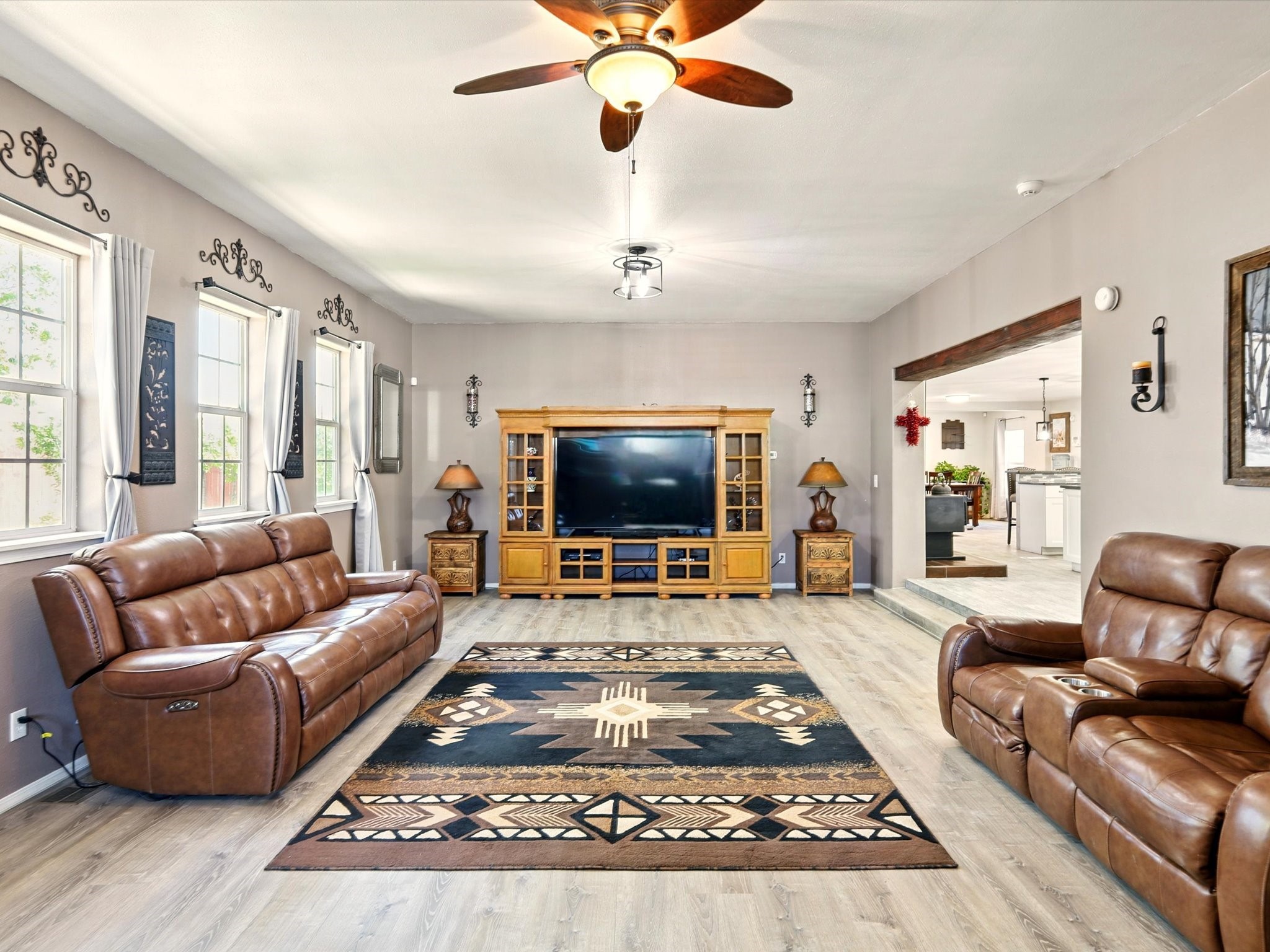 New Price Improvement + $2,000 Seller Credit Offered35 Walnut Trail, Velarde, NMLuxury meets tranquility in this beautifully updated four-bedroom, three-bathroom home located in the heart of Northern New Mexico. Ideally situated with convenient access to Los Alamos, Santa Fe, and Espaola, this property offers the perfect balance of comfort, style, and location.The sellers are now offering a $2,000 credit that can be used toward buying down the interest rate, covering closing costs, or applying toward other buyer needs--an excellent incentive for prospective homeowners.Recently renovated, this home features a seamless combination of modern upgrades and classic New Mexico charm. Originally built around a manufactured home, the property now includes high-quality stick-built additions that increase both value and structural integrity.Interior highlights include a spacious, light-filled living area with custom fixtures and a wood-burning fireplace, a stunning kitchen with granite countertops, white cabinetry, decorative tile backsplash, and a generous dining space perfect for gatherings.The primary suite offers a private retreat with a gas fireplace and a well-appointed ensuite bathroom. Three additional bedrooms and two more full bathrooms provide plenty of space for family, guests, or home office needs.Step outside to enjoy a fully enclosed and professionally landscaped yard, offering privacy and outdoor enjoyment.Schedule your private tour today to experience the space, style, and opportunity this home provides.