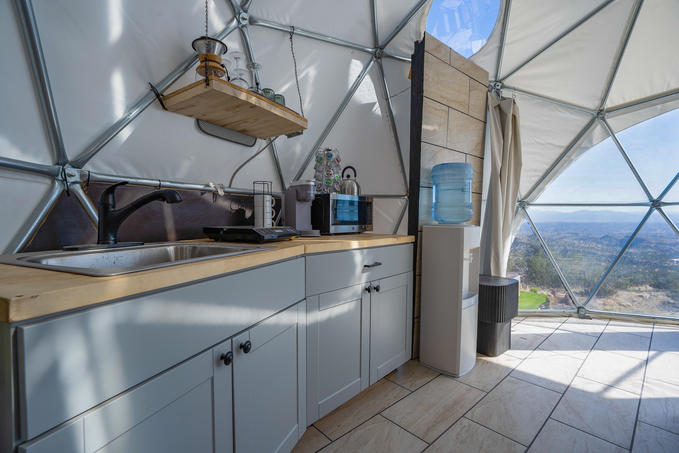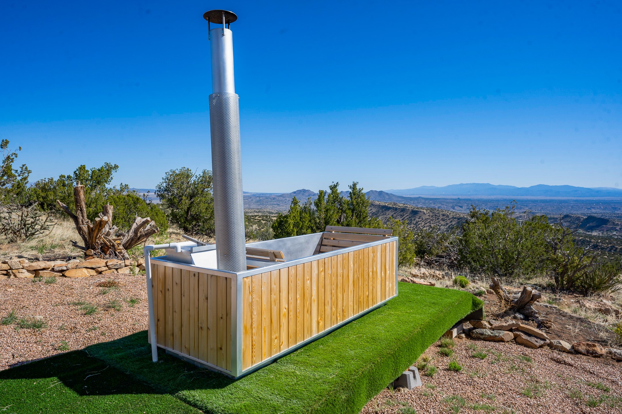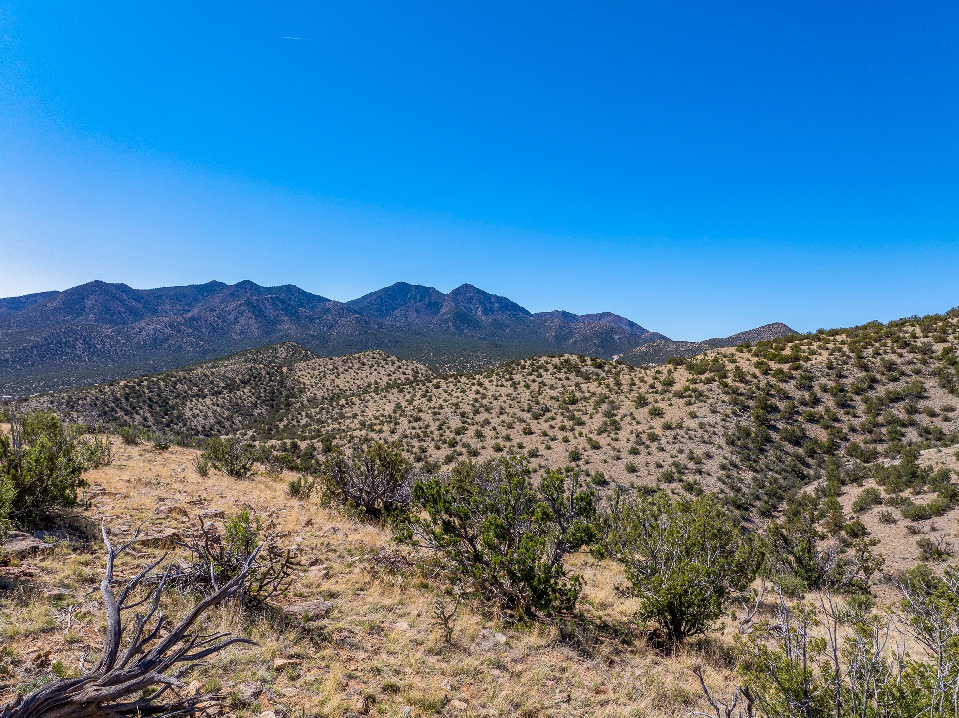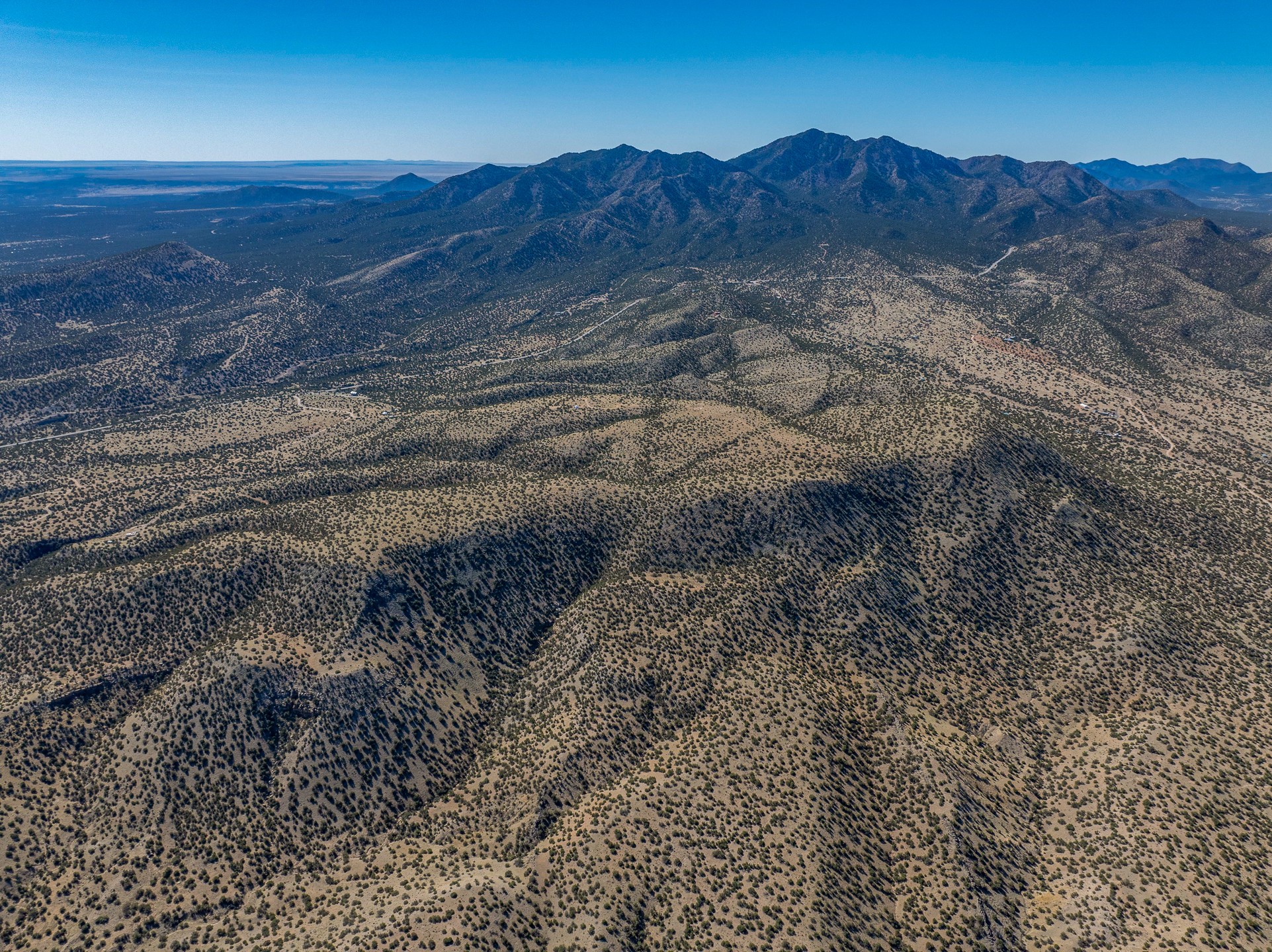 Two hundred and thirty mountain top acres with a PVC dome featuring all modern conveniences near Madrid. On two lots with two wells, this private getaway awaits the adventurous soul who wants to get above it all while still being connected. With 360 degree views from the mountain top, and the dome sited on a slope with amazing views of the Sangre de Cristo's, buyers will find this to be an incomparable view property. This far out, the Milky Way will shine bright, and the wood fired hot tub is the perfect place to stargaze from after a day of exploring the mountain. The dome has a small kitchen, bathroom, loft storage area, mini-split for heating and cooling, a luxurious glamping hideout or a cozy full time home. The solar system is modern and robust, and sewage is handled by an innovative bio-gas system. Closer than it feels, the property is just a half mile from the pavement, but that half mile is a steep and rocky climb, and a 4x4 with some clearance is recommended.