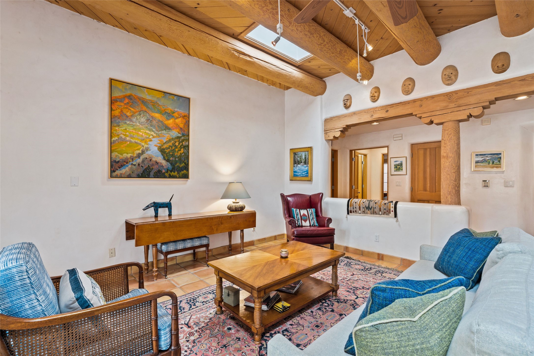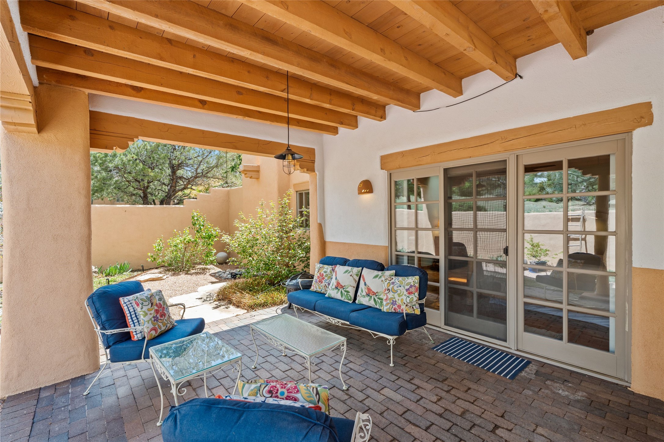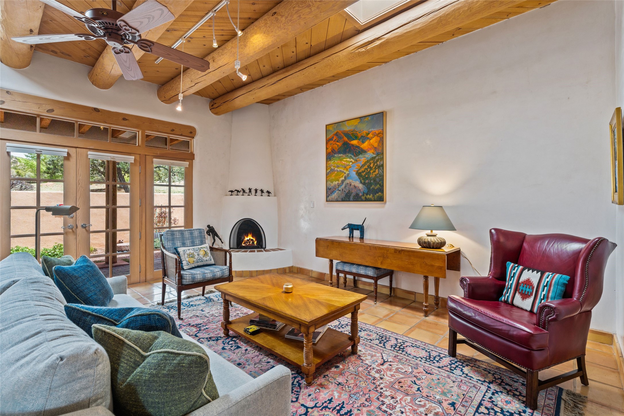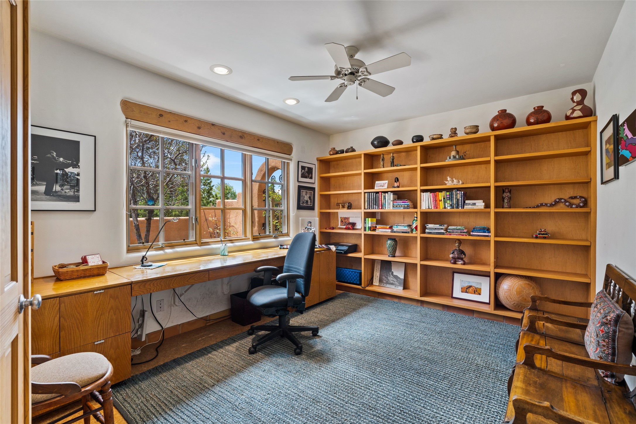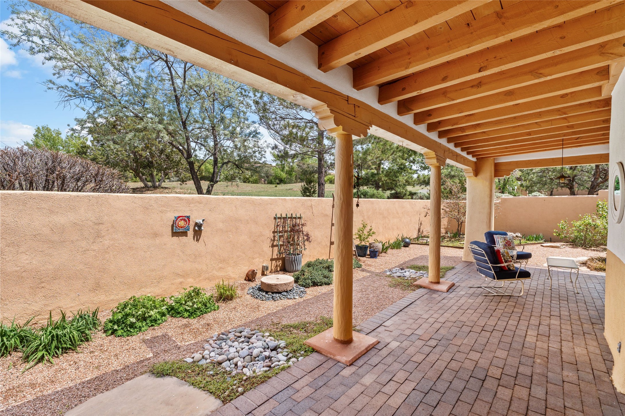 Quail Run's perfect condo; two bedrooms with an office/den! This special Pinon C floorplan is a classic with beautiful diamond plaster walls, inviting Saltillo tile and two Kiva fireplaces. Extra skylights make for plenty of light in this open space with a charming eat in kitchen featuring a lengthy banco situated below long windows that showcase serene nature views. Located on the fourth fairway with a rear portal in the midst of a lovely garden and ample room to enjoy the sunrises. This quiet location captures Quail Run at its best. Home ownership includes 24 hour hosted security, state of the art fitness and pool areas, tennis, pickleball and engaging 9 hole golf course as well as plenty of stimulating fitness classes and social clubs; come and experience!