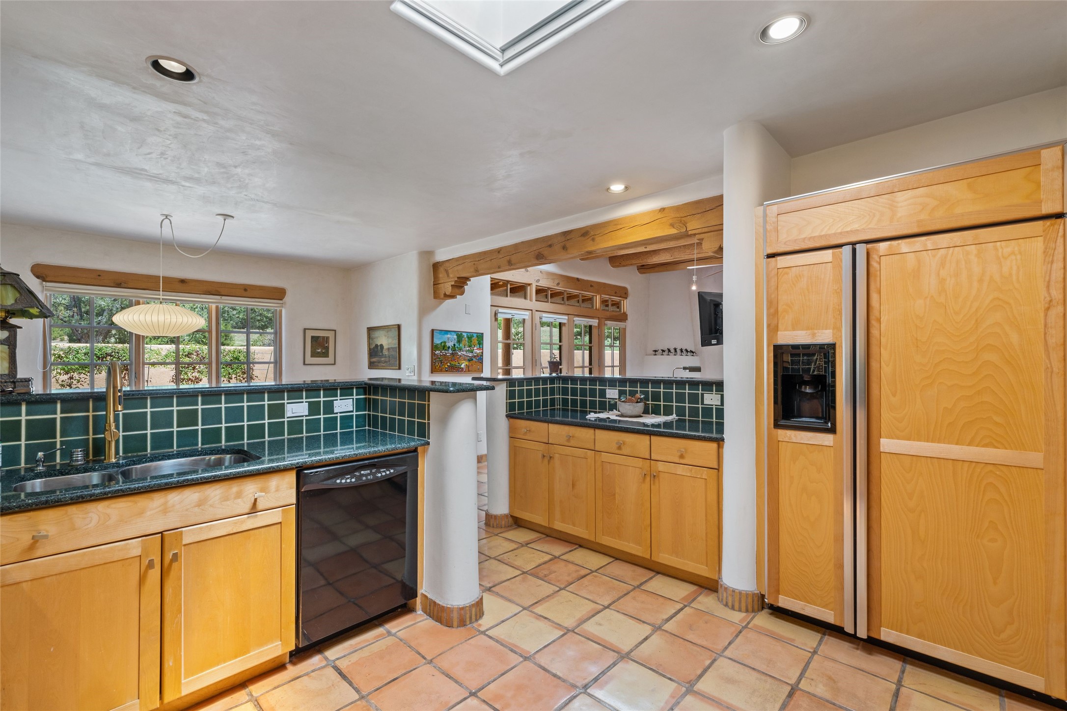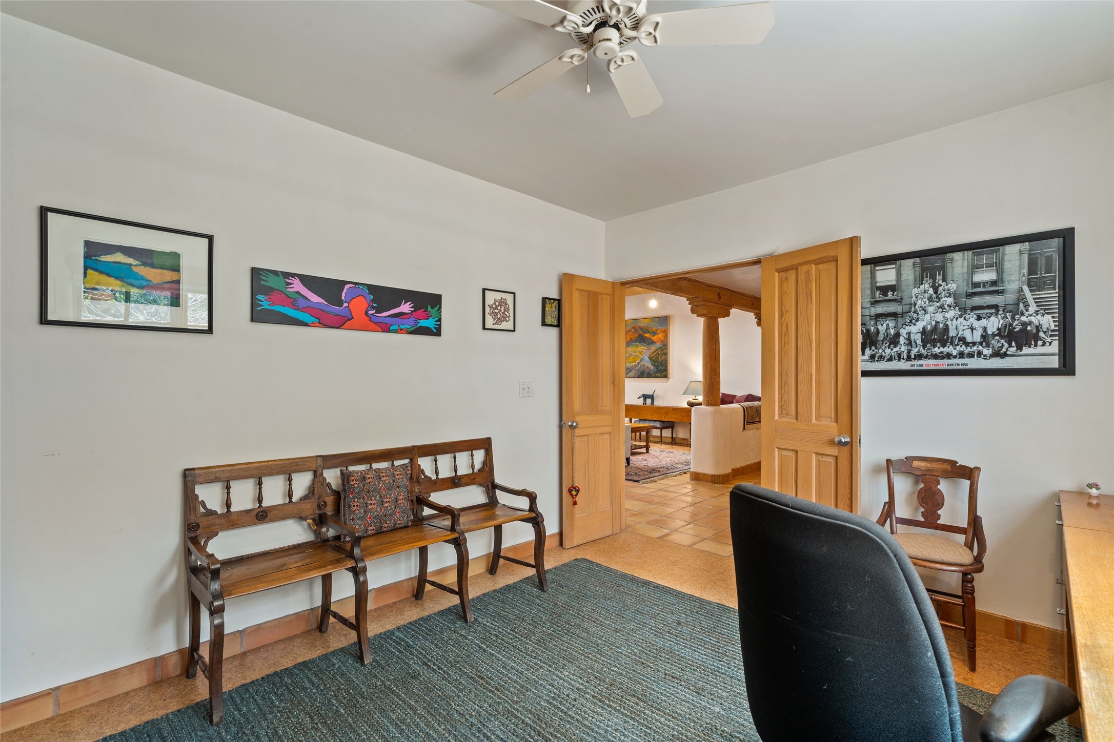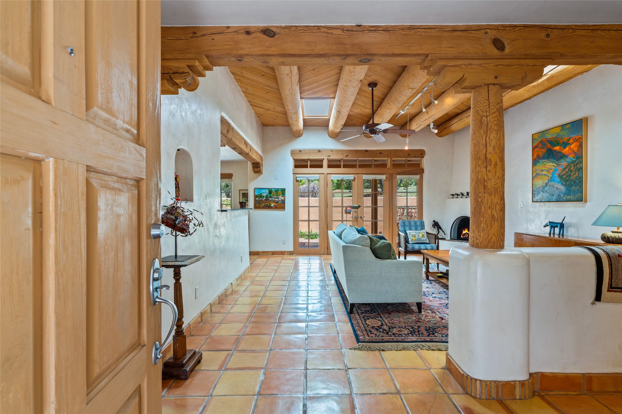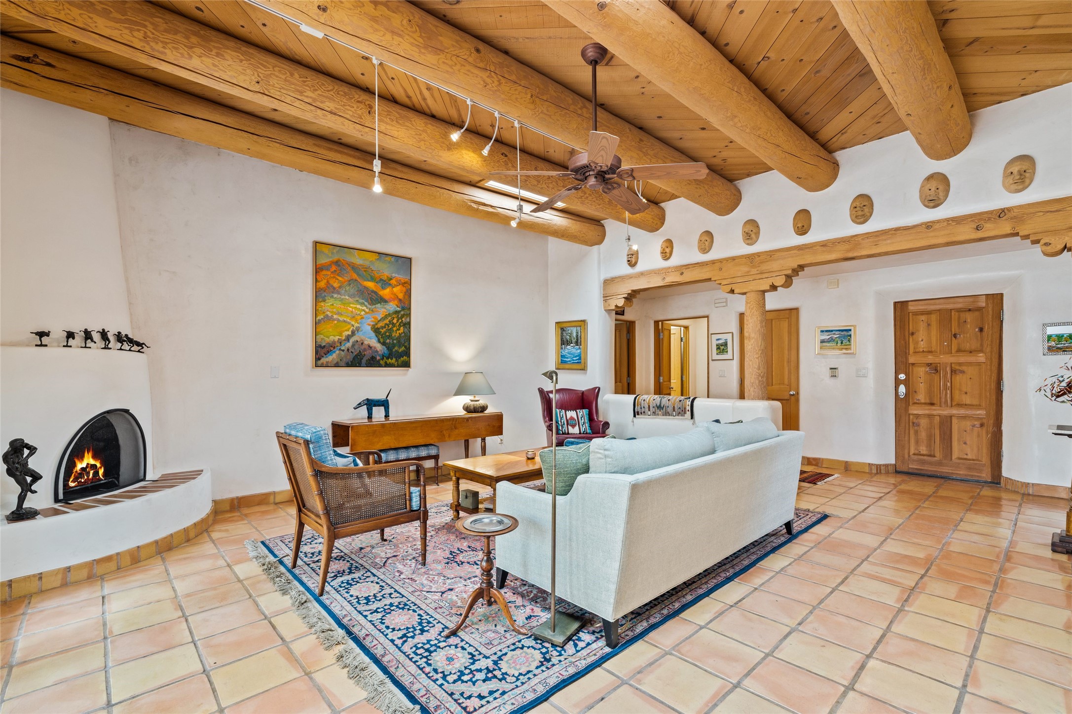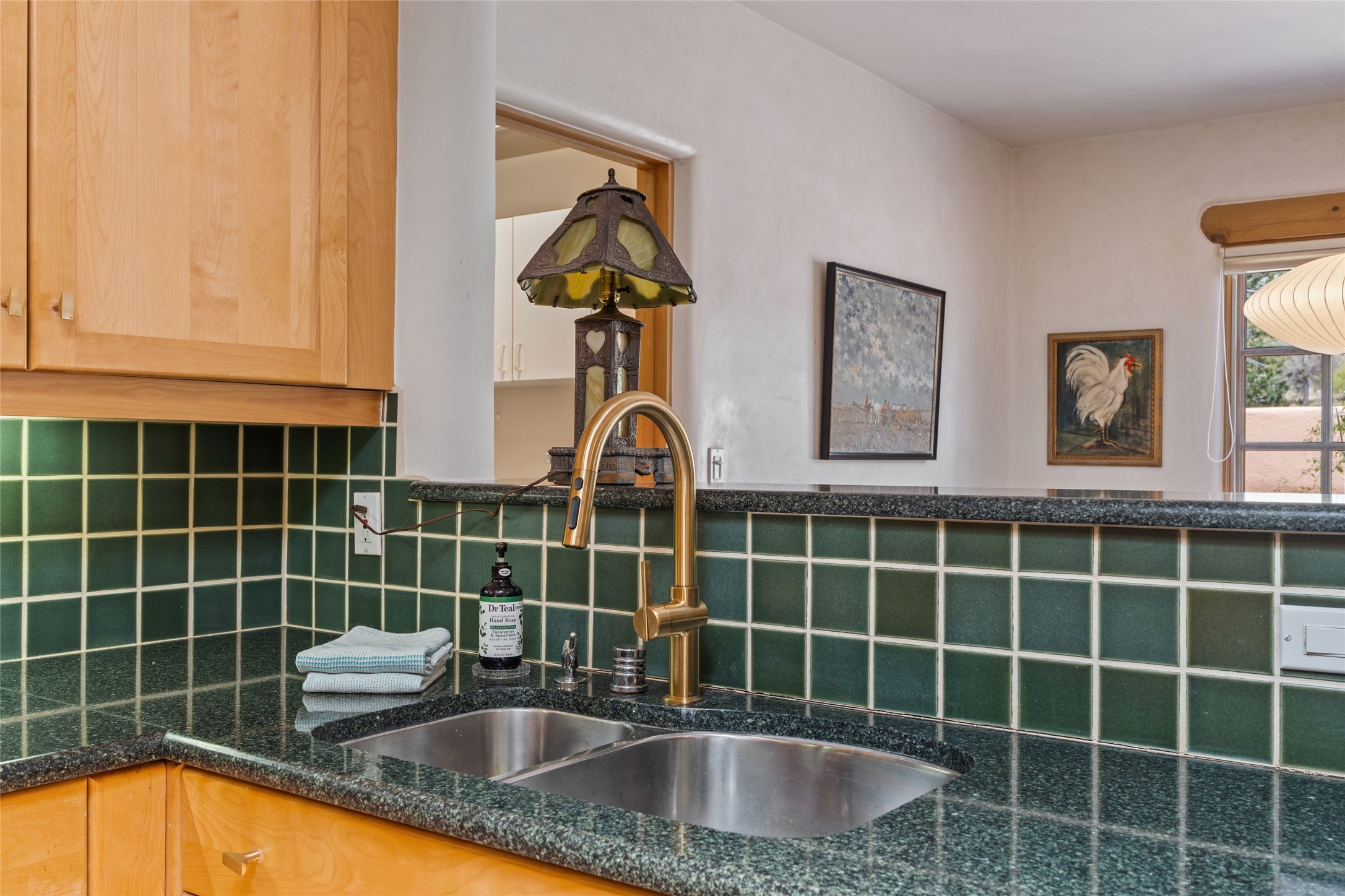 Quail Run's perfect condo; two bedrooms with an office/den! This special Pinon C floorplan is a classic with beautiful diamond plaster walls, inviting Saltillo tile and two Kiva fireplaces. Extra skylights make for plenty of light in this open space with a charming eat in kitchen featuring a lengthy banco situated below long windows that showcase serene nature views. Located on the fourth fairway with a rear portal in the midst of a lovely garden and ample room to enjoy the sunrises. This quiet location captures Quail Run at its best. Home ownership includes 24 hour hosted security, state of the art fitness and pool areas, tennis, pickleball and engaging 9 hole golf course as well as plenty of stimulating fitness classes and social clubs; come and experience!