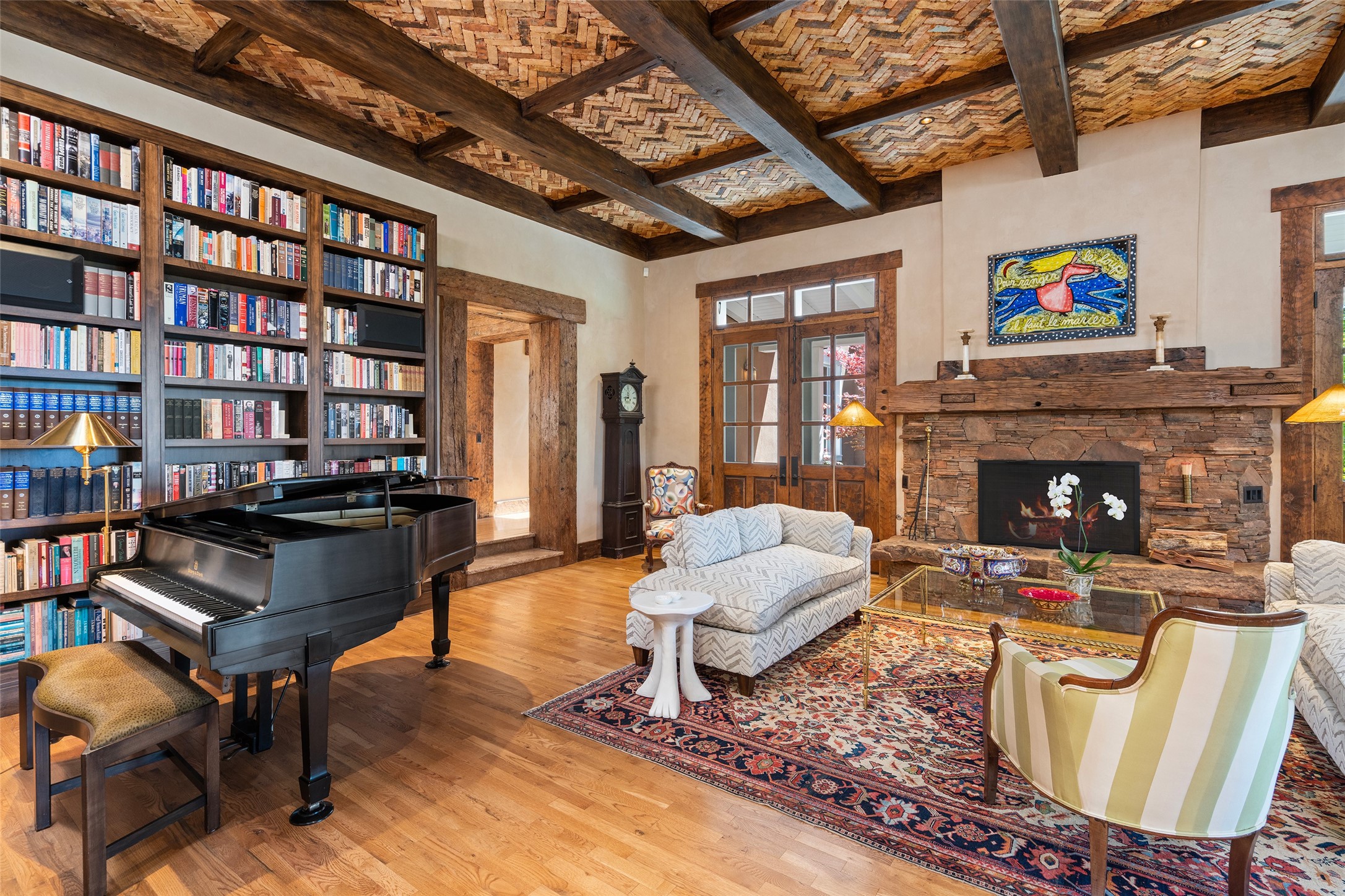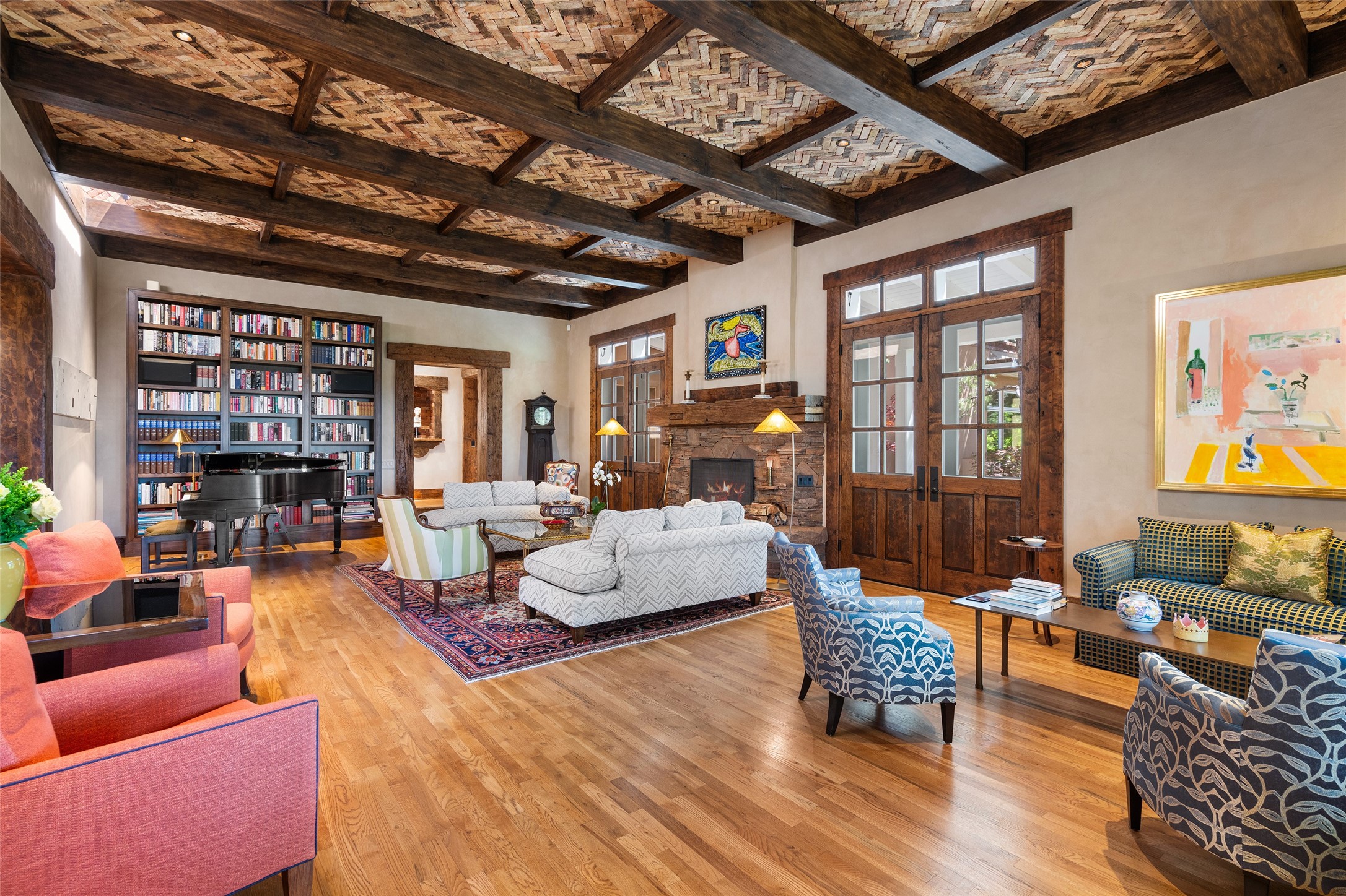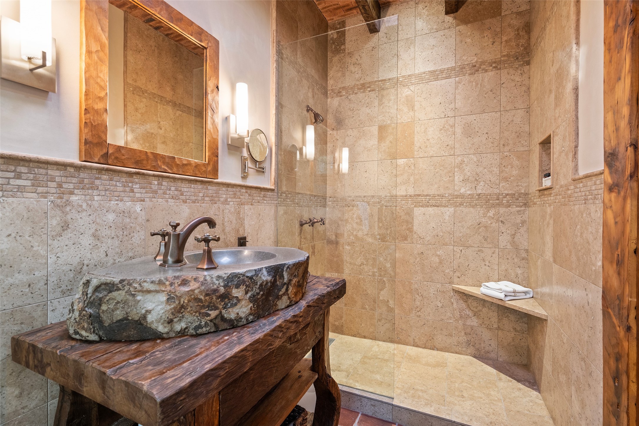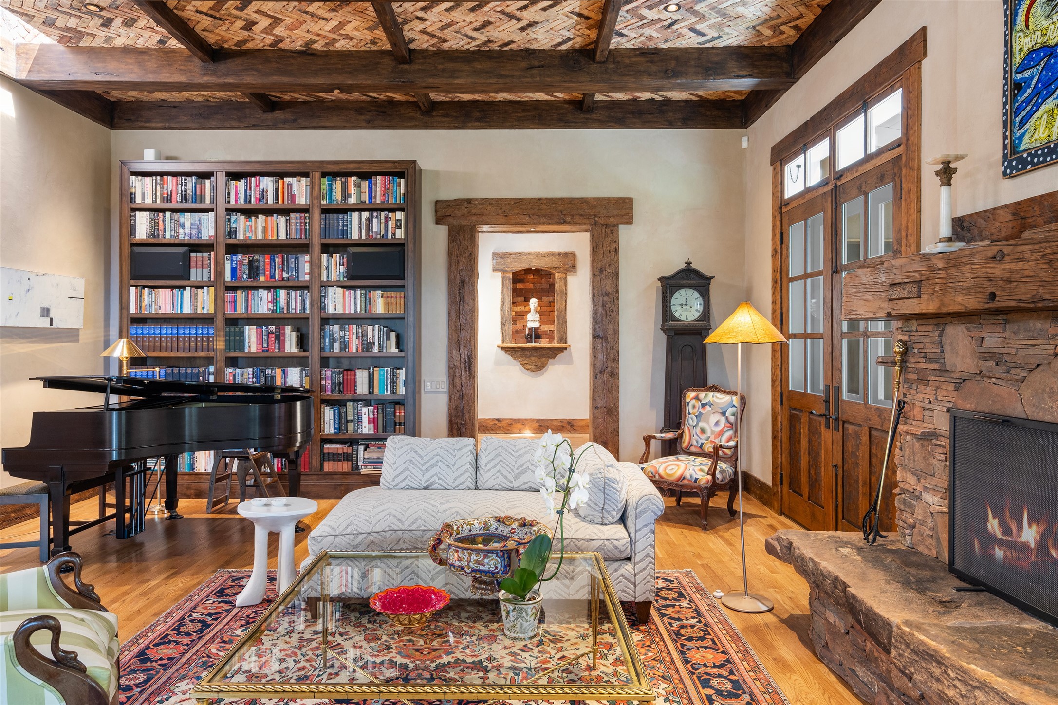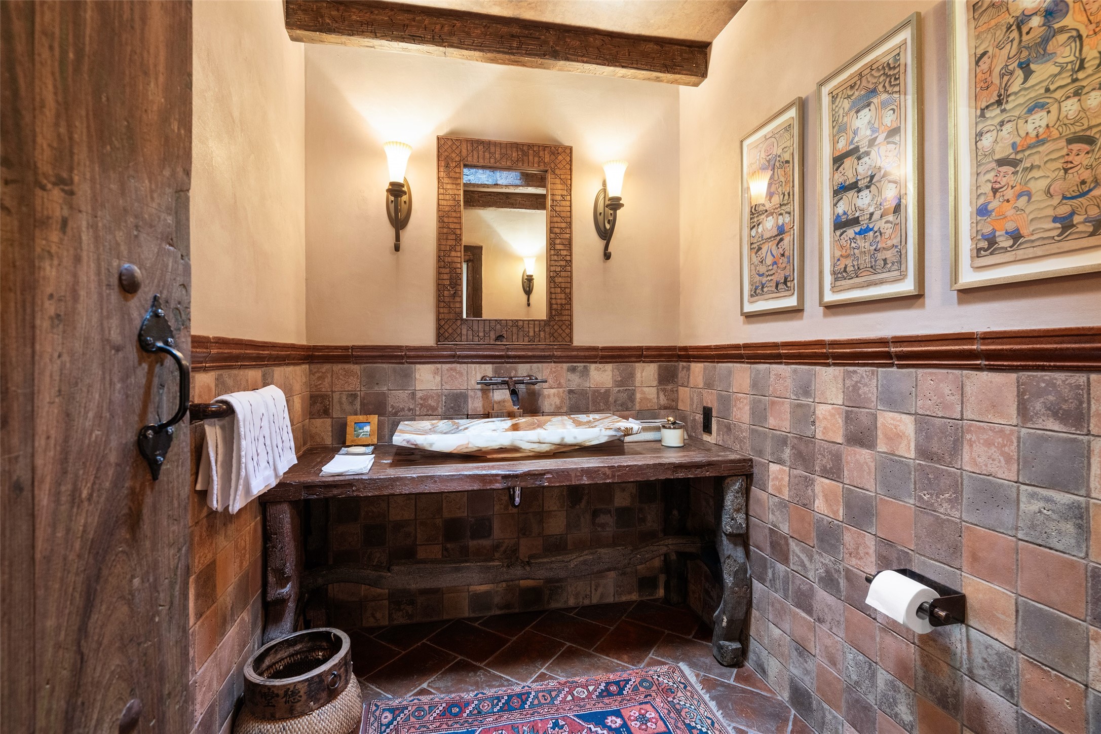 This gated oasis tastefully blends territorial-style with southwestern character reminiscent of old-world Europe. The property offers privacy, elegance, and tranquil views of the Jemez Mountains. The home features a deep wrap-around veranda --perfect for outdoor entertaining or peaceful evenings surrounded by lush, mature gardens and glorious trees. Inside, unique architectural touches abound, including roughhewn wood accents and soaring brick ceilings that add warmth and texture throughout. The elegant living room features a large stone fireplace and is adjoined by the dining room that seamlessly integrates with the gourmet kitchen -- a culinary dream, with a large island, honed stone countertop, top-tier appliances, and a separate butler's pantry with an additional dishwasher and sink. The spacious floor plan includes three bedrooms and four baths. The primary suite is generous, with access to the veranda, a private study, two spacious walk-in closets, and a luxurious bath. The separate guest wing with two gracious guest suites enjoys privacy and ensures welcoming accommodations. An oversized two-car garage completes this stunning property. More than a home, this is a secluded sanctuary that blends timeless design with modern comfort.