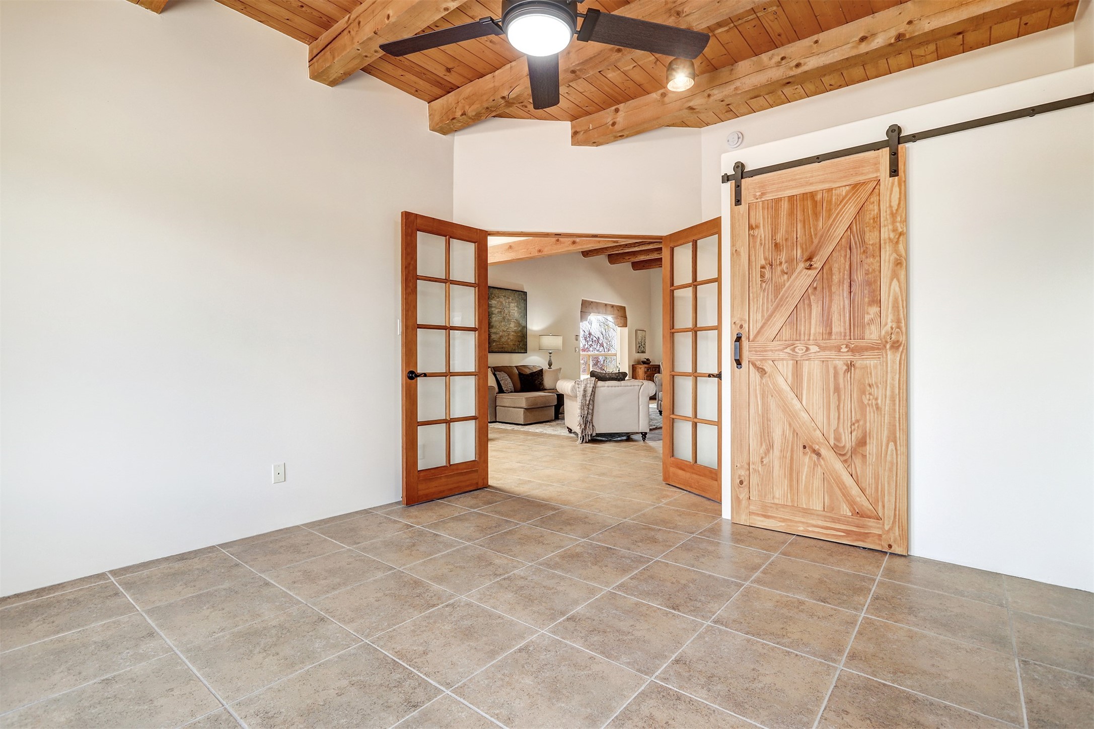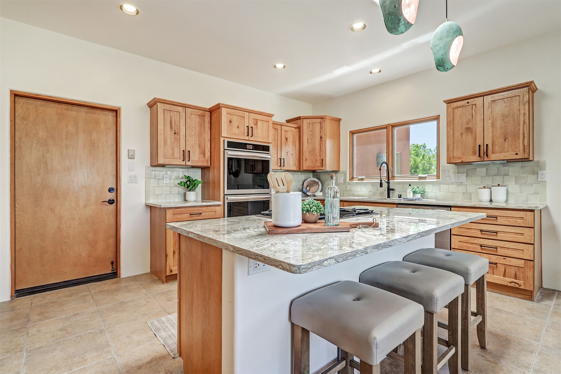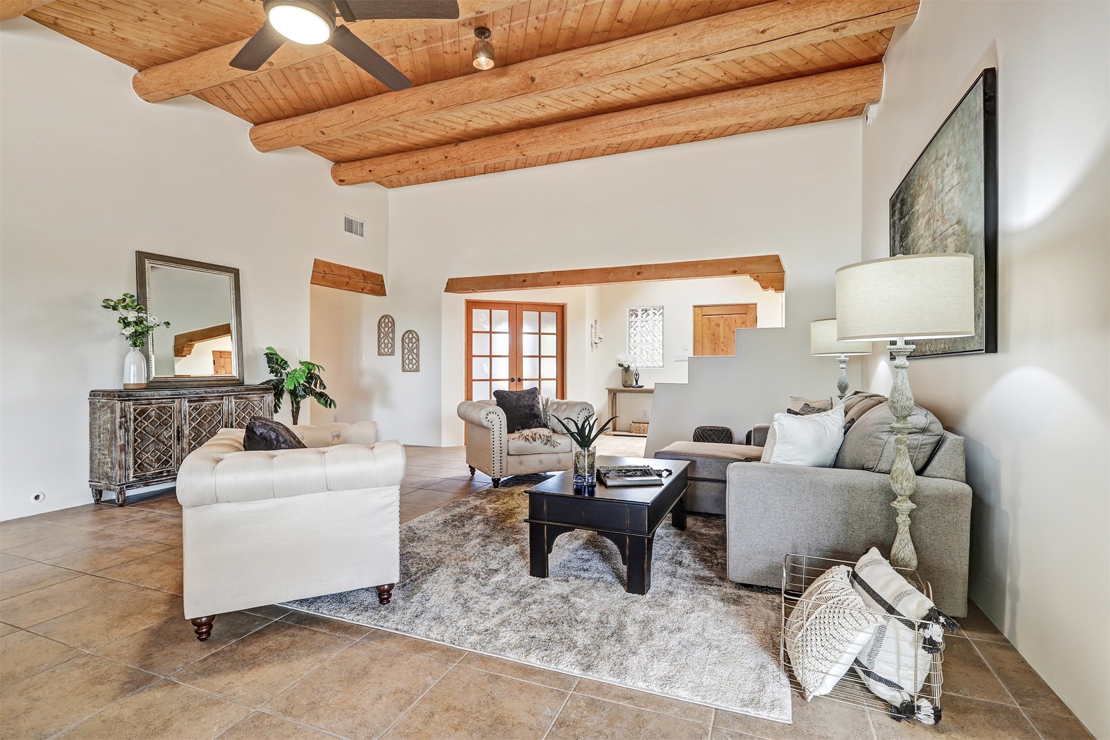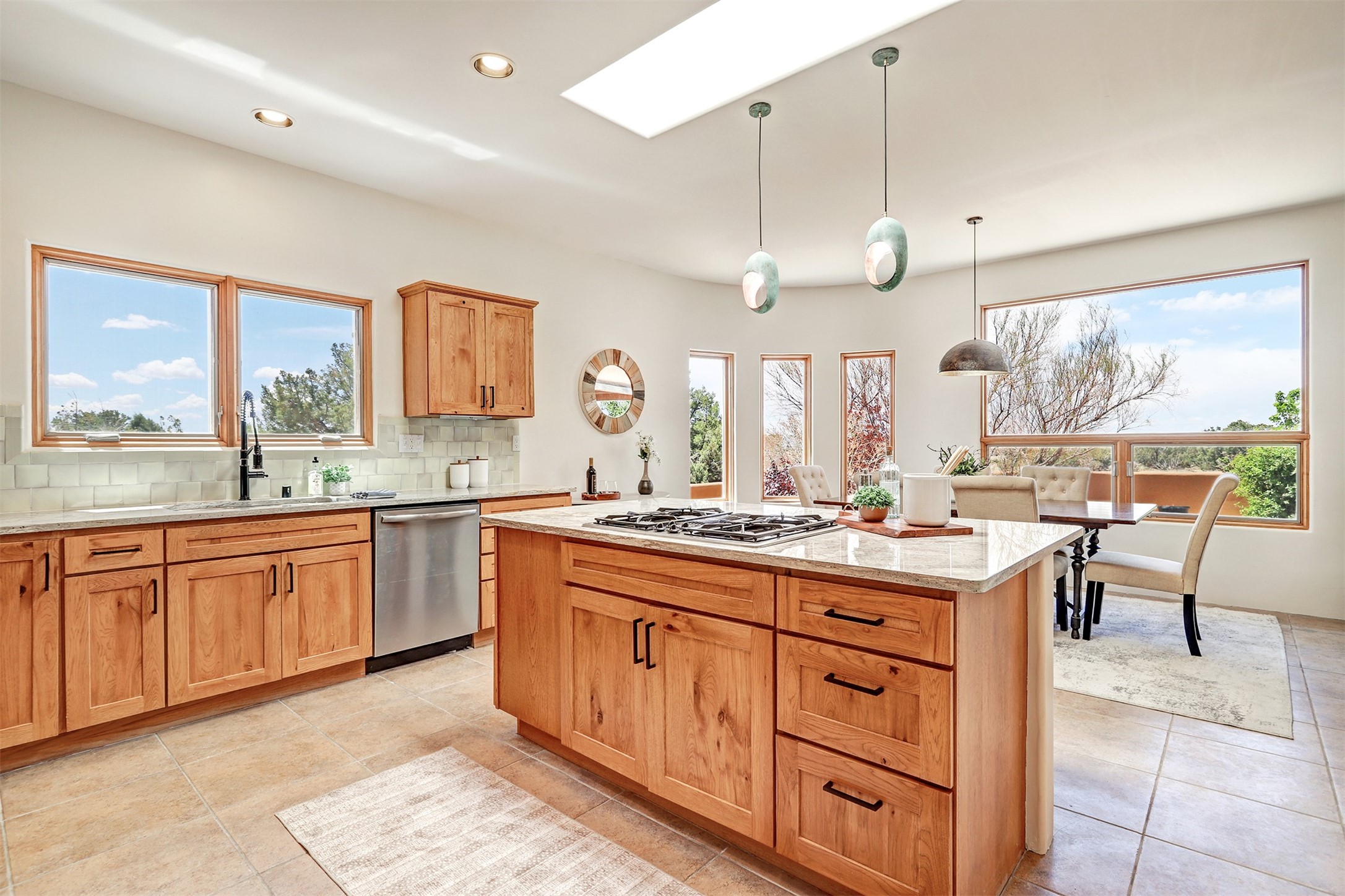 Welcome to this extraordinary residence in the highly desirable Eldorado, where Southwestern elegance meets modern comfort. Upon entering, you're greeted by soaring vaulted ceilings, exquisite tongue-and-groove woodwork, and beautiful vigas, setting the stage for this home's timeless design. The spacious living area, anchored by a traditional kiva fireplace, flows seamlessly into a chef-inspired kitchen. Featuring custom handmade tile backsplash, granite countertops, elegantly designed cabinetry, and brand-new stainless steel appliances, this kitchen is perfect for both everyday living and entertaining. The primary suite is a true retreat, offering a kiva fireplace, a luxurious ensuite, and extraordinary views of the surrounding mountains, providing the perfect sanctuary. Step outside to the private outdoor portal, adorned with tongue-and-groove ceilings and vigas, offering a peaceful setting for relaxation or entertaining. The front and back of the home boast breathtaking mountain views, adding an ever-changing, picturesque backdrop to daily life. This meticulously crafted home has been thoughtfully upgraded to offer a seamless blend of style and functionality. Located in the coveted Eldorado community, this home offers an ideal combination of privacy and convenience. Eldorado is known for its expansive open spaces, dark night skies, and a vibrant, close-knit community. Enjoy miles of walking, biking, and equestrian trails, along with a community center that features a pool, tennis and pickleball courts, and dog parks. Only a short drive to downtown Santa Fe, you'll have access to the city's galleries, fine dining, and cultural events, offering the best of both worlds. This extraordinary home presents a rare opportunity to live in a serene, natural environment while remaining close to the rich culture and amenities of Santa Fe. Schedule your private showing today to experience this exceptional property in person.