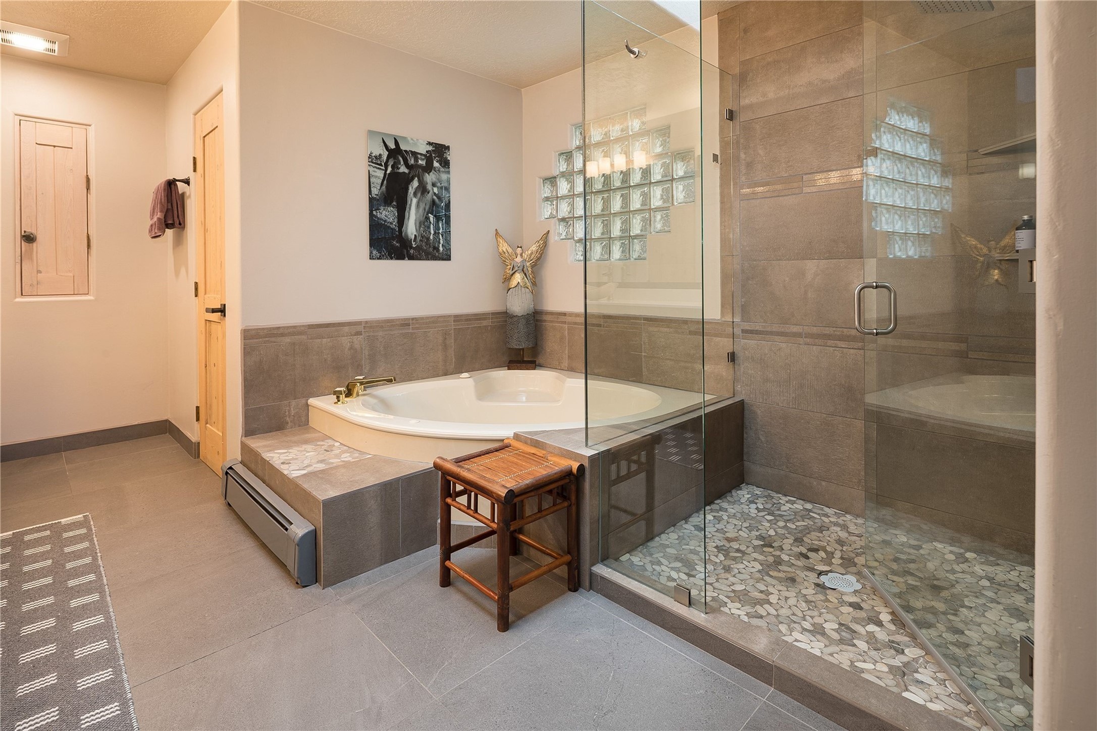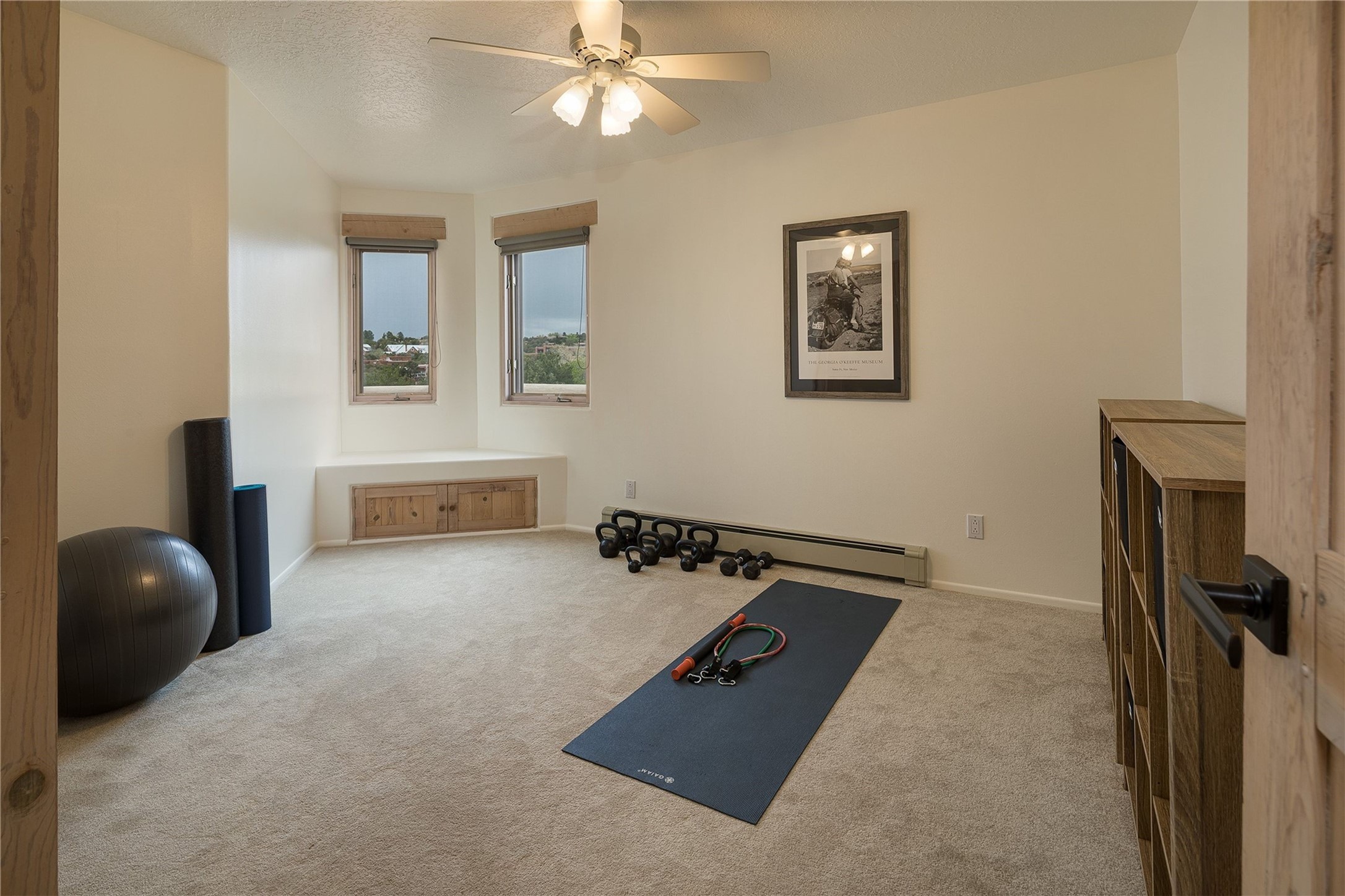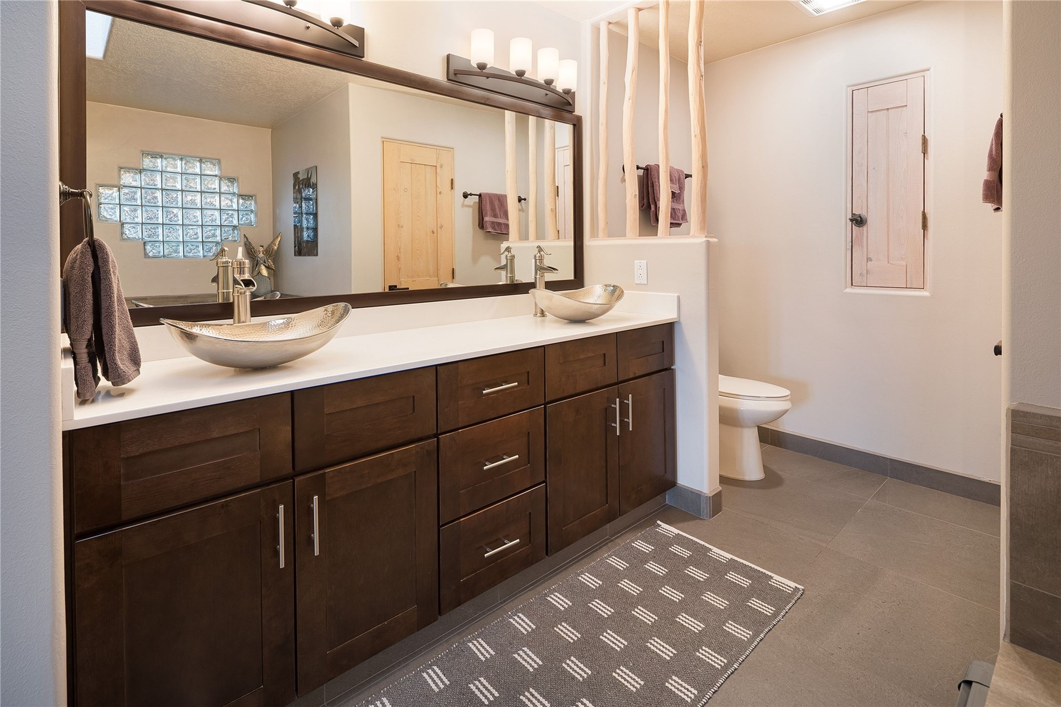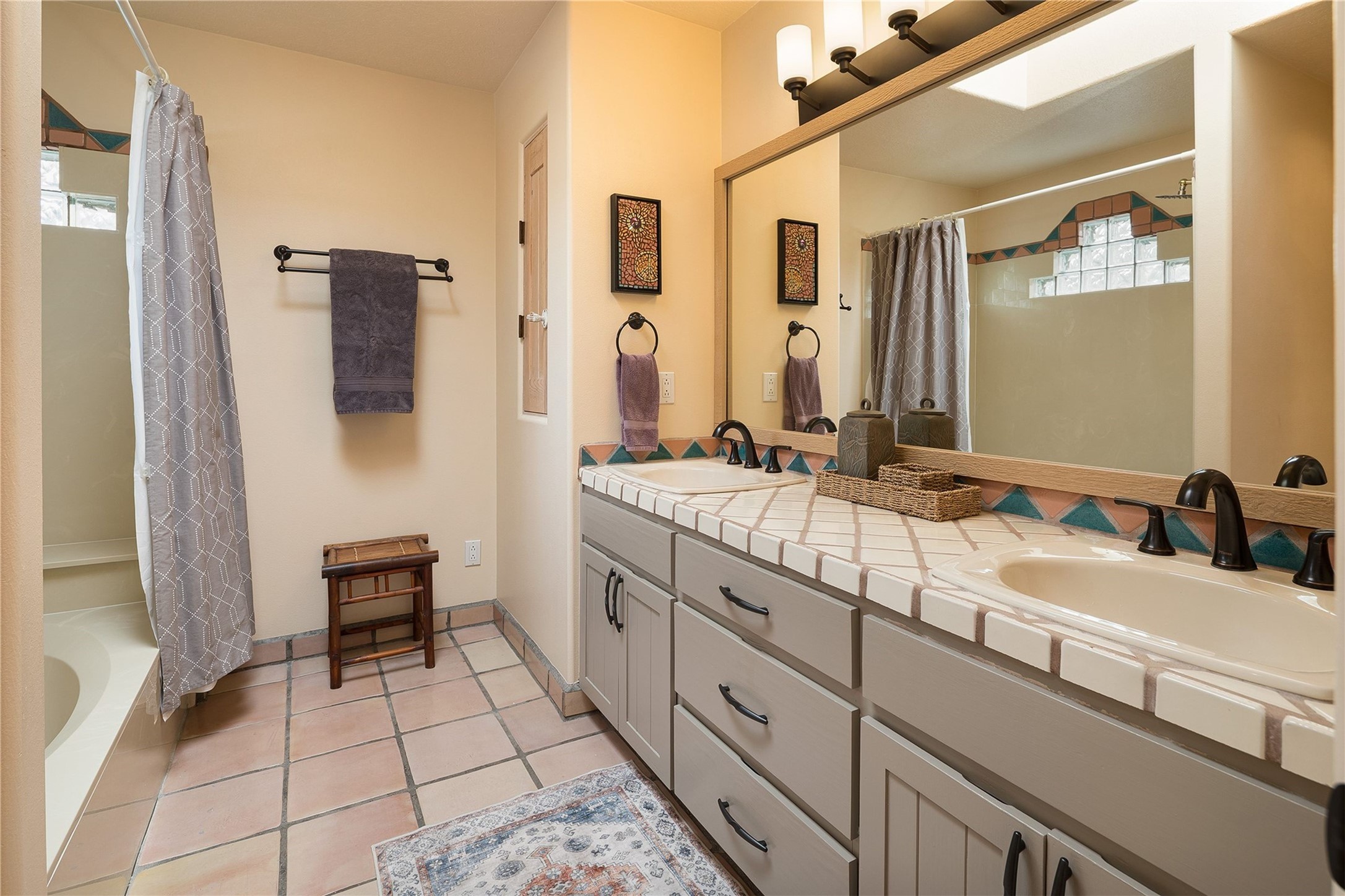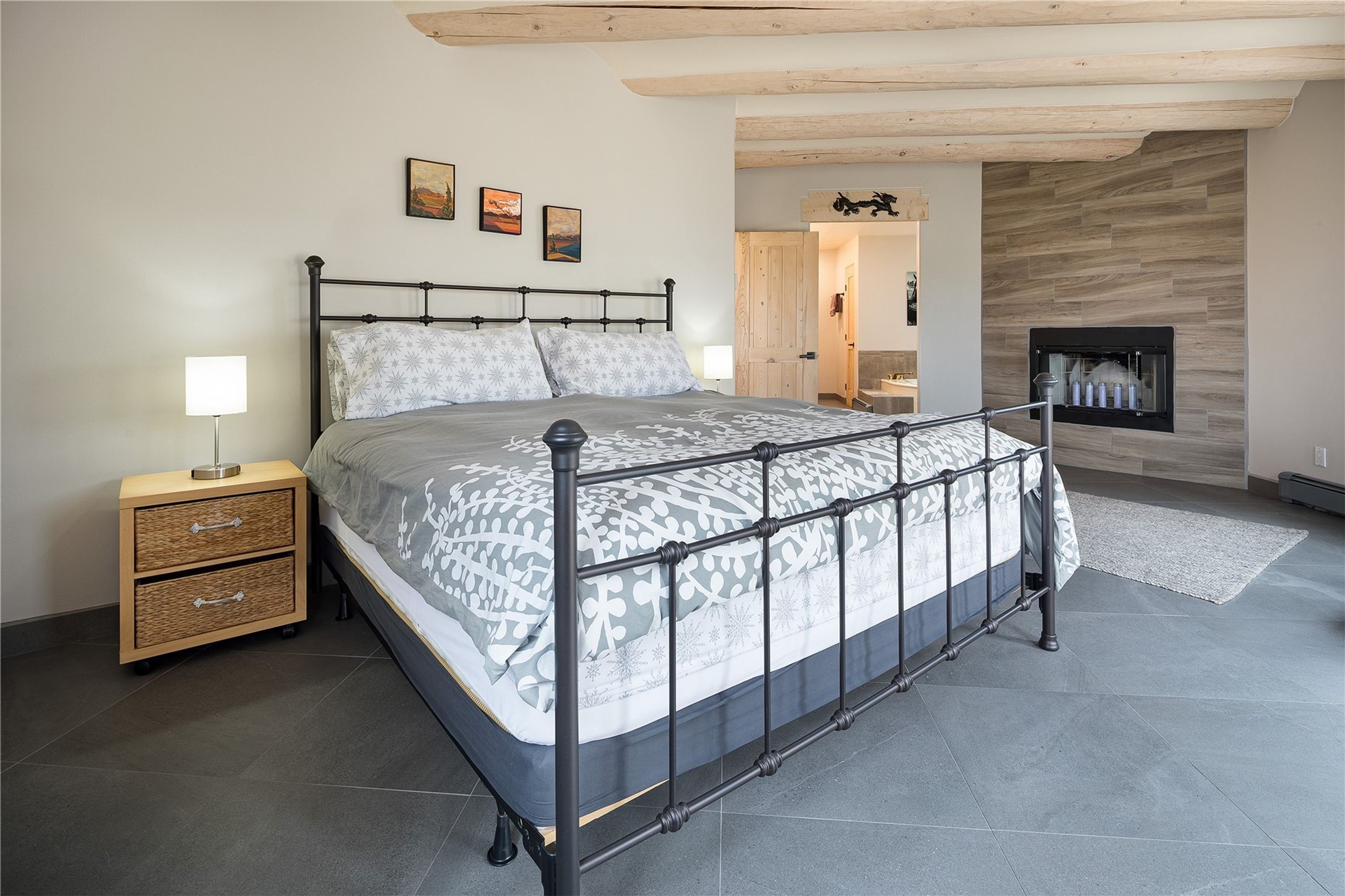 Set in the North Hills above Historic downtown Santa Fe, this serene, sophisticated home is an expressive mix of Soft Contemporary and Traditional styles. Gorgeous hardwood floors sweep from the foyer through the living/dining area with its double-sided kiva fireplace and adjacent deck. The kitchen continues the home's handsome palette with chocolate-colored countertops, maple cabinets and a sun-bathed alcove for casual meals. A few steps down from the kitchen is a den, with adjacent Laundry/Mudroom and double-door access to the sheltered back patio. A sleek, custom staircase leads to the home's four bedrooms. A soothing sanctuary, the Primary bedroom has a coved ceiling, fireplace, private view deck and ensuite, remodeled bath with walk-in, glass-walled shower. In the back garden, a moss rock wall borders an expansive, paver patio, with water feature. The atmosphere turns magical as the path glides toward the lower garden with its outdoor shower and hot tub. A new, high-efficiency boiler, solar and on-demand hot water heater add to the appeal of this refined offering. Residents of the Estancia Primera community enjoy an outdoor pool, tennis courts, and clubhouse. Walking trails enable quick access to downtown. Hiking trails and the Ski Basin are a short drive away.