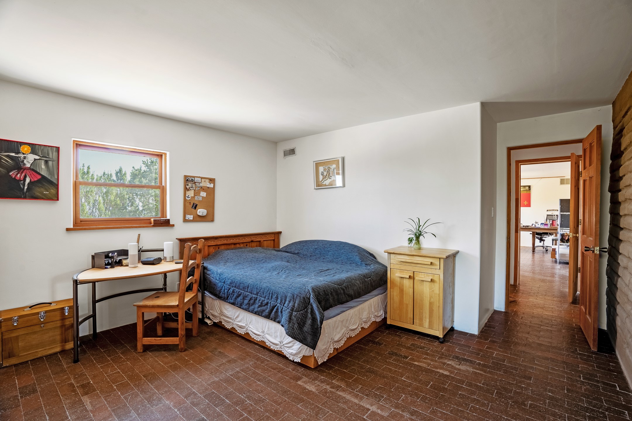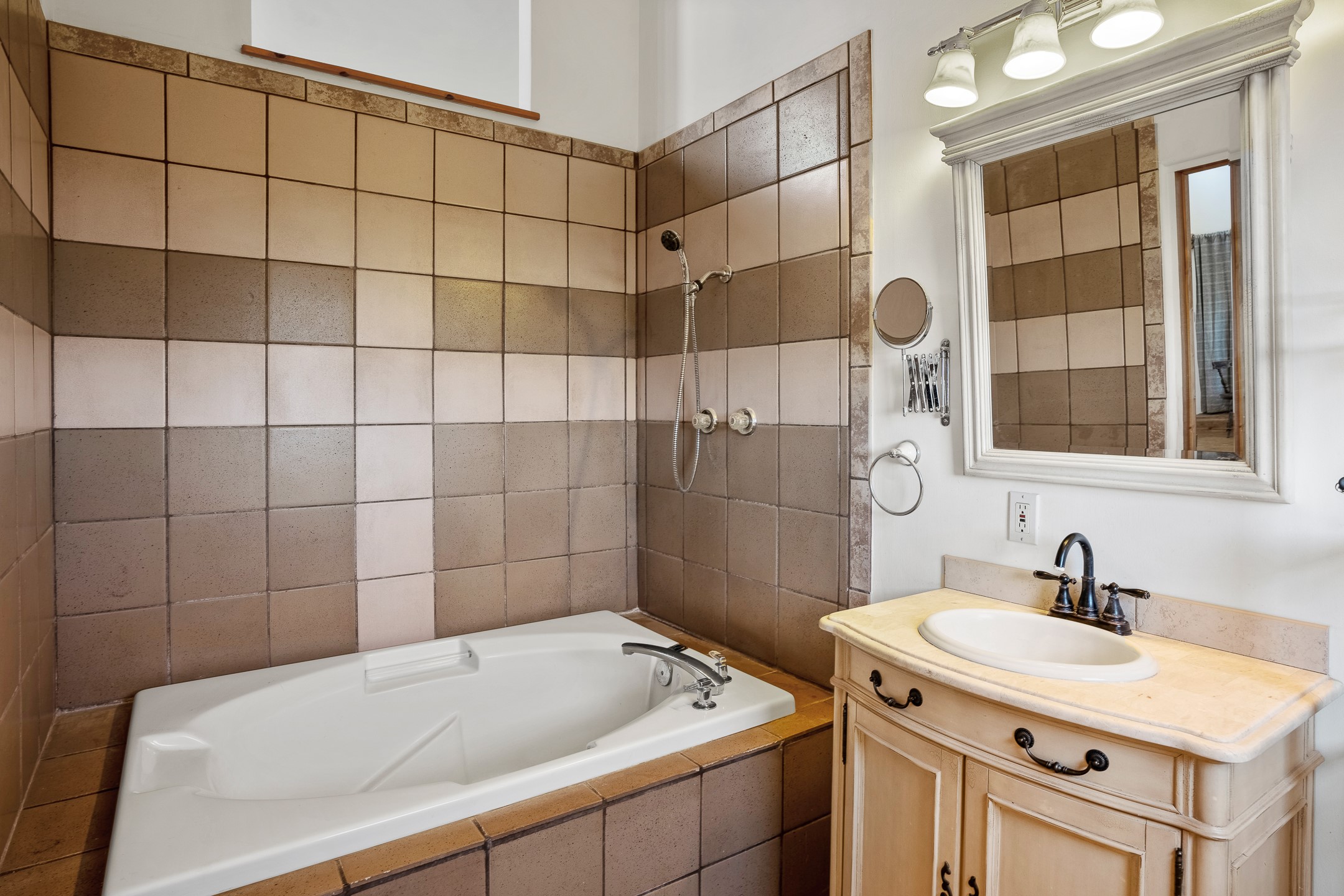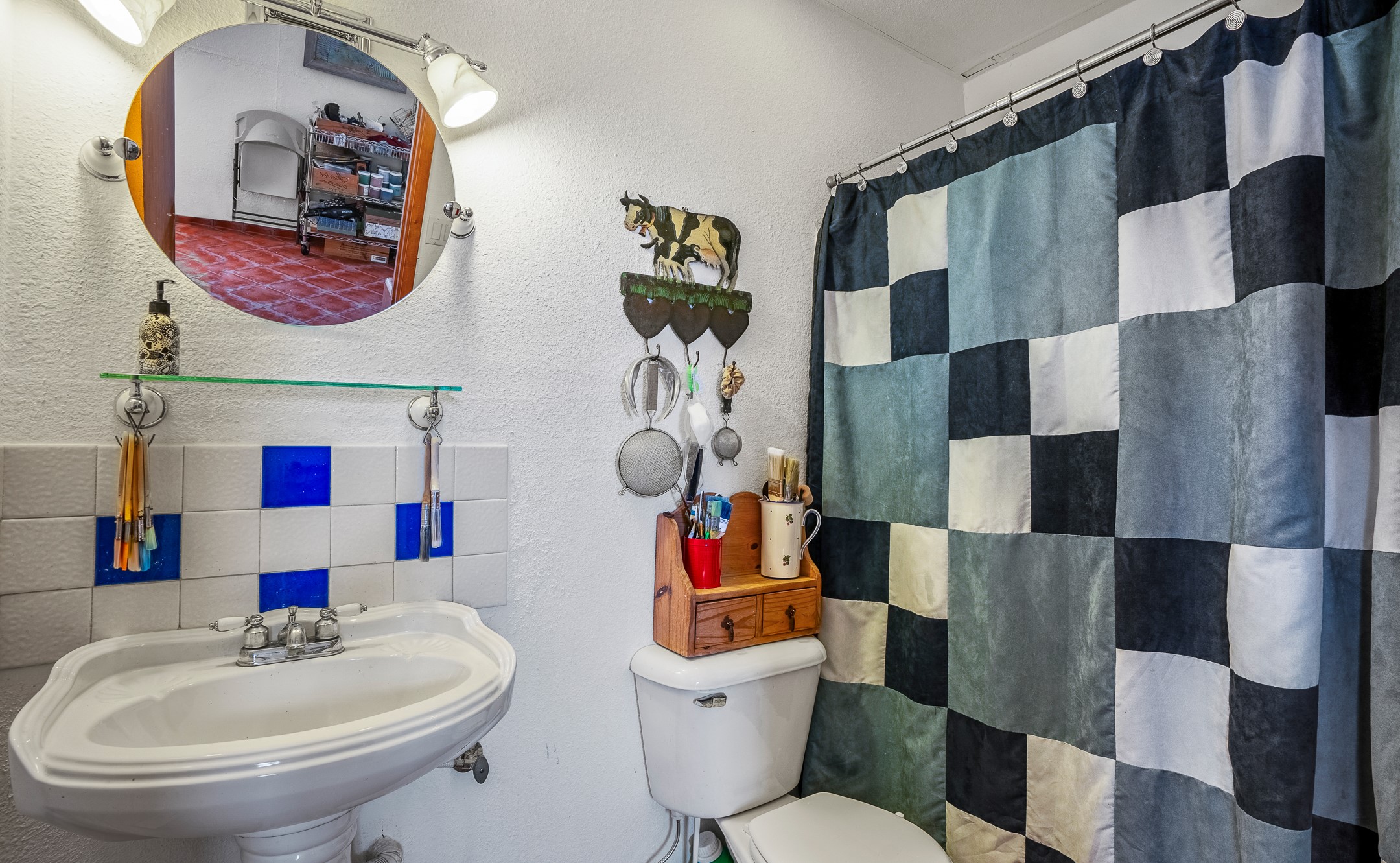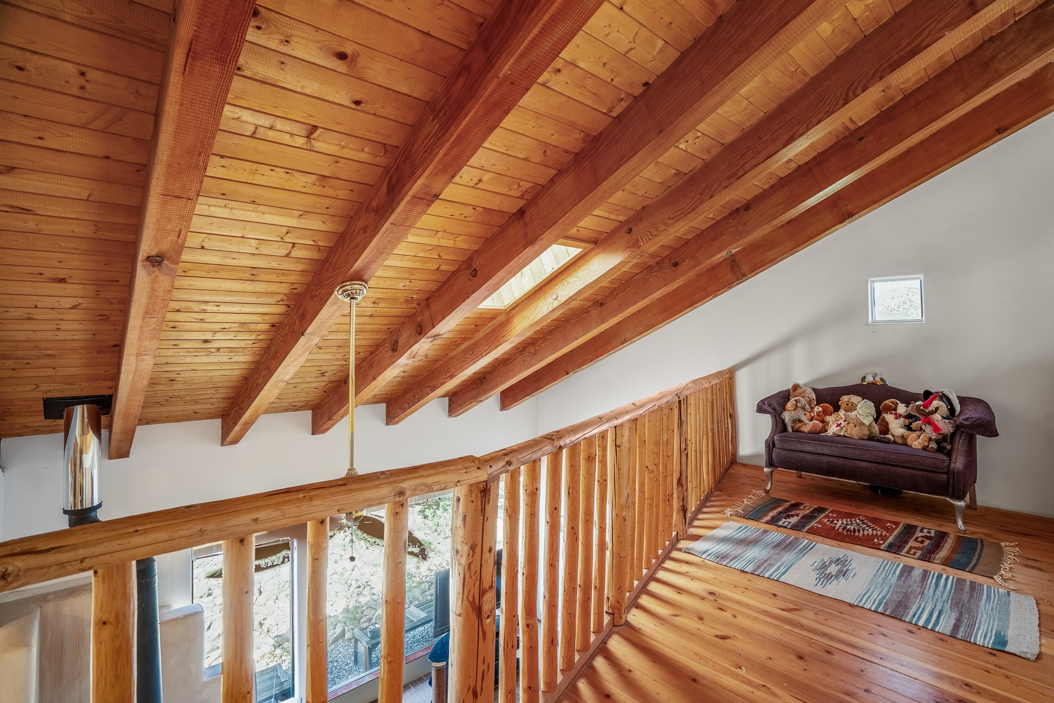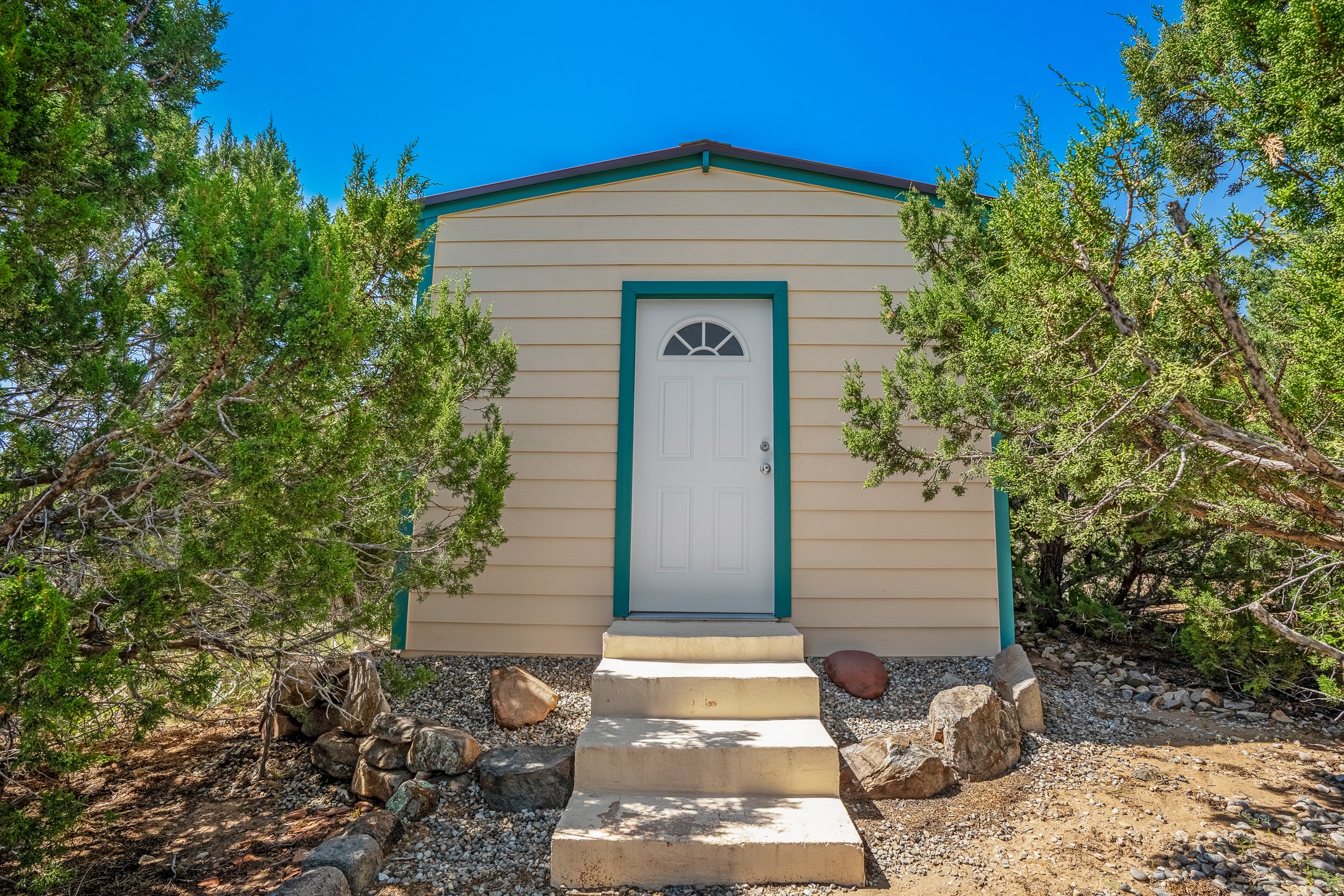 Sited high on the northern slopes of the Ortiz Mountains, this working artist's retreat offers away-from-it-all serenity while still being with an easy commute of Santa Fe. The home and studio is centered on a gently sloping 15.59 acre lot that offers space for gardening, horses, other animals, or outbuildings. The home features three bedrooms and two full baths, with soaring ceilings in the living room and kitchen, and a primary bedroom on the second floor with rooftop deck. Brick and wood floors, wood ceilings, and an interior adobe wall exude warmth. Outside, a north facing patio takes in breathtaking views across the Galisteo Basin to the Sangre de Cristo's. The attached artist's studio has its own entrance and bathroom, and could easily be converted back to its previous use as a guest house if additional living space or rental income was desired. Two storage sheds are on the lot, including a large and sturdy shed that could be used as shop space or more studio space. Connected to public electric, with fast internet and a good well. The property also has a Bed and Breakfast license from Santa Fe County. Owner will offer a $25,000 credit to replace shingle roof with metal roofing, and may offer owner financing with substantial down. 20 miles to the south side of Santa Fe, 57 miles to the Albuquerque airport, and near dining and entertainment opportunities in Madrid and Cerrillos. Accepting back up offers.