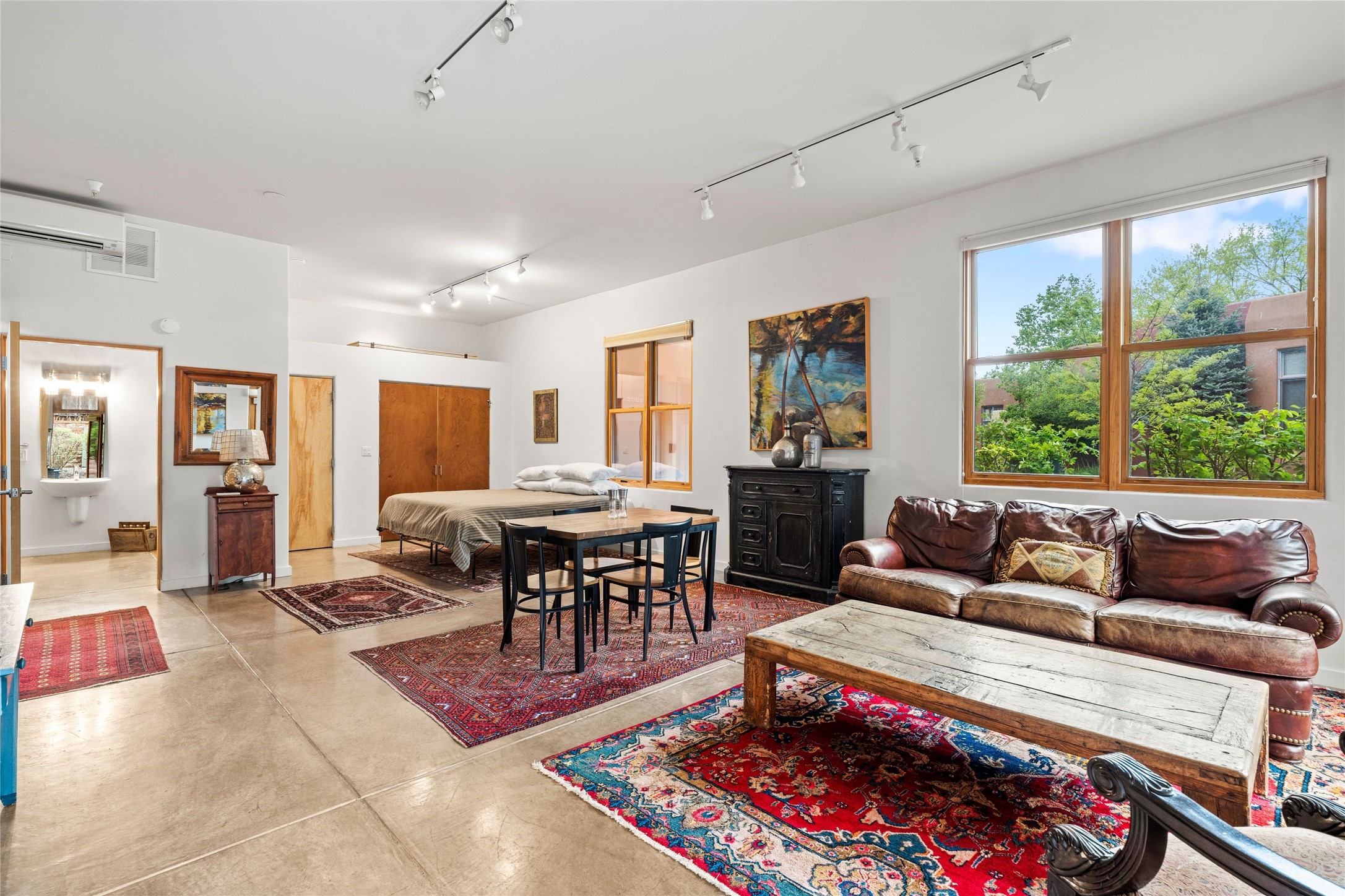 This light-filled Studio offers the perfect blend of comfort, convenience, and flexibility in the heart of Santa Fe. Whether you're looking for a chic pied--terre, a full-time residence, or a live/work setup, this unit delivers.Located in the desirable Marquez Place Lofts, this ground-floor condo enjoys abundant natural light, high ceilings, and an open-concept layout that feels both spacious and modern. Just minutes from the Plaza, Railyard, Whole Foods, Trader Joe's, and some of Santa Fe's favorite local spots, you'll enjoy a walkable lifestyle in a vibrant, centrally located community. Professionally maintained with beautifully landscaped common areas, this property also makes a smart lock-and-leave, rental investment, or creative workspace. Experience the best of Santa Fe living in this stylish and versatile condo.