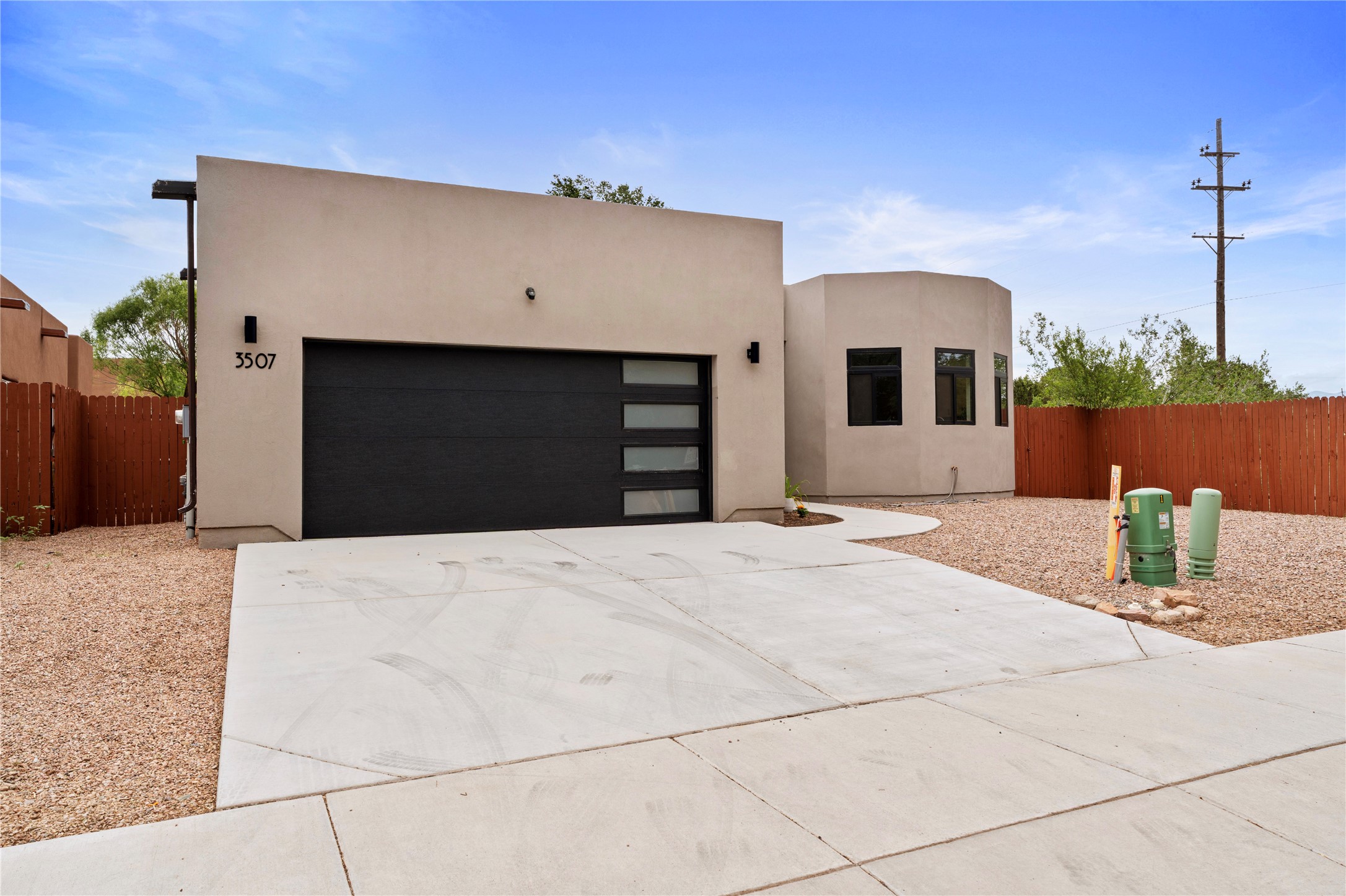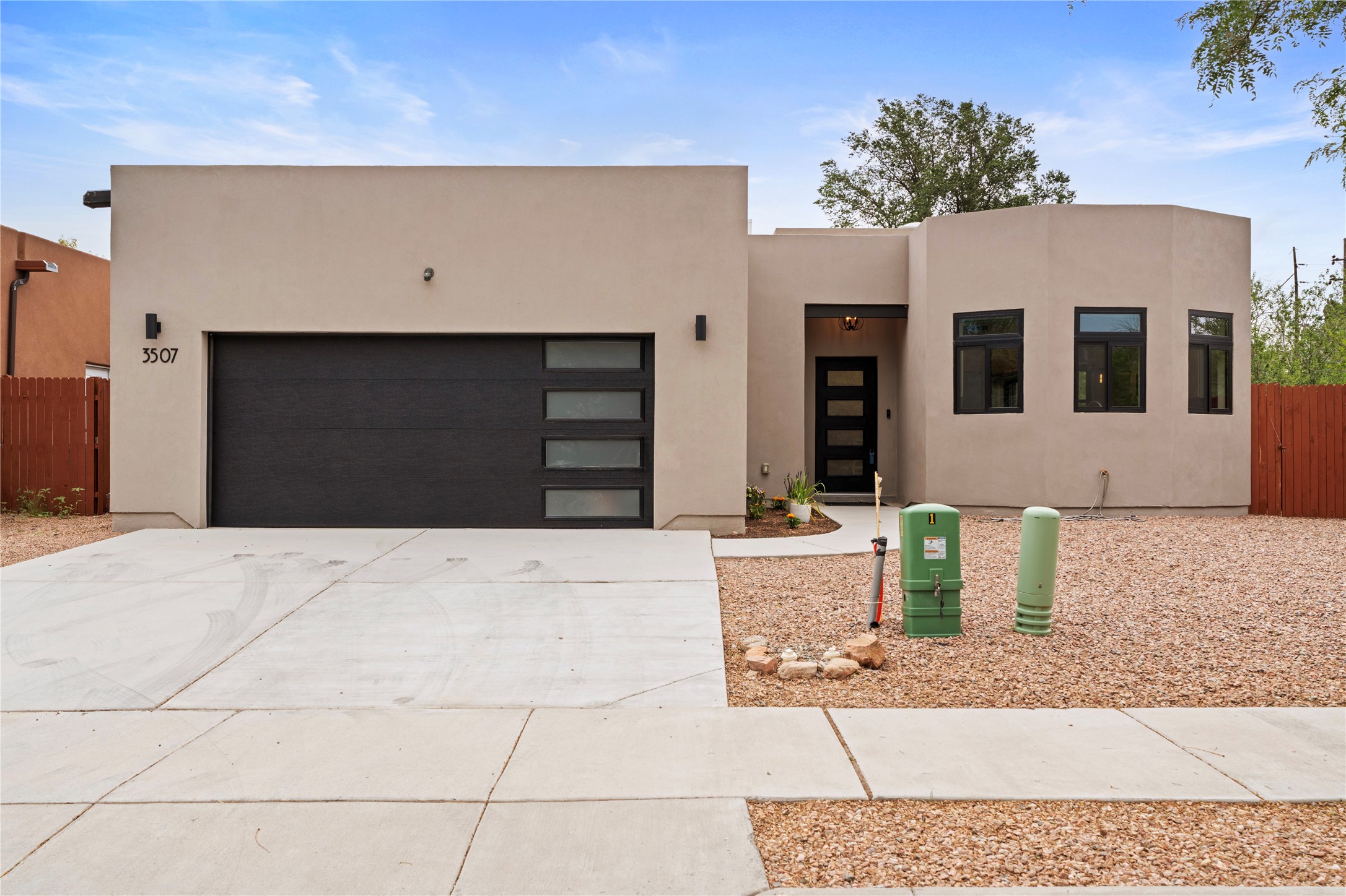 This beautifully crafted single family one story home, built by renowned Master Builder Arch Sproul, combines modern comfort with exceptional energy efficiency. Located in a quiet all custom-built subdivision in central Santa Fe, this home features super-insulated walls and ceilings, on-demand hot water, ultra efficient HVAC systems, skylights, and energy star appliances, making it ideal for sustainable living. With three well-separated bedrooms and two full bathrooms, the layout provides a perfect balance of privacy and functionality. The spacious living room with soaring ceilings, mountain views, and a cozy gas fireplace flows seamlessly to the covered patio and fenced backyard. The custom-designed kitchen boasts solid-surface countertops, custom cabinetry, luxury plank vinyl flooring, designer lighting, and stylish plumbing fixtures. Situated at the end of a peaceful tree-lined street with ample parking, it is a short walk from this home to local shops, schools, and the Genoveva Chavez sport facility. Offering price is lower than the sold price of 2023! This is the deal you won't want to miss! As a perk, it is currently covered with a Home Owners Warranty!