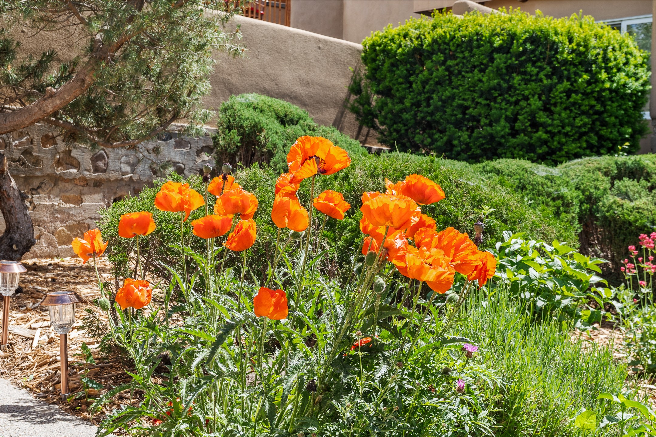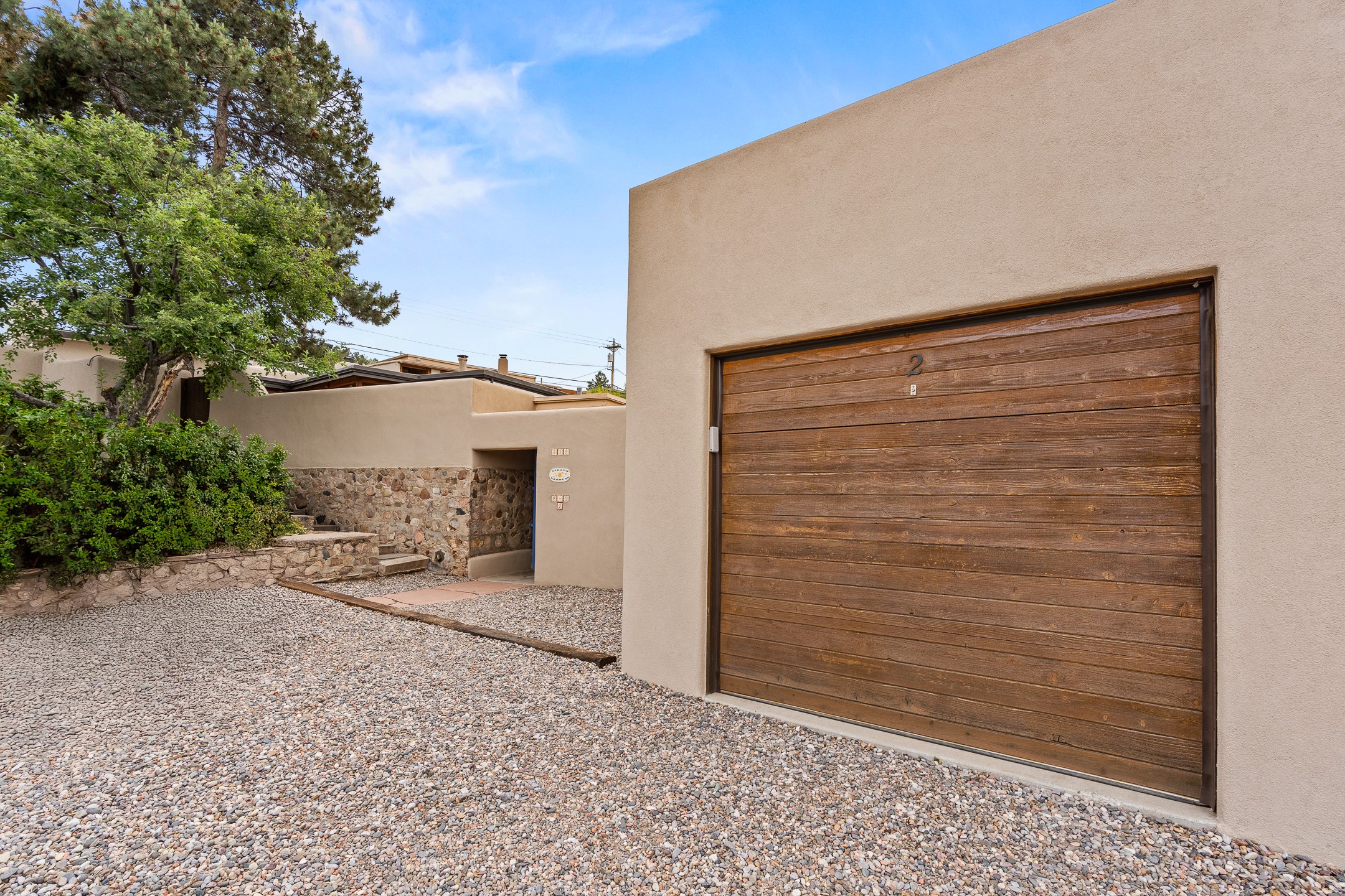 This Historic Eastside home is in the gated Girard Gardens Compound located a block from the Canyon Road arts district. It consists of a beautifully appointed main home and a guest casita. The casita has the possibility of being used as a wonderful studio, home office space or as an income generating rental. The location of this property has close proximity to all Santa Fe has to offer. Hiking, skiing, mountain biking, along with the fabulous restaurants and cultural activities for which it is famous. Mountain views from the expansive upstairs deck, a large private outdoor garden space. 3 large bedrooms, 3.5 bathrooms with ample closet space. The fully equipped kitchen has stainless appliances and is a bright welcoming space for the cook in the family. A detached garage is included with the main home. The guest casita has its own parking space. This is a turn-key sale which includes all designer selected furnishings.