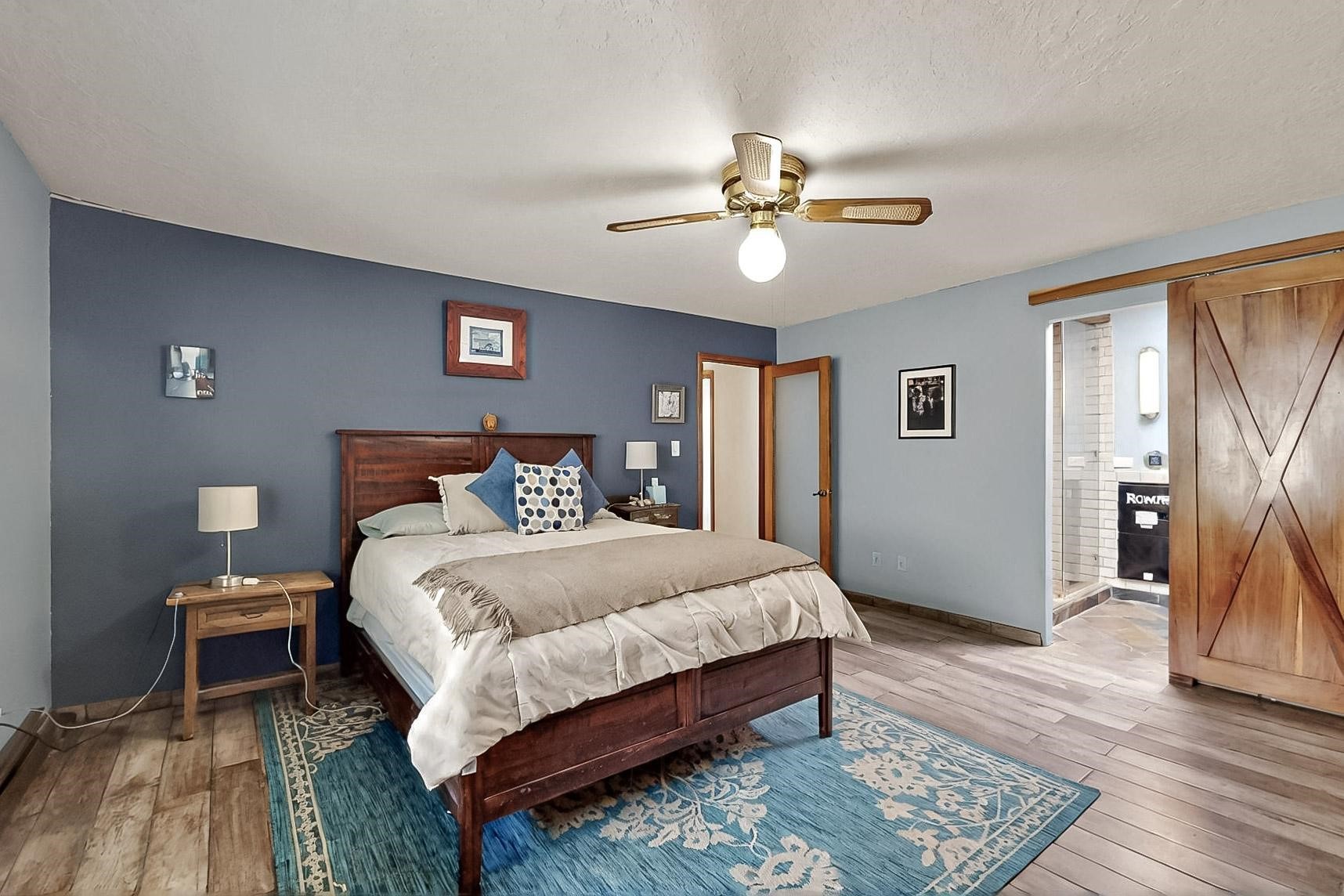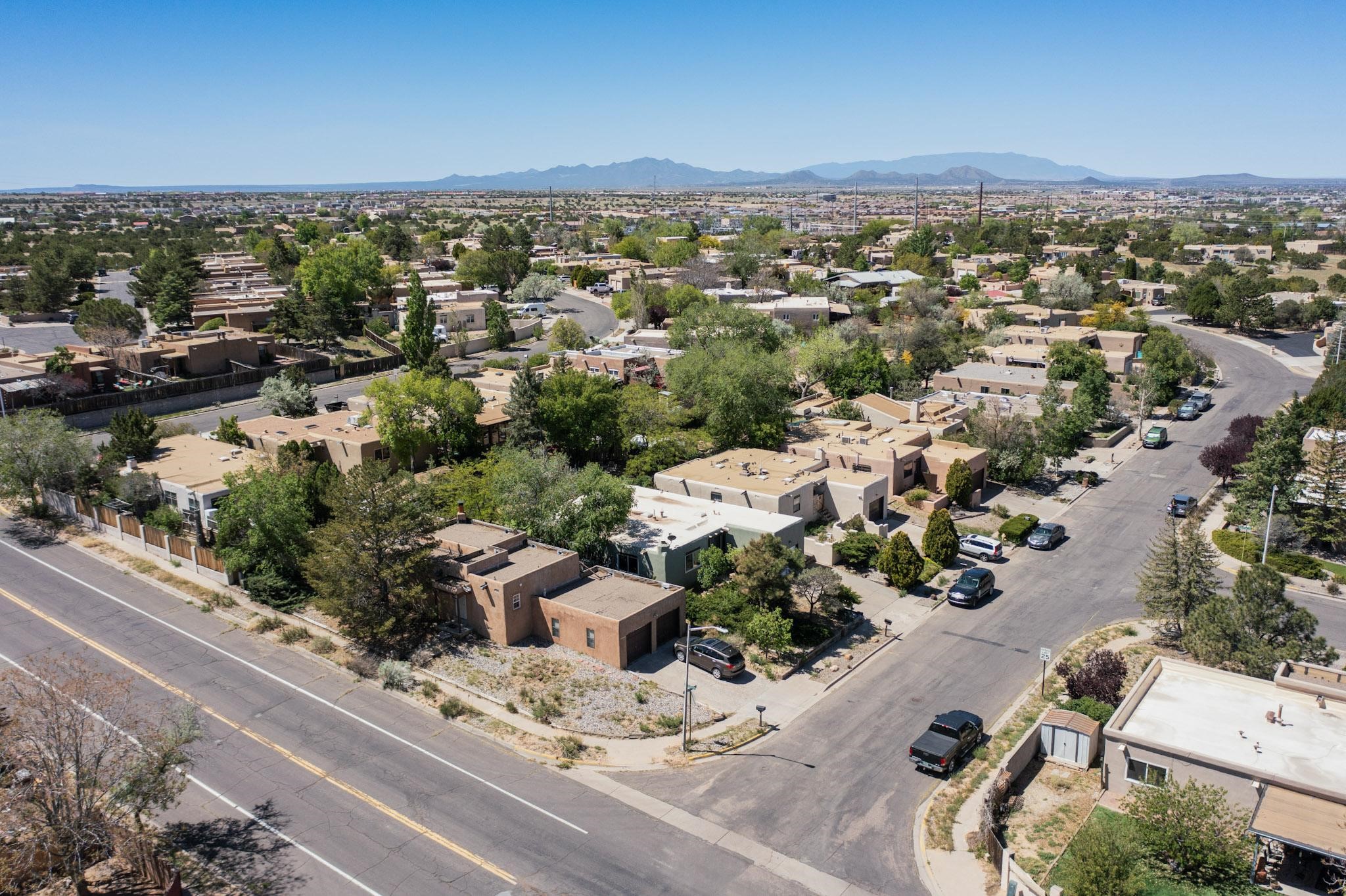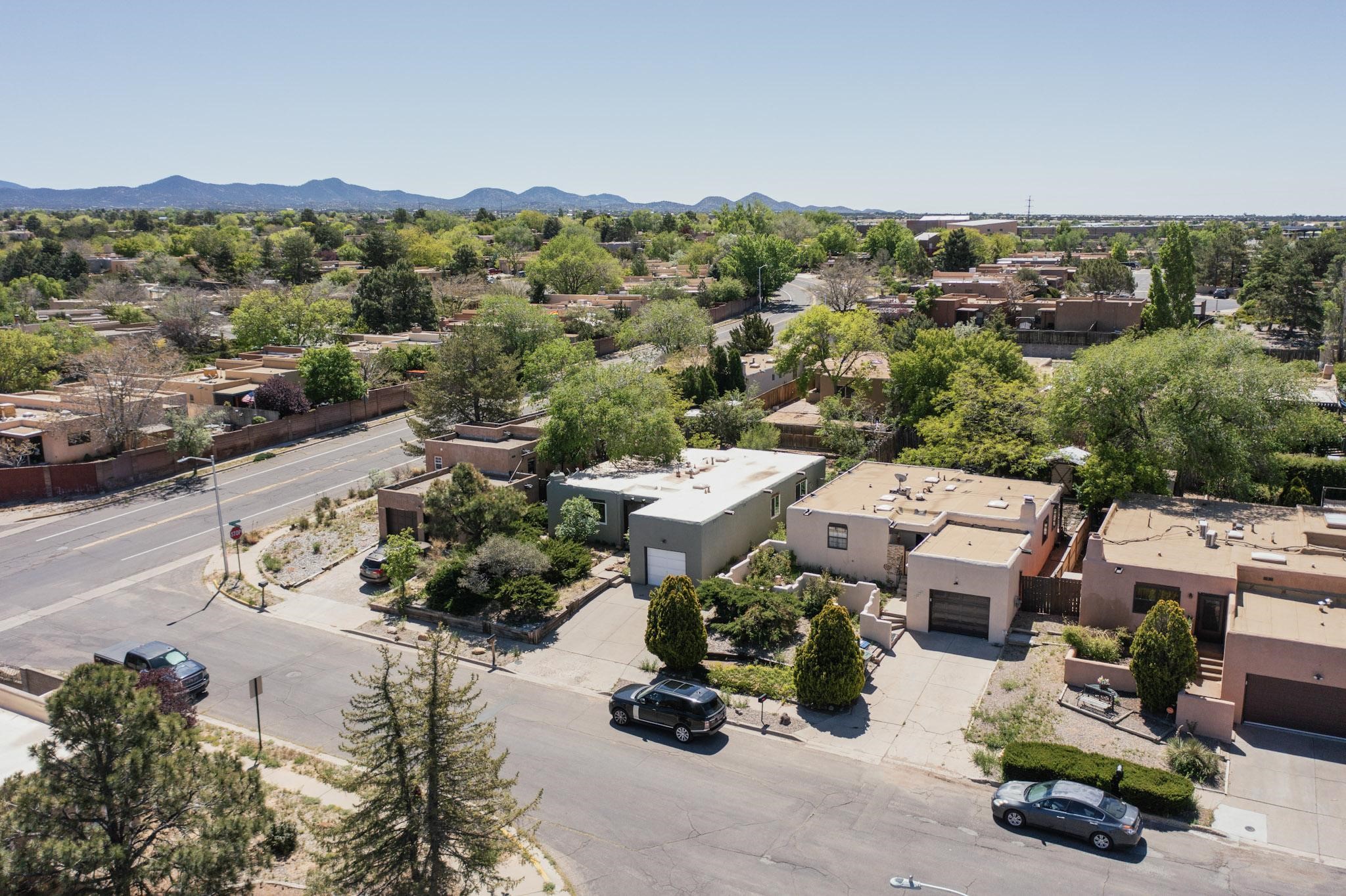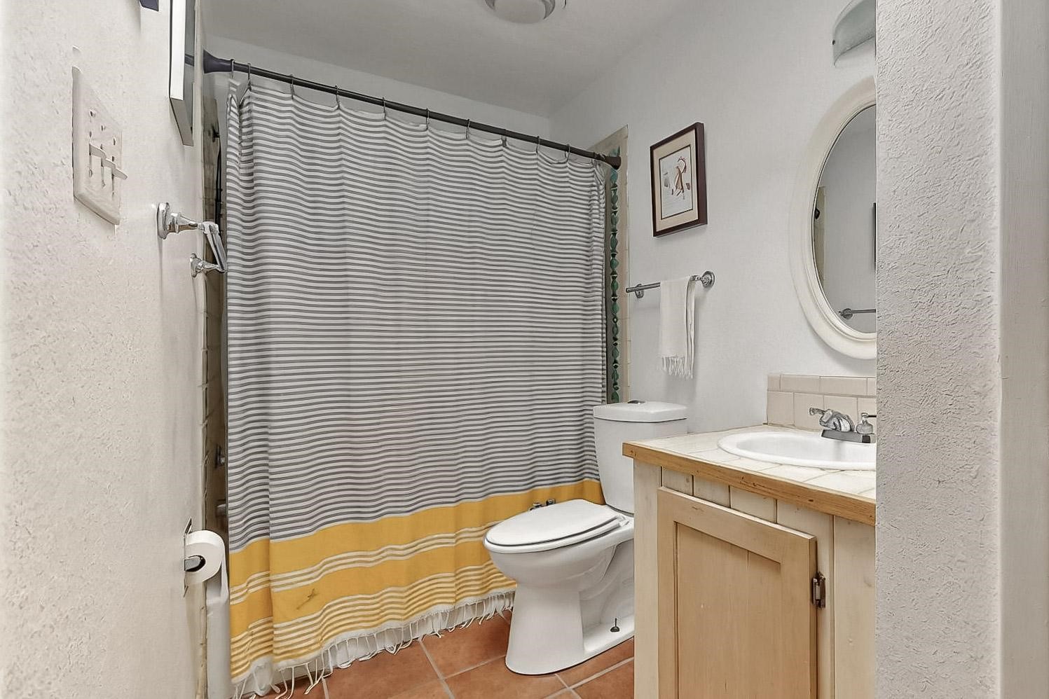 Charming 2-bedroom home in beautiful Santa Fe! This cozy retreat features classic Southwestern details including viga ceilings, tile floors, three skylights that fill the space with natural light and a stunning kiva fireplace. The kitchen opens to the dining area, creating a warm and functional layout. The second bedroom offers cozy carpeting, while the primary bath boasts a custom steam shower with three luxury shower heads! A large walk-in closet completes the master retreat. Step outside to an open patio and oversized backyard, ideal for entertaining or relaxing under the Santa Fe sky. A true blend of comfort and New Mexico charm!