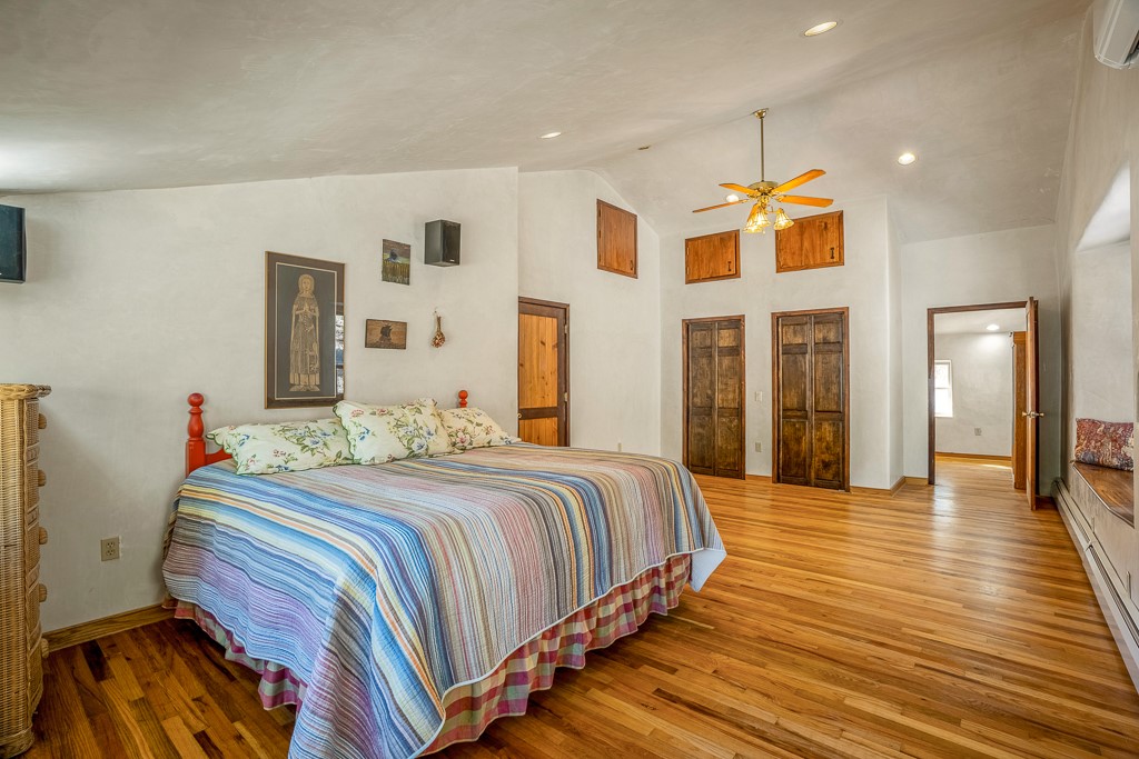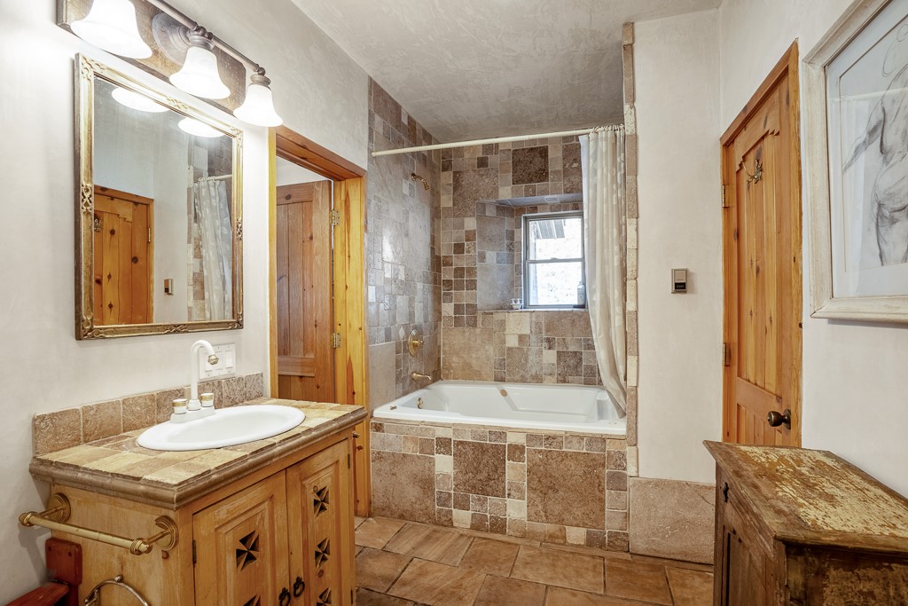 This exceptional pumice-crete home is a handcrafted sanctuary in the heart of the Santa Fe National Forest--set in a gated, 12-home enclave surrounded by thousands of acres of woodland and close to the gorgeous Pecos Wilderness and world class fishing in the Pecos River. Inside, Santa Fe-style elegance includes diamond plaster walls, hand-carved vigas, and flagstone floors. Built to endure, its 11-inch non-combustible walls and metal roof offer exceptional wildfire resilience.Just outside, an intermittent mountain stream runs through with aspen, ponderosa, and wildflower-filled canyon. Wildlife and serenity abound, and trails begin at your doorstep. Fully on-grid but off the beaten path--no cell service, no noise, total peace, with satellite internet available for those who need to check in with the world. The arts and culture of Santa Fe is just an hour away. Property features two large, high-ceilinged bedrooms upstairs, with 100-year old oak floors, as well as a bonus room perfect for art studio or office space. A smaller bedroom is on the first floor. Outdoor spaces abound, with an attached sunroom, fenced garden area, and gazebo perfect for summer cookouts. Two adjacent parcels also available. This is a one-of-a-kind chance to create a secure, nature-connected lifestyle in a rapidly changing world.