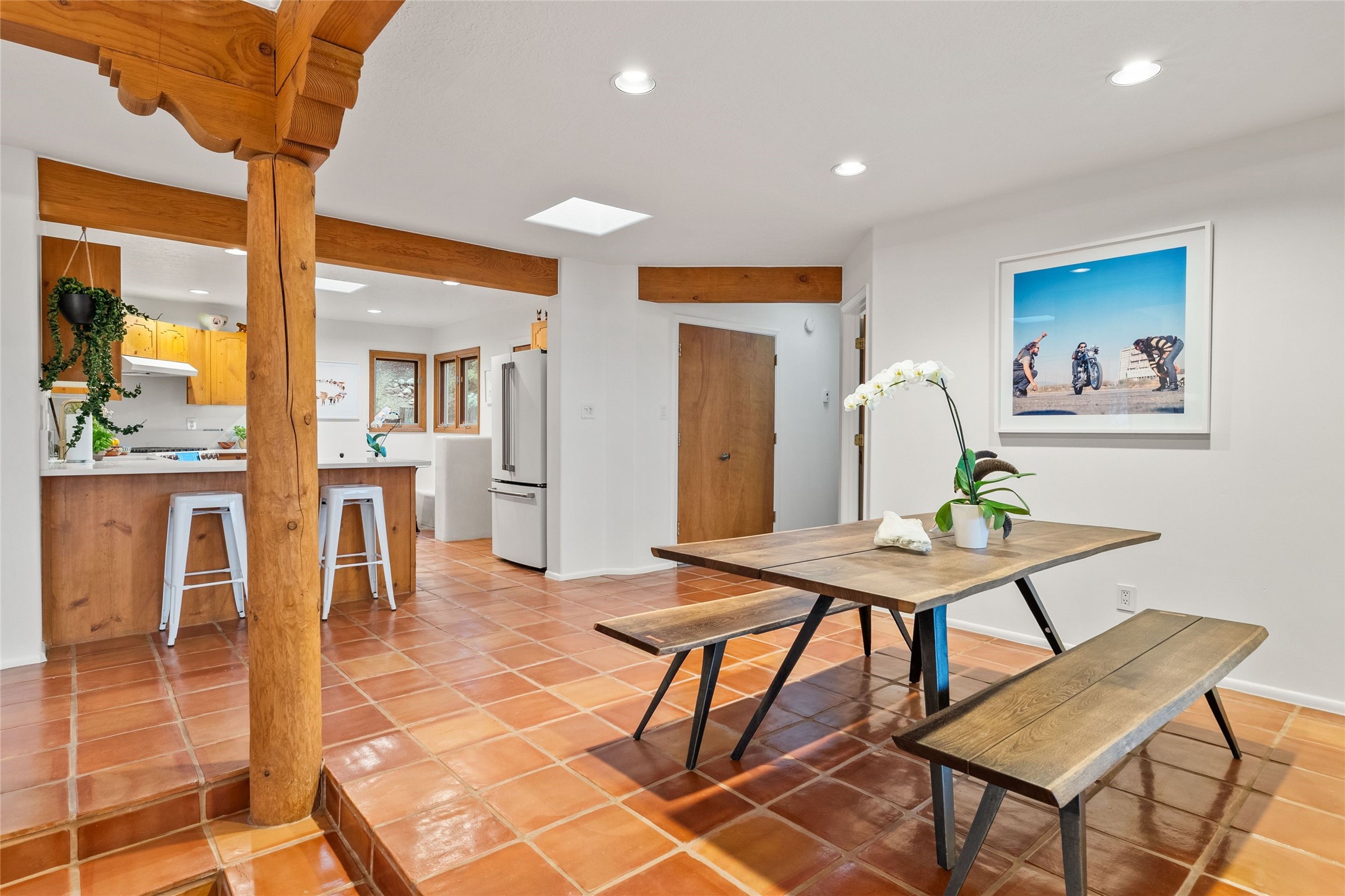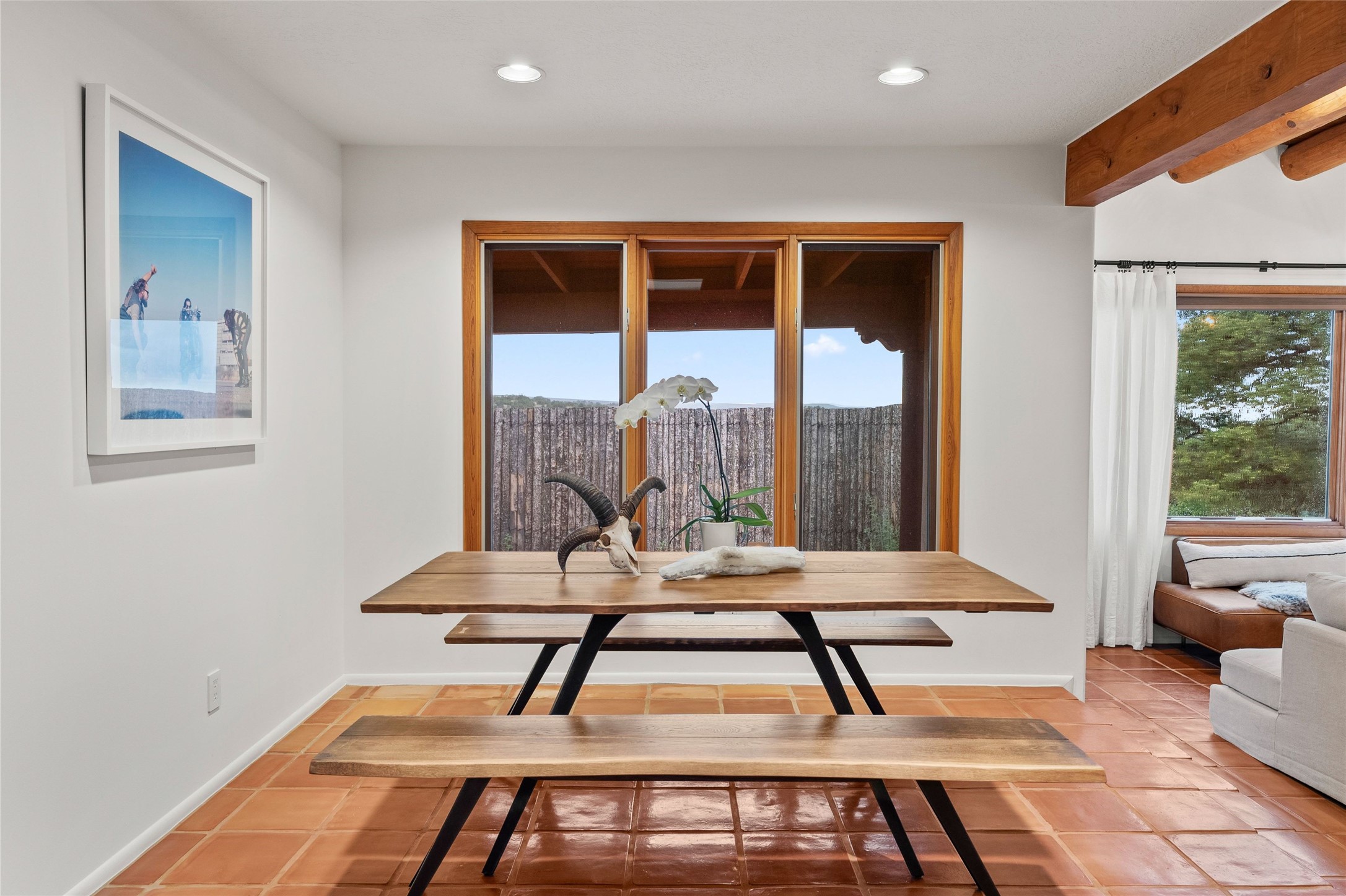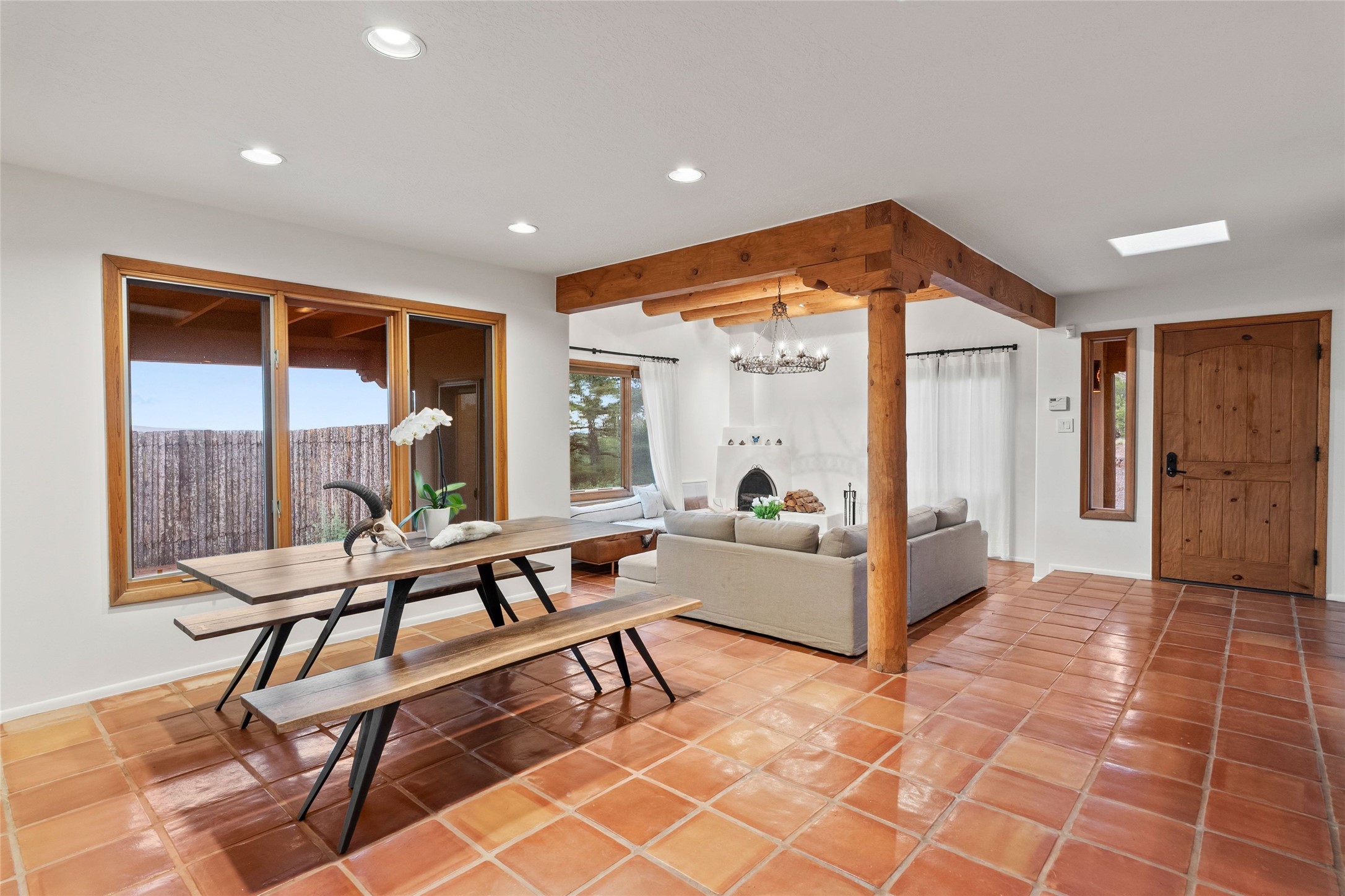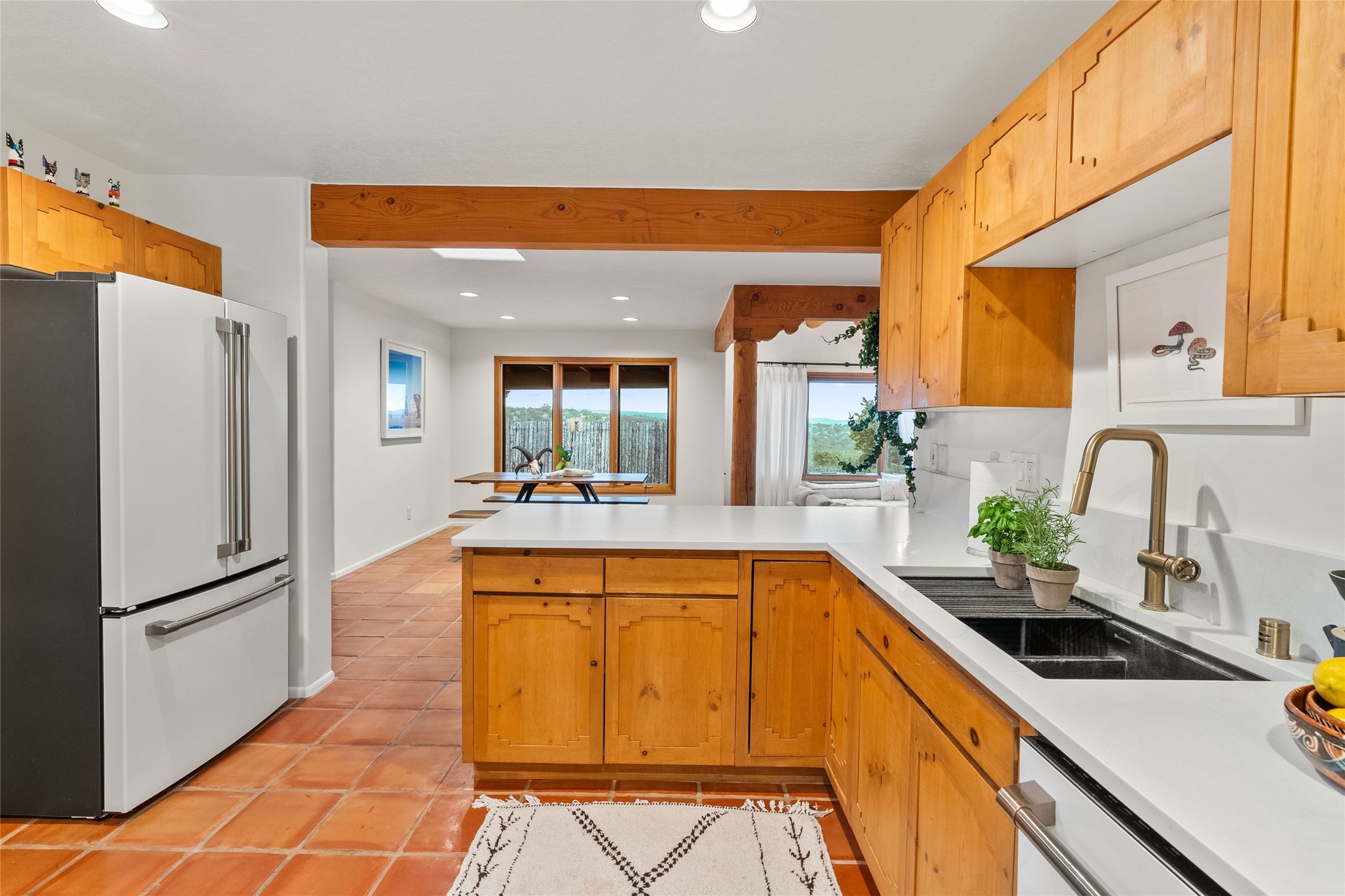 Welcome to 31 Calle Cielo--a lovingly maintained and thoughtfully updated 3-bedroom, 2-bathroom home nestled in the tranquil beauty of the Tesuque area. With 2,244 square feet of living space on 7.1 acres this residence combine's, nature, and convenience into a rare offering. Step inside to find light-filled interiors enhanced by updated skylights, fresh interior paint, and new windows that frame stunning views of the Santa Fe Opera House and surrounding mountains. The remodeled open kitchen is great for entertaining and a chef's delight, featuring new countertops, premium Caf brand appliance's, and a new sink. Additional upgrades include updated lighting fixtures throughout the house, a custom handrail on the stairs and a newly added coyote fence--perfect for keeping pets safe while enjoying the spacious outdoor areas. Living here is like residing in an ever-changing landscape painting. Experience the full range of New Mexico's natural beauty: dramatic monsoons, snow-dusted winters, colorful sunsets, and moonlit mountain vistas. It's not uncommon to see deer grazing on the property, enhancing the home's serene, almost magical atmosphere. With its peaceful seclusion, this home is also just a short walk to the Four Seasons Resort, where you can enjoy dining, drinks, or a relaxing spa treatment. A quick drive brings you to the beloved Tesuque Village Market or El Nido for local fare and community connection. Located in the welcoming Los Caminitos HOA, residents enjoy access to a swimming pool, tennis courts, BBQ-ready pool house, and a shared herb garden. Morning neighborhood walks with pets are a common tradition here, reflecting the strong sense of community. Just minutes from downtown Santa Fe, yet worlds away in terms of tranquility, 31 Calle Cielo offers the best of both worlds: privacy, natural beauty, and modern convenience.