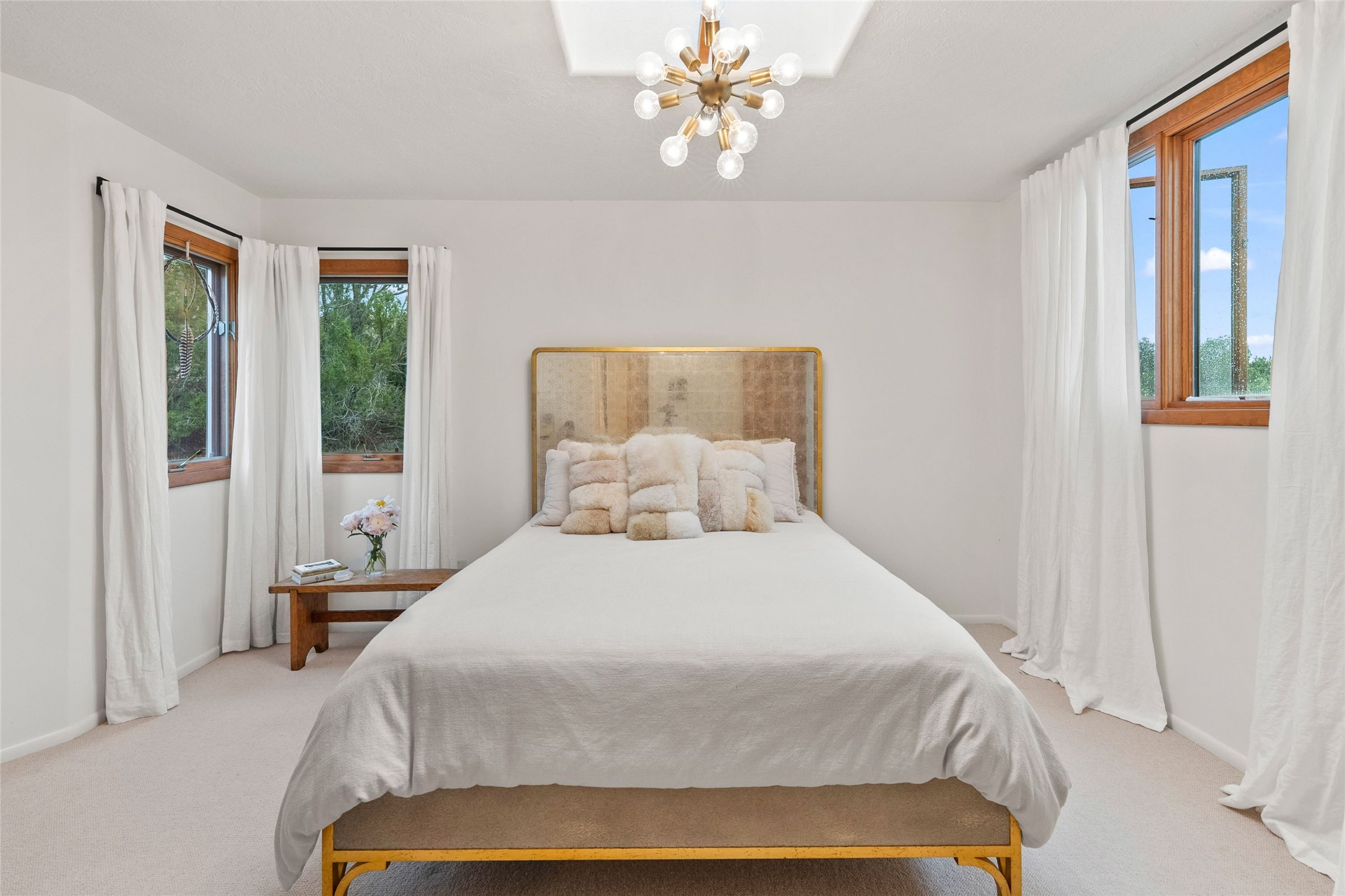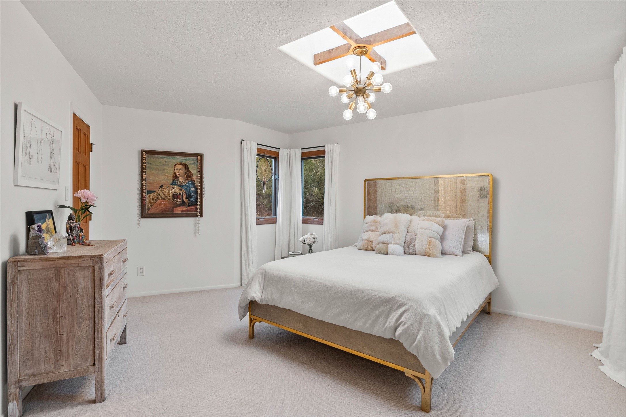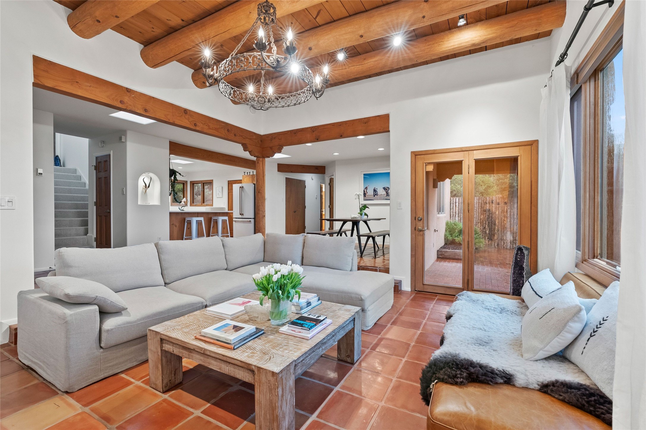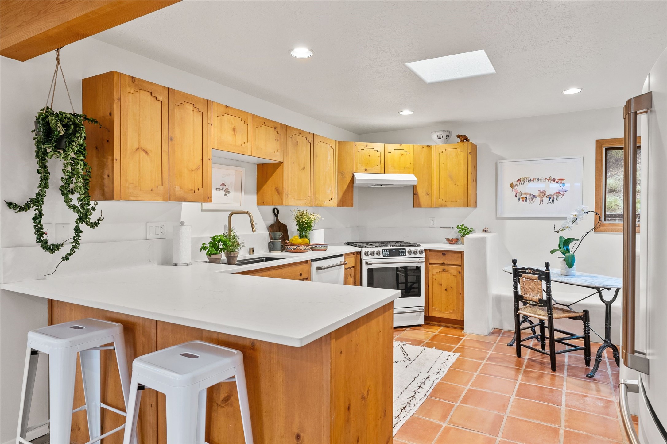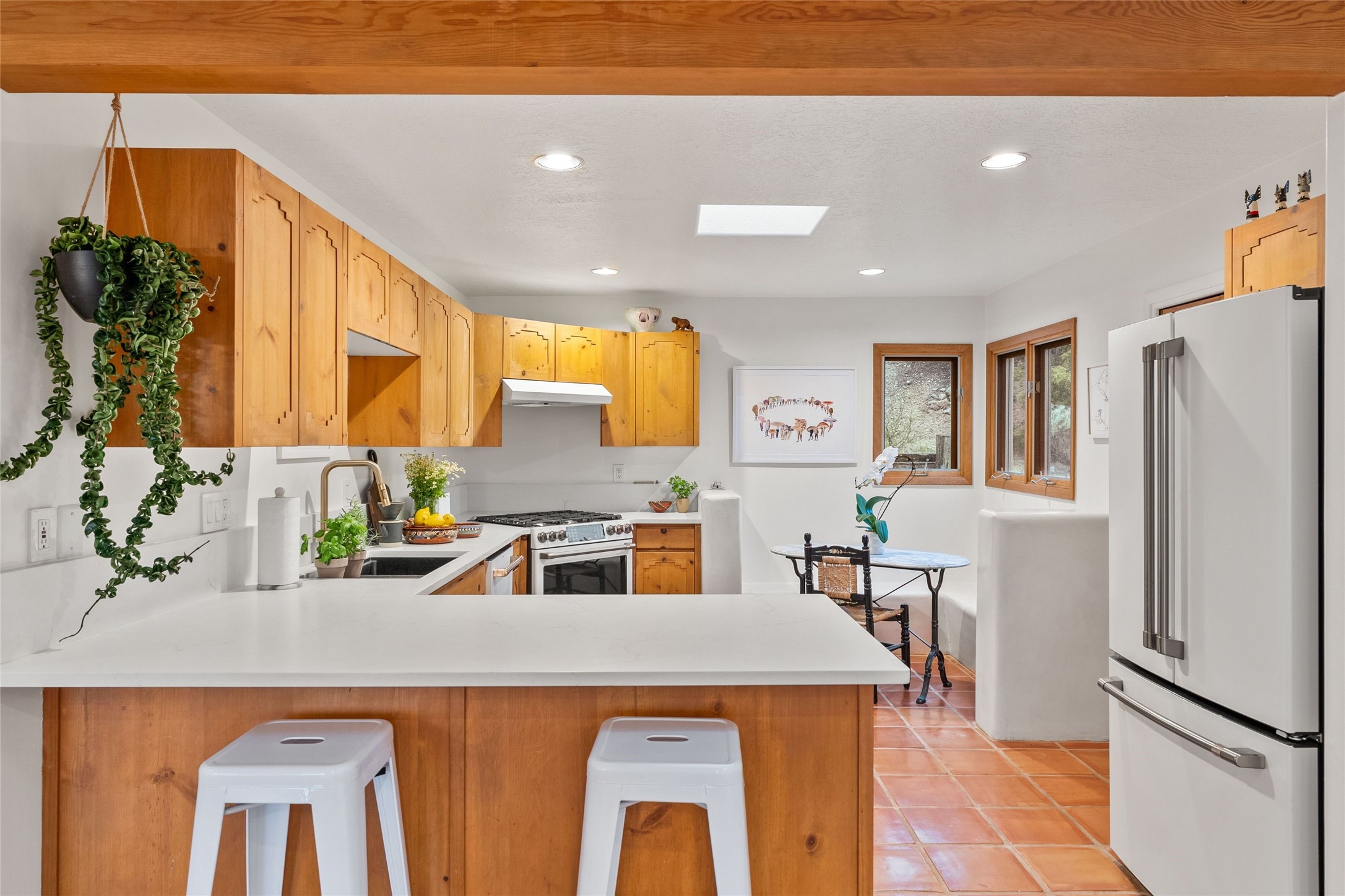 Welcome to 31 Calle Cielo--a lovingly maintained and thoughtfully updated 3-bedroom, 2-bathroom home nestled in the tranquil beauty of the Tesuque area. With 2,244 square feet of living space on 7.1 acres this residence combine's, nature, and convenience into a rare offering. Step inside to find light-filled interiors enhanced by updated skylights, fresh interior paint, and new windows that frame stunning views of the Santa Fe Opera House and surrounding mountains. The remodeled open kitchen is great for entertaining and a chef's delight, featuring new countertops, premium Caf brand appliance's, and a new sink. Additional upgrades include updated lighting fixtures throughout the house, a custom handrail on the stairs and a newly added coyote fence--perfect for keeping pets safe while enjoying the spacious outdoor areas. Living here is like residing in an ever-changing landscape painting. Experience the full range of New Mexico's natural beauty: dramatic monsoons, snow-dusted winters, colorful sunsets, and moonlit mountain vistas. It's not uncommon to see deer grazing on the property, enhancing the home's serene, almost magical atmosphere. With its peaceful seclusion, this home is also just a short walk to the Four Seasons Resort, where you can enjoy dining, drinks, or a relaxing spa treatment. A quick drive brings you to the beloved Tesuque Village Market or El Nido for local fare and community connection. Located in the welcoming Los Caminitos HOA, residents enjoy access to a swimming pool, tennis courts, BBQ-ready pool house, and a shared herb garden. Morning neighborhood walks with pets are a common tradition here, reflecting the strong sense of community. Just minutes from downtown Santa Fe, yet worlds away in terms of tranquility, 31 Calle Cielo offers the best of both worlds: privacy, natural beauty, and modern convenience.