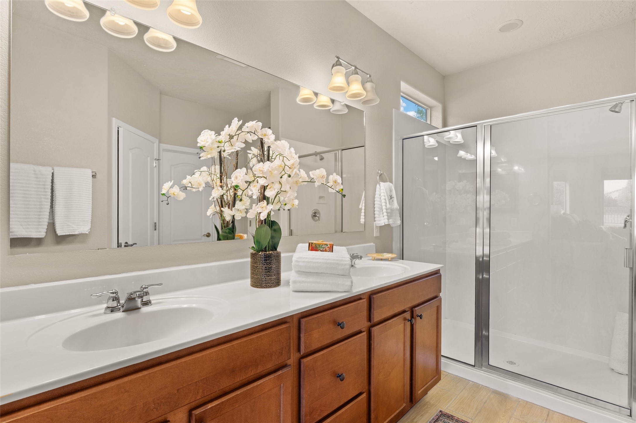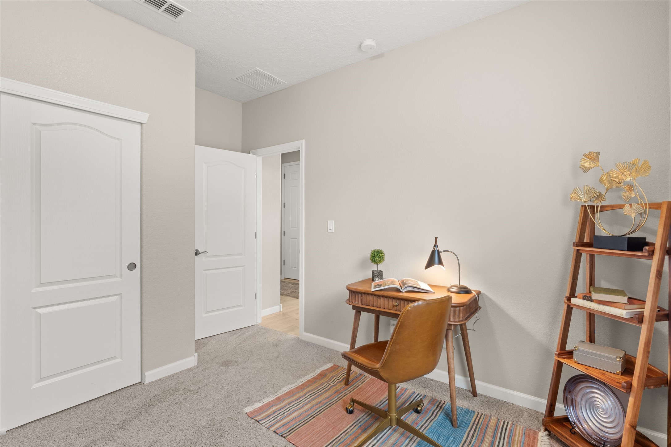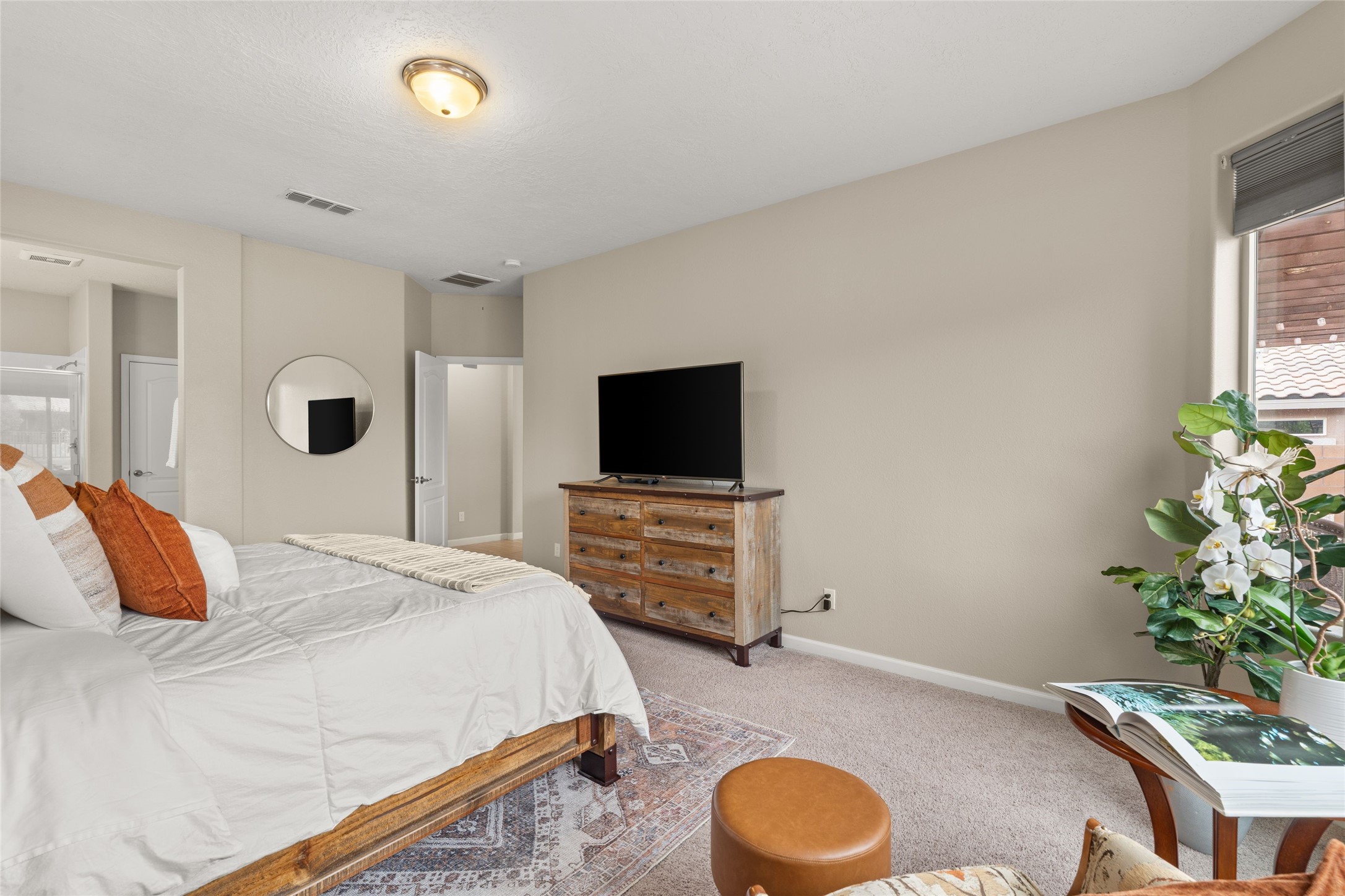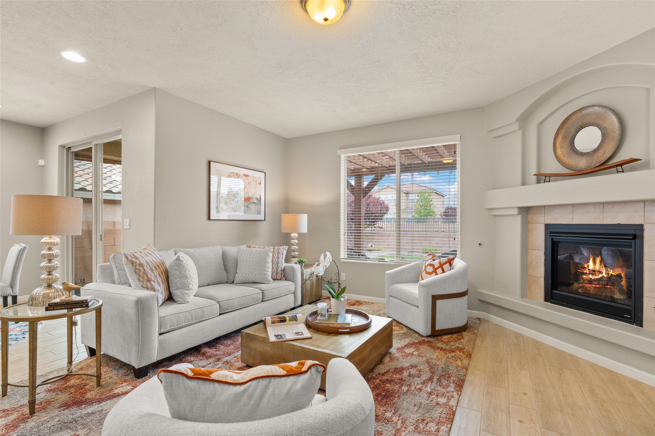Enjoy the desirable lifestyle of Las Soleras in this beautiful community conveniently located for easy access to downtown Santa Fe, Albuquerque, Los Alamos, the Rail Runner as well as schools, healthcare, shopping, dining and cultural destinations. This 3 bedroom/2 bathroom home was thoughtfully designed and offers a large open plan Living Room, Dining Area and Kitchen and excellent separation between the Primary ensuite Bedroom and the other bedrooms. Enter the Primary Bedroom Ensuite from a foyer off the Living Room and enjoy the generously sized bedroom, a large bathroom with a linen and walk-in closet. Other bedrooms and bathroom are towards the front of the home and adjacent to the long entry hallway opening up to the Living/Dining and Kitchen. The Kitchen has granite counter tops, all wood cabinetry, a Pantry and ample room for cooking and entertaining. Walk outside to a beautiful and welcoming trellis covered patio and green turf back yard area that is ideal for dining and lounging to the trickling sound from the stone water feature. Las Soleras has an extensive trail system for walking and running as well as Las Soleras Park for birdwatching, outdoor sports, picnicking and includes essential amenities like parking restrooms, a leisure playground and a shelter available for use. This is a versatile home that can fit any type of lifestyle so schedule your showing today!