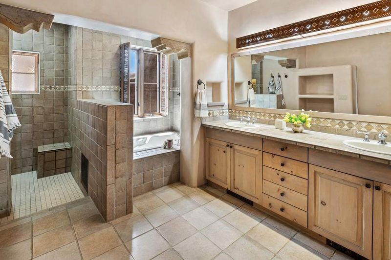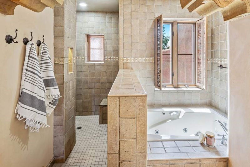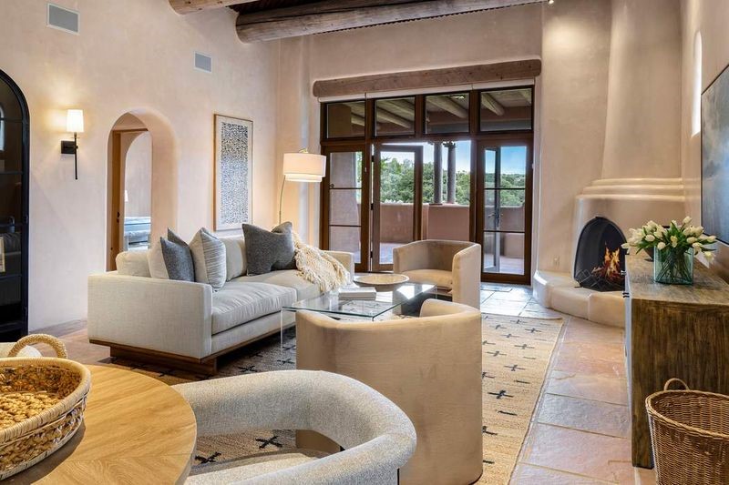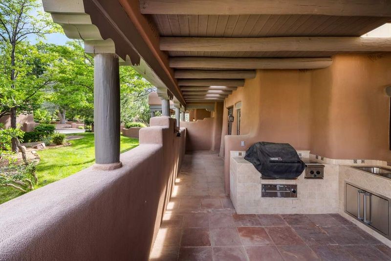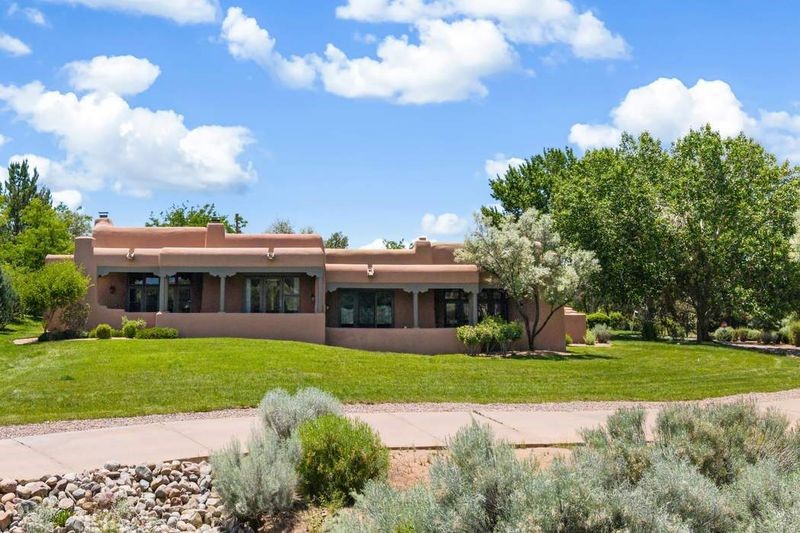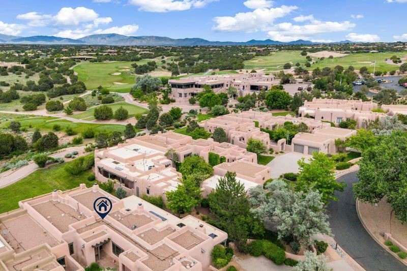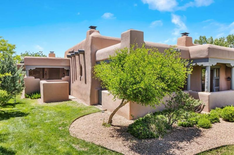 Live the ultimate Las Campanas lifestyle! Located directly across from the 1st tee of the Sunrise Golf Course and The Club at Las Campanas Hacienda Clubhouse, this beautifully designed, 2,664 square foot, single level residence, with stunning Sangre de Cristo Mountain and golf course views, is a rare offering and not to be missed! Located in the Club Casitas neighborhood, within the famed community of Las Campanas, this exceptional home is sited in a rare, park-like setting, with lushly landscape grounds and walking paths, all of which are maintained by the HOA and delights with a true sense of community. Design feature highlights include the three spacious, well-appointed owner's suites, each with spa-like baths, walk-in closets and, covered and enclosed portals and separate entrances. Entertaining is a joy with the welcoming great room which opens to the kitchen, outdoor BBQ, and vast outdoor seating and dining areas, all of which are fully enclosed for privacy and pets. Ideal as a perfect secondary lock and leave residence, or primary residence, this incredible Las Campanas home offers rare adobe construction, an expansive and private front entrance courtyard, one of the best sited patios in all of Las Campanas with a Kiva fireplace, soft arches and creamy plaster walls throughout, soaring great room ceilings with rich vigas accents and a thoughtful floor plan with desirable separation of space, including a separate entrance for the fully independent guest wing. Walking distance to The Club at Las Campanas Clubhouse, the Sunrise and Sunset Golf Courses and The Club at Las Campanas Fitness, Pool, Spa and Tennis Center, this exceptional home boasts the finest level of craftsmanship, has been well maintained and is move-in ready. Membership to The Club at Las Campanas is optional and by invitation only.