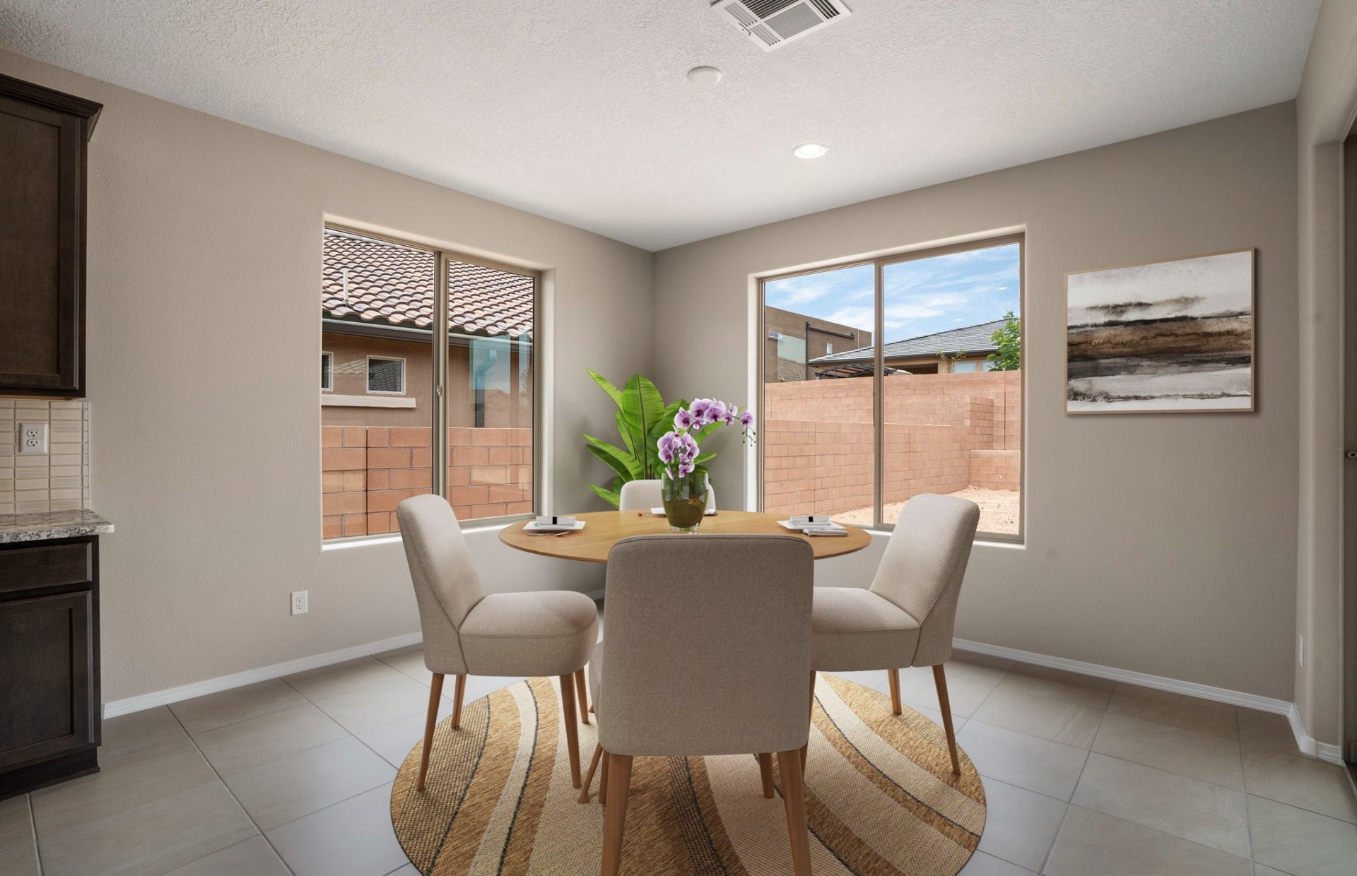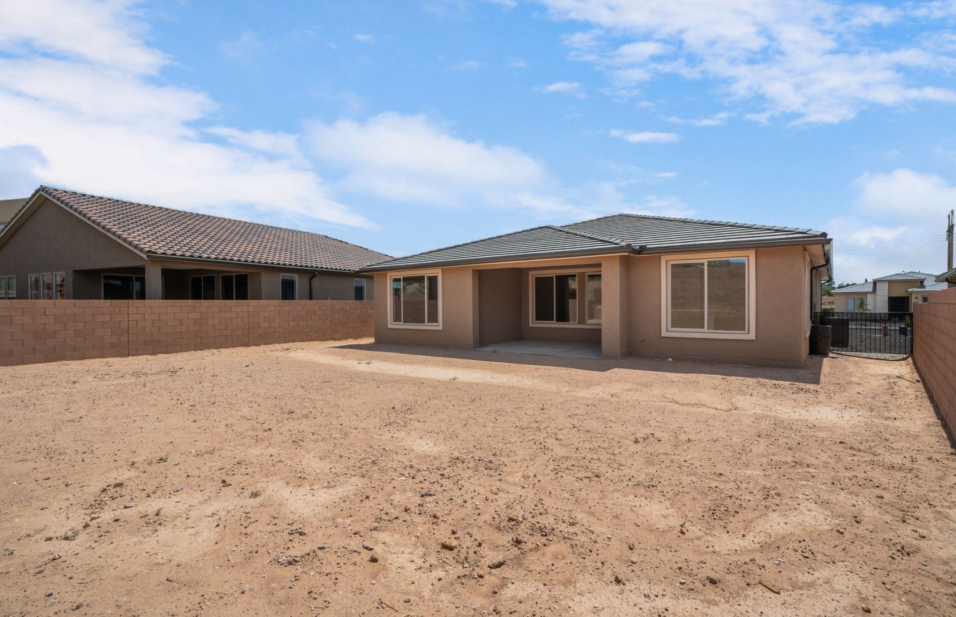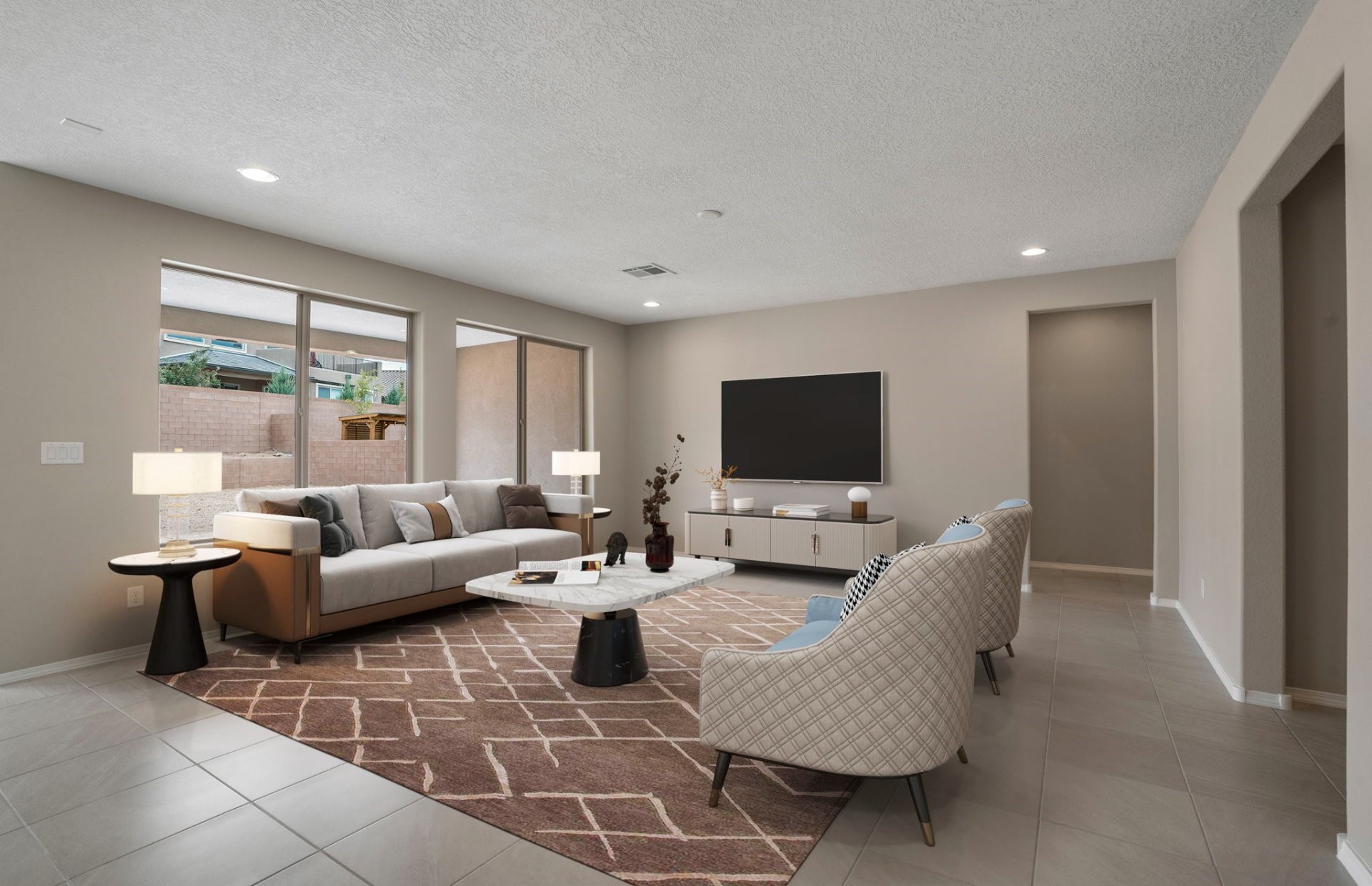 Welcome to this beautifully designed single-story home that blends comfort, function, and style. Featuring a thoughtful split-bedroom layout, this 3-bedroom, 2.5-bath home offers both privacy and open-concept living, ideal for entertaining.At the heart of the home is a gourmet kitchen with a large island, stunning granite countertops, and ample cabinet space--perfect for home chefs and hosting gatherings. The adjacent dining and living areas flow seamlessly, all highlighted by beautiful tile flooring that adds both elegance and durability. A flex space provides endless possibilities--use it as a home office, playroom, gym, or guest area to suit your lifestyle. The primary suite is tucked away for maximum privacy and includes a spacious en-suite bath and generous walk-in closet. Step outside to your own private oasis: a covered back patio opens to an oversized backyard, offering room to relax, garden, or create your dream outdoor retreat.