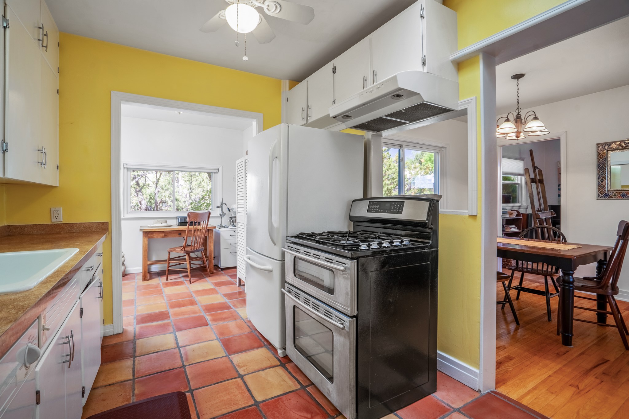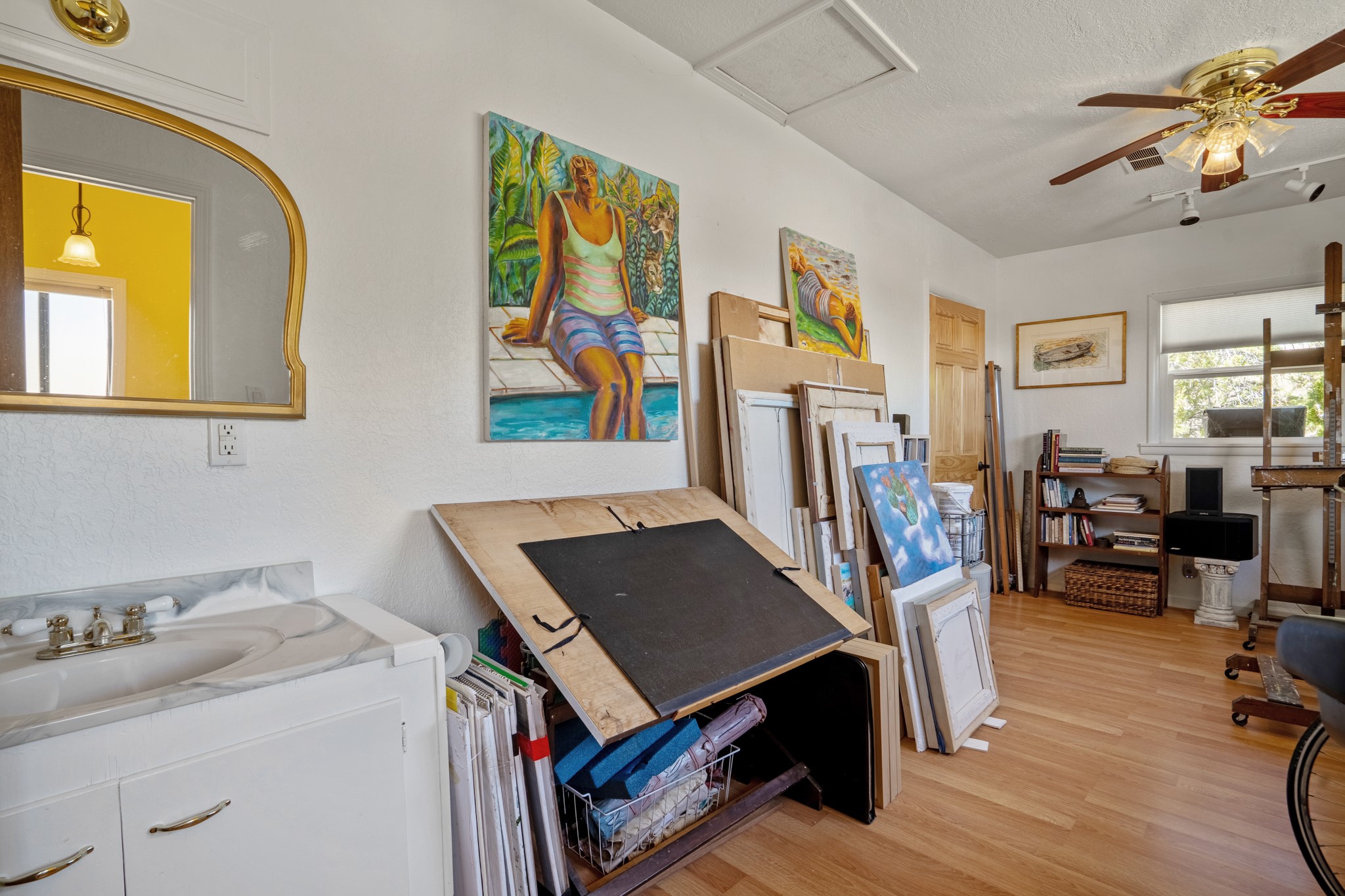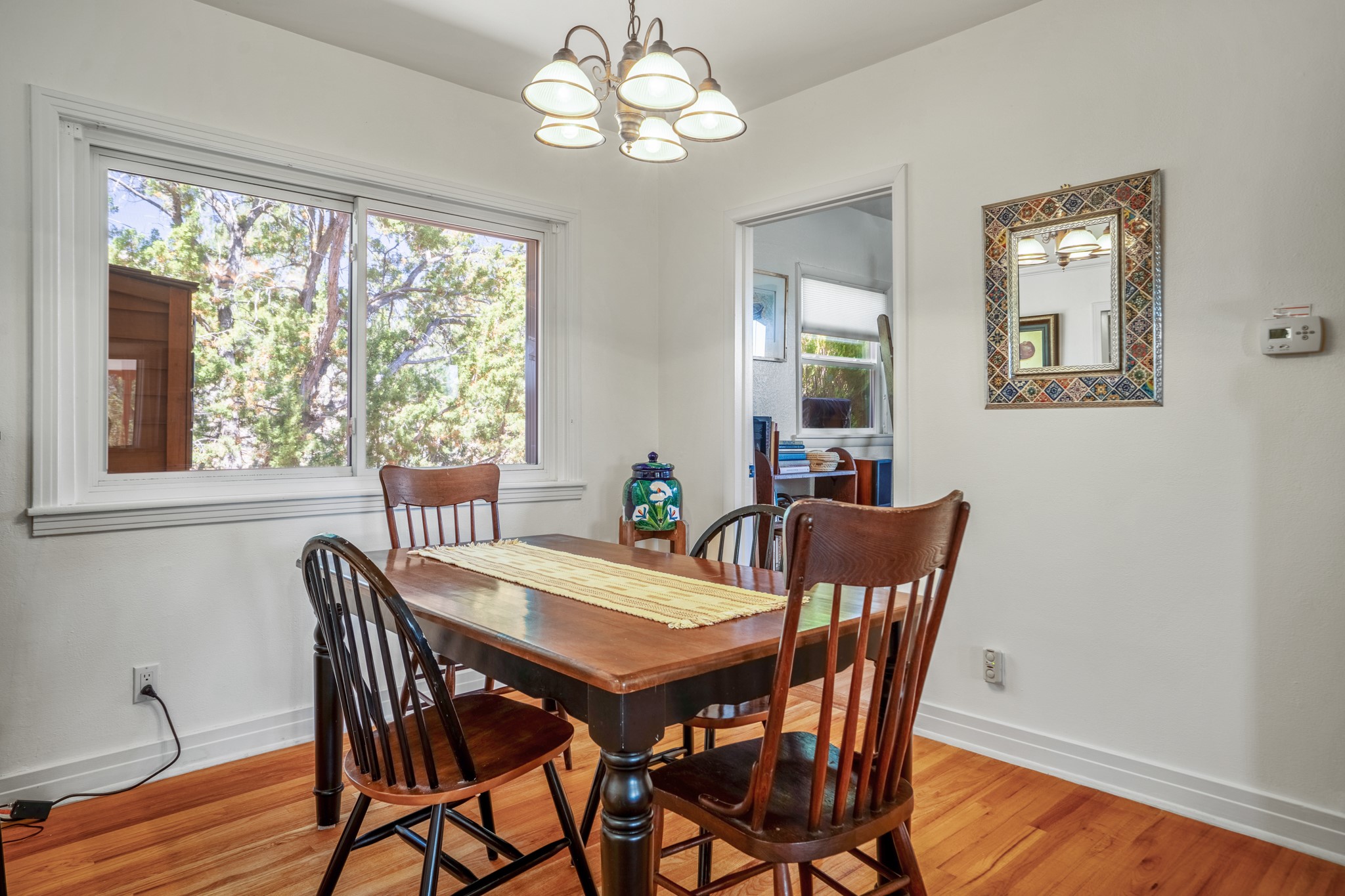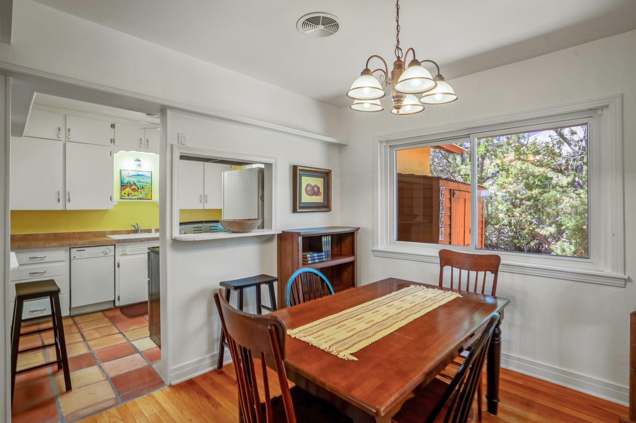 Nestled privately among Pinon and Juniper trees at Cochiti Lake, this well-maintained 3-bedroom, 2-bathroom home offers an inviting retreat. Step through the solid hardwood front door and discover real oak flooring flowing throughout most of the open floor plan, bathed in lots of natural light. Ceiling fans in every room ensure year-round comfort.The third bedroom is currently used as a versatile studio space and has its own bathroom, perfect for hobbies or a home office. Enjoy the convenience of a carport and an included storage shed. The landscaped back patio provides a peaceful outdoor oasis, with limited views of Tetilla Peak adding to the serene atmosphere. This cheery yellow home, with nearby lake access and golf, is an ideal sanctuary for those seeking a blend of comfort and nature. Schedule your showing today!