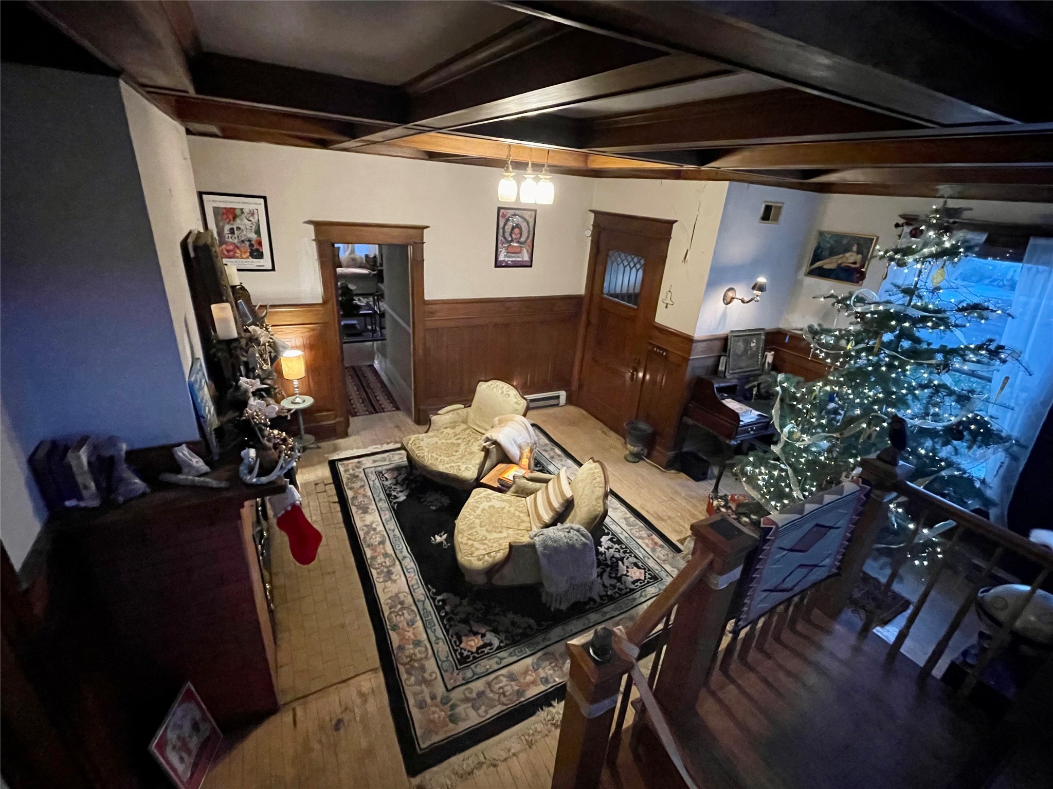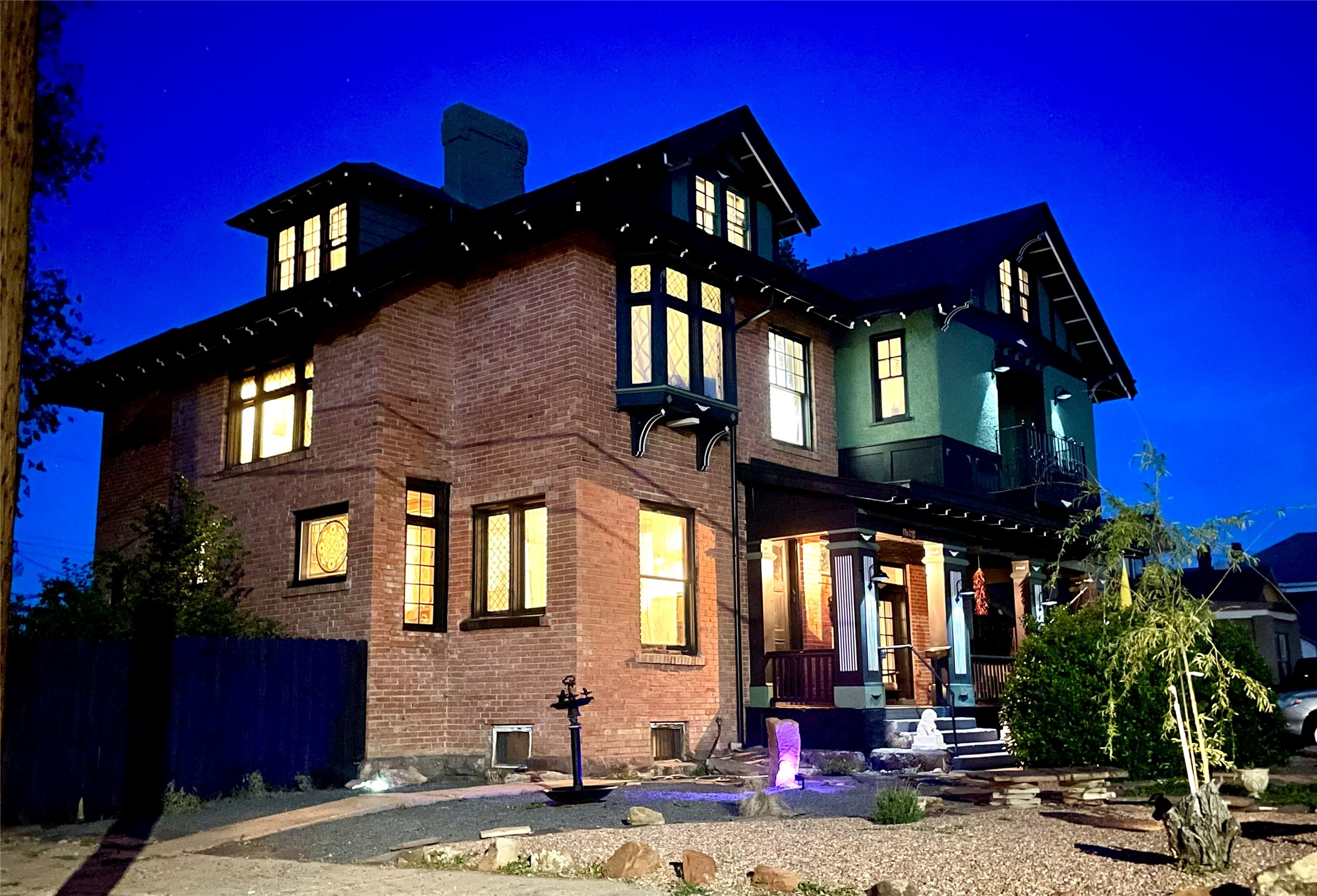 MOTIVATED SELLERS, BRING OFFER! 2025 historic preservation award winner. Gracious mansion designed by renowned Rapp and Rapp architects and built by historically significant merchant Cecilio Rosenwald (builder of historic Coronado theater) in 1913, utilizing the best materials and craftsmanship - the antique brass Antwerp Lion doorknobs still work perfectly! Recently restored and updated while preserving the historic charm. Hardwood floors, oak panelling, high coffered ceilings, many bay windows - enchanting details throughout! Too many updates to list including new: roof, boiler, granite counters, appliances, paint, landscaping, etc. Flexible floor plan - click video link! As you approach the home you are greeted by a large front porch. Enter the foyer through a towering oak front door. Ground floor includes a library-foyer with grand gas fireplace, living room with bay window, formal dining room with pellet stove, sunroom with doggy door to fenced yard, kitchen with breakfast bar and Forno gas range, walk in pantry, powder room, and a full bathroom. Take either the grand staircase or the servants stairs to the second floor which includes master suite with balcony, walk in closet and en suite bathroom, 4 other bedrooms, one with gas fireplace currently used as tv room, a deck, and a bathroom with laundry so you don't have to schlepp laundry up and downstairs! On the top floor is a 2 bedroom apartment that was originally built as servants quarters and has generated income as an airbnb. It can be accessed via the outdoor stairs with a separate entrance or from the inside of the main home for guests. The basement is partially finished with a great room, kitchen, bathroom, laundry, and several storage/hobby rooms. The back yard has 2 pear trees, a well for gardening, and a carriage house that has lots of potential. In town walkability near Highlands University, shopping, 10 minutes to Montezuma Hot Springs, 20 minutes Hermit's Peak and National Forest, on city water and sewer, so all the convenience and elegant luxury you would need. Be sure to click on the video link.Owner is listing realtor. Square footage is not guaranteed. Foo dog statues on front steps will not convey.